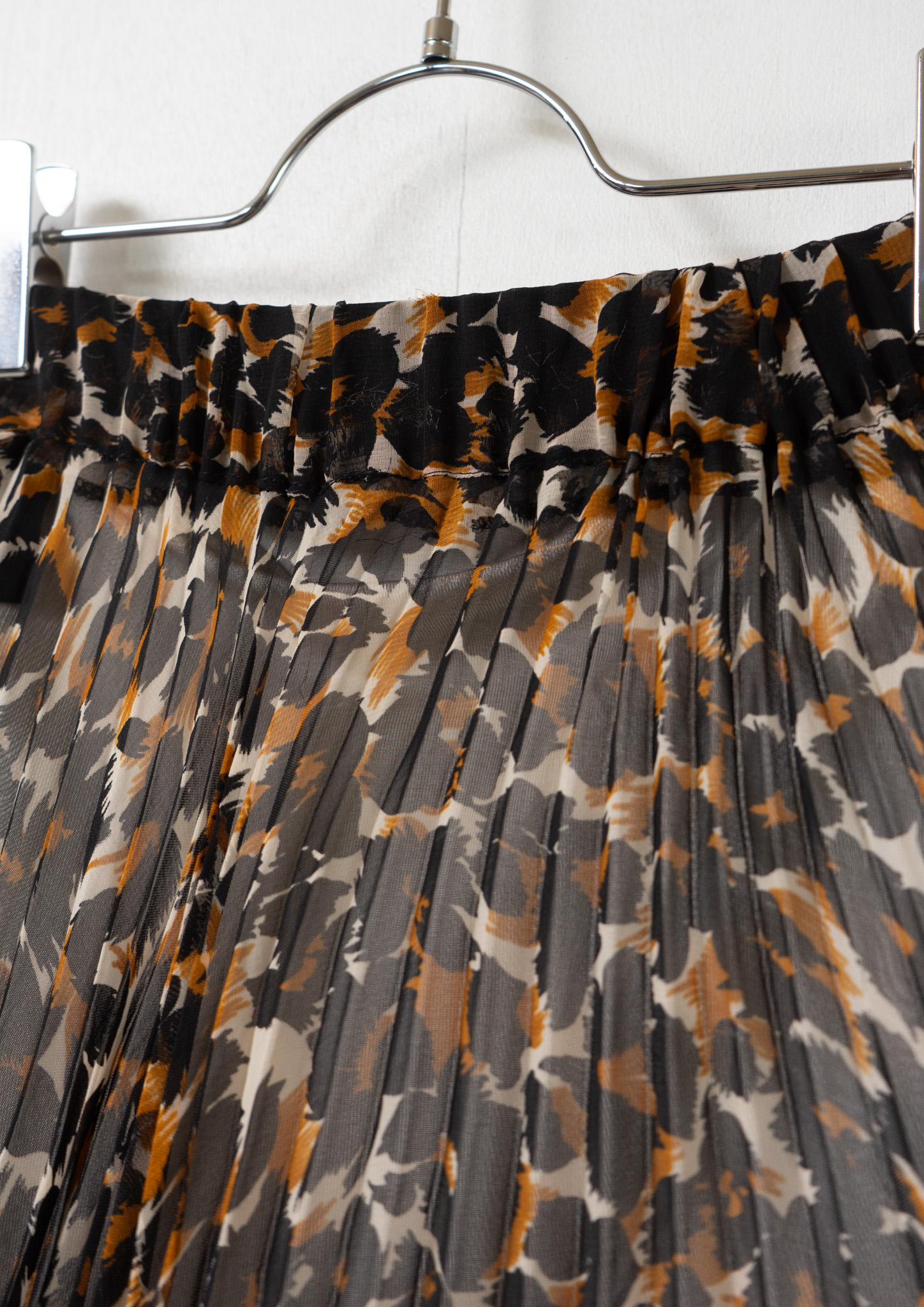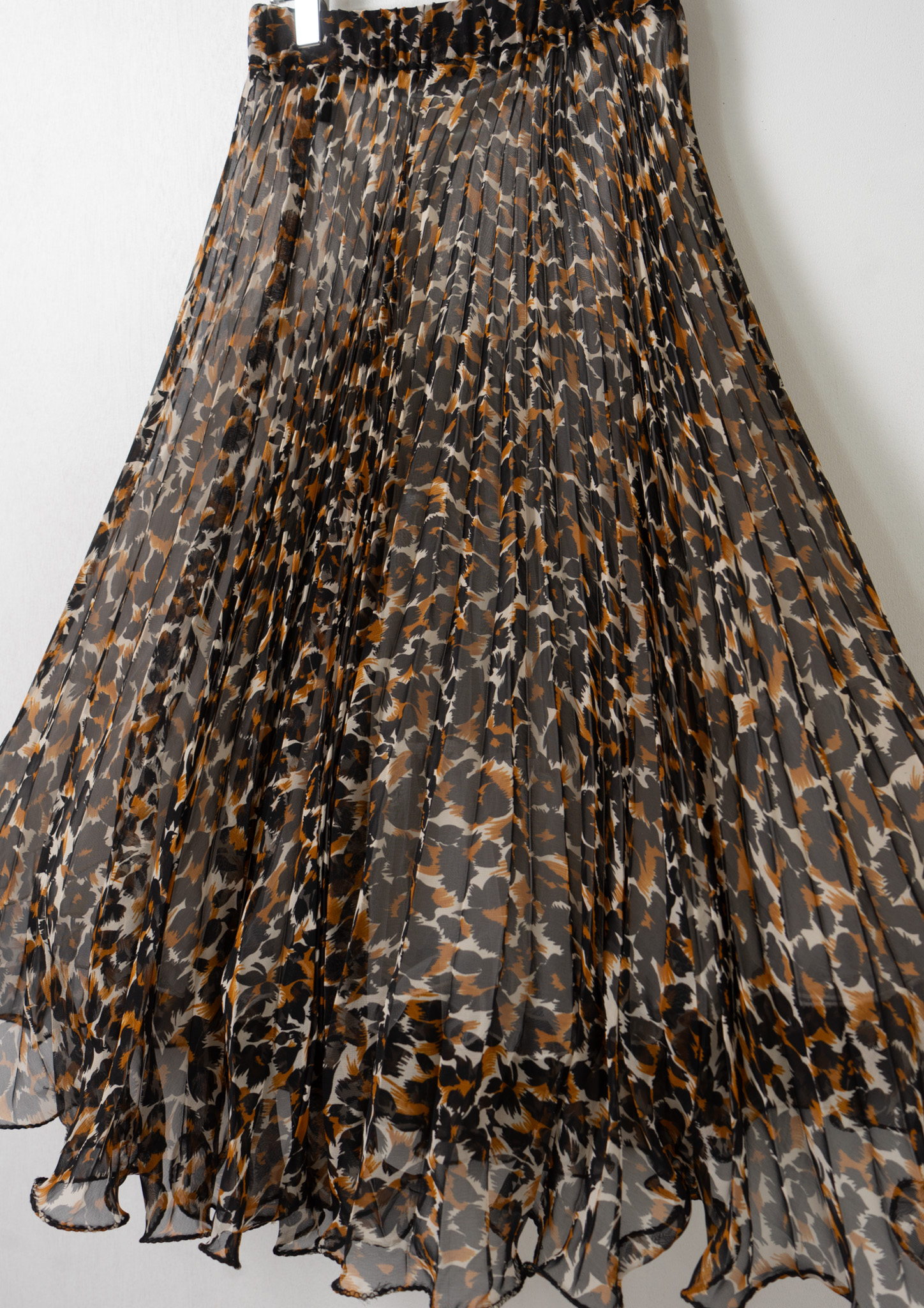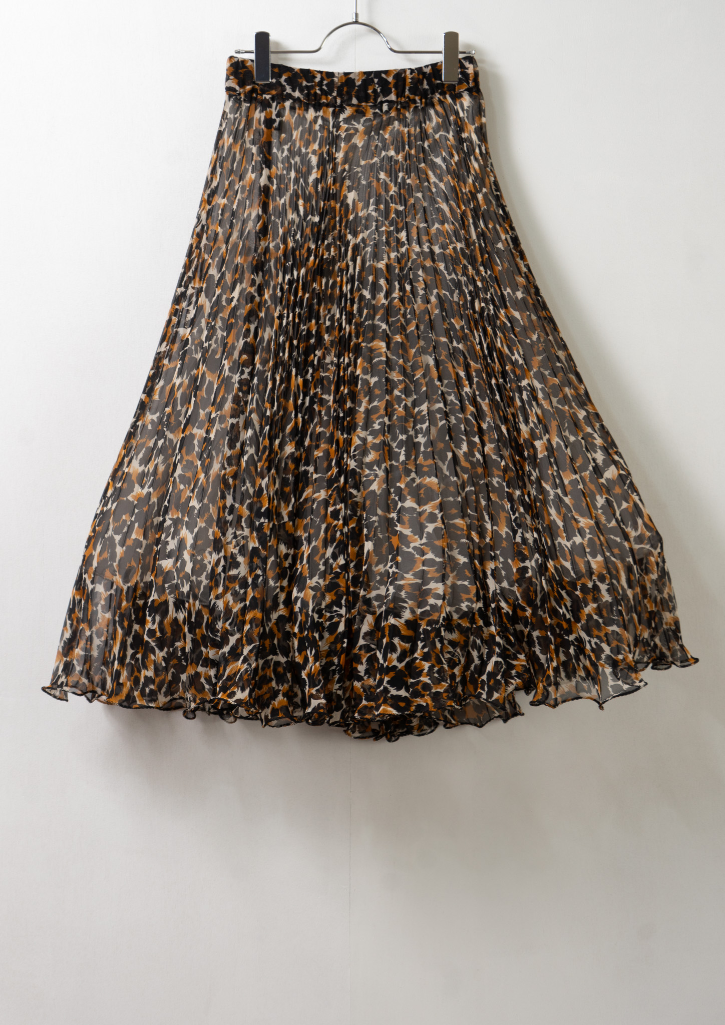 90's Leopard Pattern Sheer Pleats Skirt