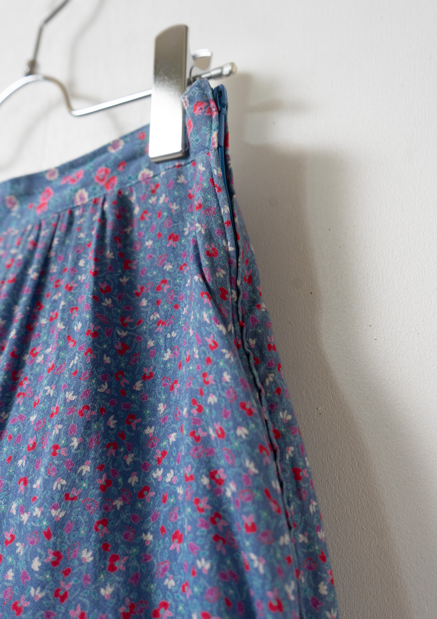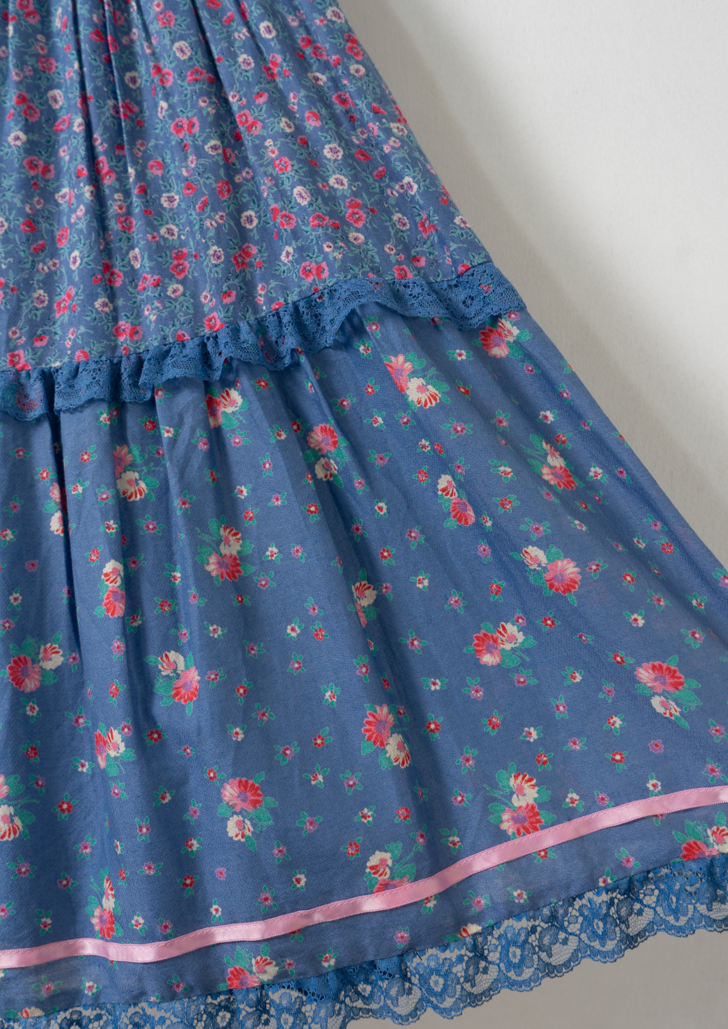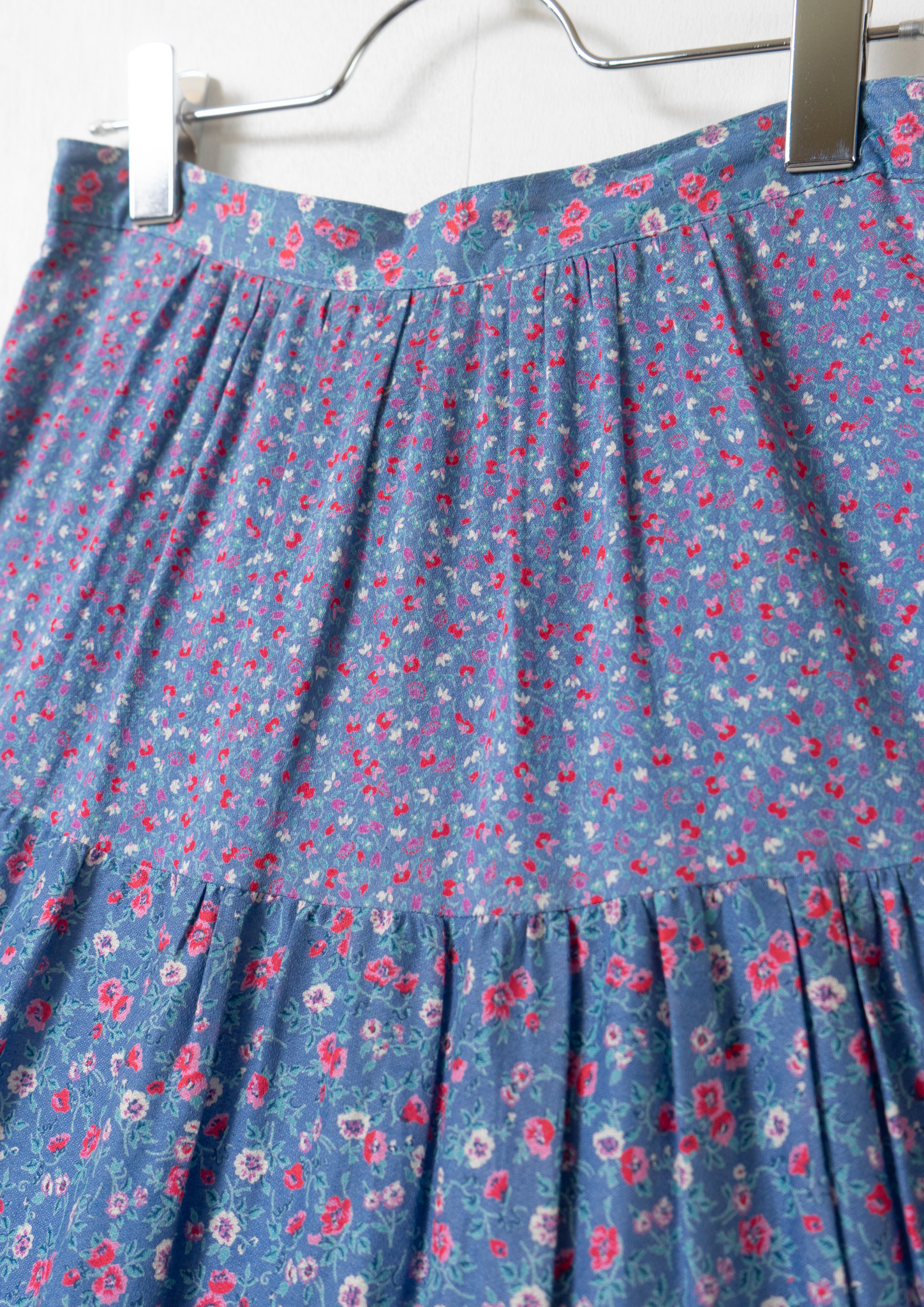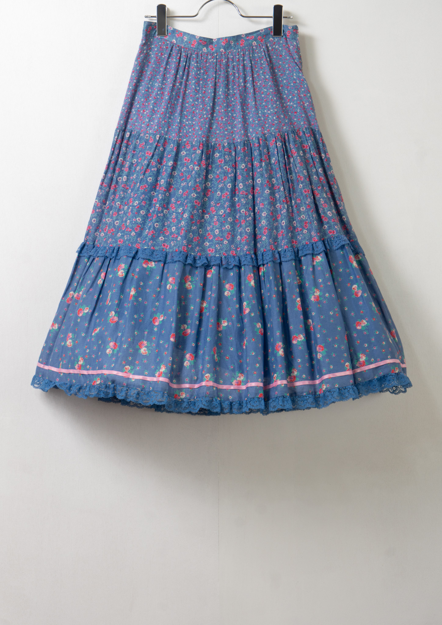 70's Euro Multi Flower Pattern Tiered Blue Skirt