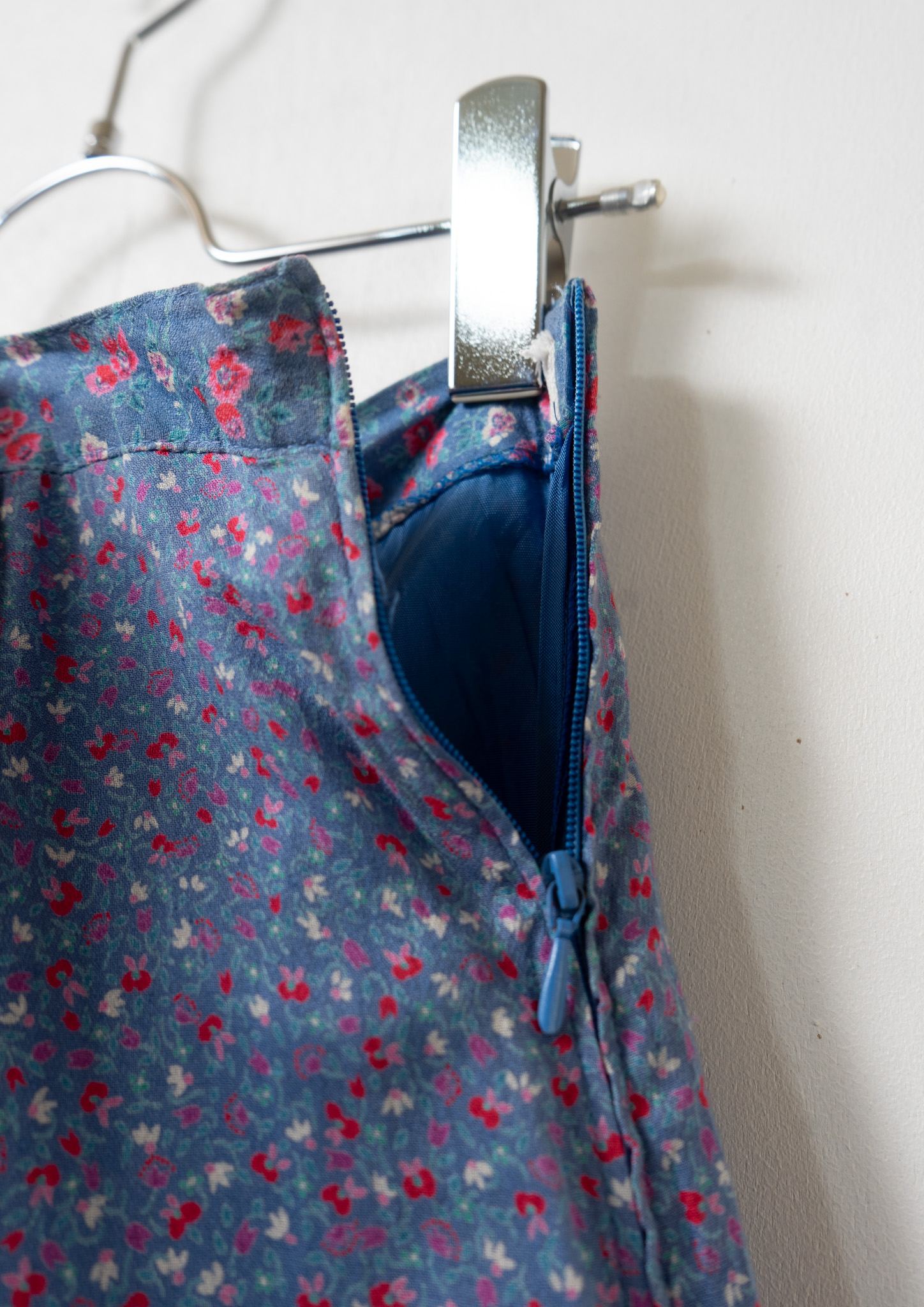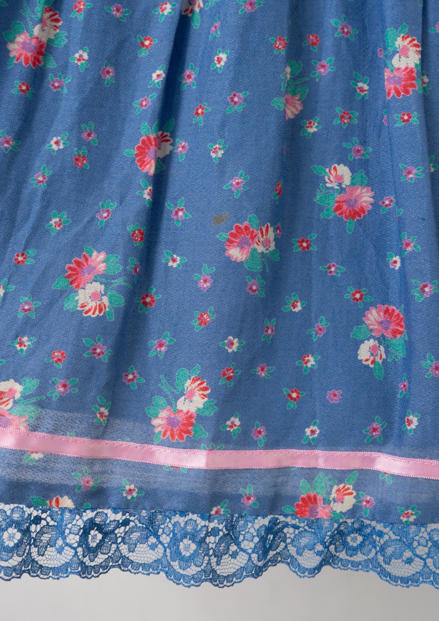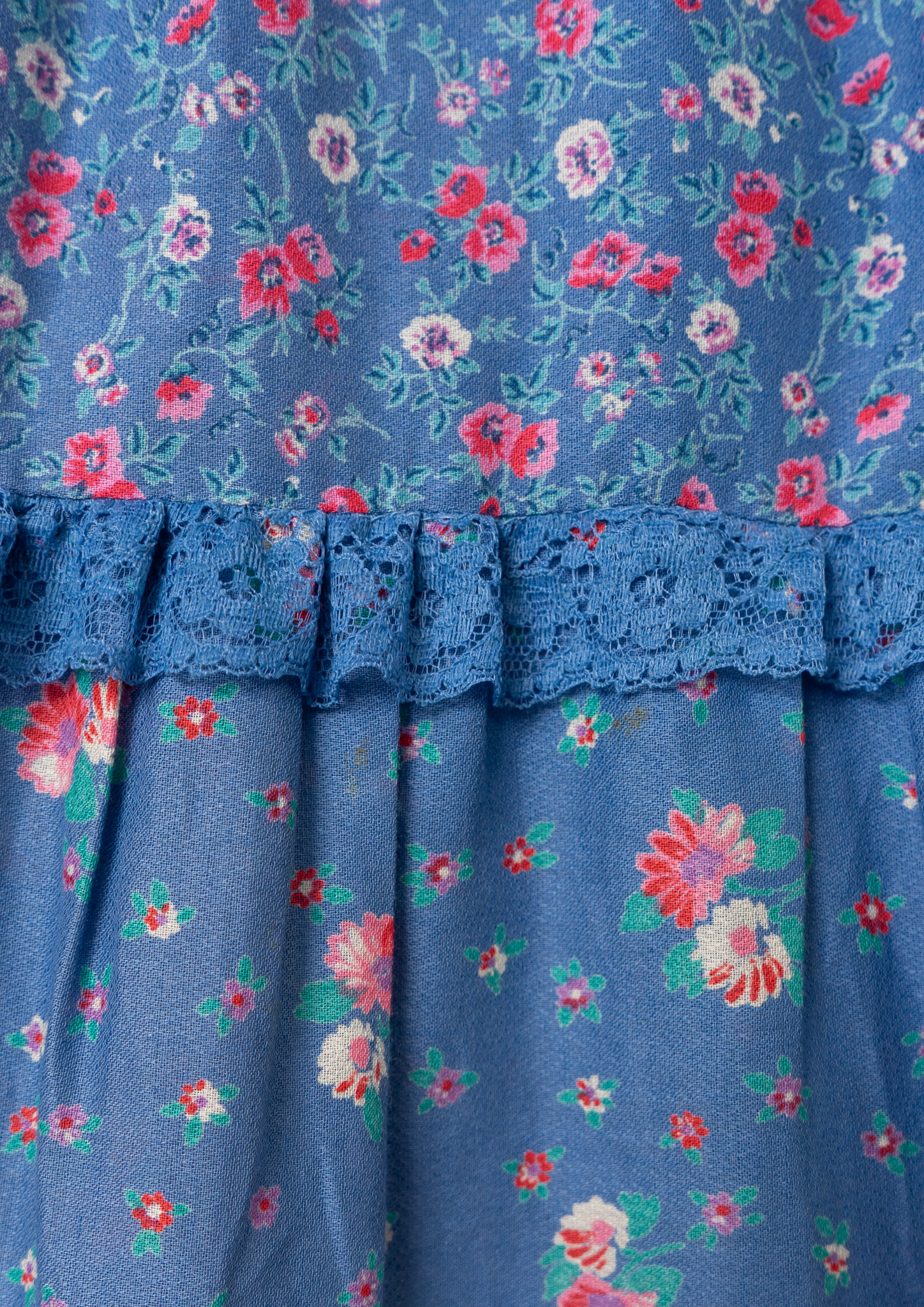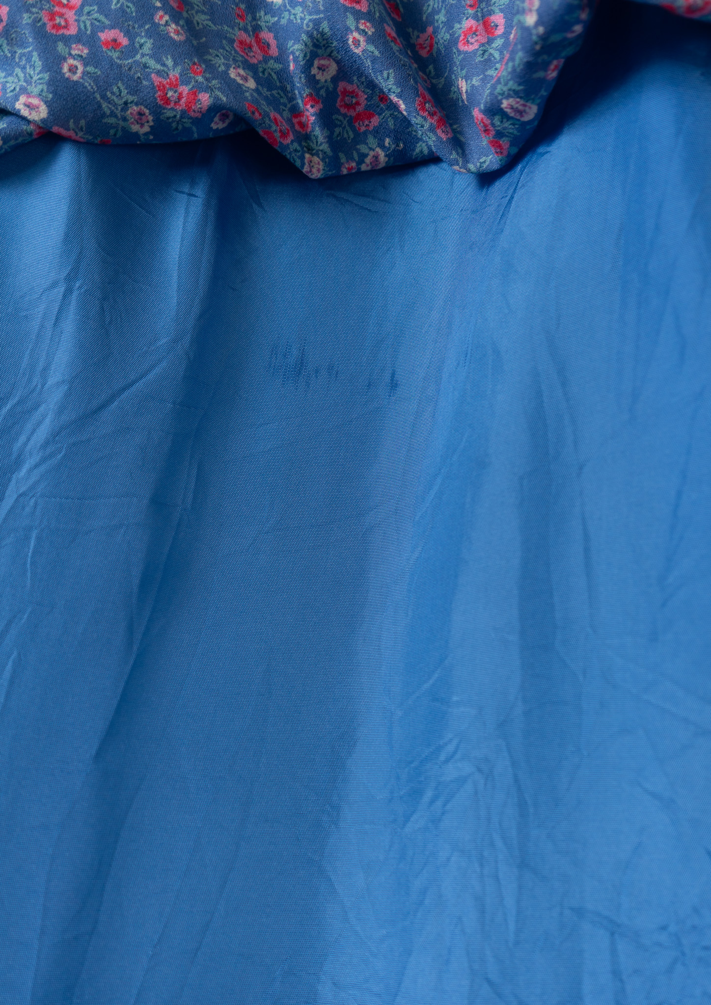 70's Euro Multi Flower Pattern Tiered Blue Skirt