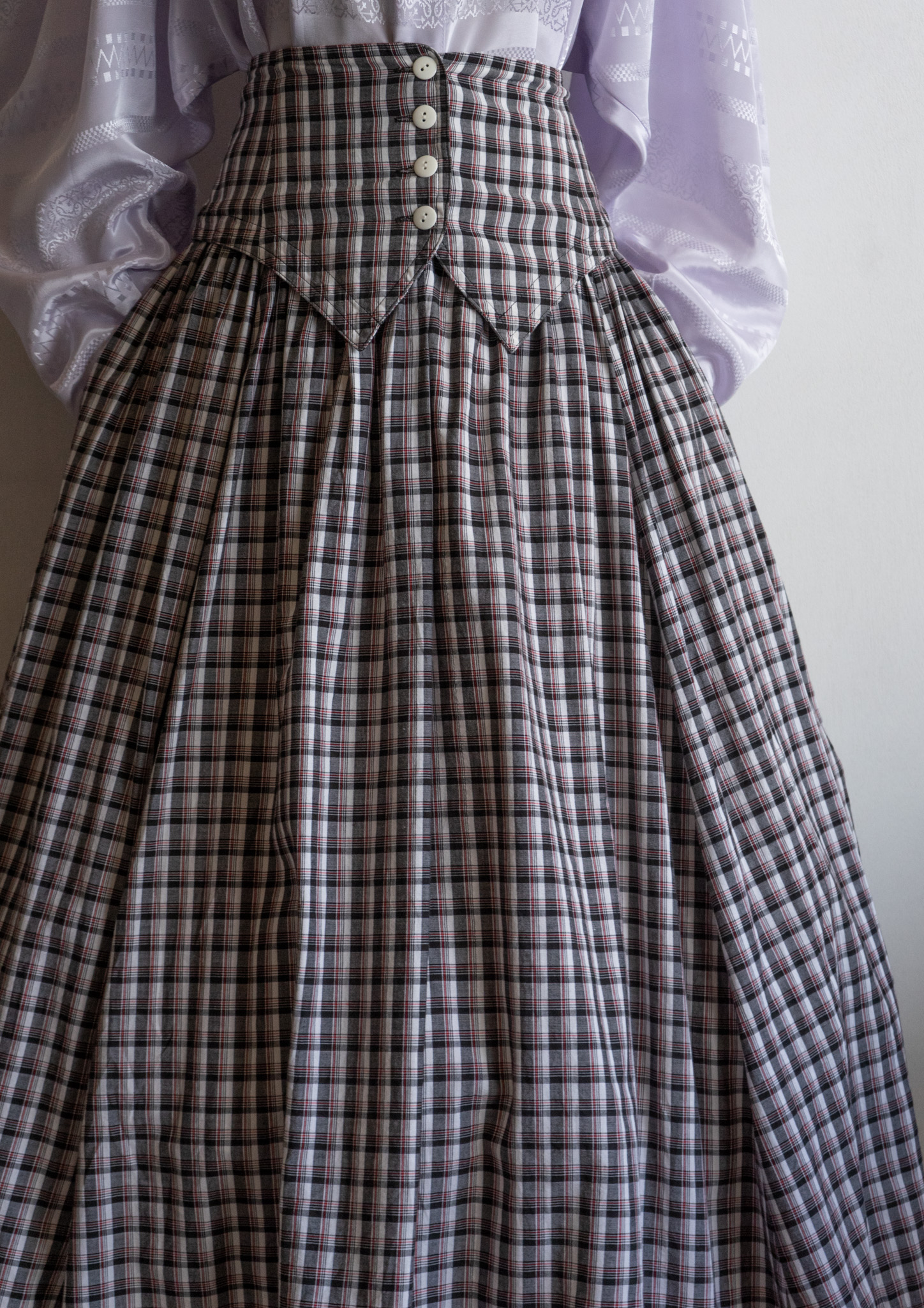 80's Euro Waist Layered Like Design Multi Black × Red Check Pattern Skirt