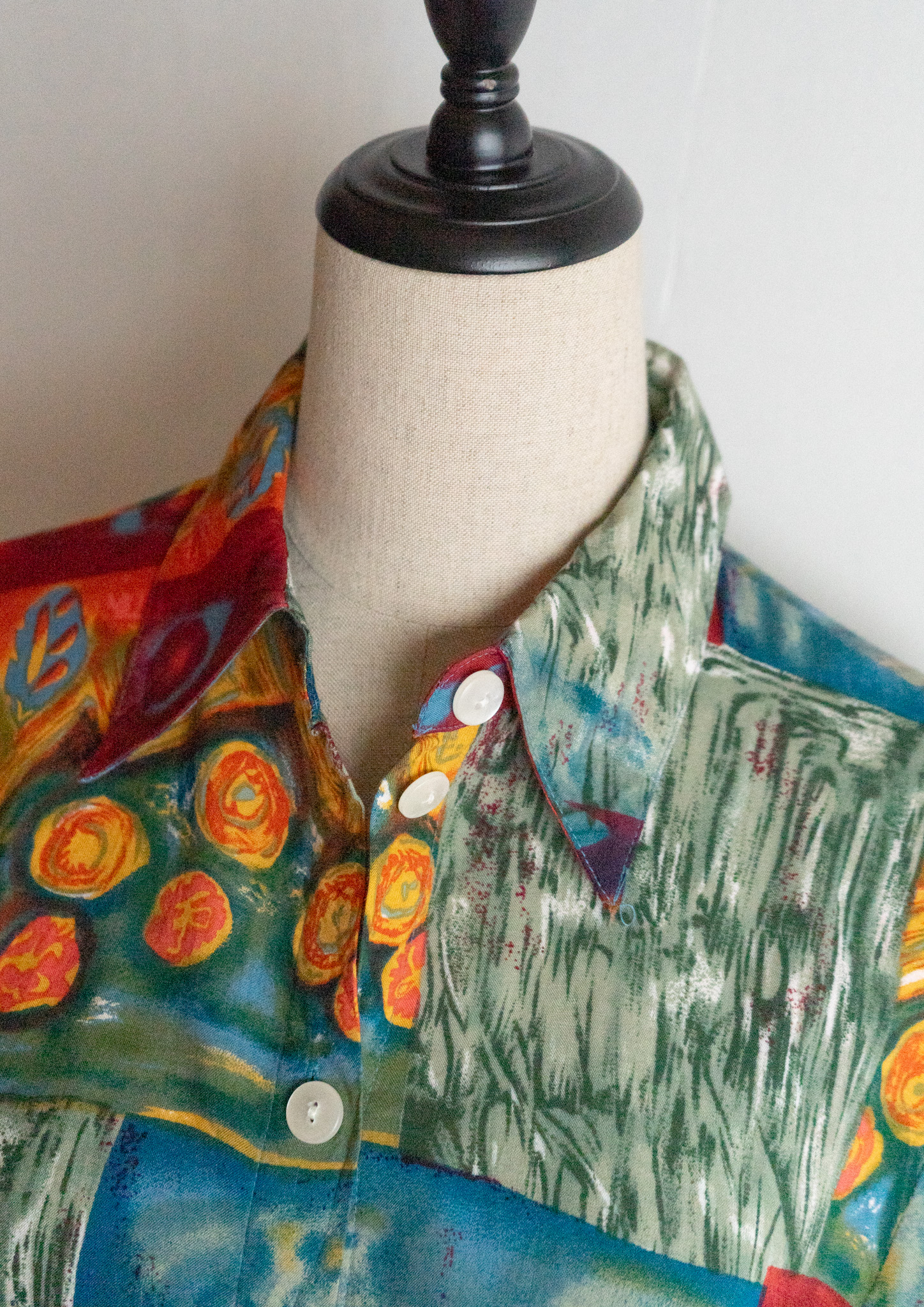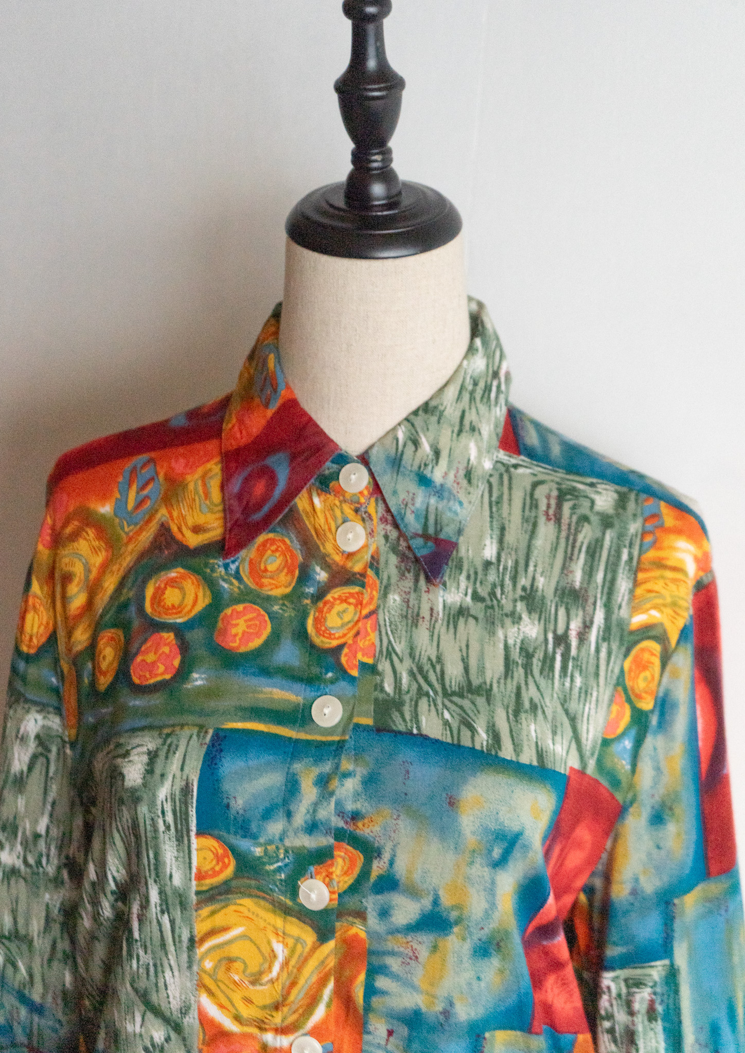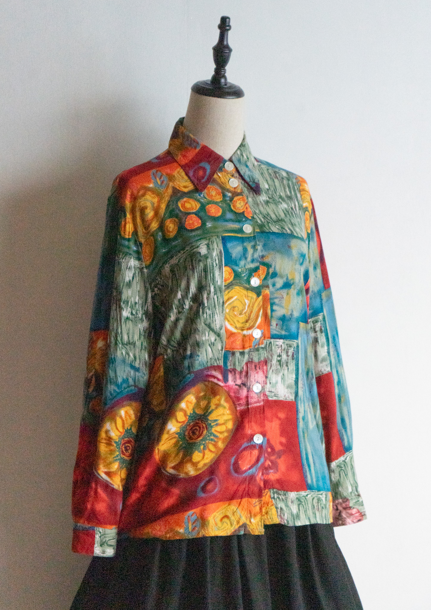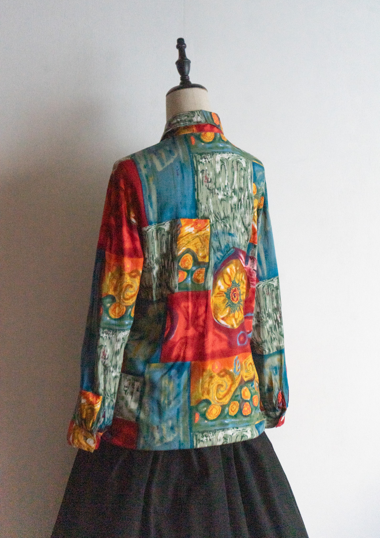 90's Stained glass Like Art Pattern Autumn Color Blouse