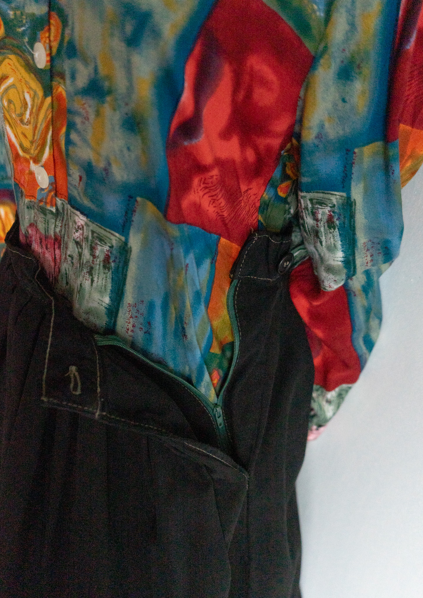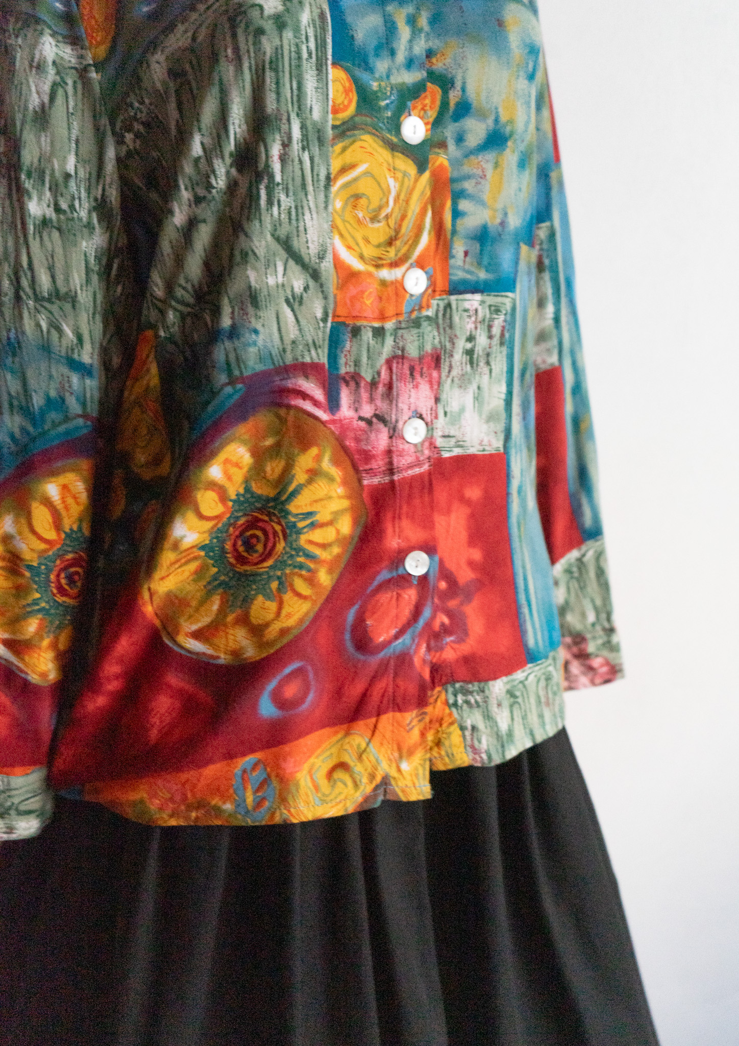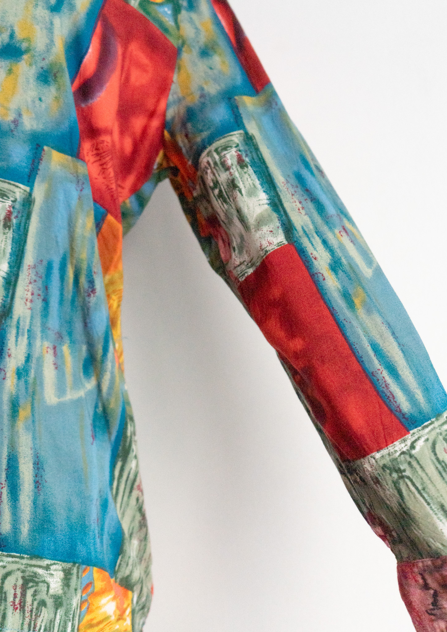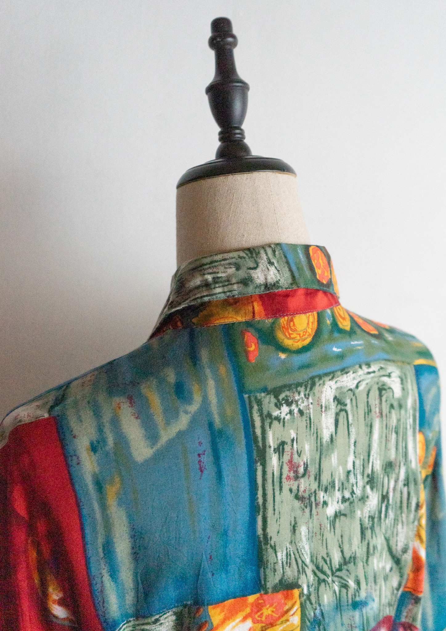 90's Stained glass Like Art Pattern Autumn Color Blouse