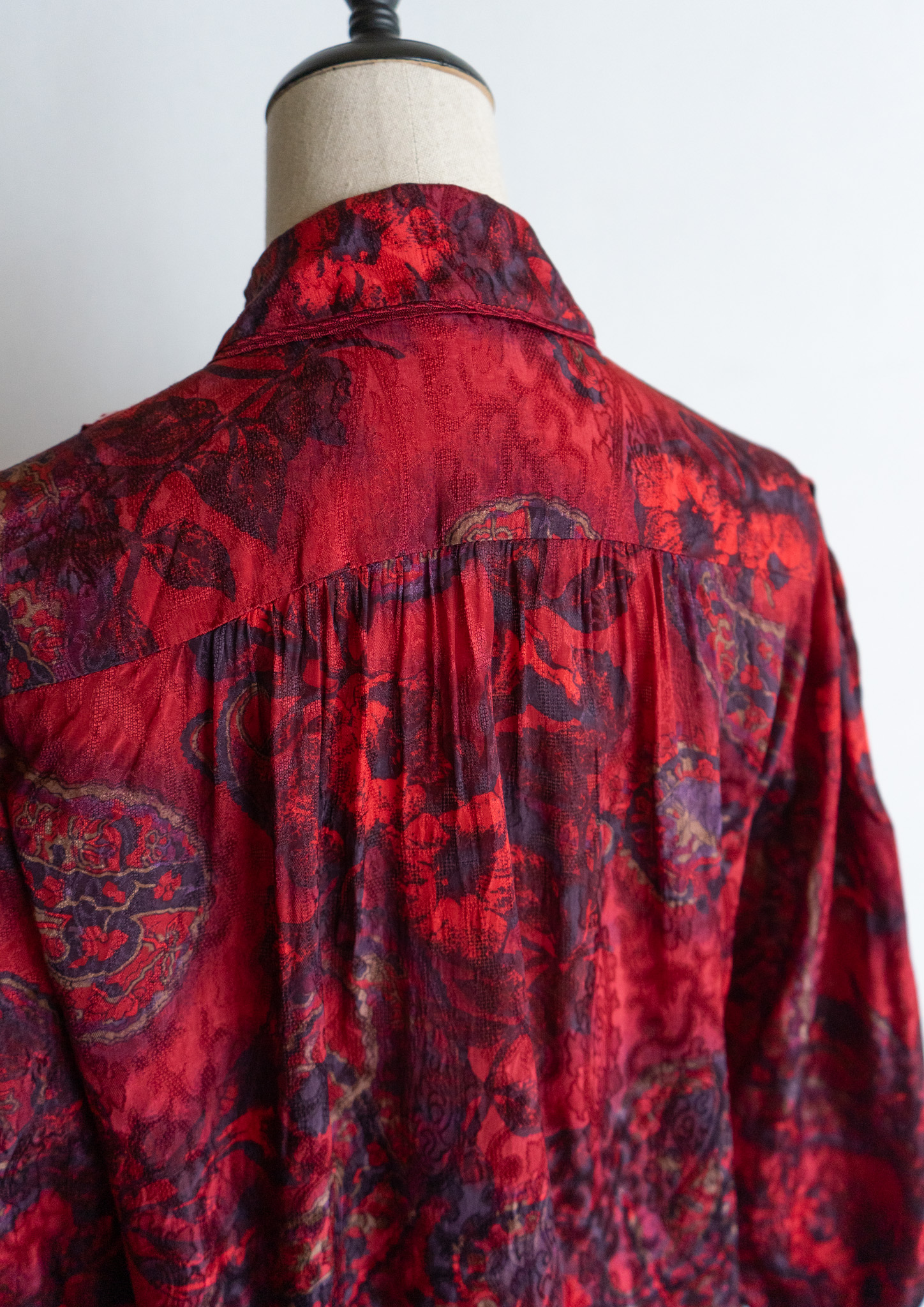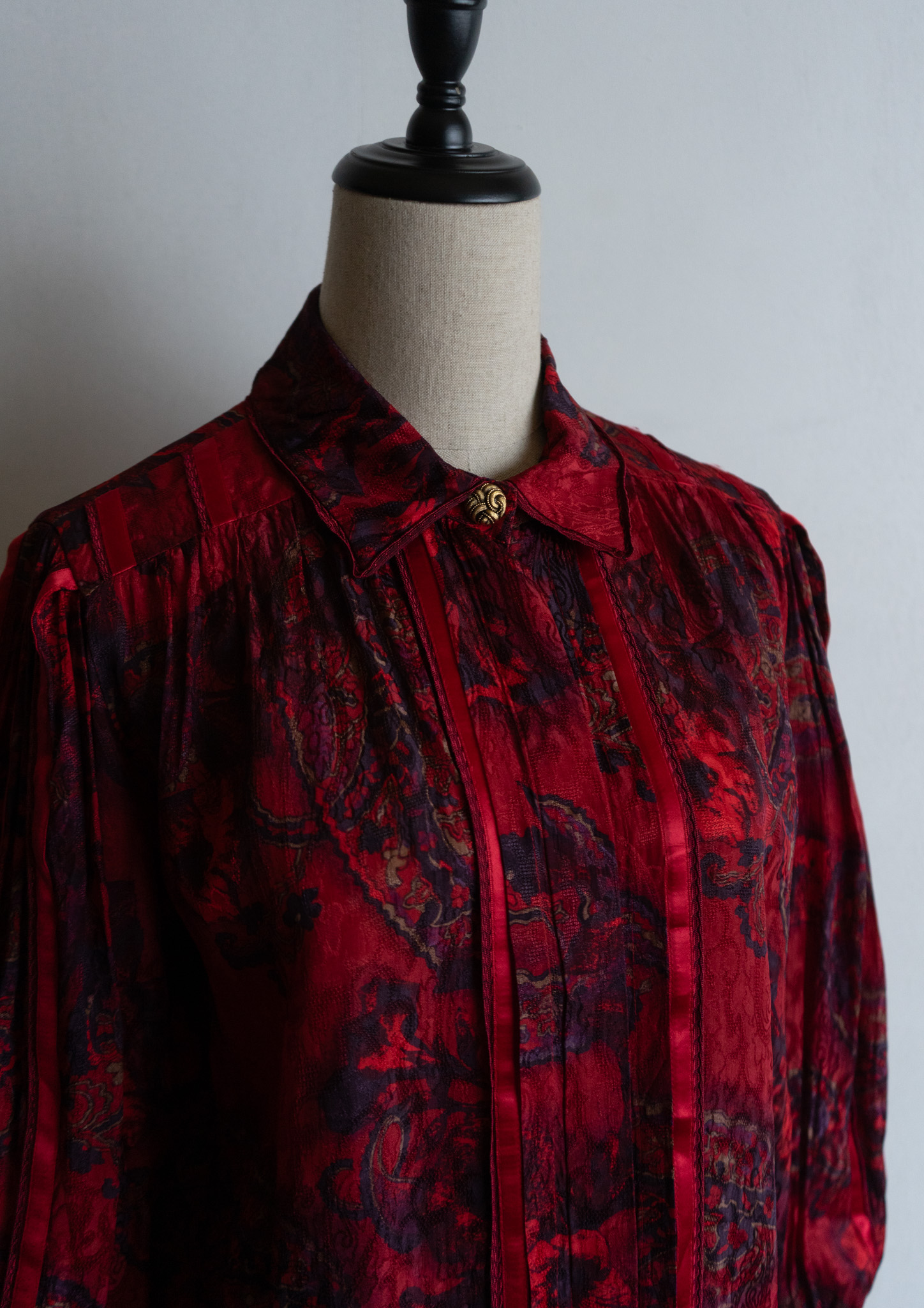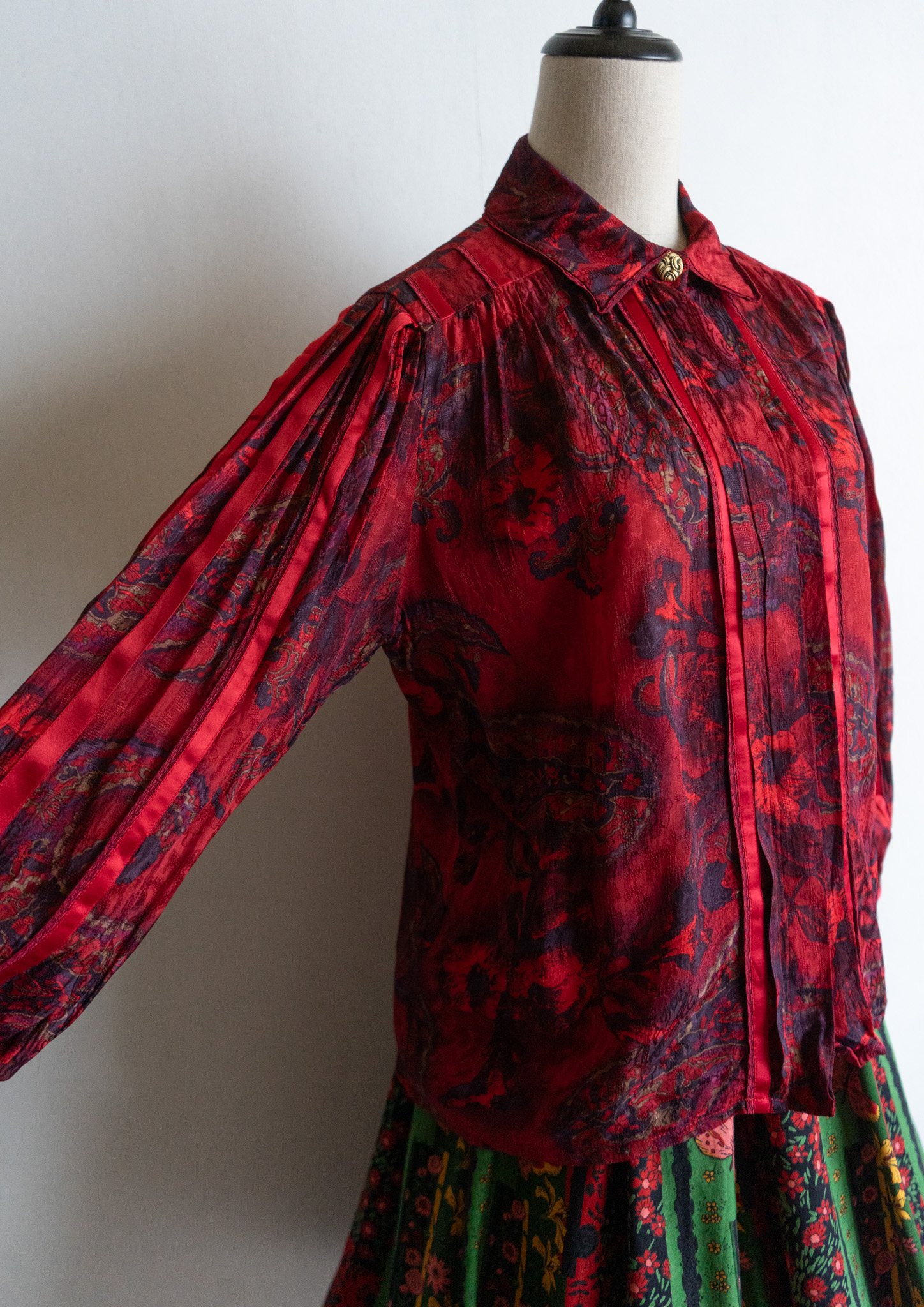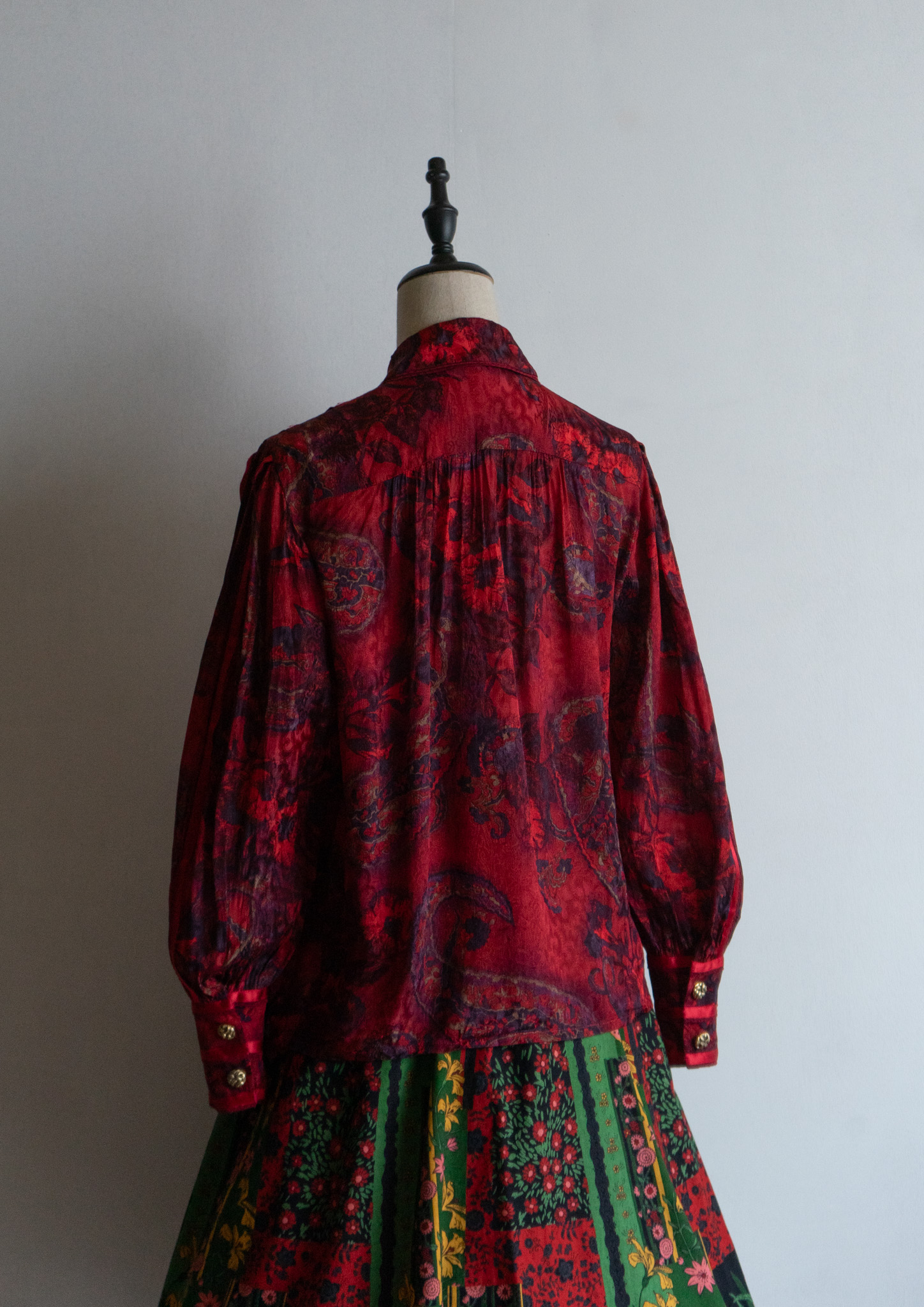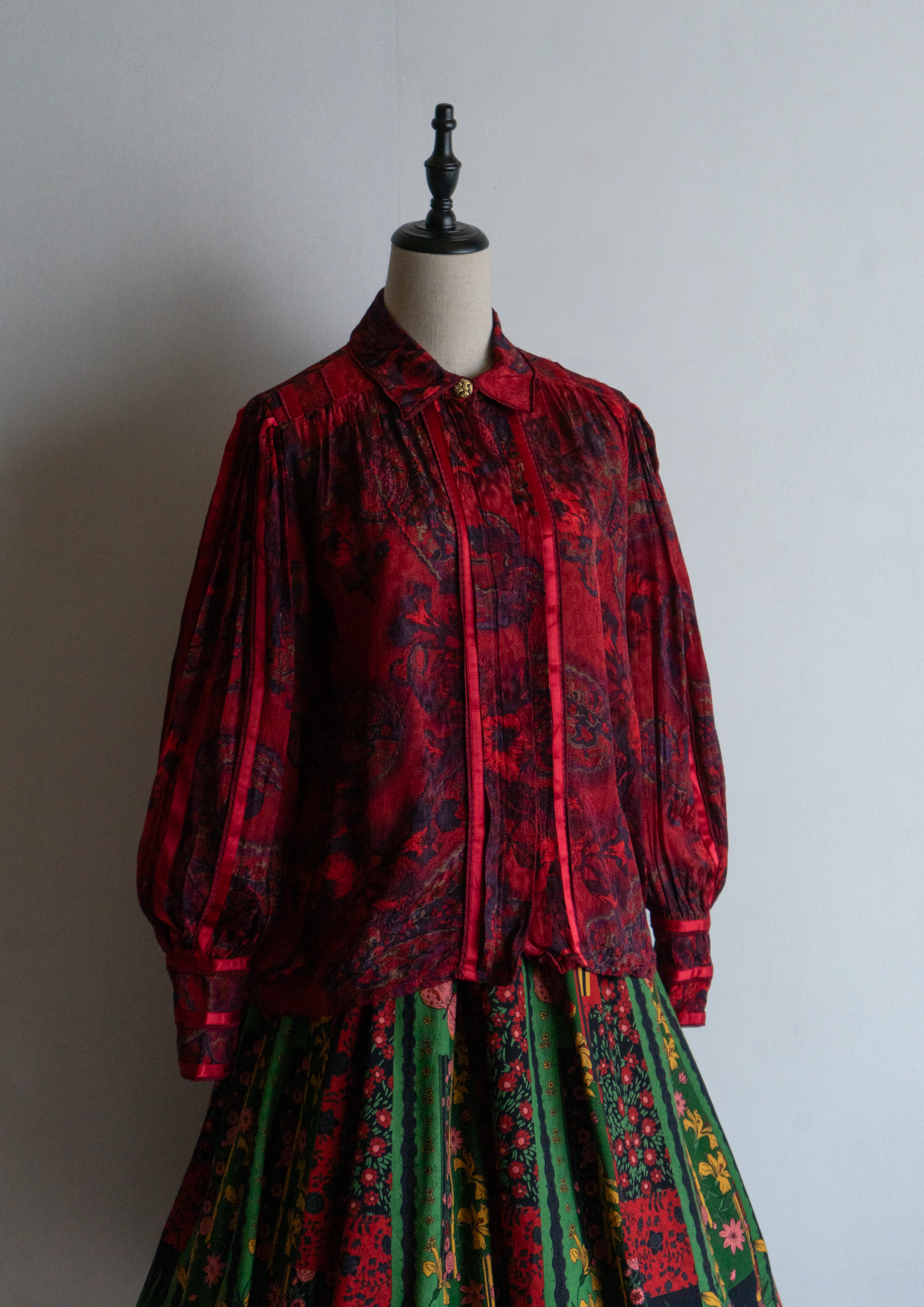 80's Waist Germany Paisley Art Pattern Dark Red Blouse