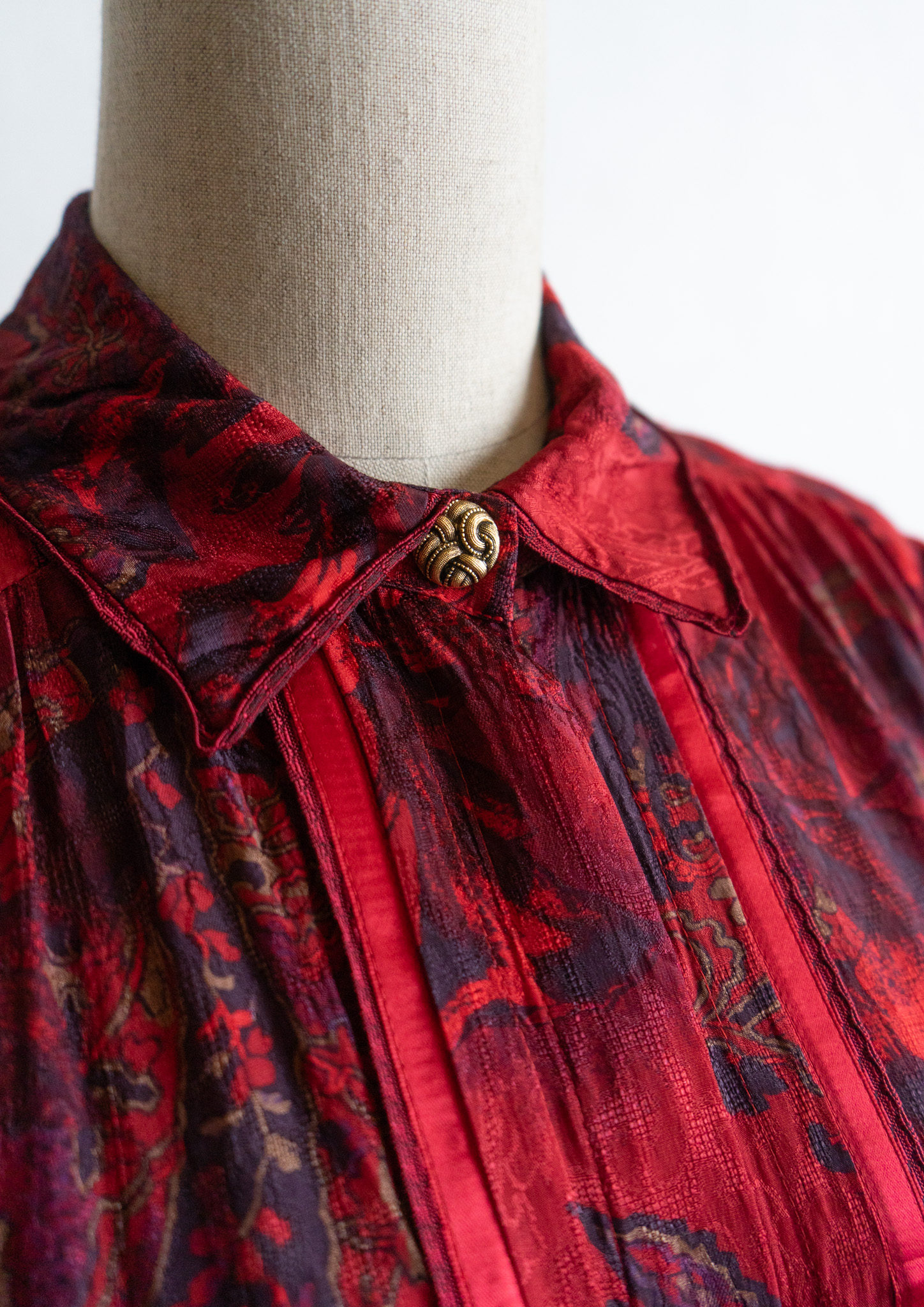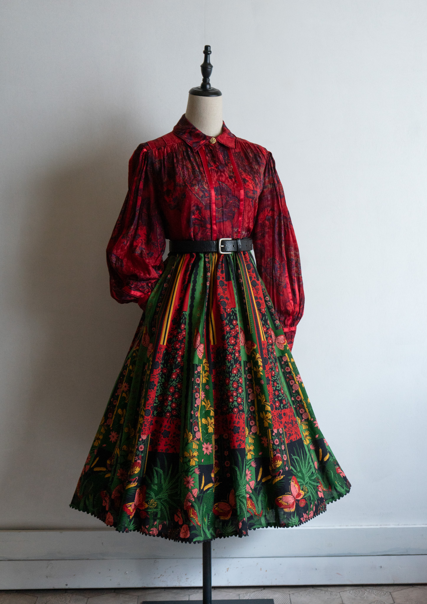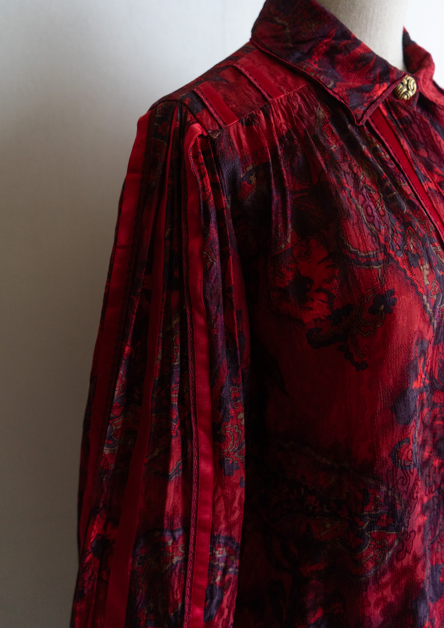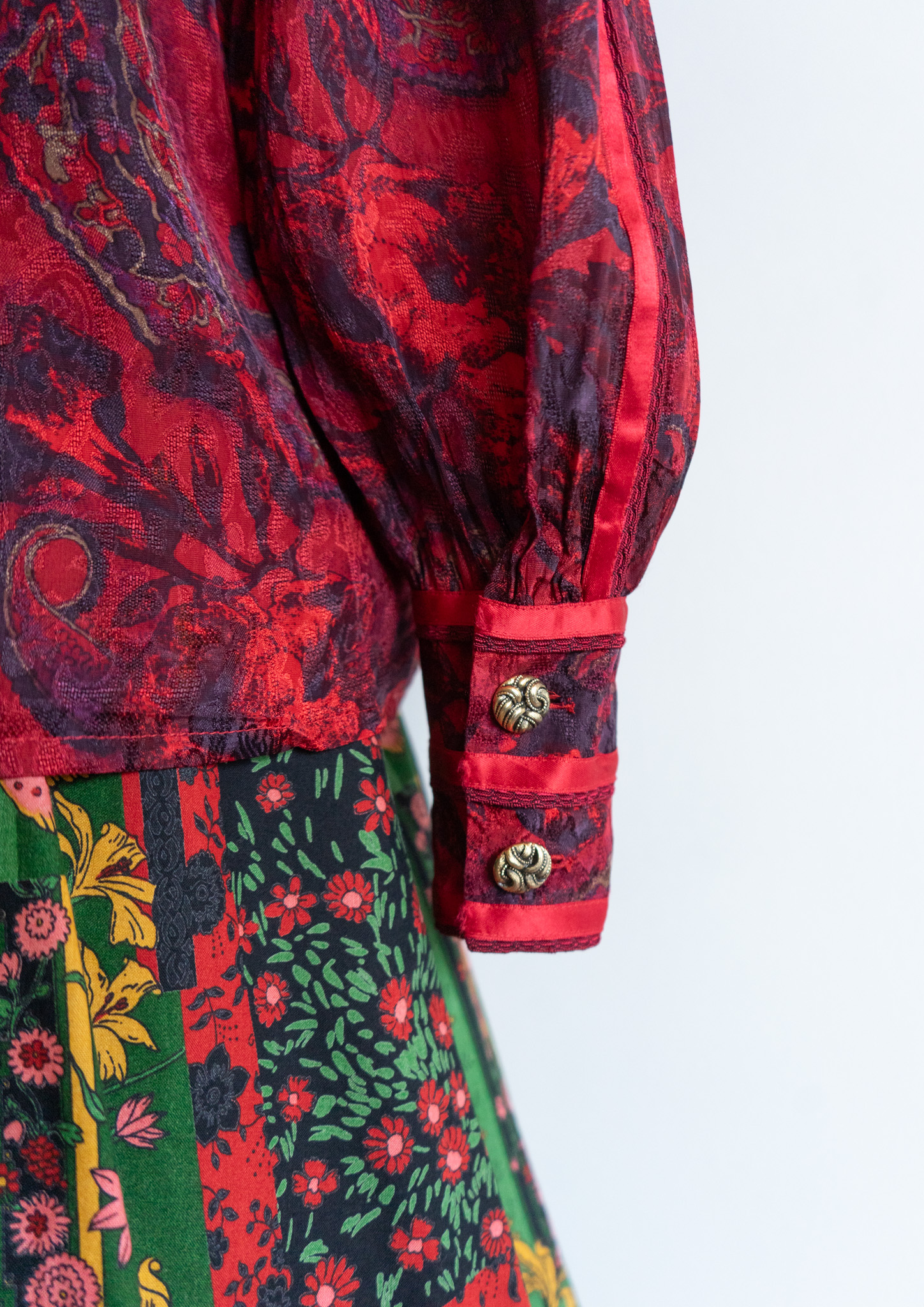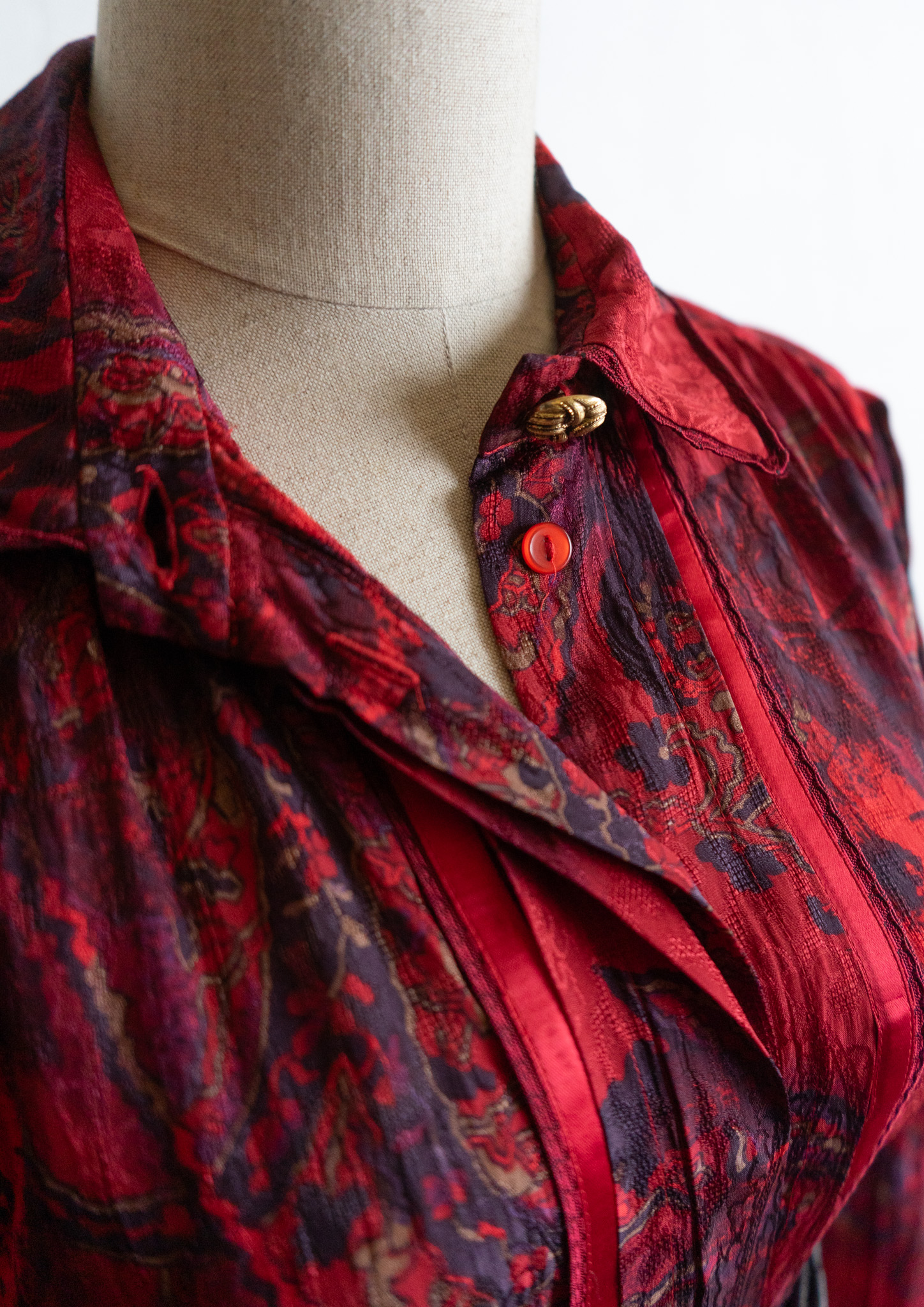 80's Waist Germany Paisley Art Pattern Dark Red Blouse