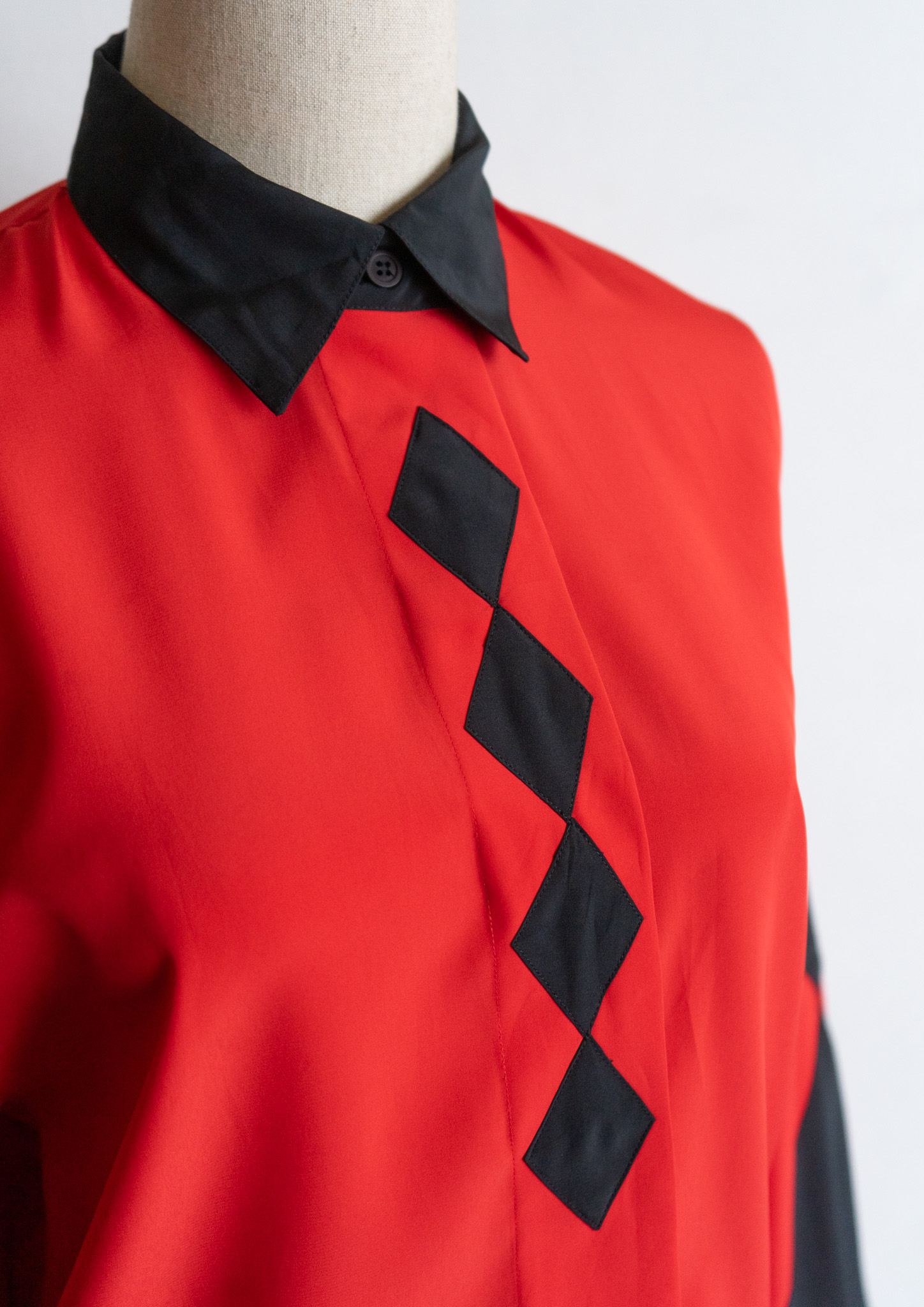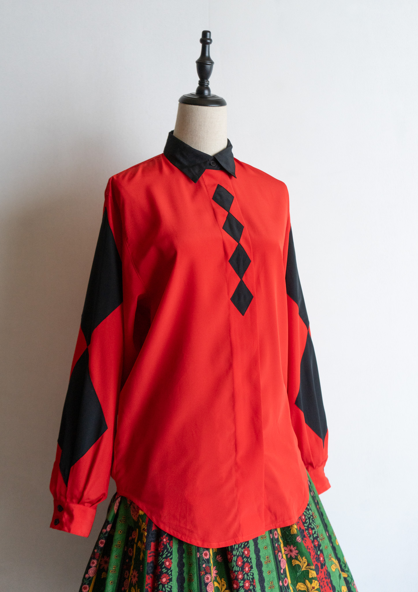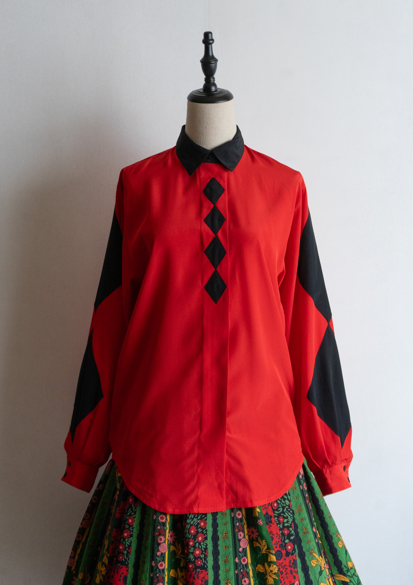 90's Diamond Design Red × Black Bucolor Blouse