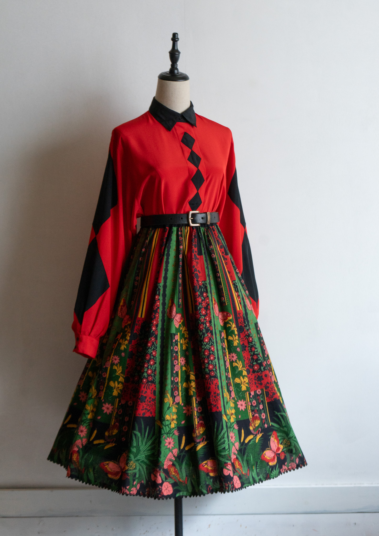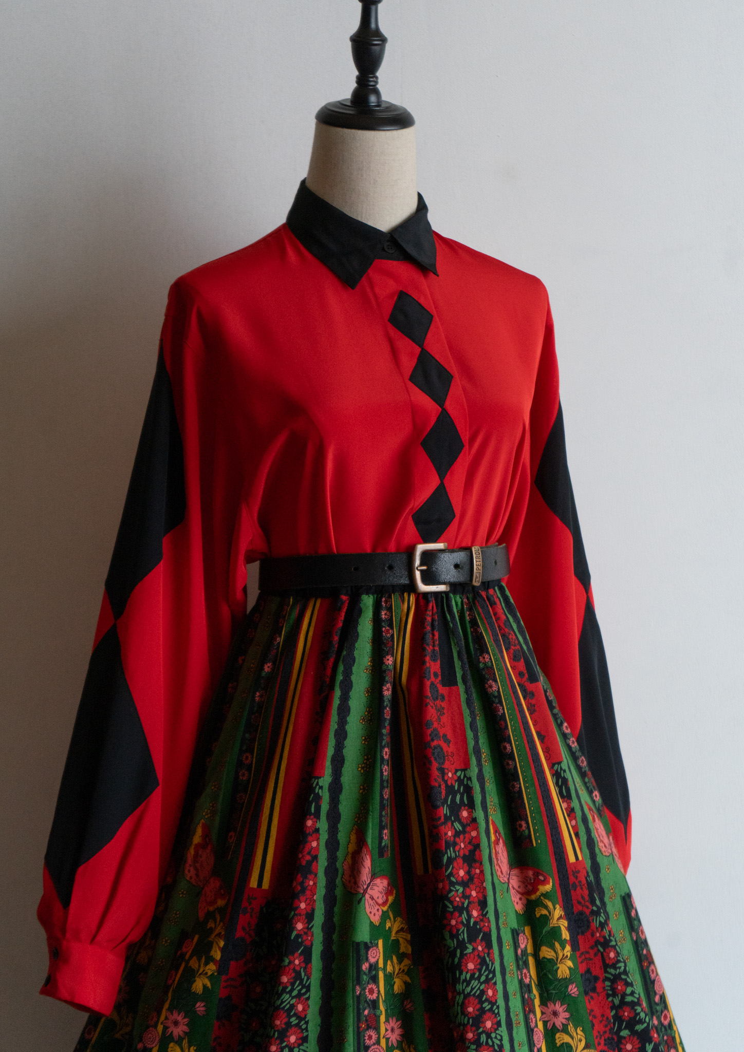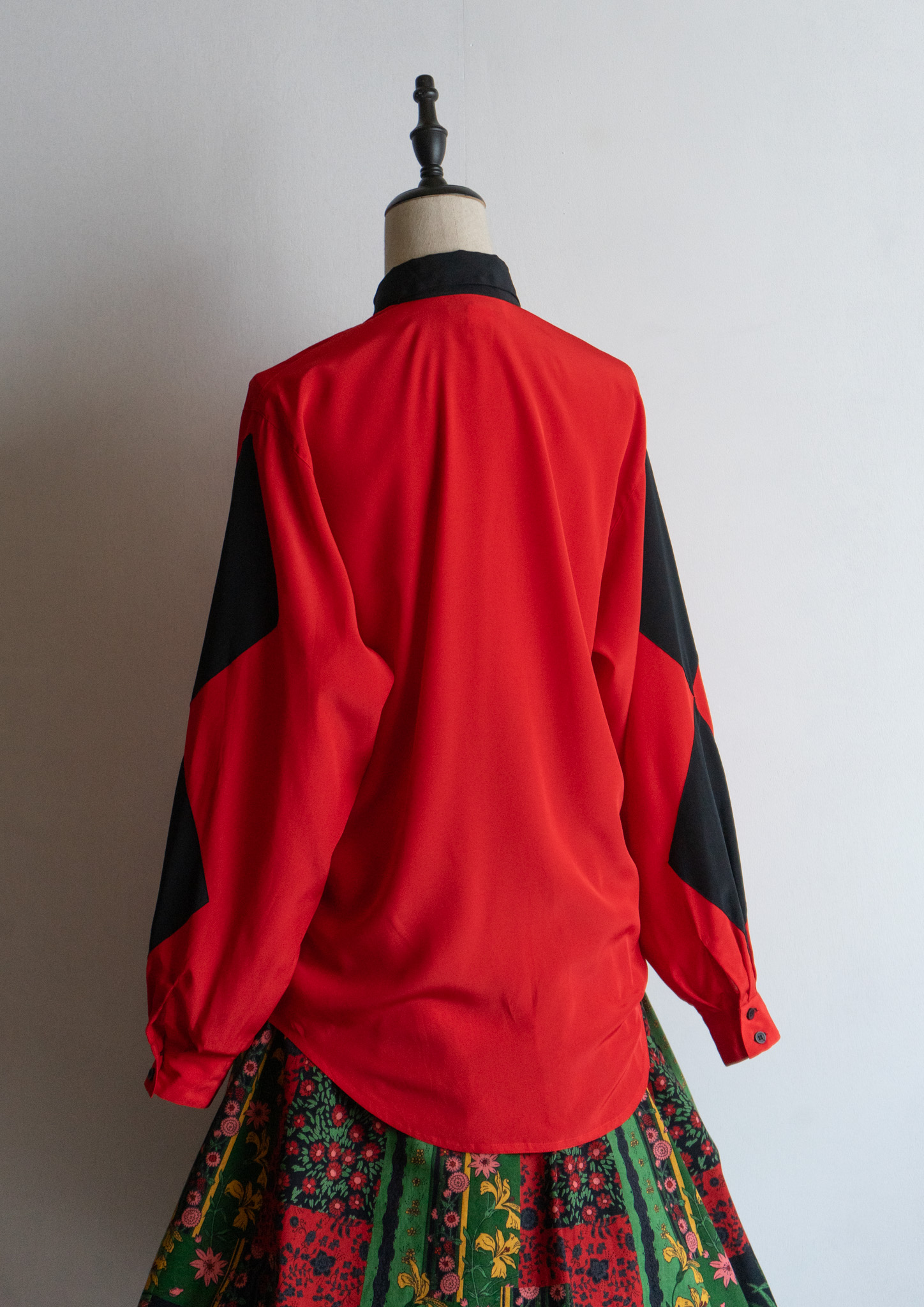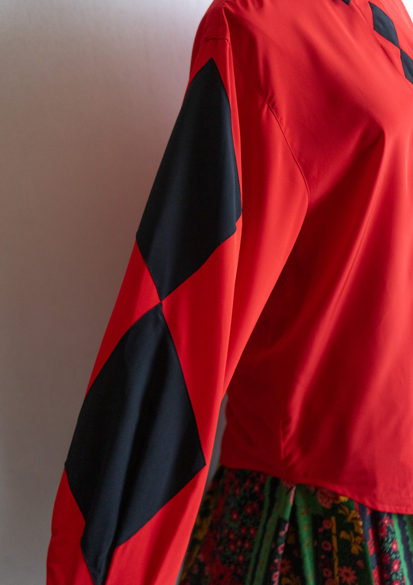 90's Diamond Design Red × Black Bucolor Blouse