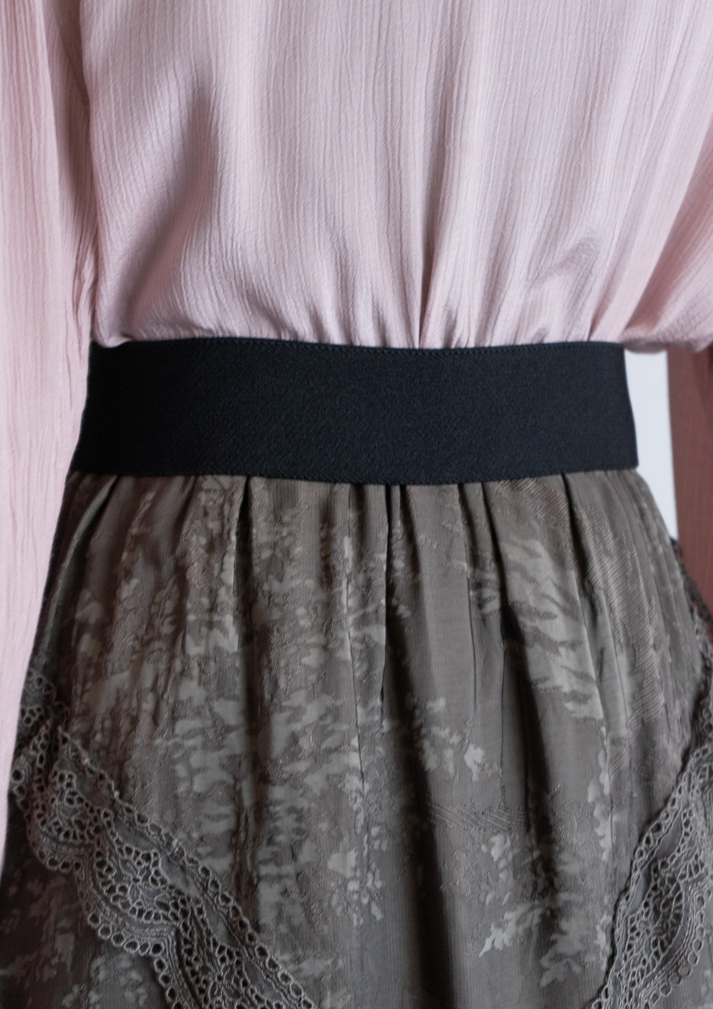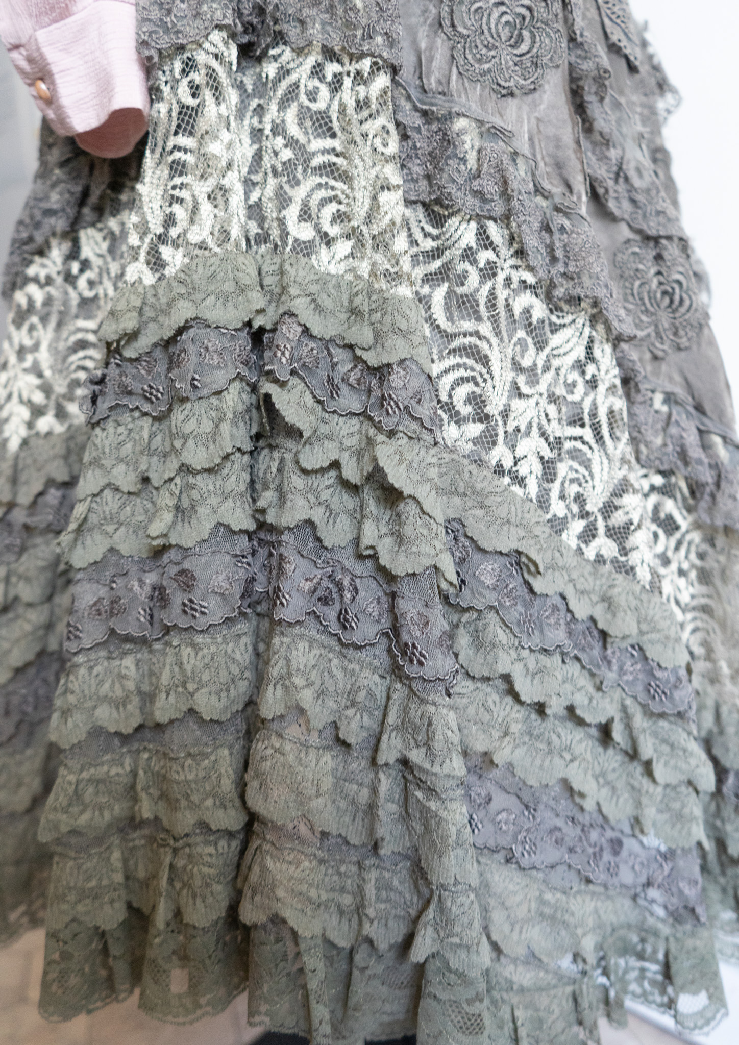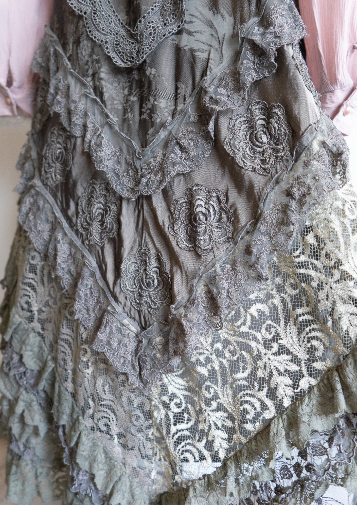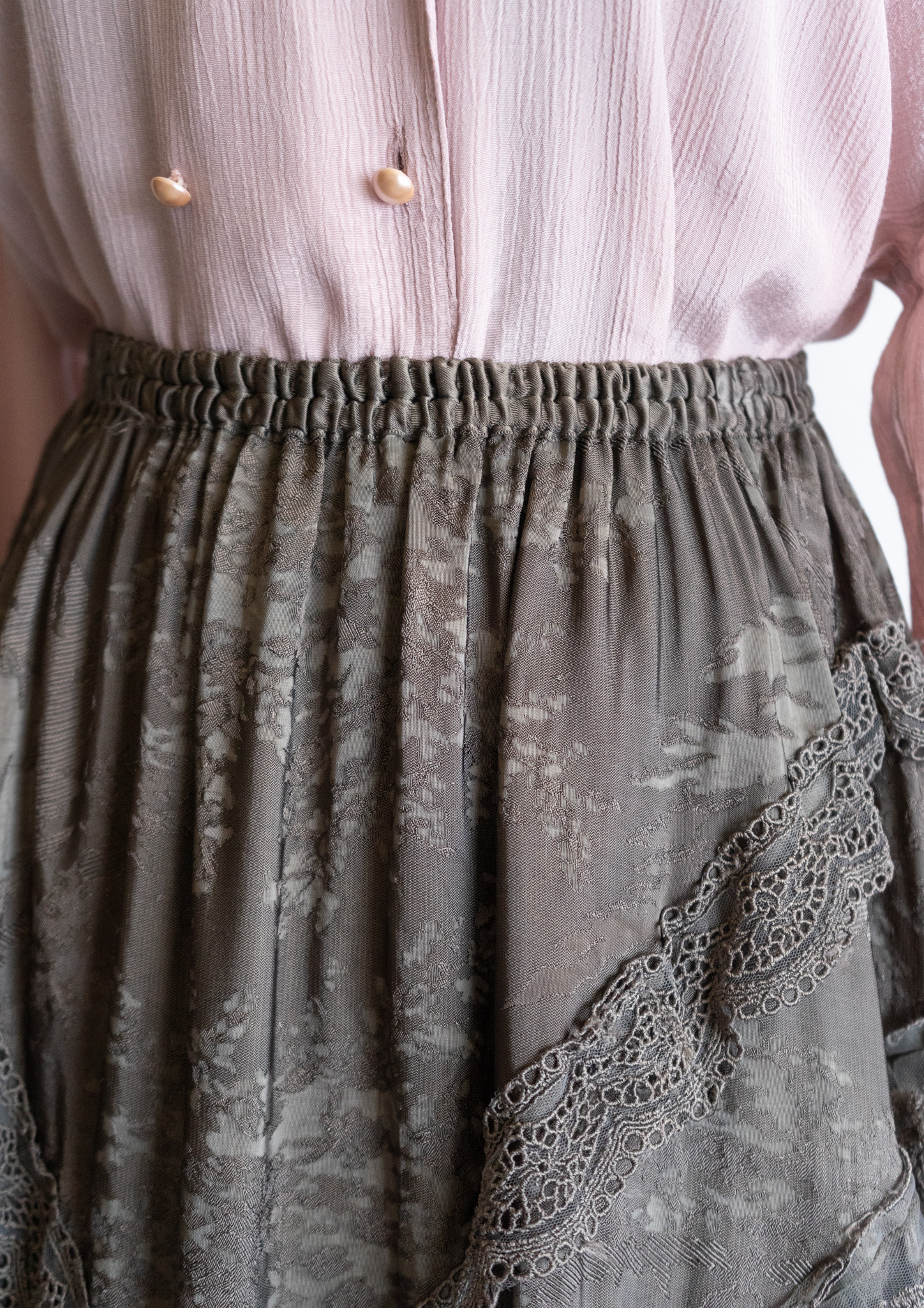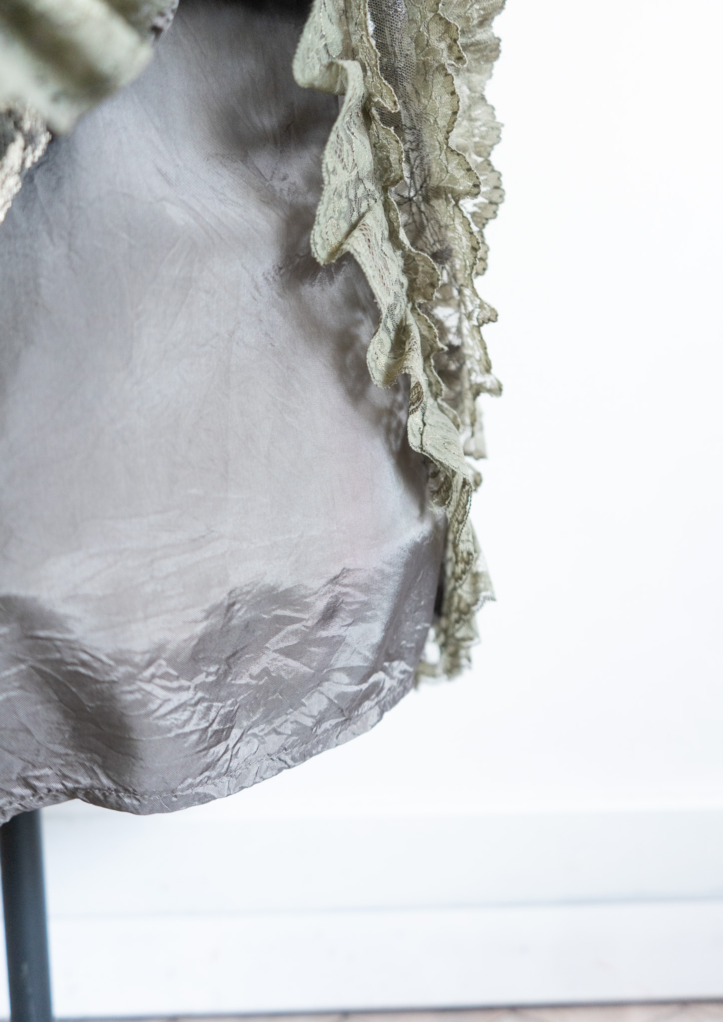 80's Flower Lace Tiered Olive Skirt