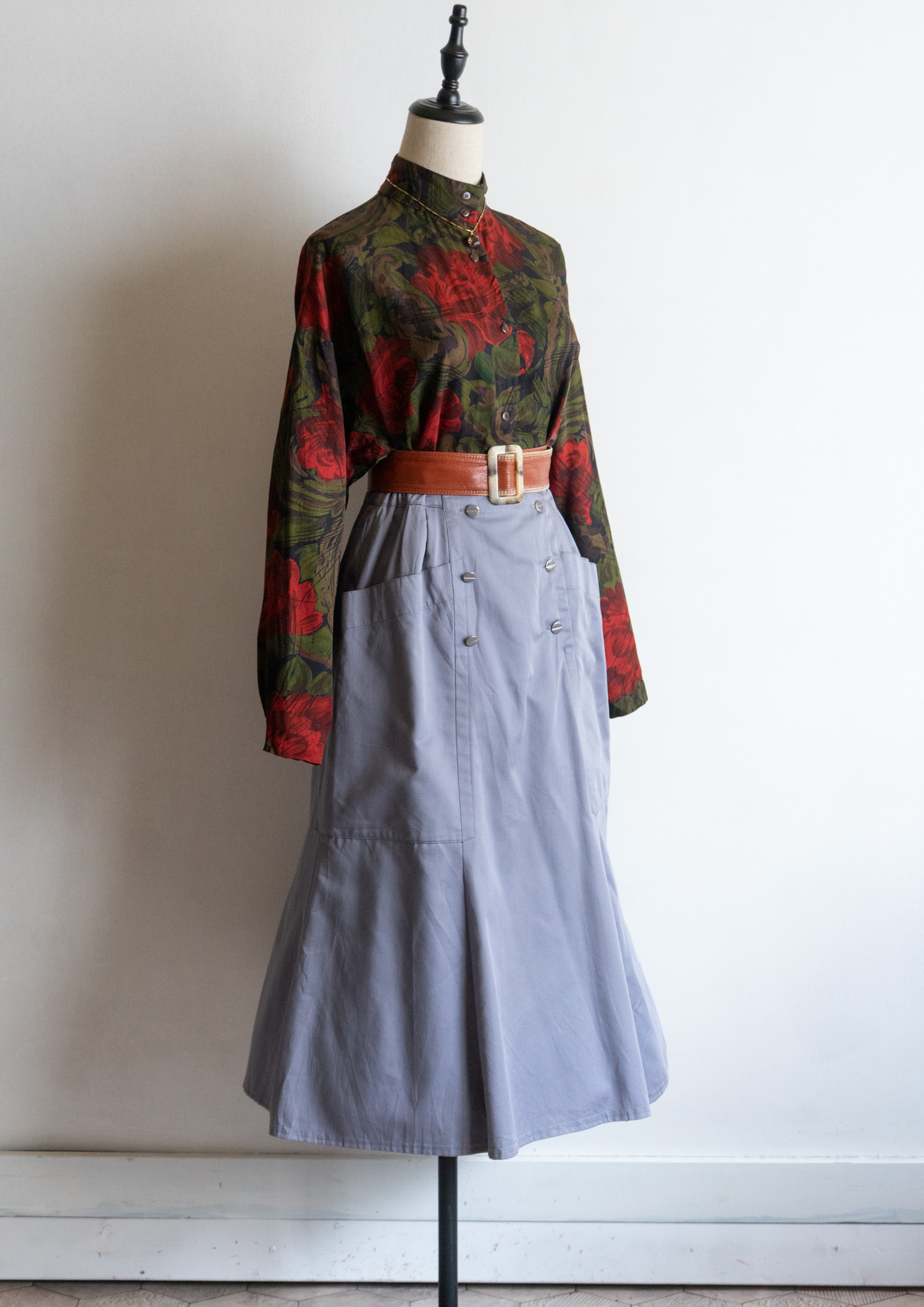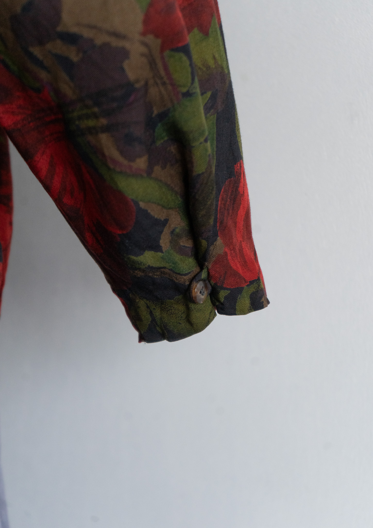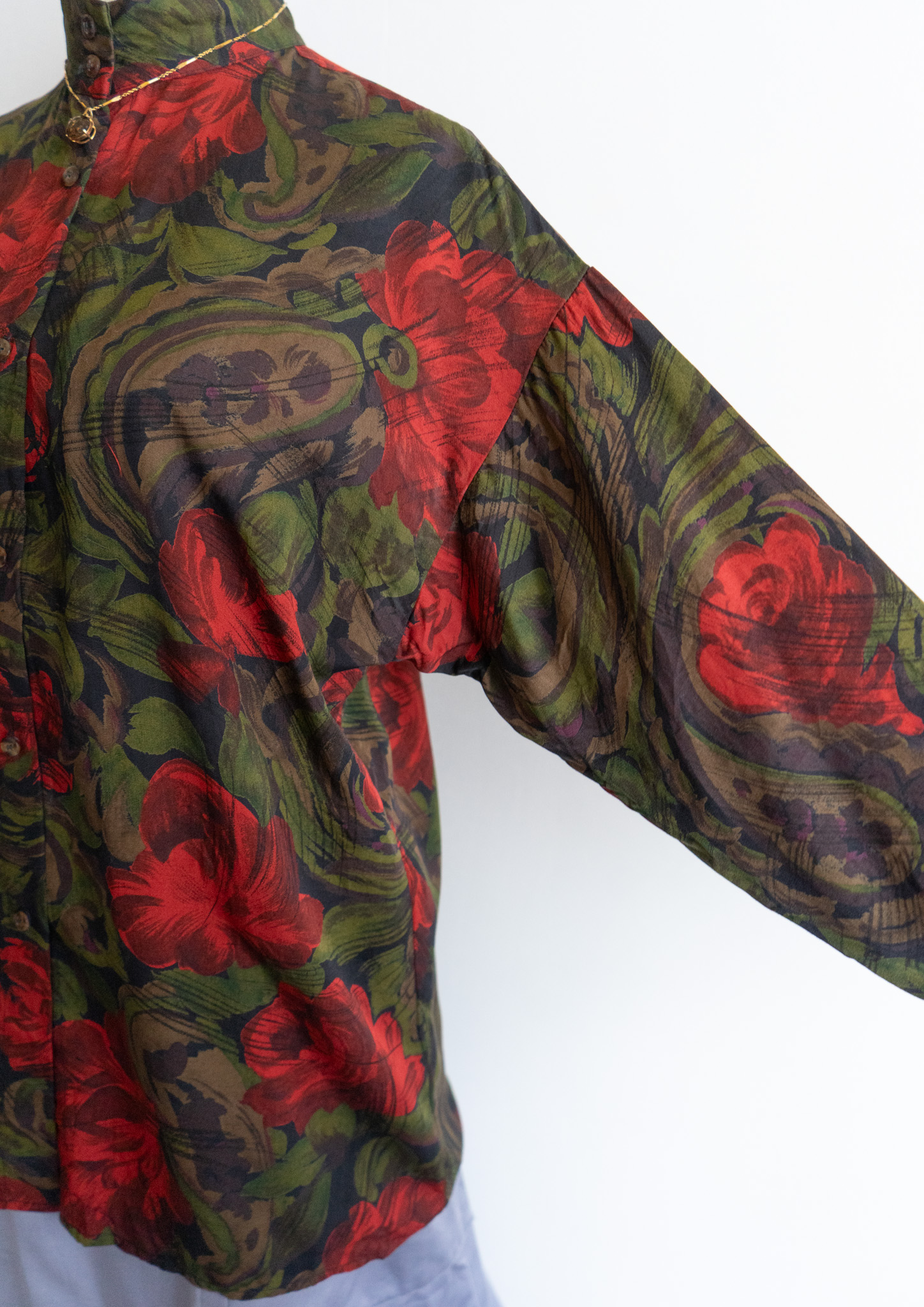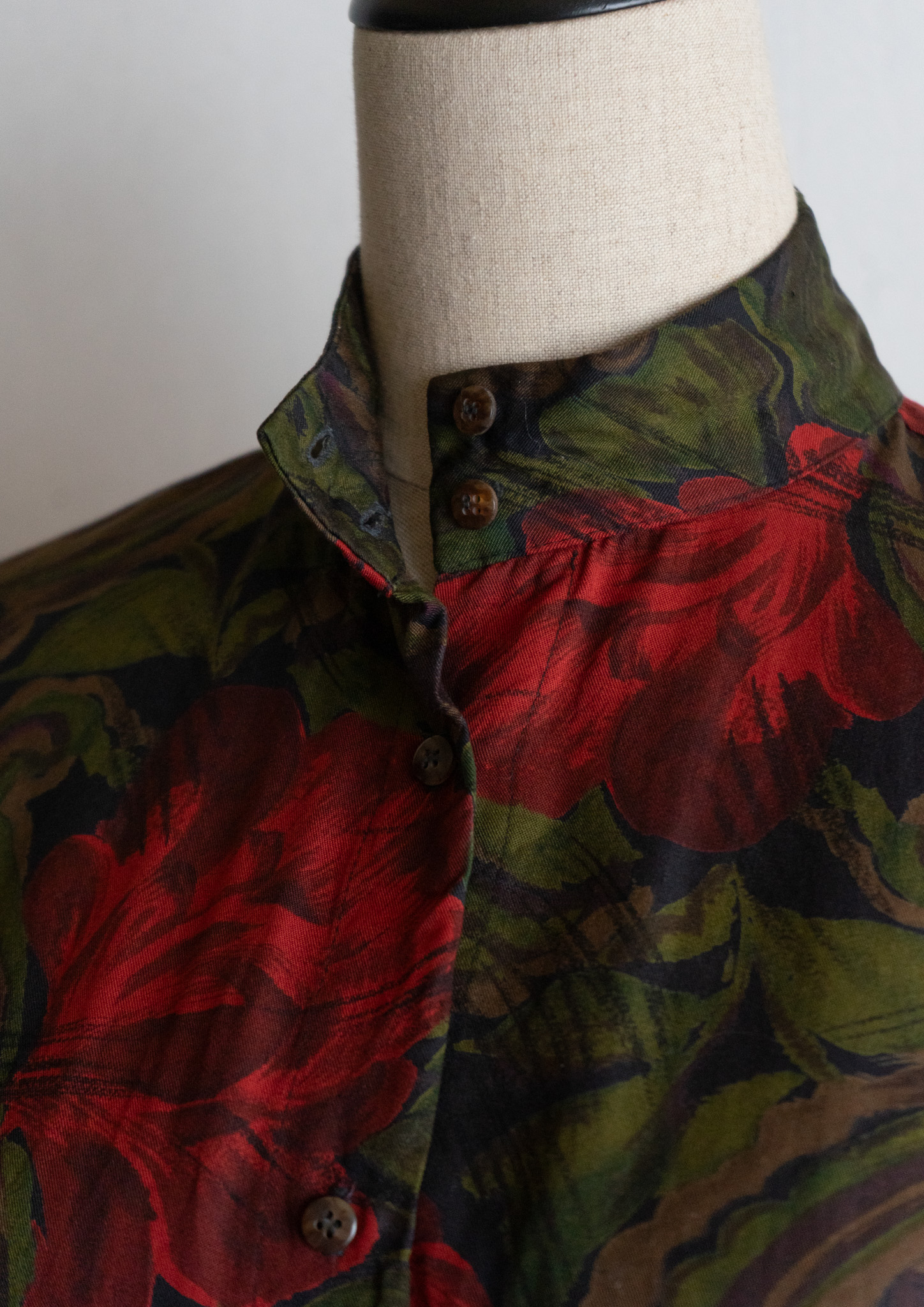 70~80's USA Botanical Pattern Stand Collar Blouse