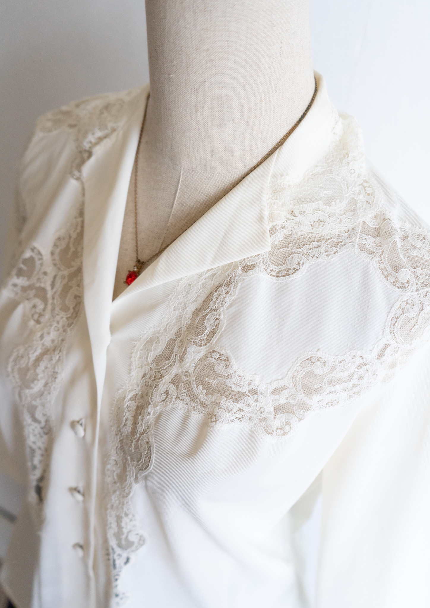 60's Euro Point Lace Ivory Vintage Blouse