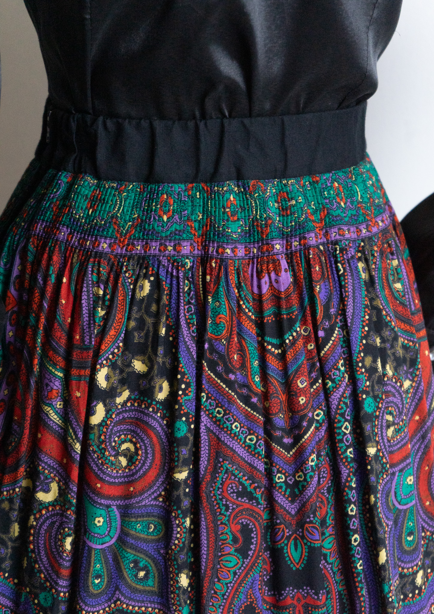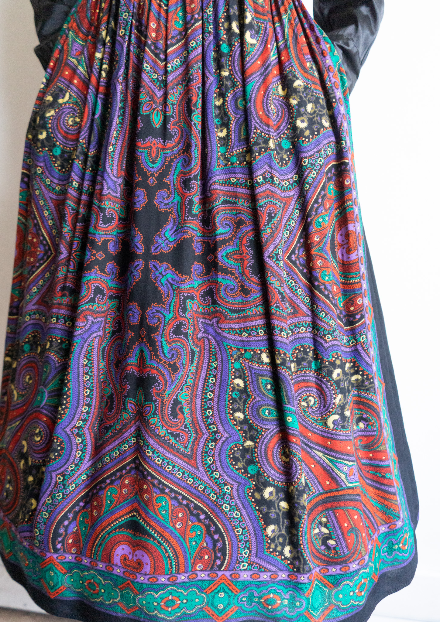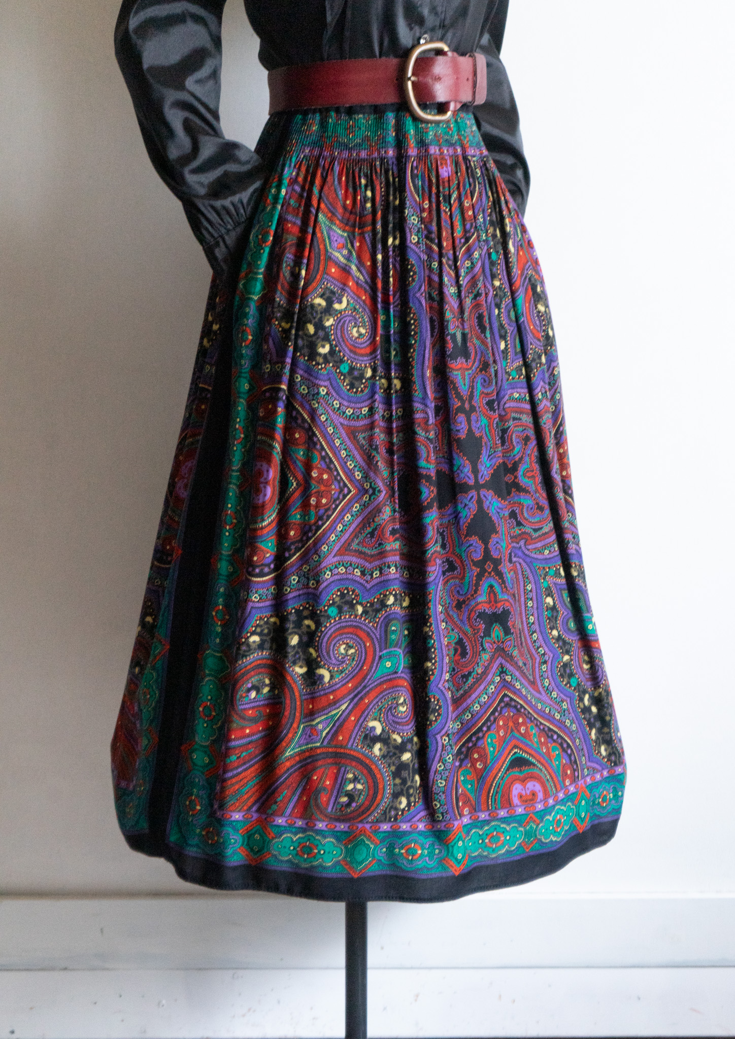 80~90's Paisley Pattern Black Tyrol Skirt