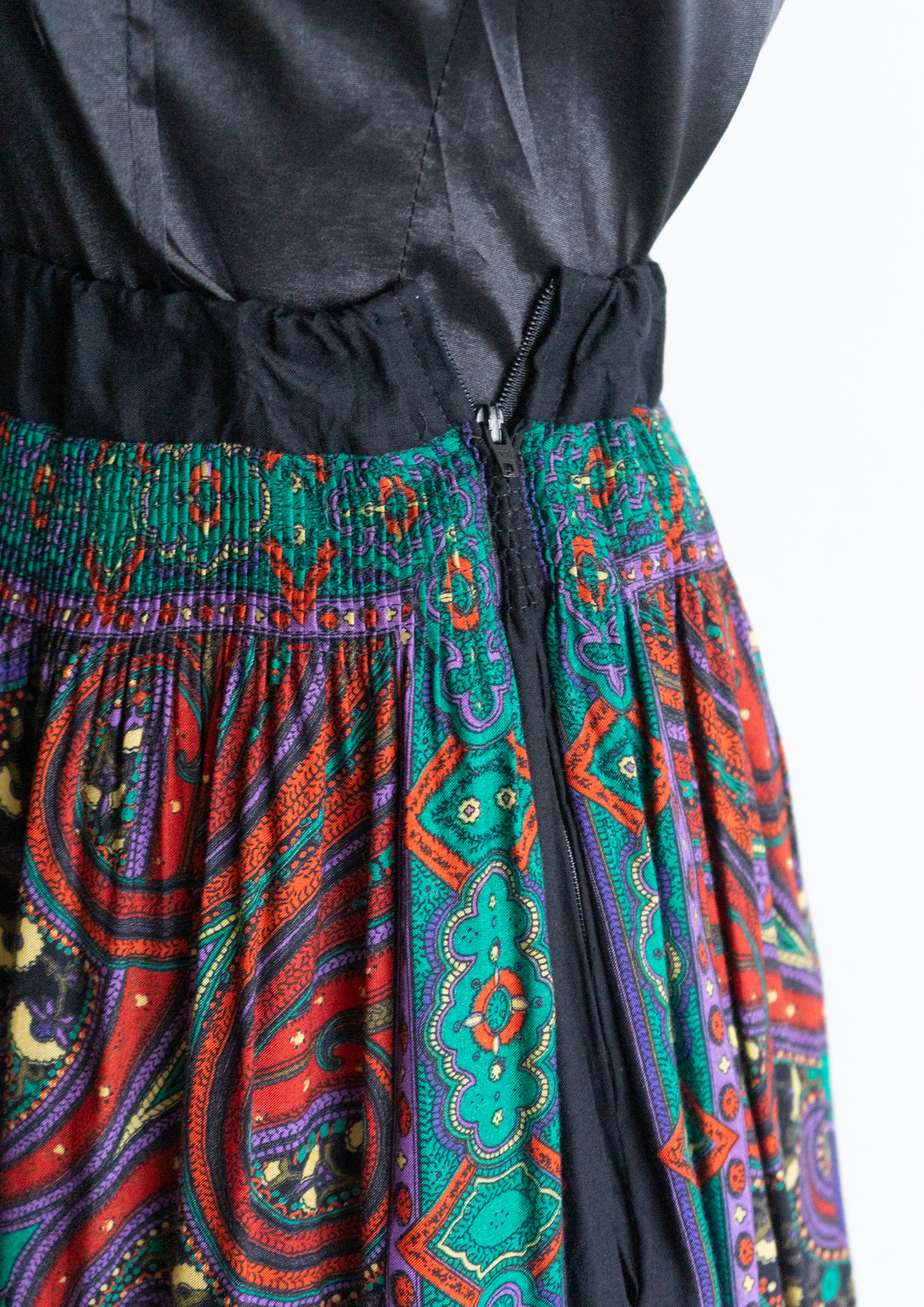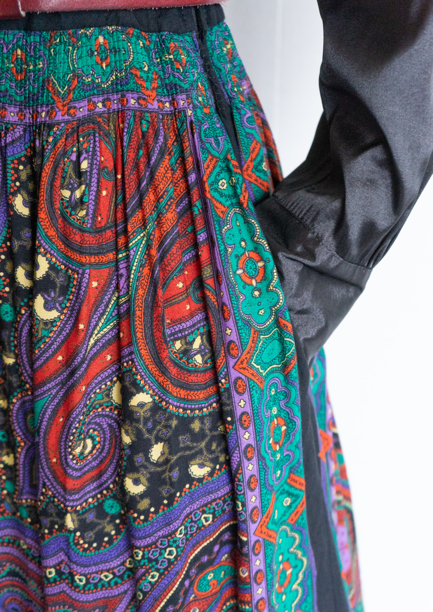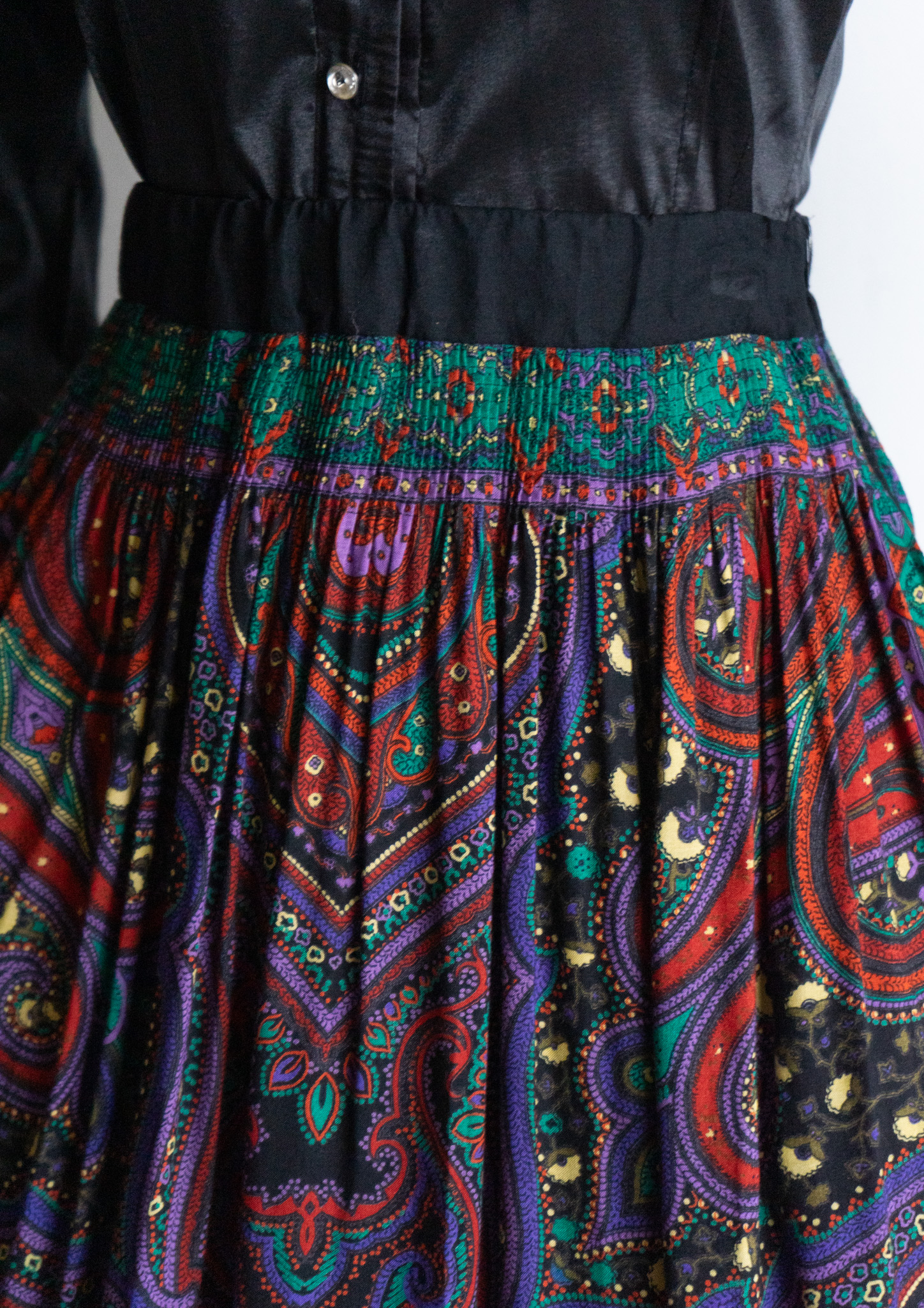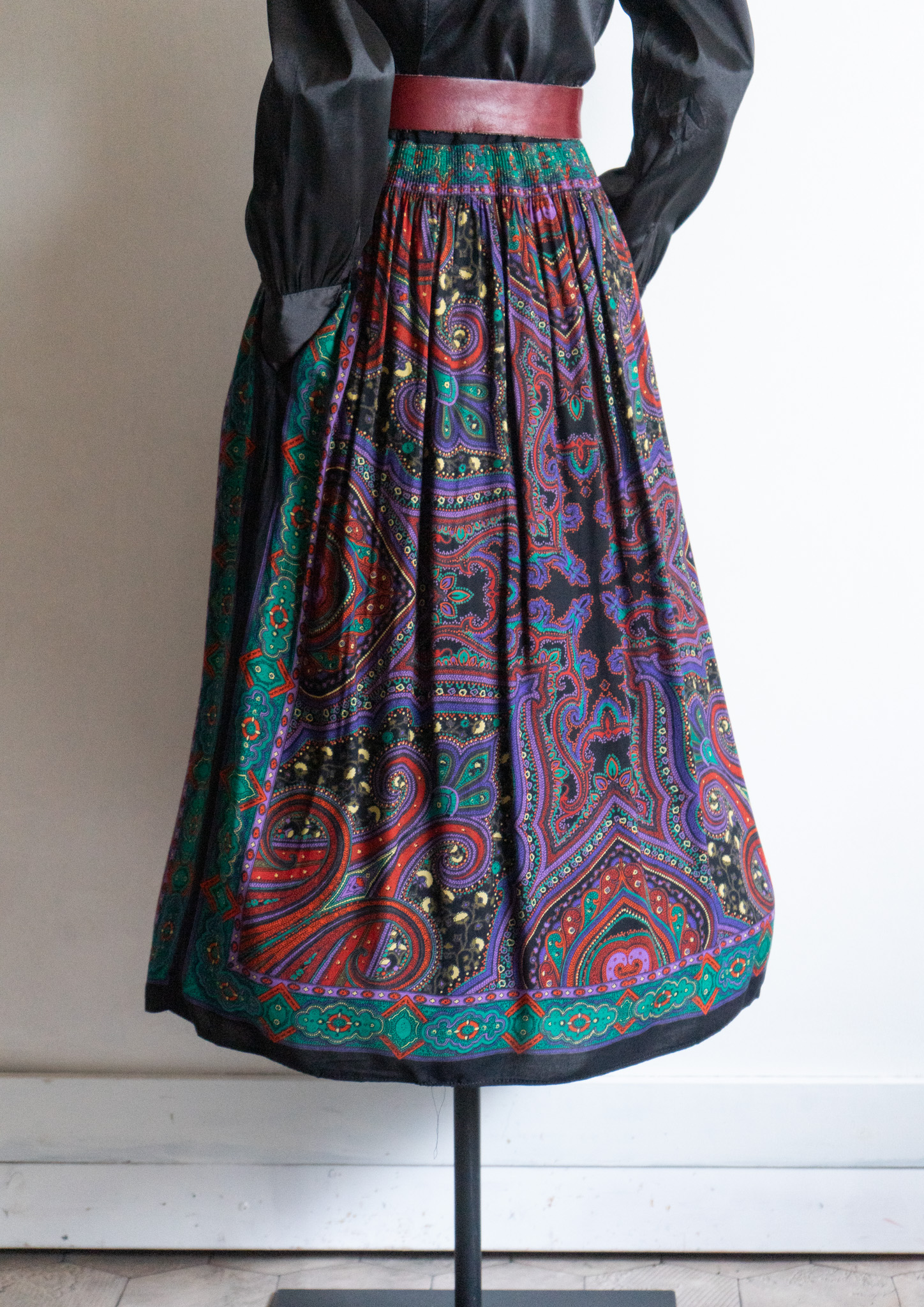 80~90's Paisley Pattern Black Tyrol Skirt