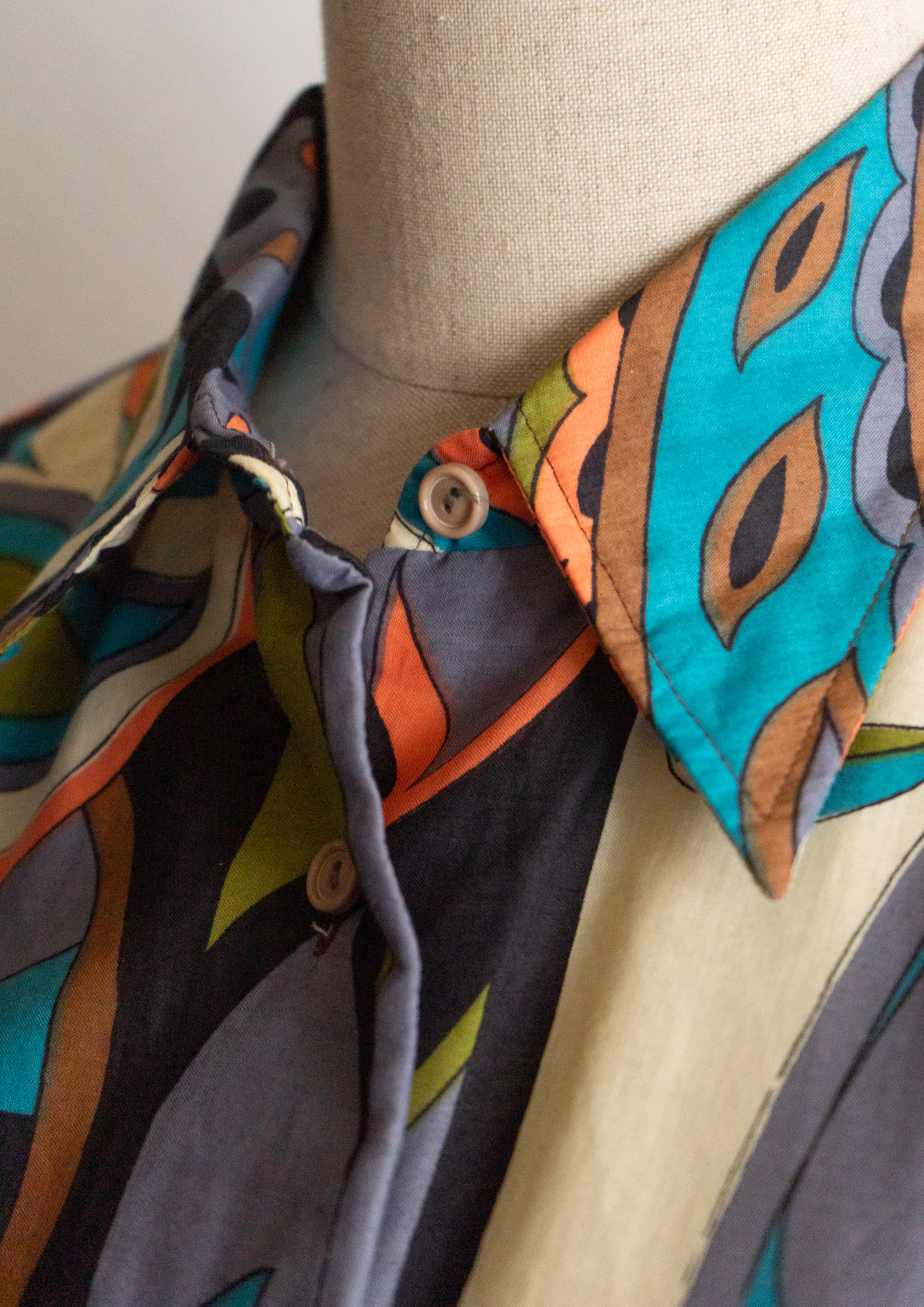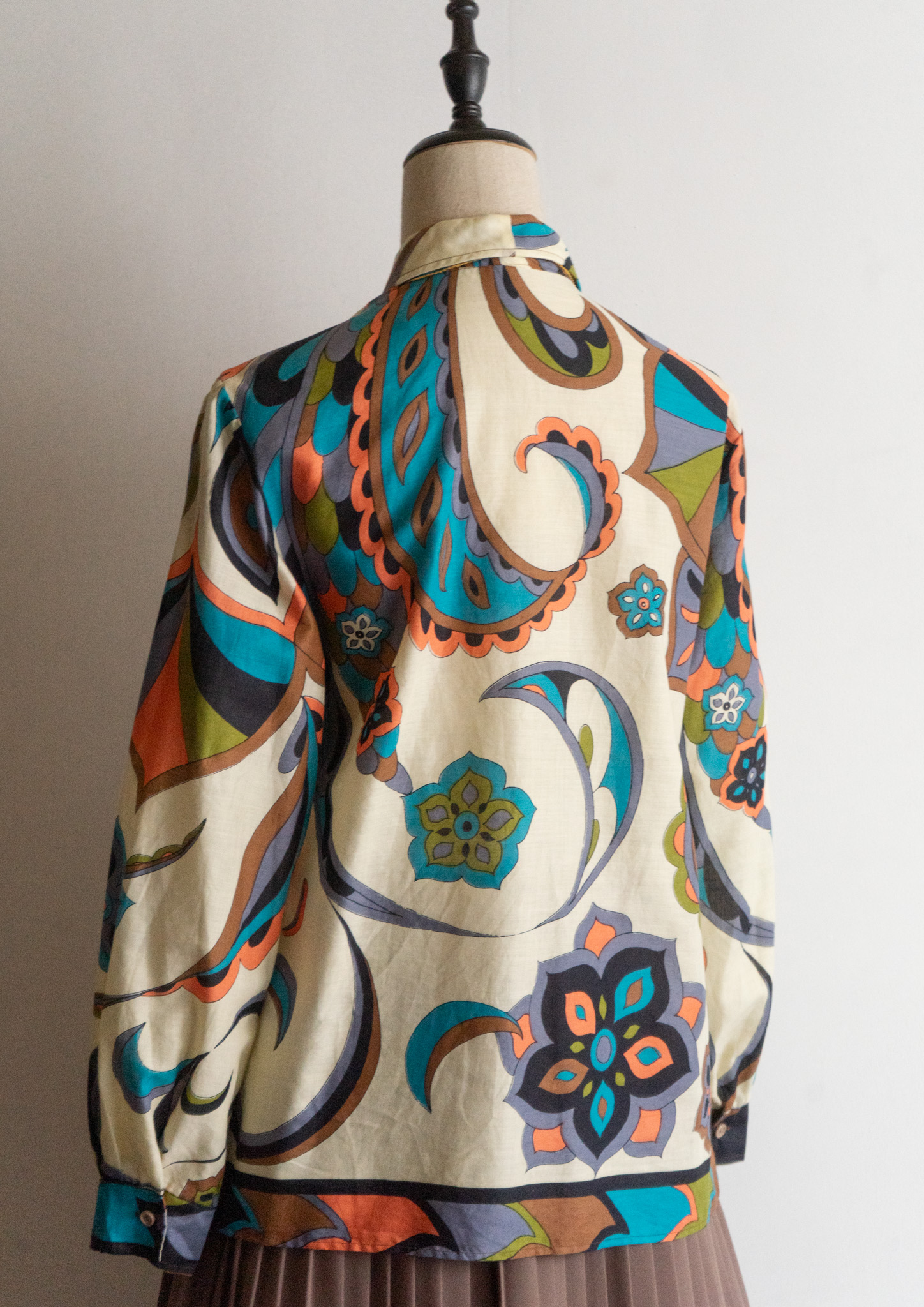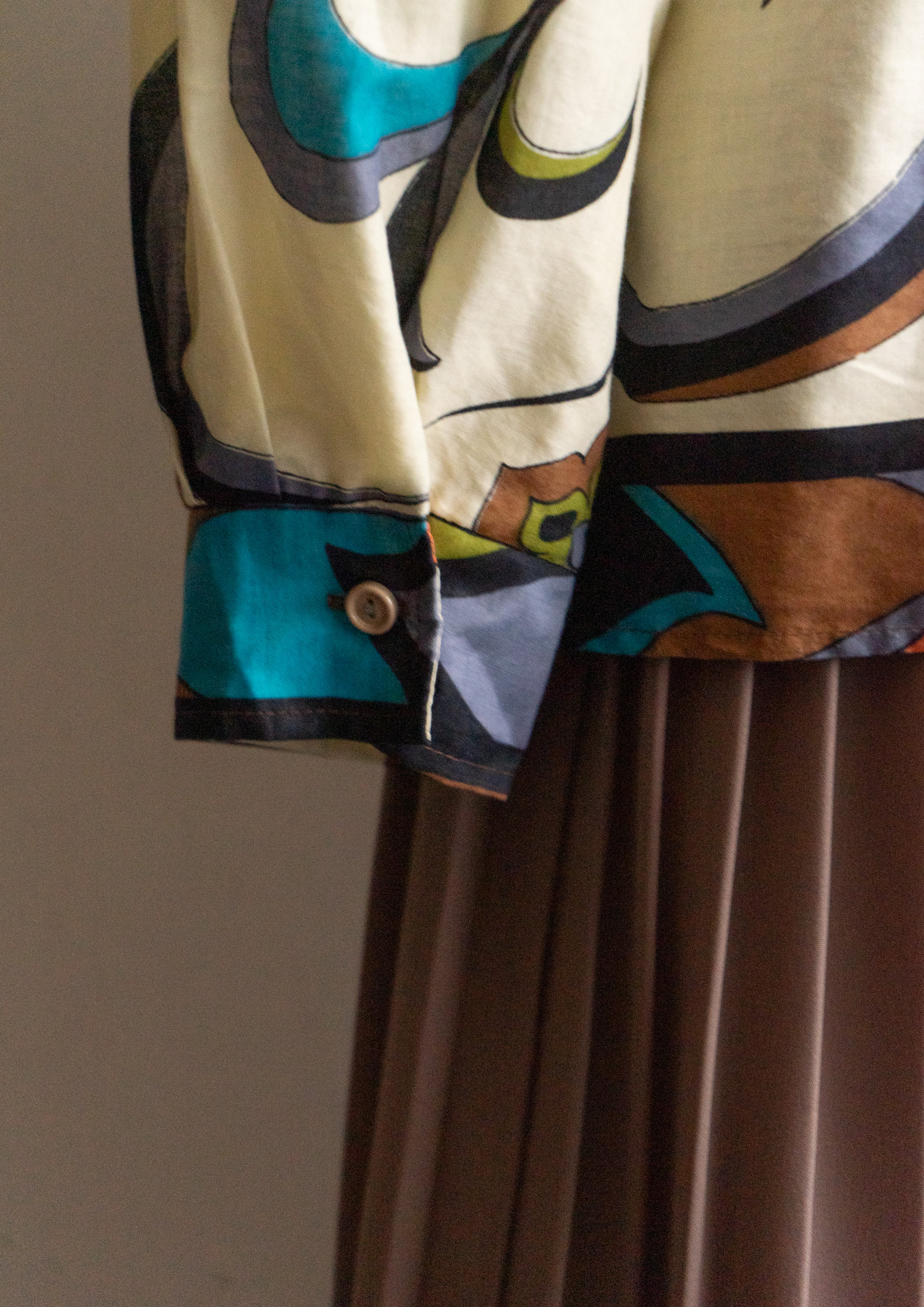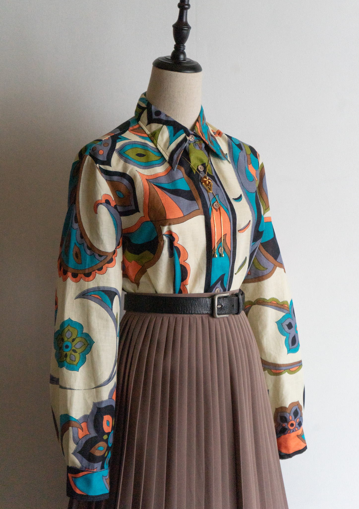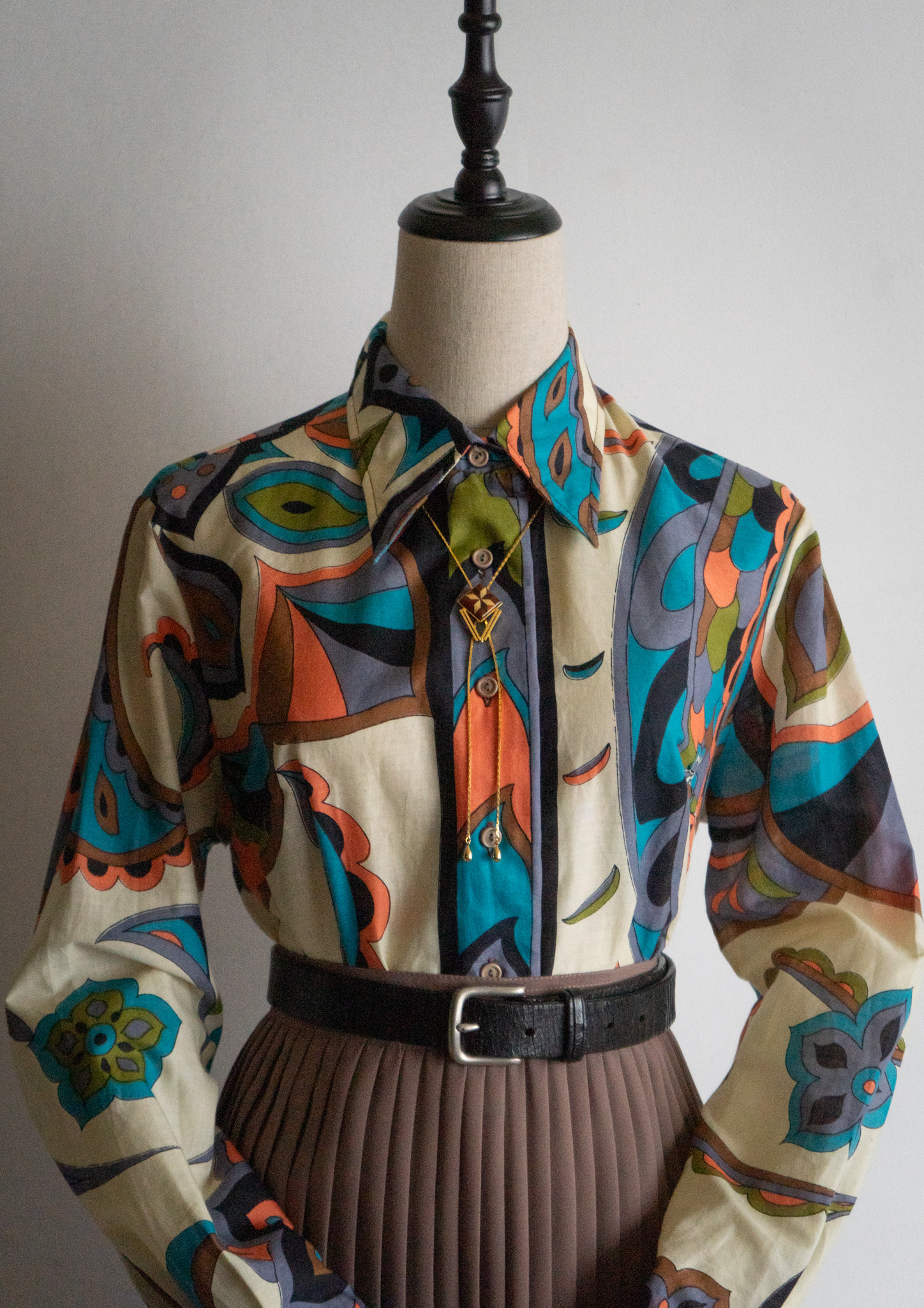 90's Stained glass Like Art Pattern Autumn Color Blouse
