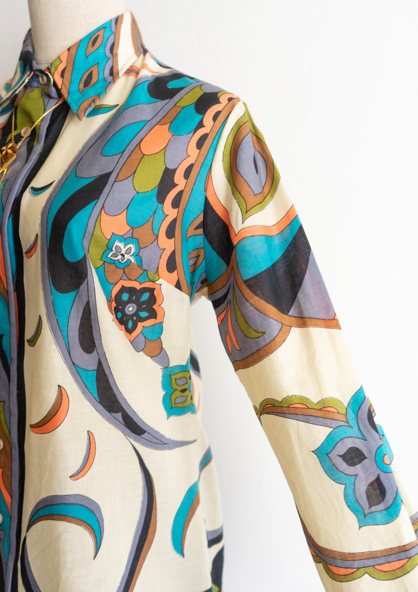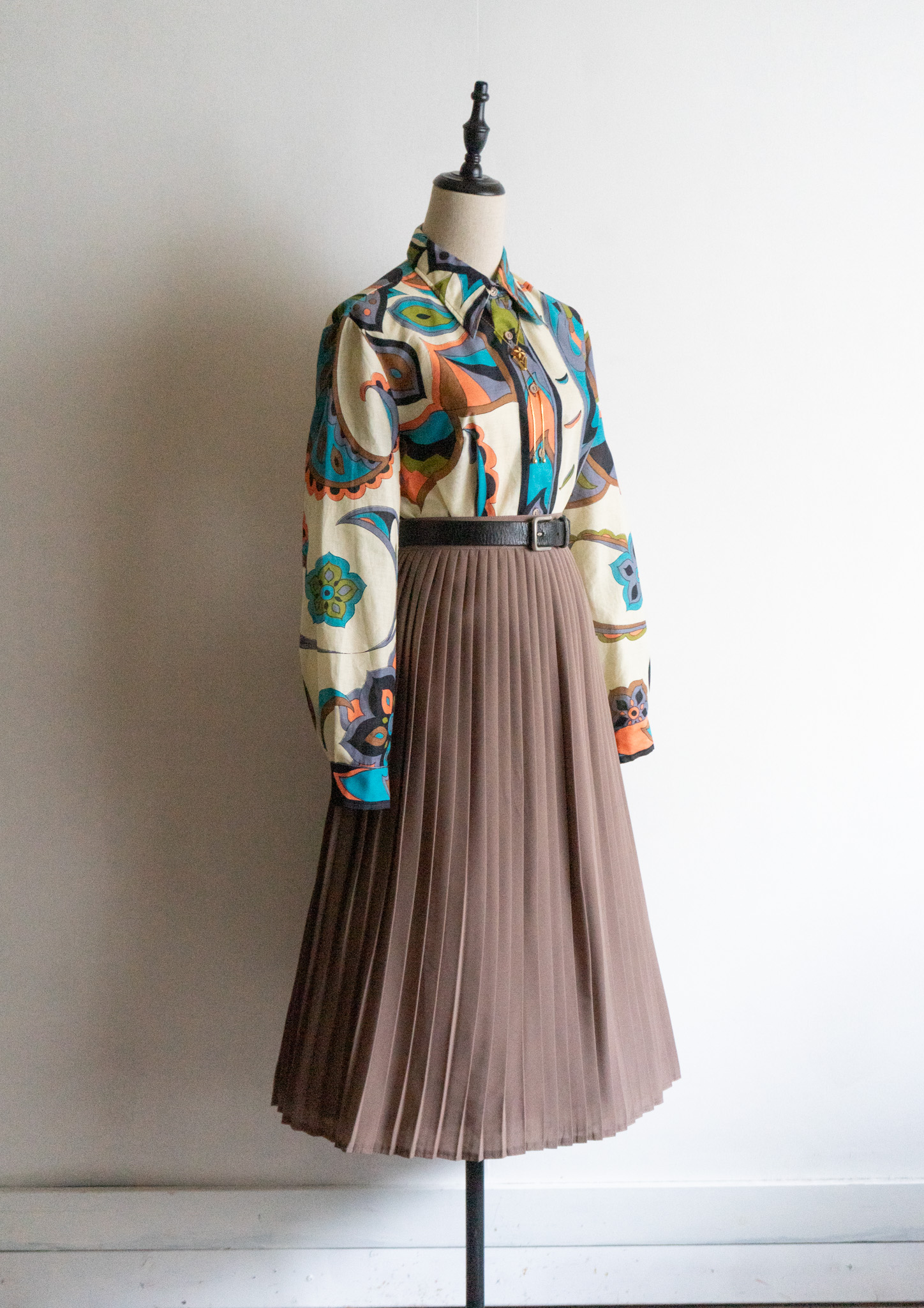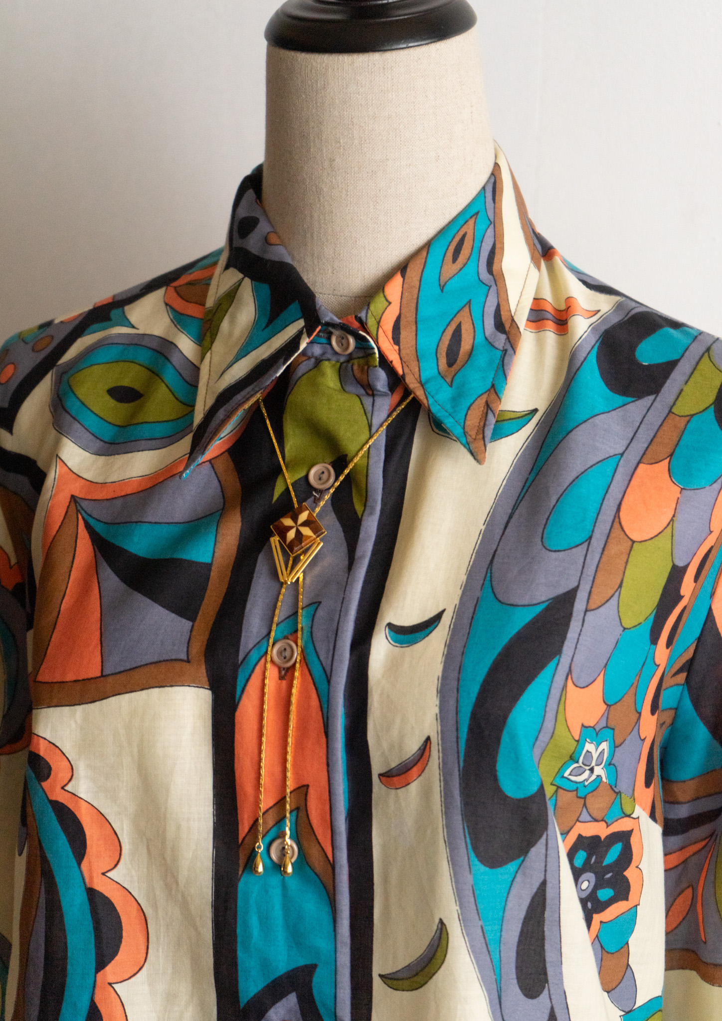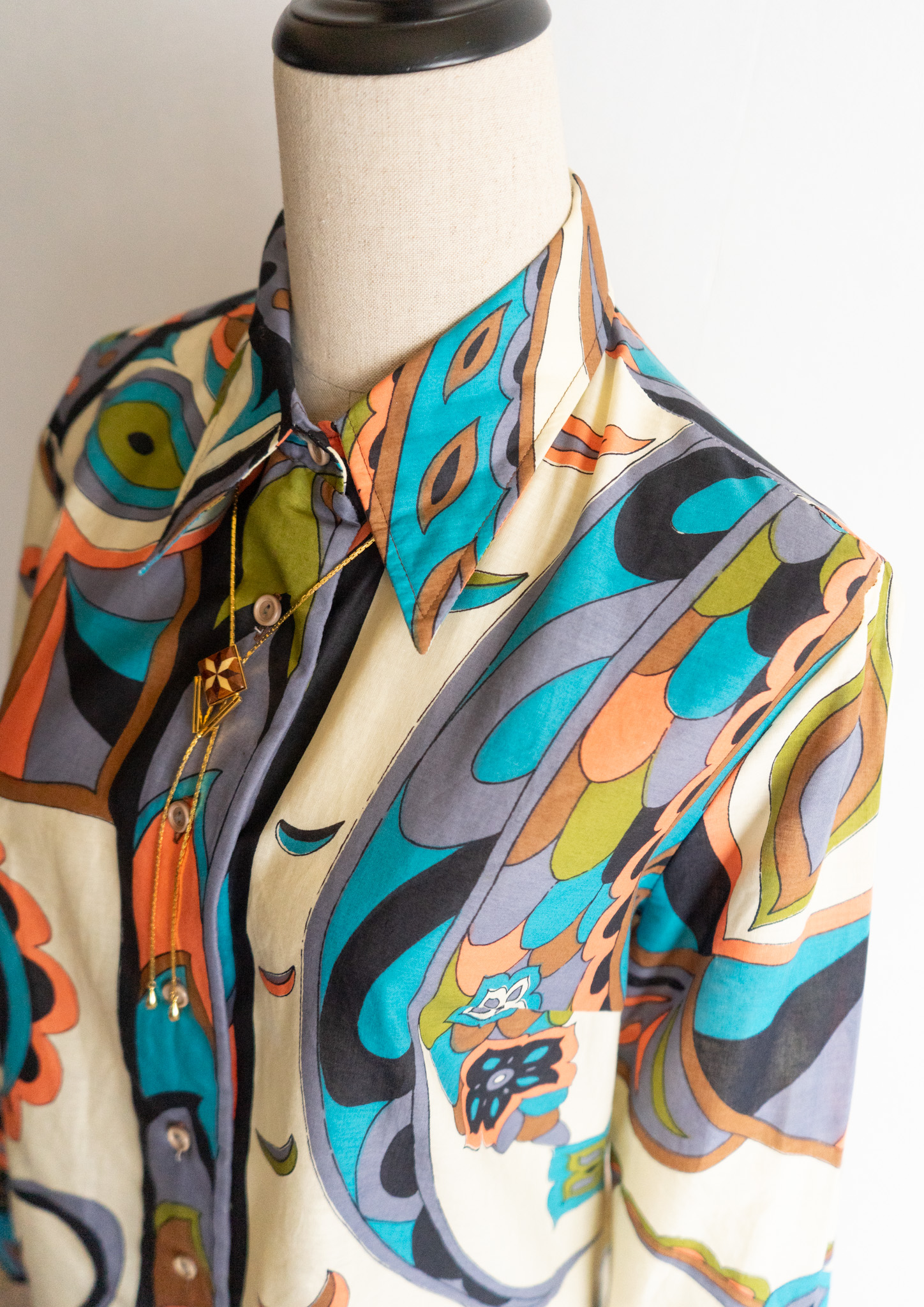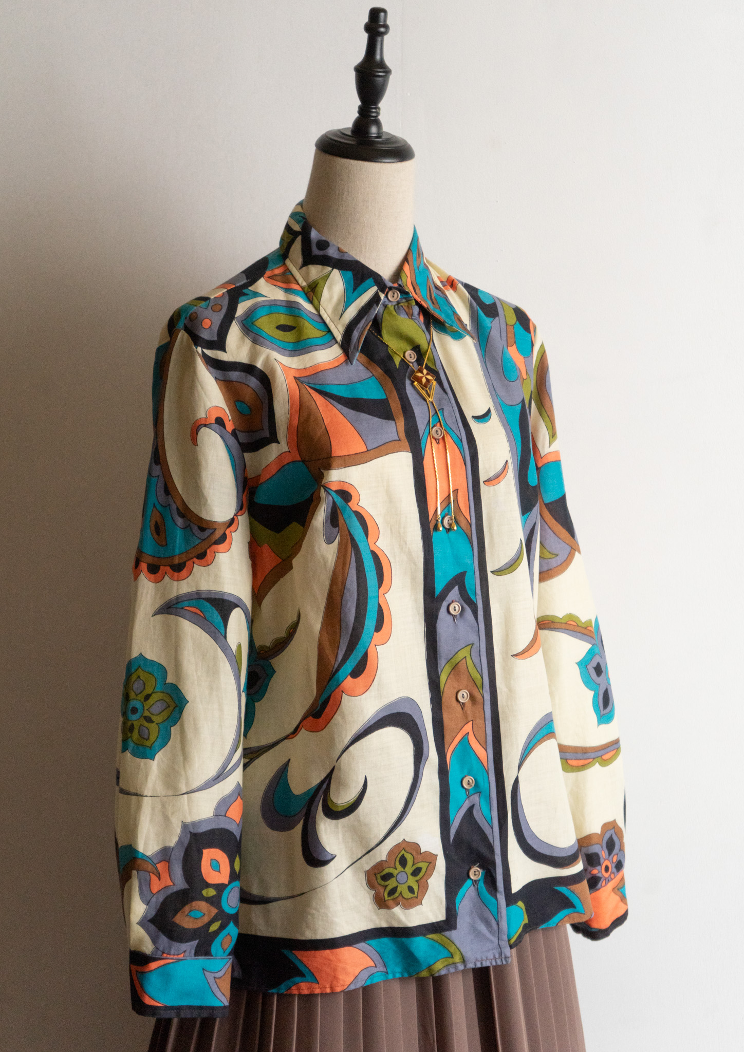 90's Stained glass Like Art Pattern Autumn Color Blouse