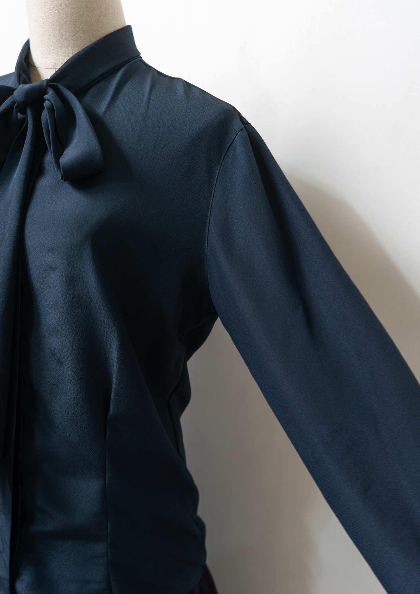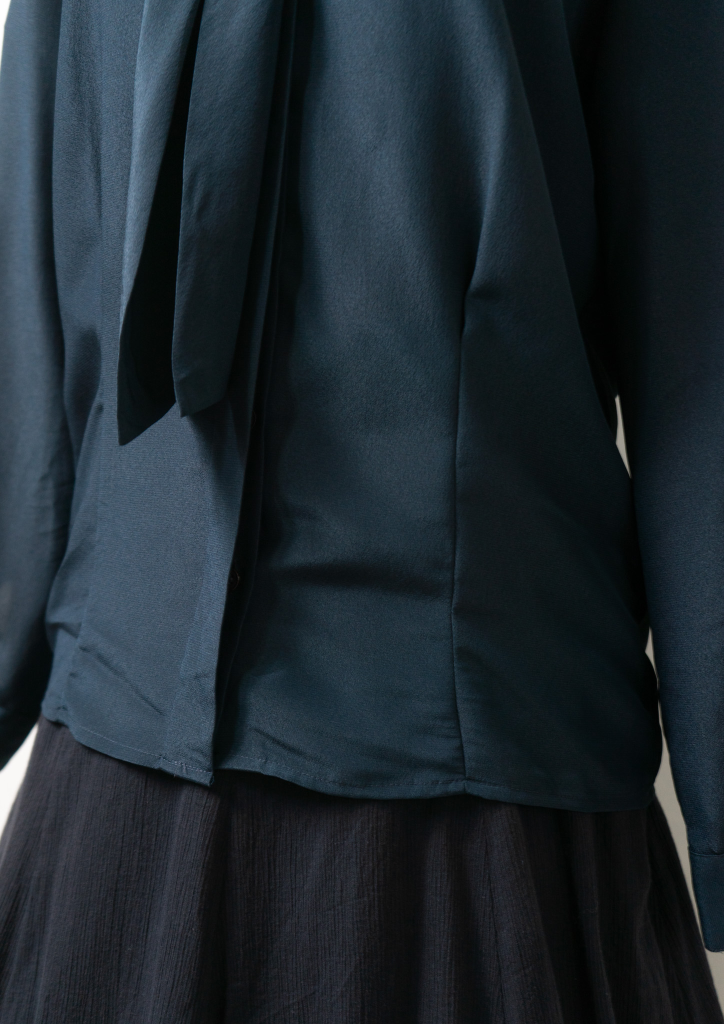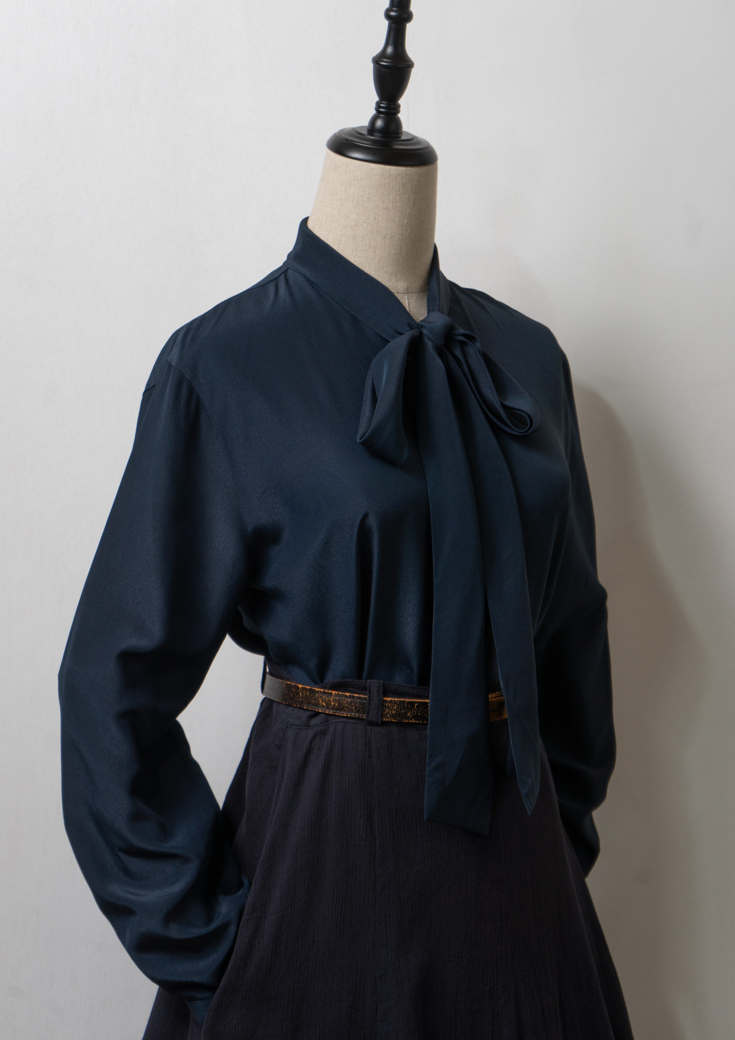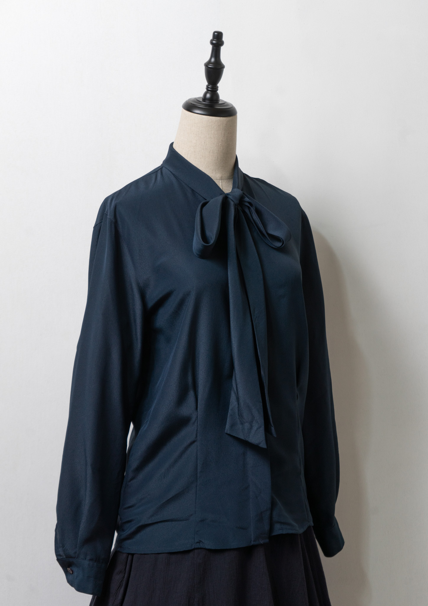 90's Waist Darts Bow-tie Navy Black Blouse