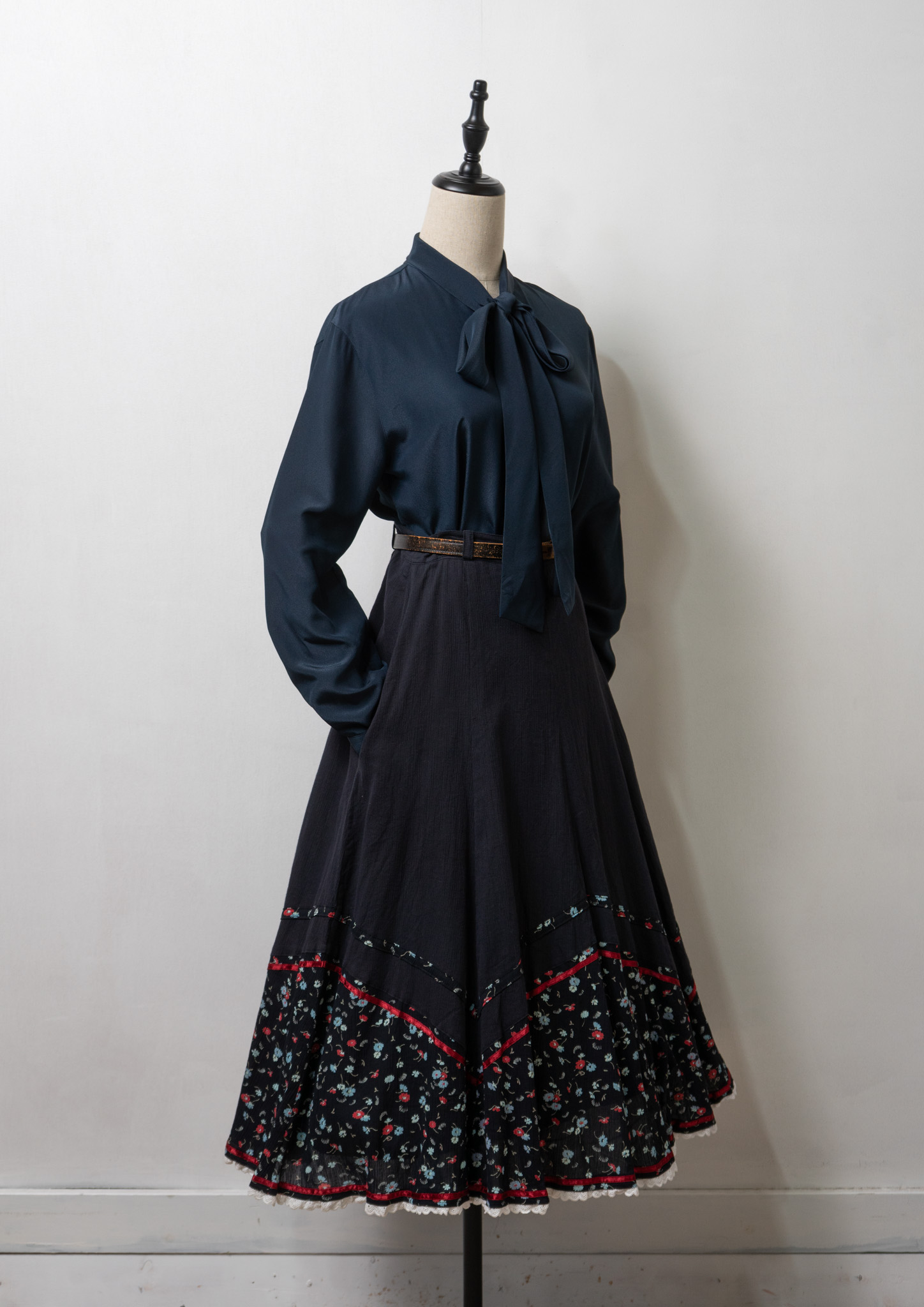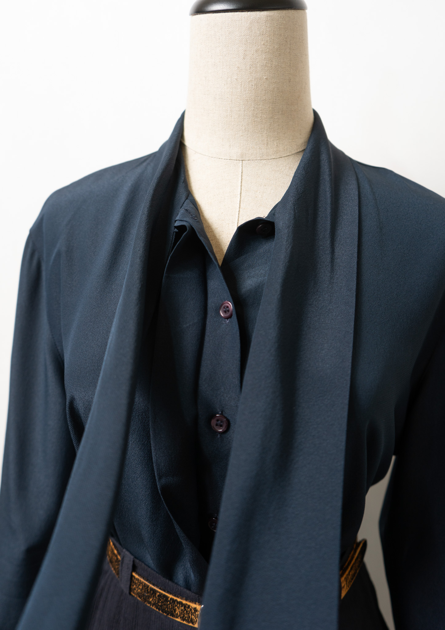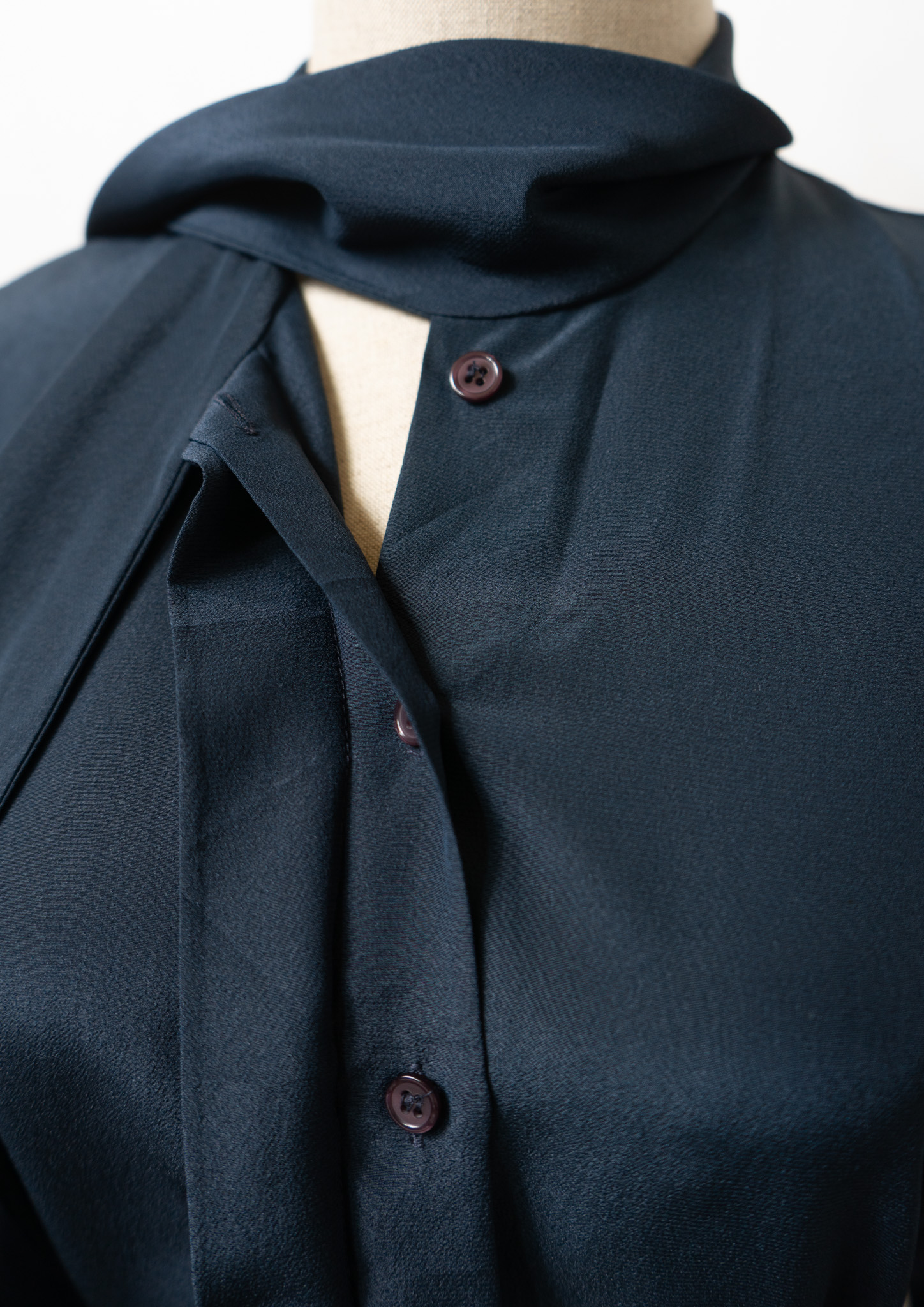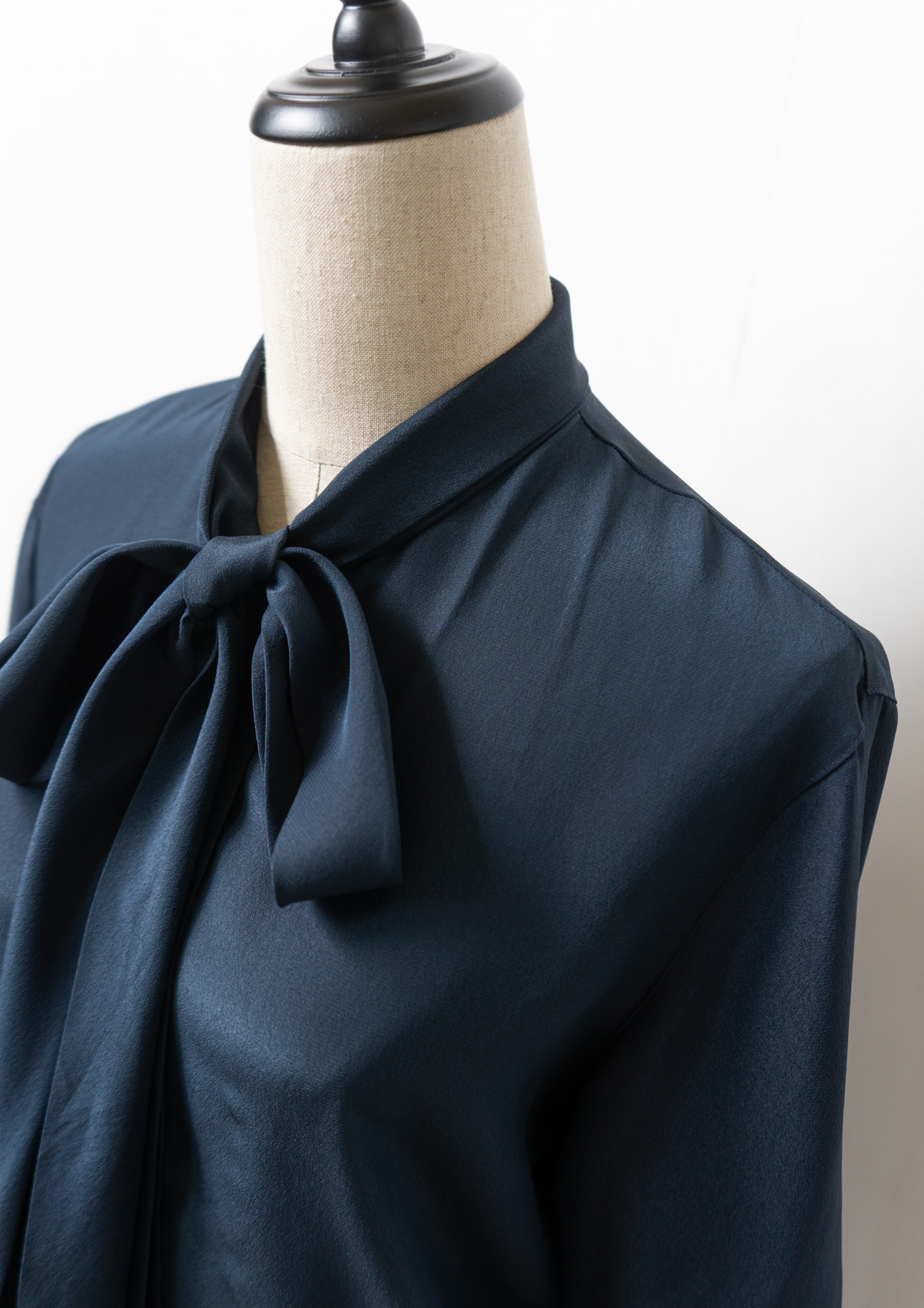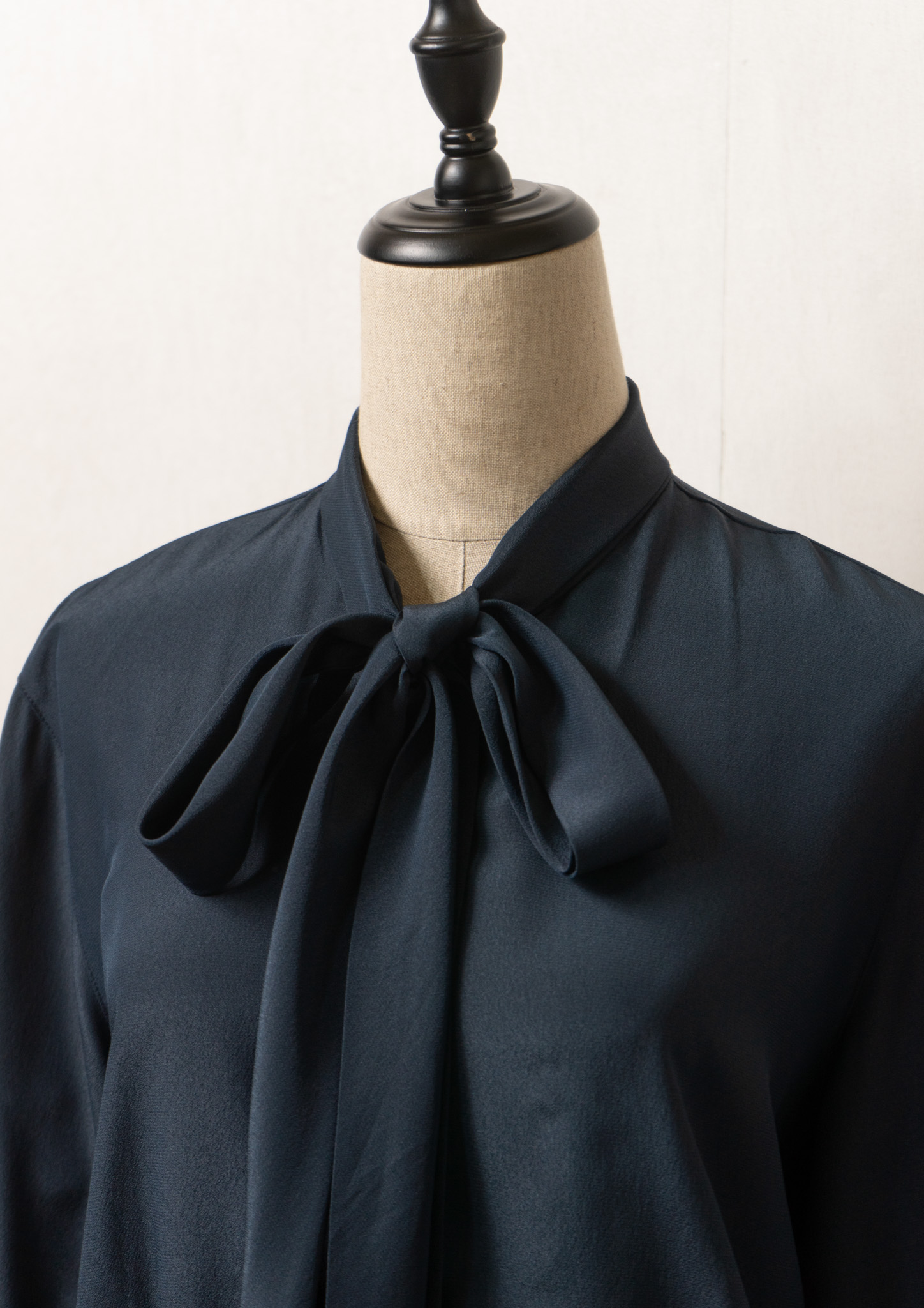 90's Waist Darts Bow-tie Navy Black Blouse