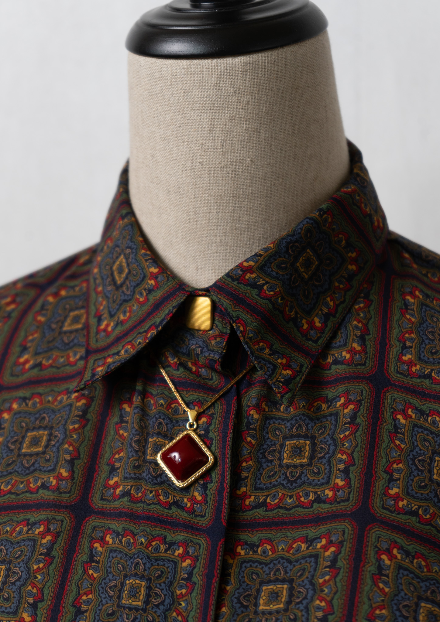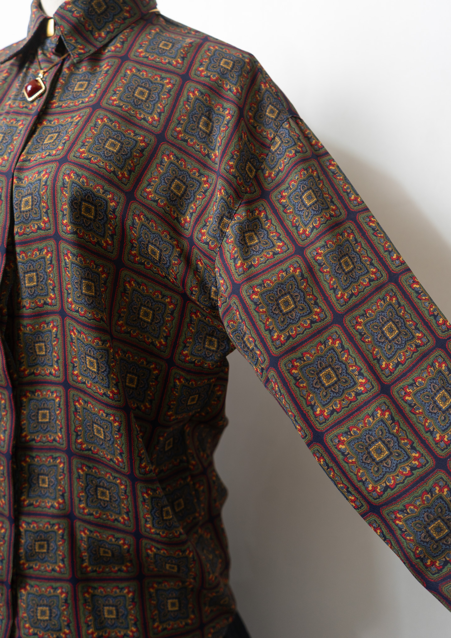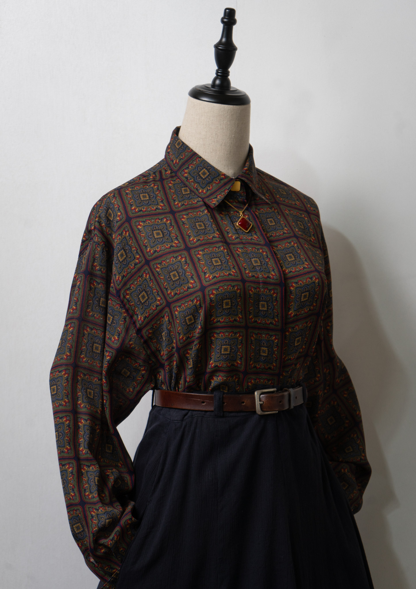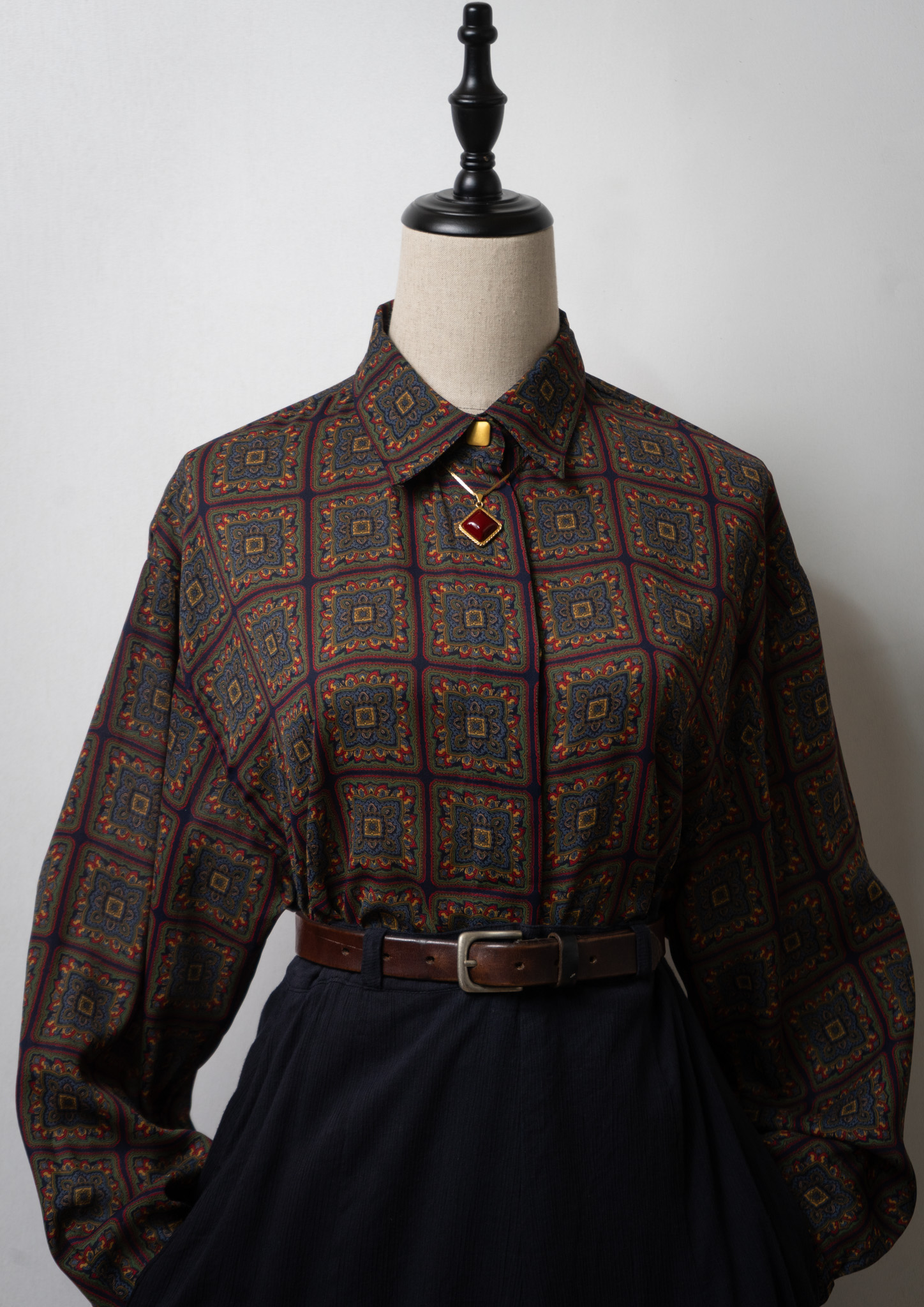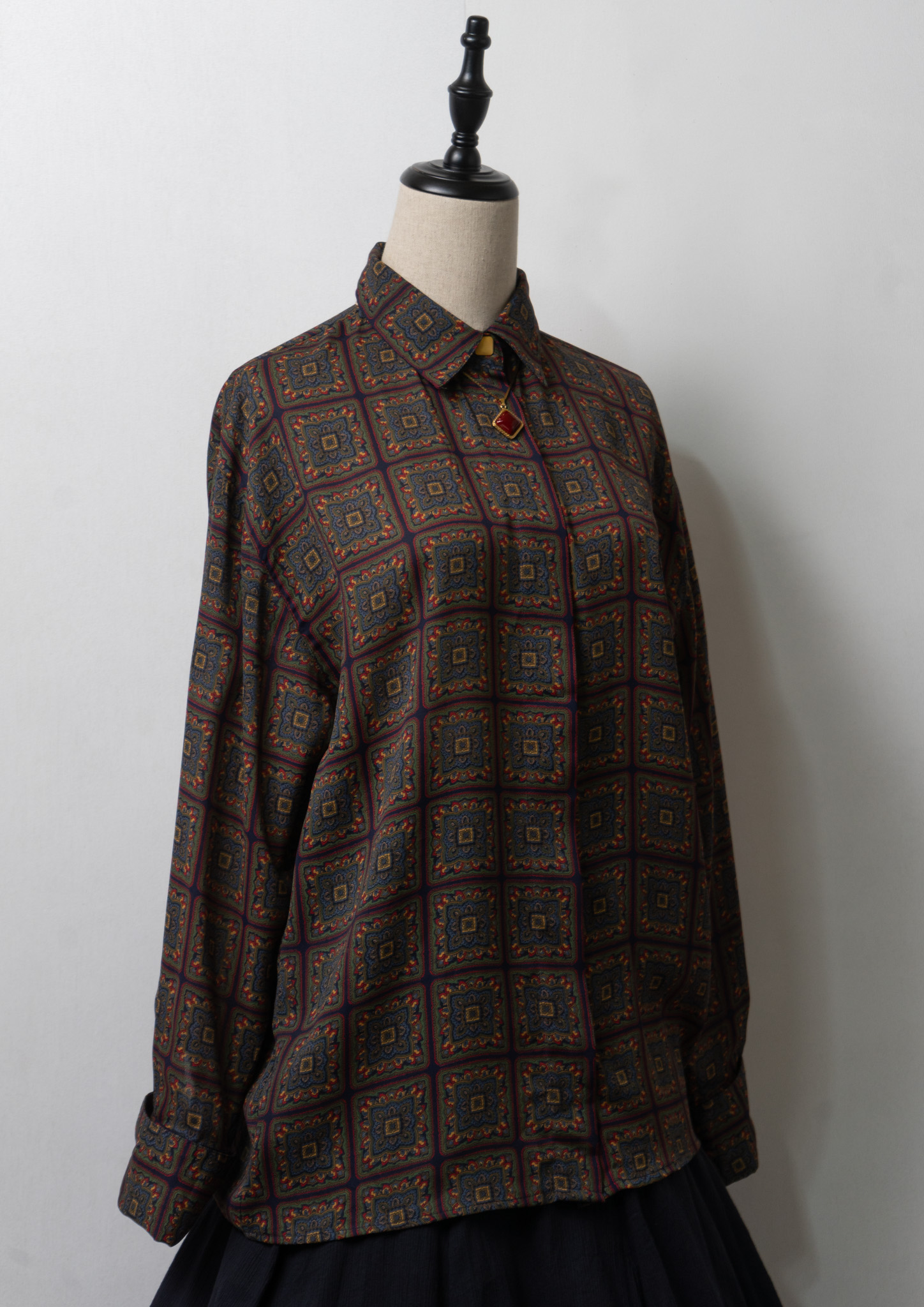 90's Stained glass Like Art Pattern Autumn Color Blouse