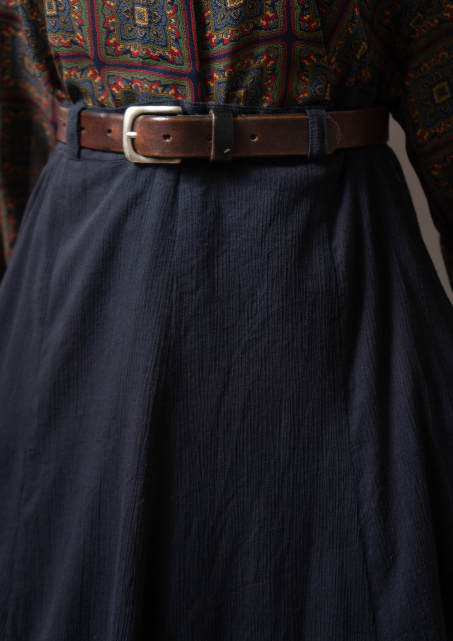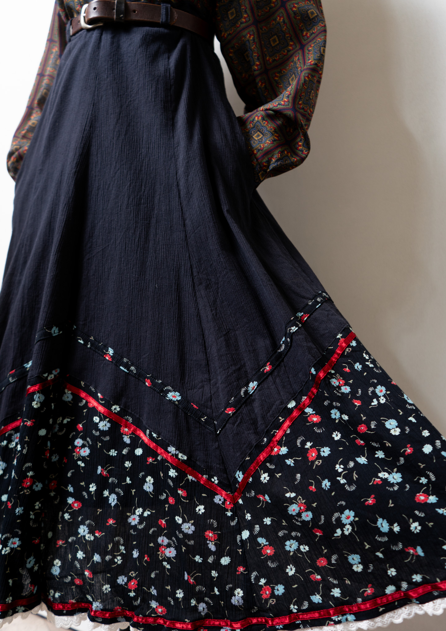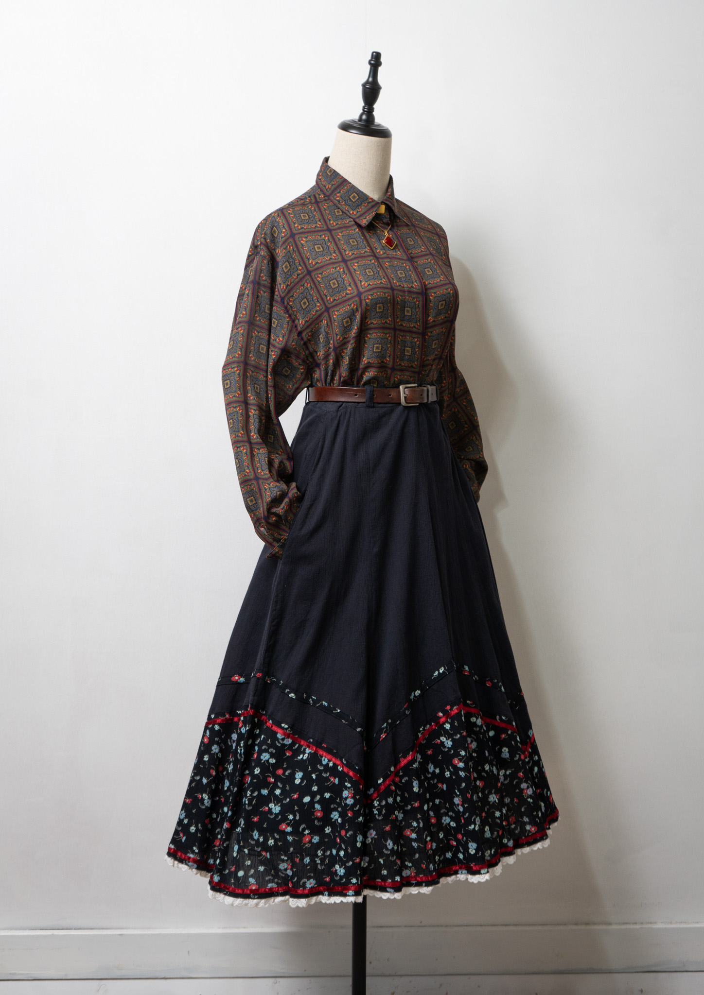 90's Stripe × Small Flower Pattern Navy Tyrol Skirt