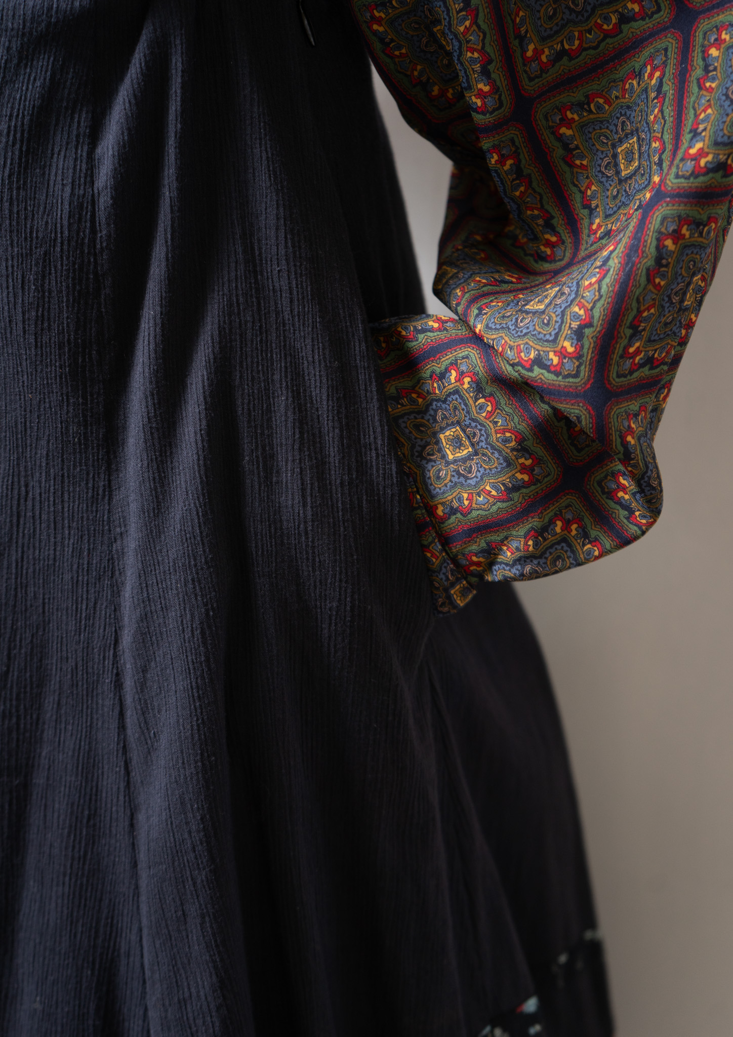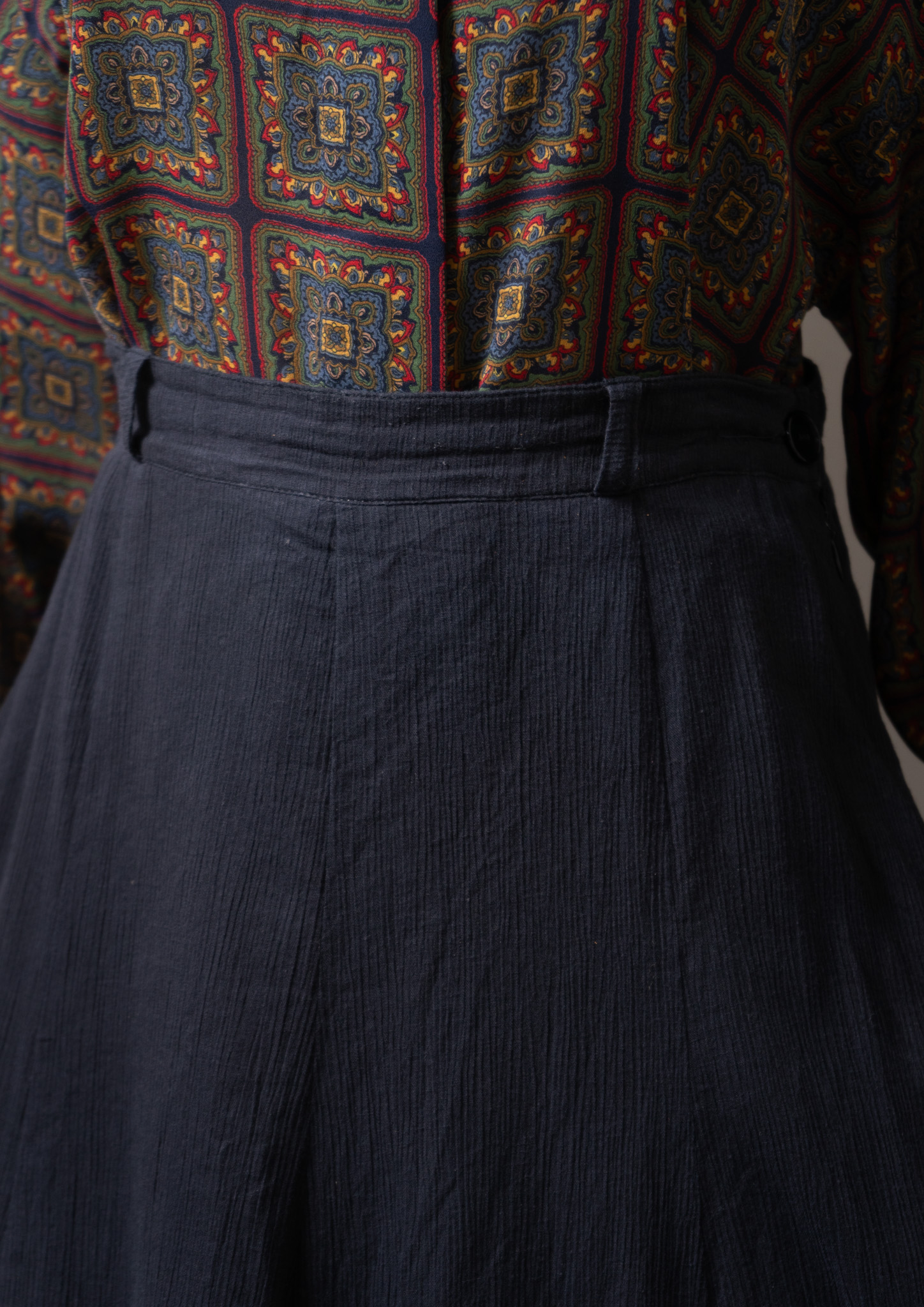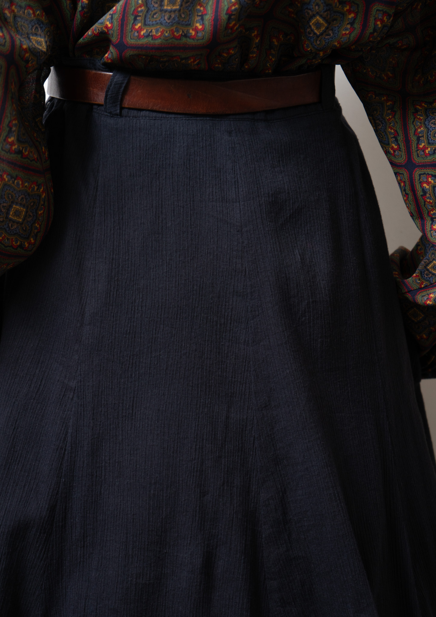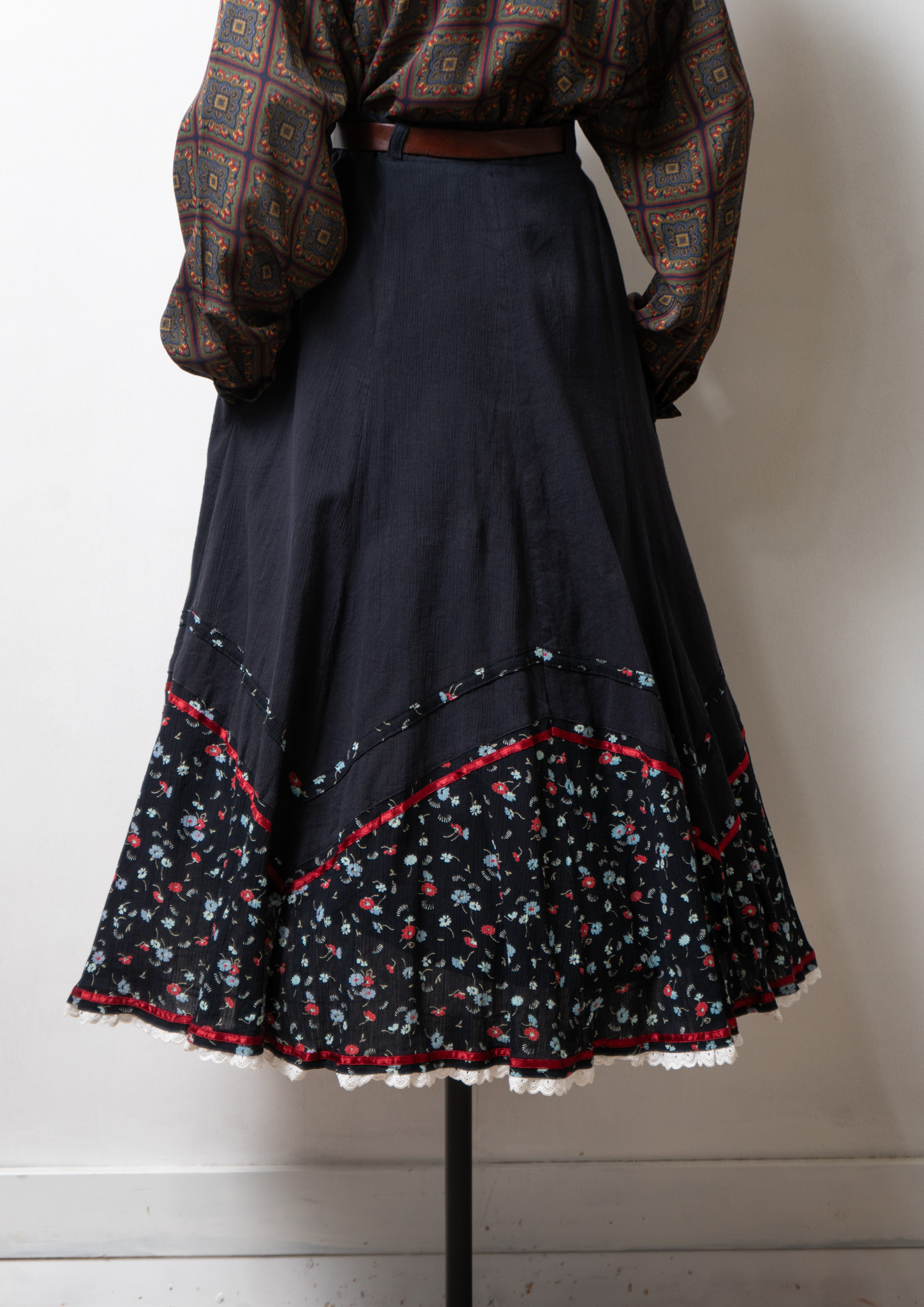 90's Stripe × Small Flower Pattern Navy Tyrol Skirt
