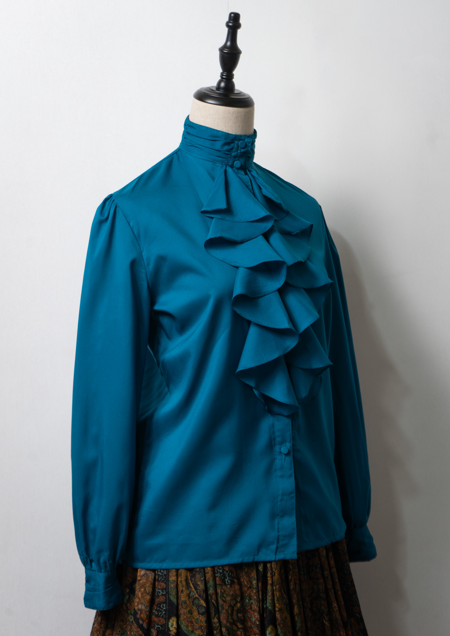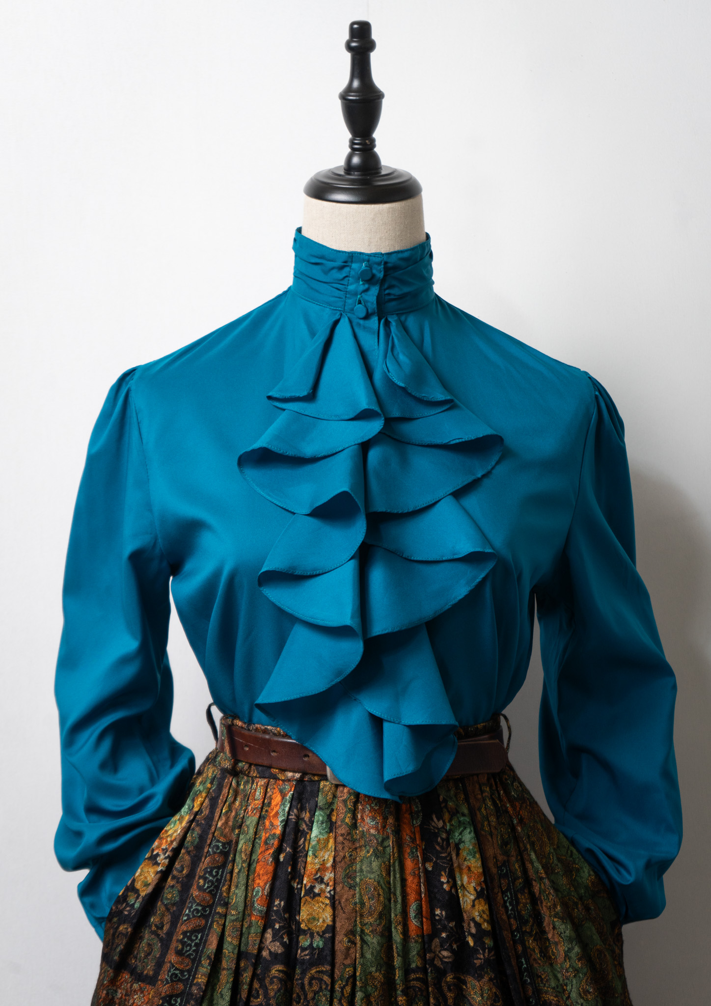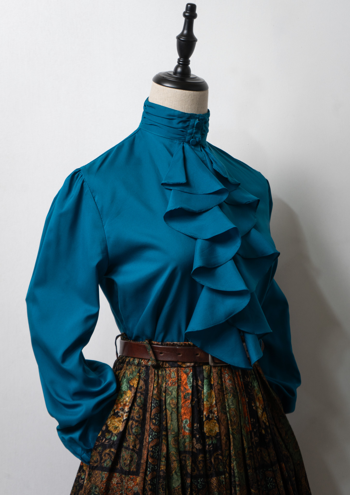 80's Tree Ring Pattern Frill Collar Purple Blouse