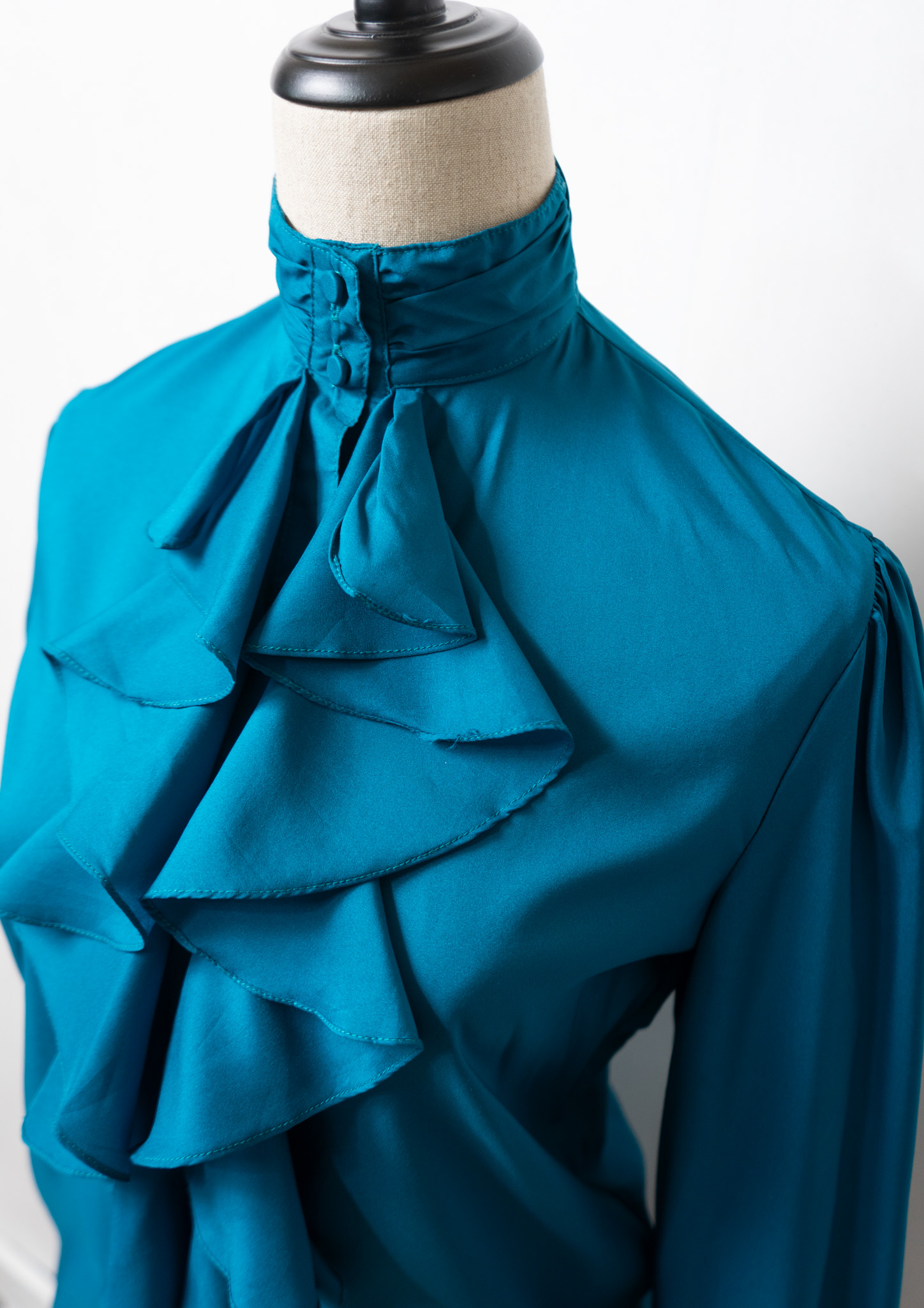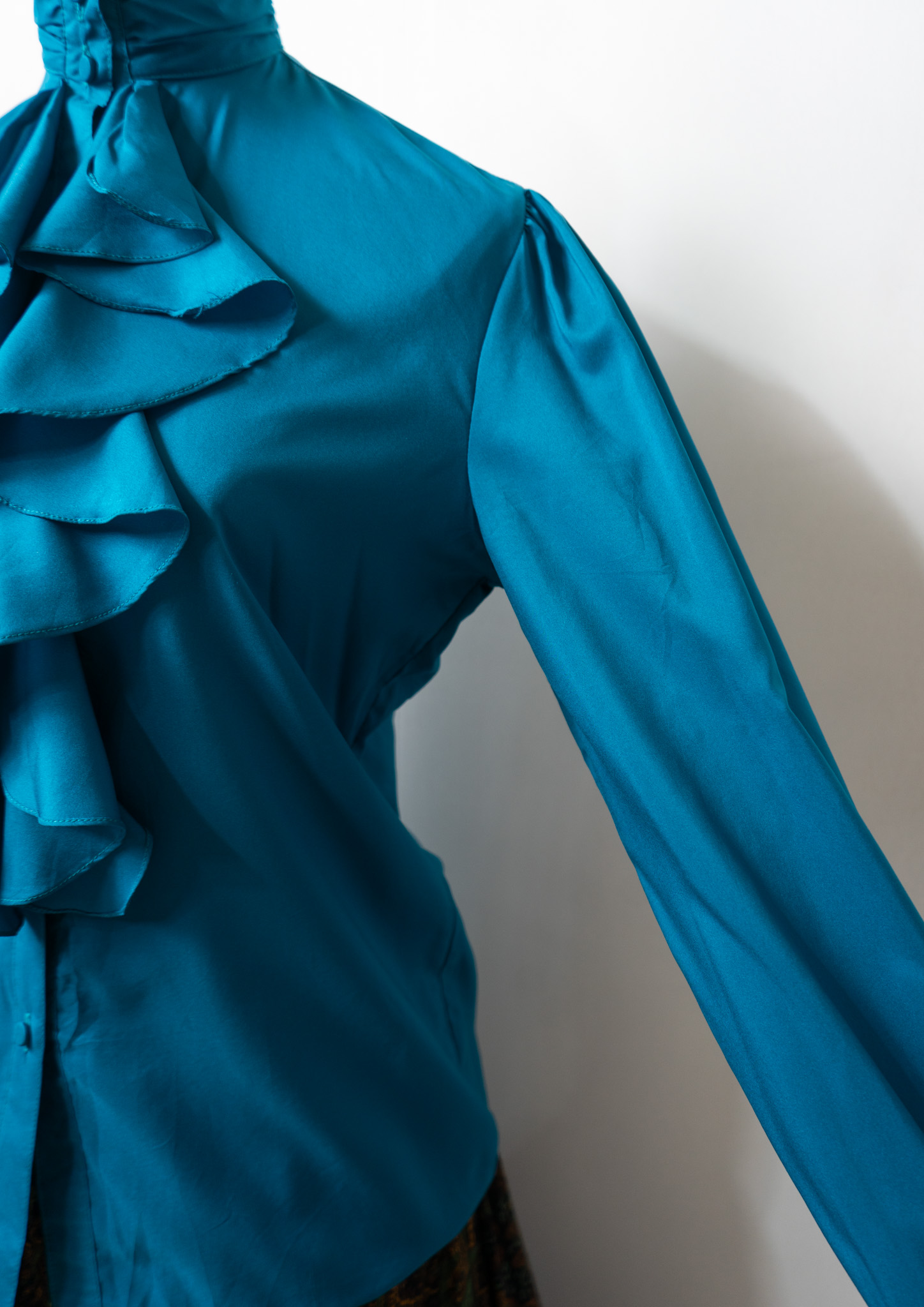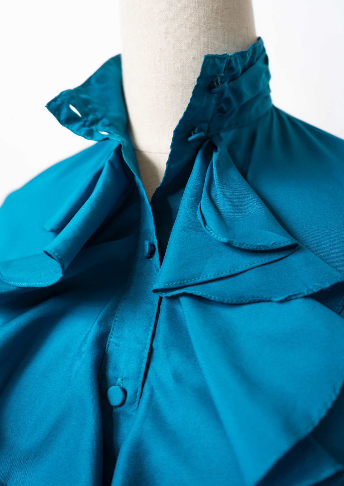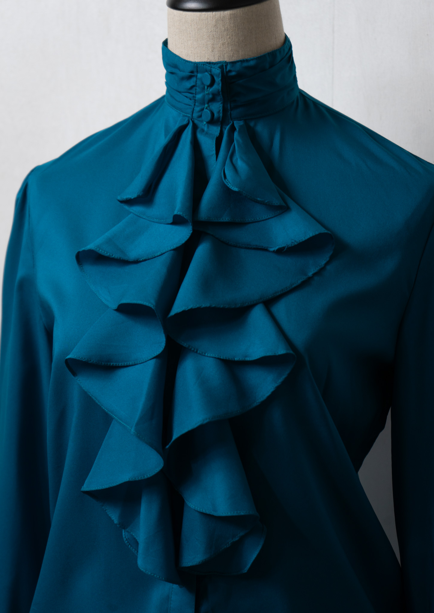 80's Tree Ring Pattern Frill Collar Purple Blouse