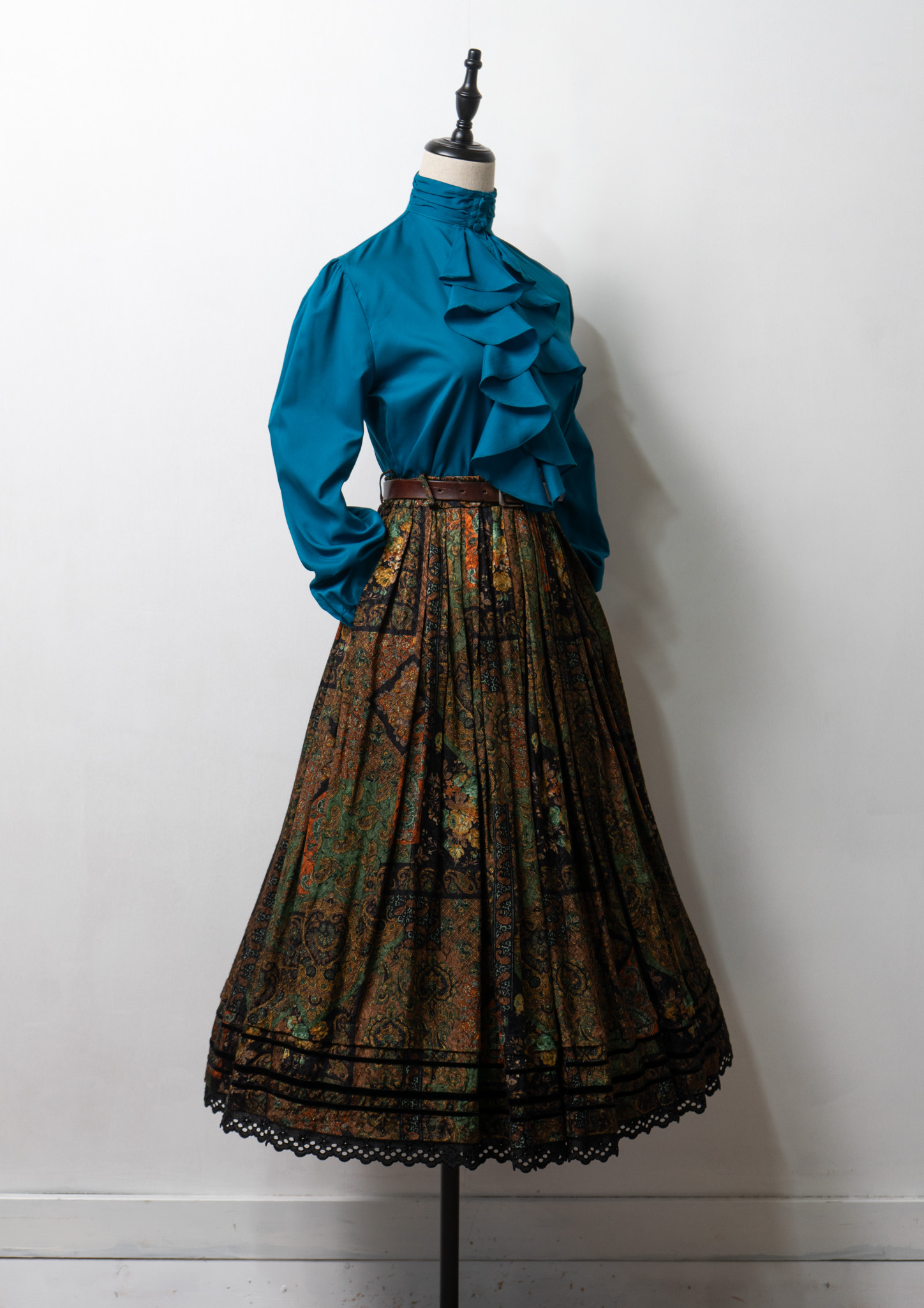 90's Stained glass Like Art Pattern Autumn Color Blouse