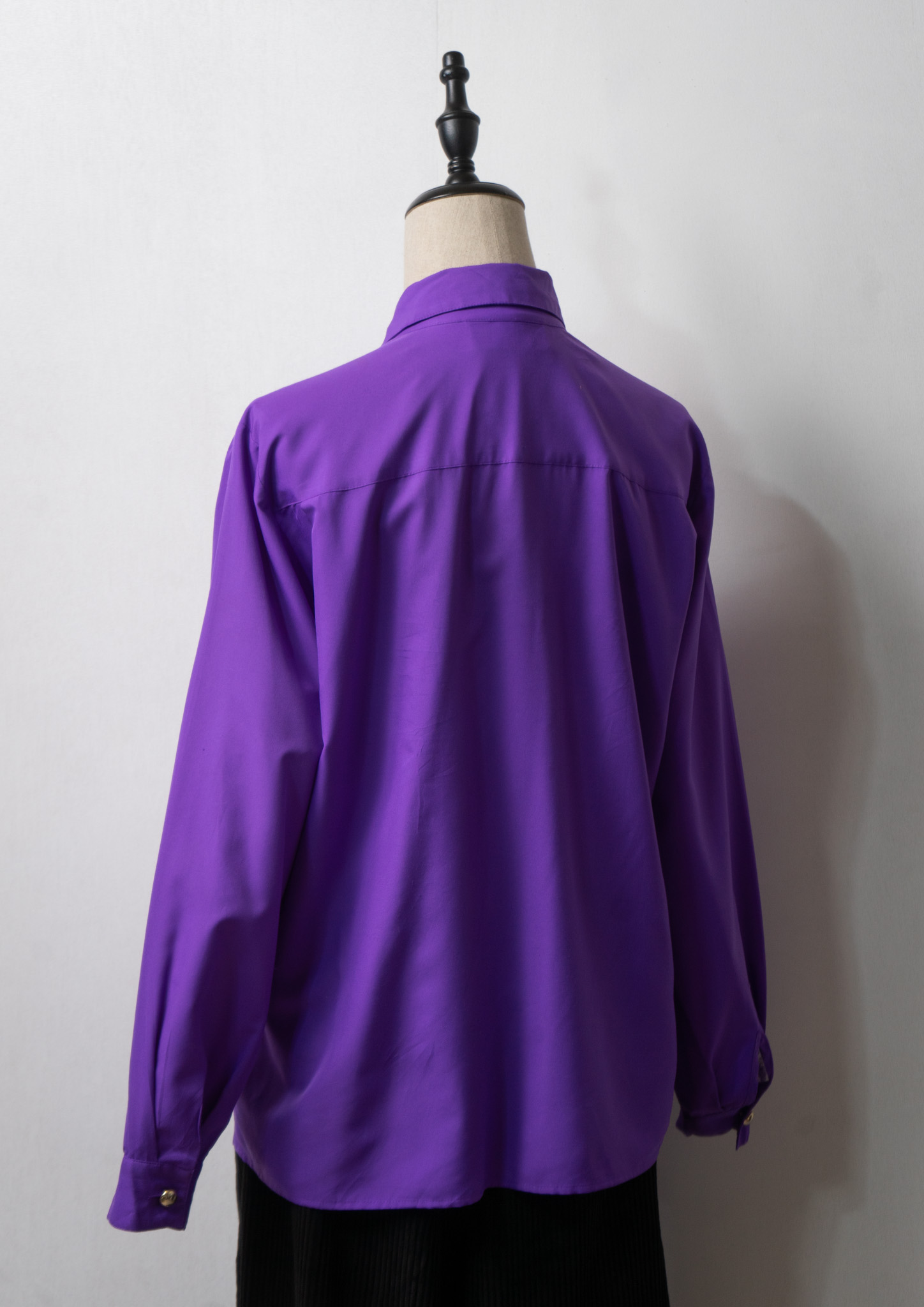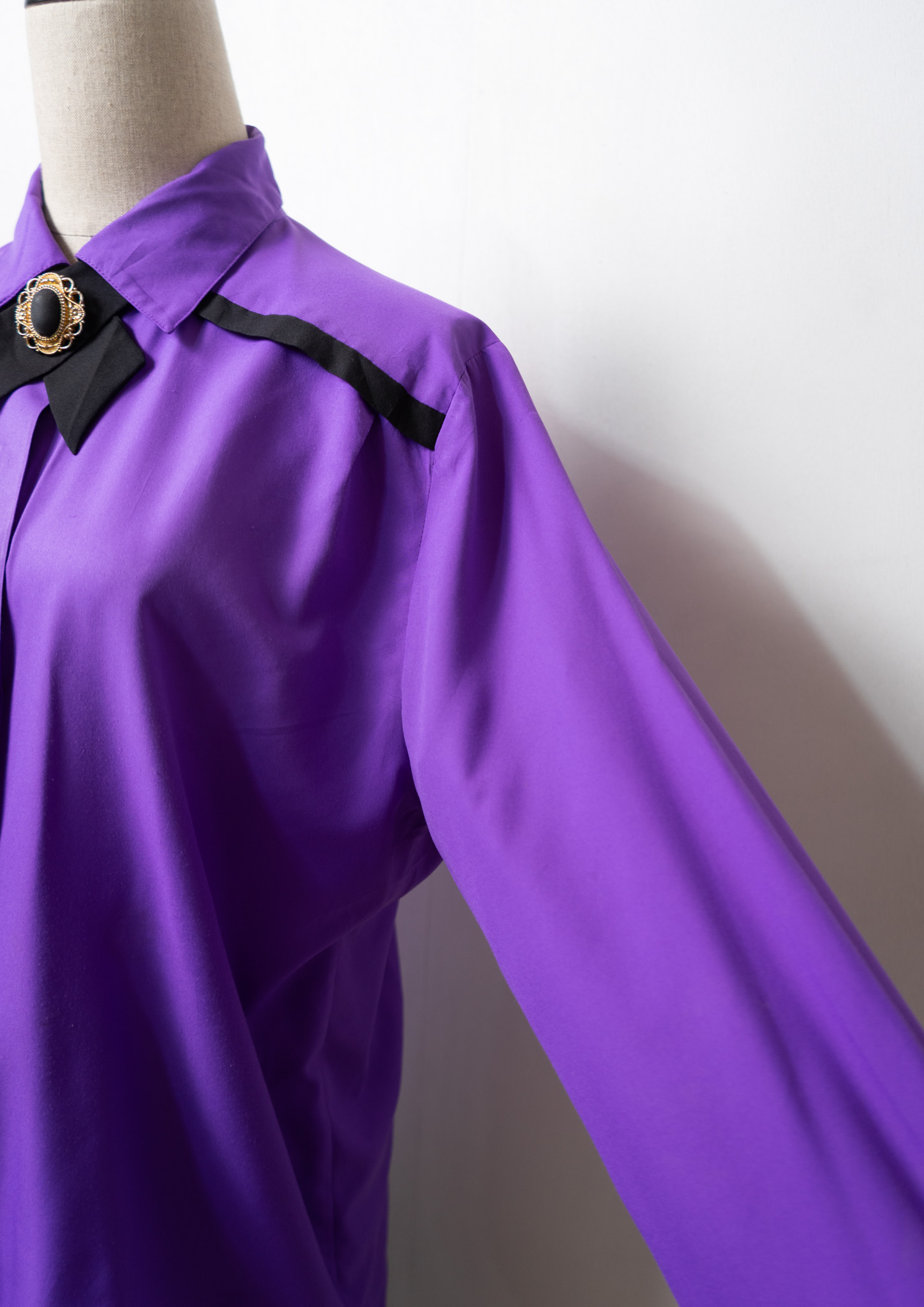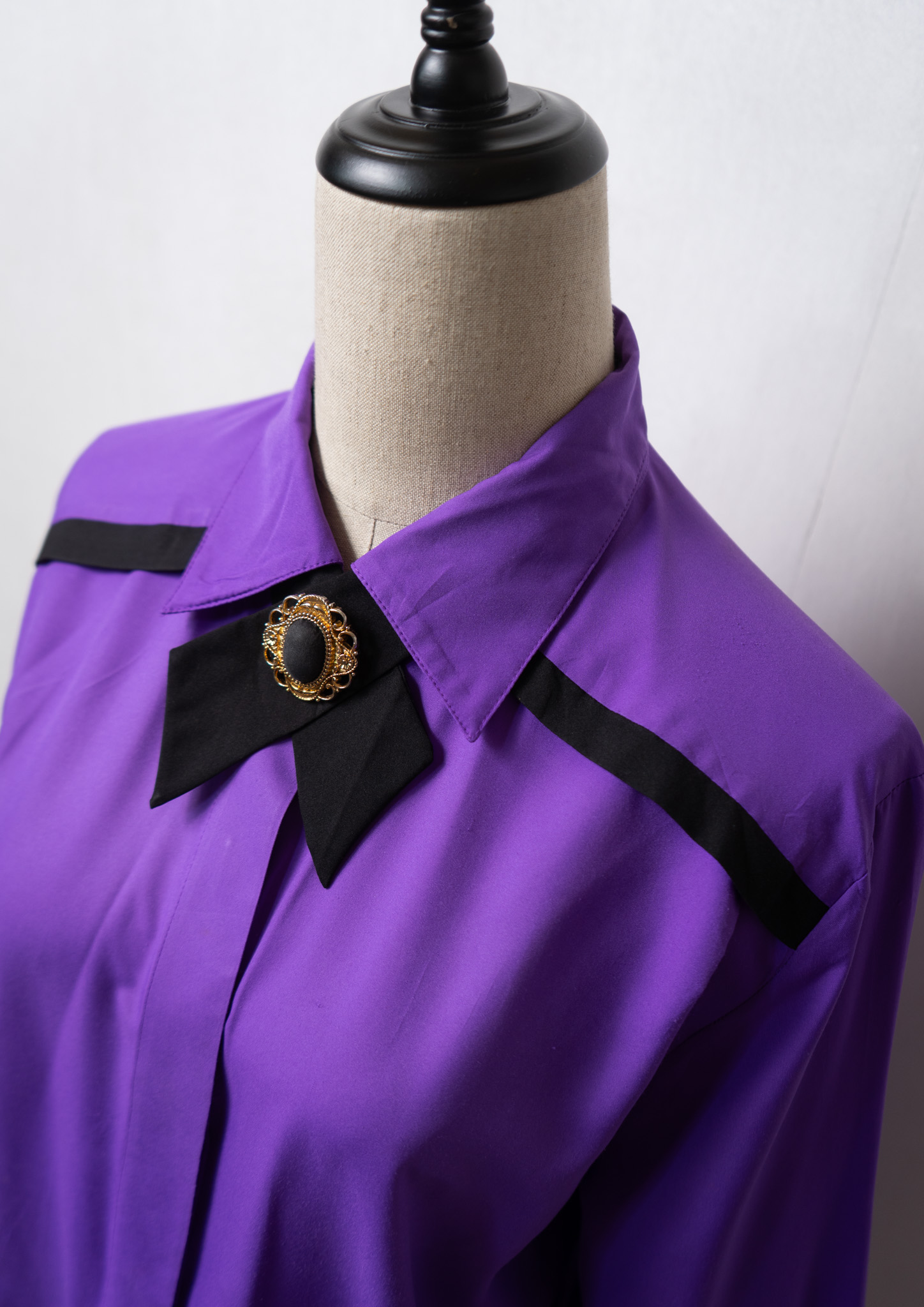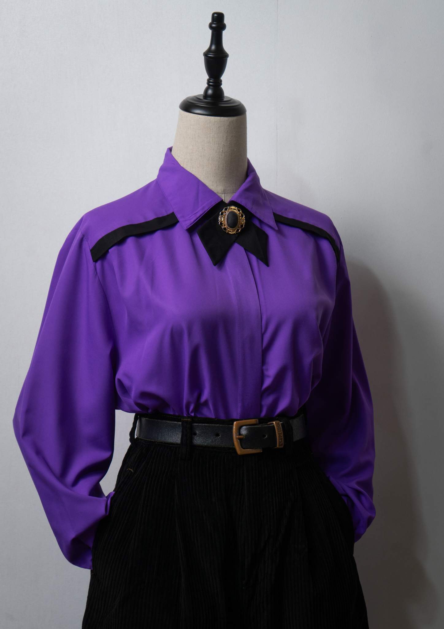 80's Tree Ring Pattern Frill Collar Purple Blouse