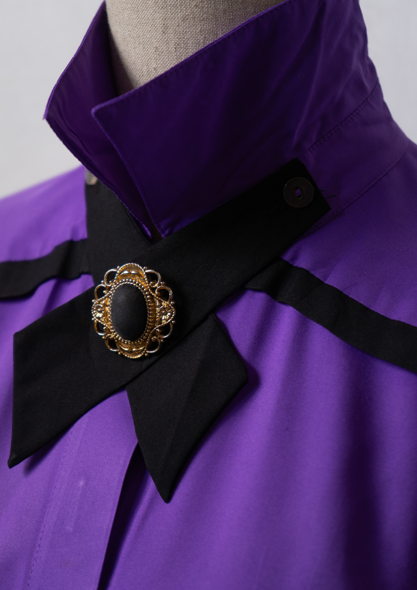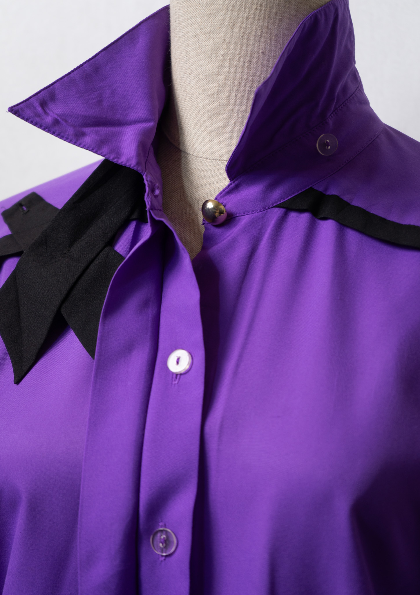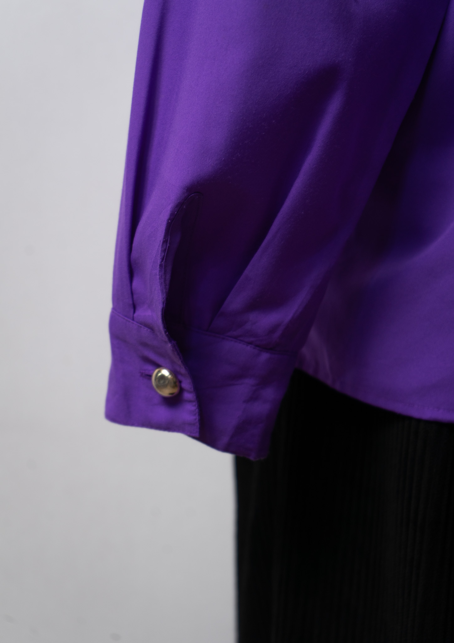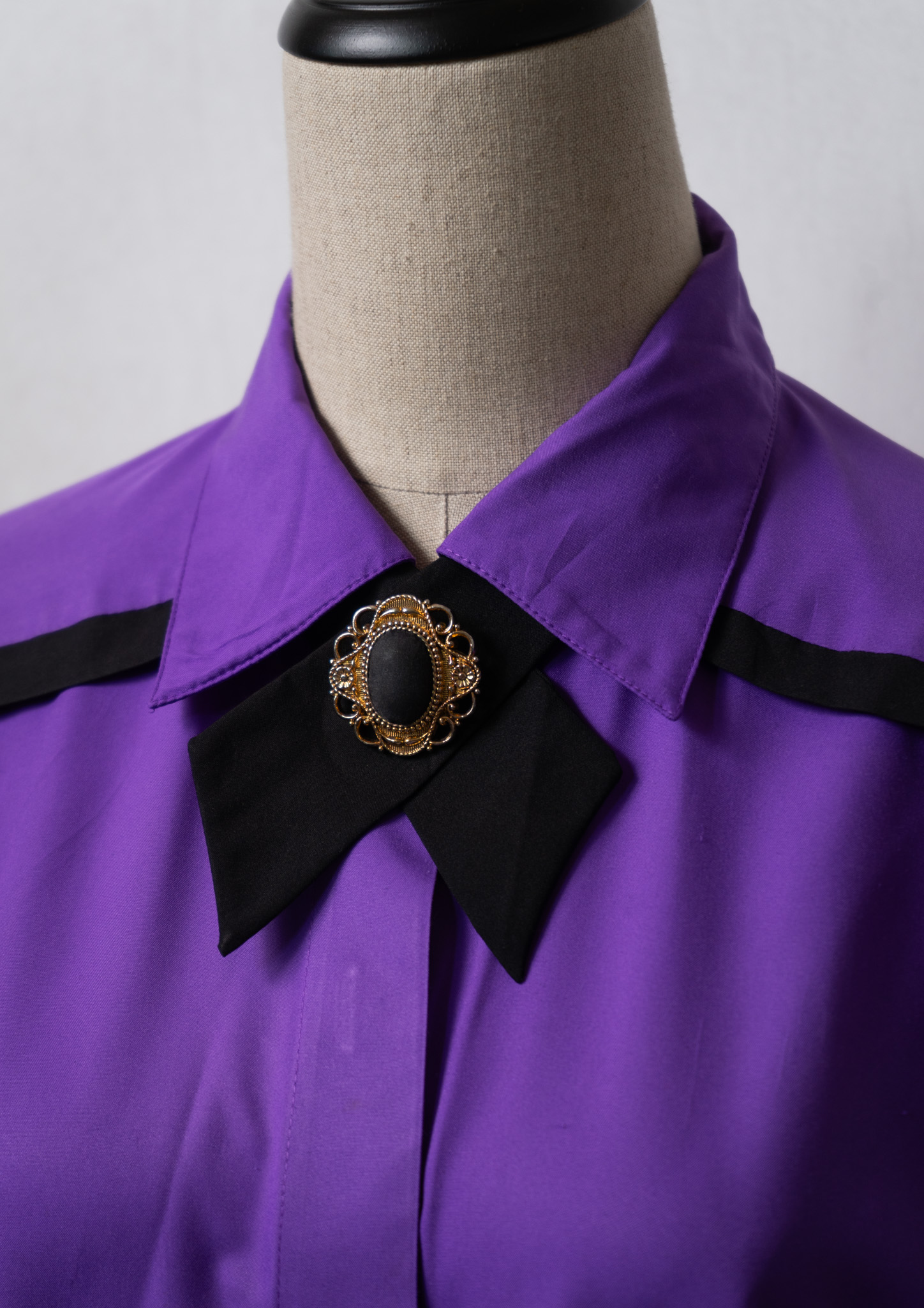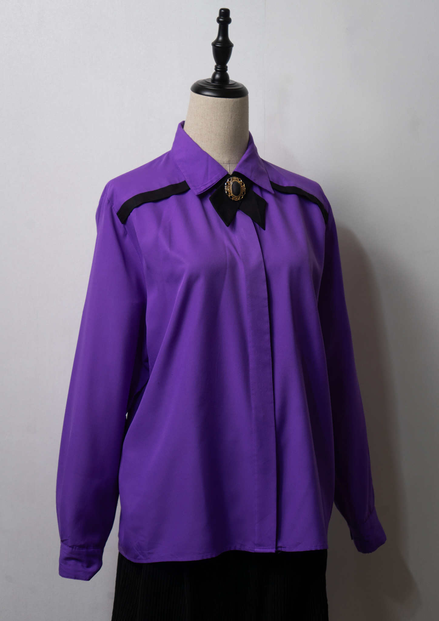 80's Tree Ring Pattern Frill Collar Purple Blouse