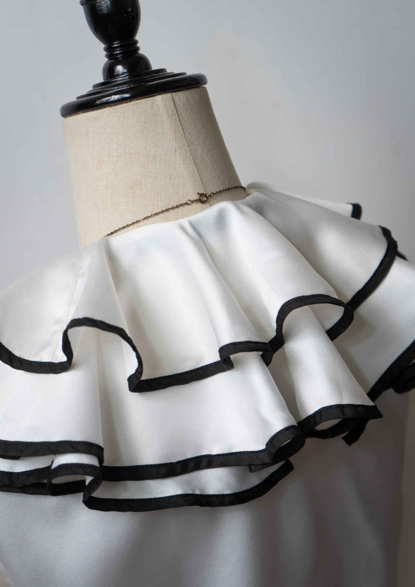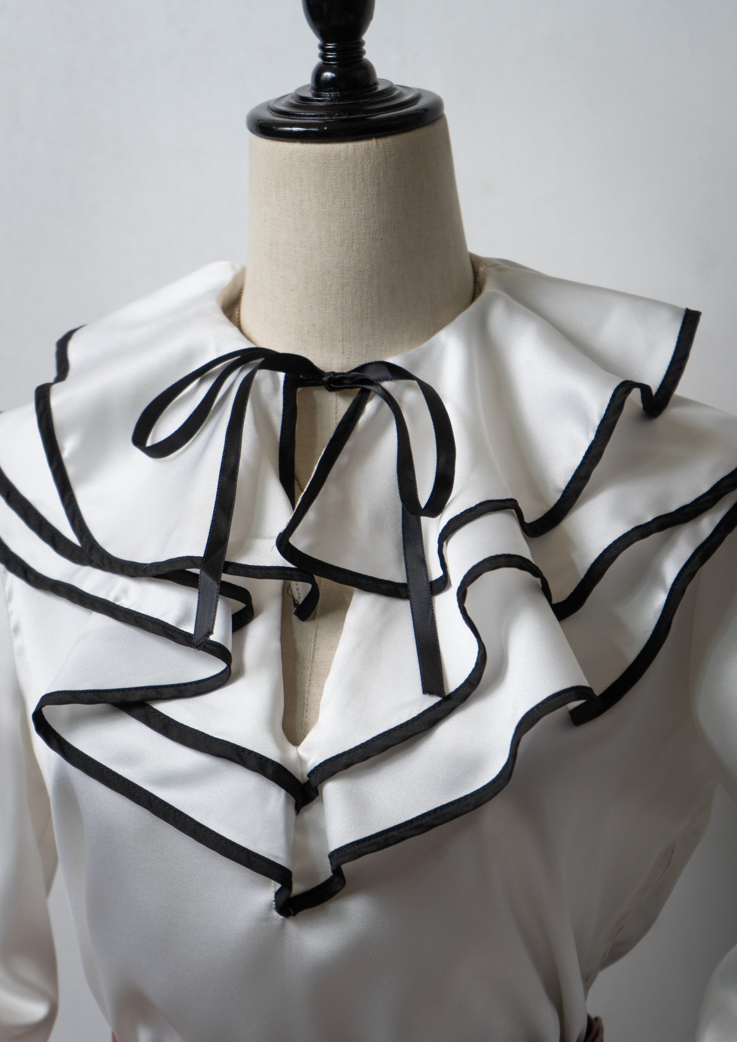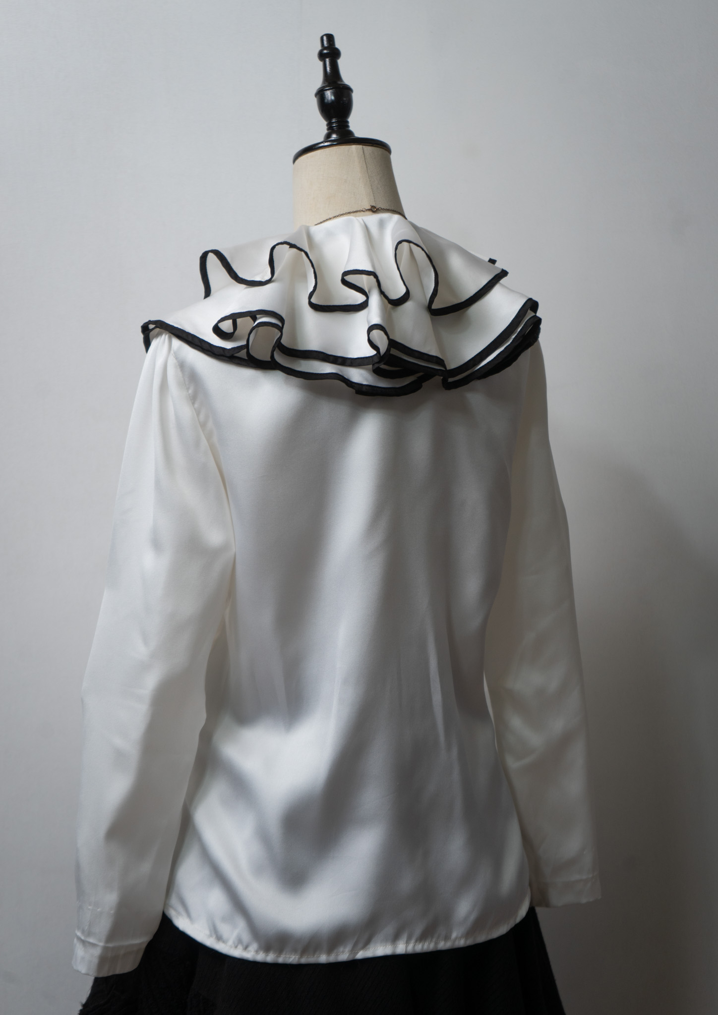80's Tree Ring Pattern Frill Collar Purple Blouse