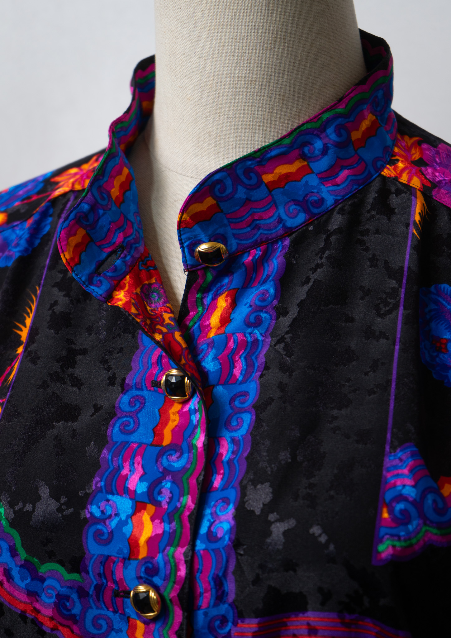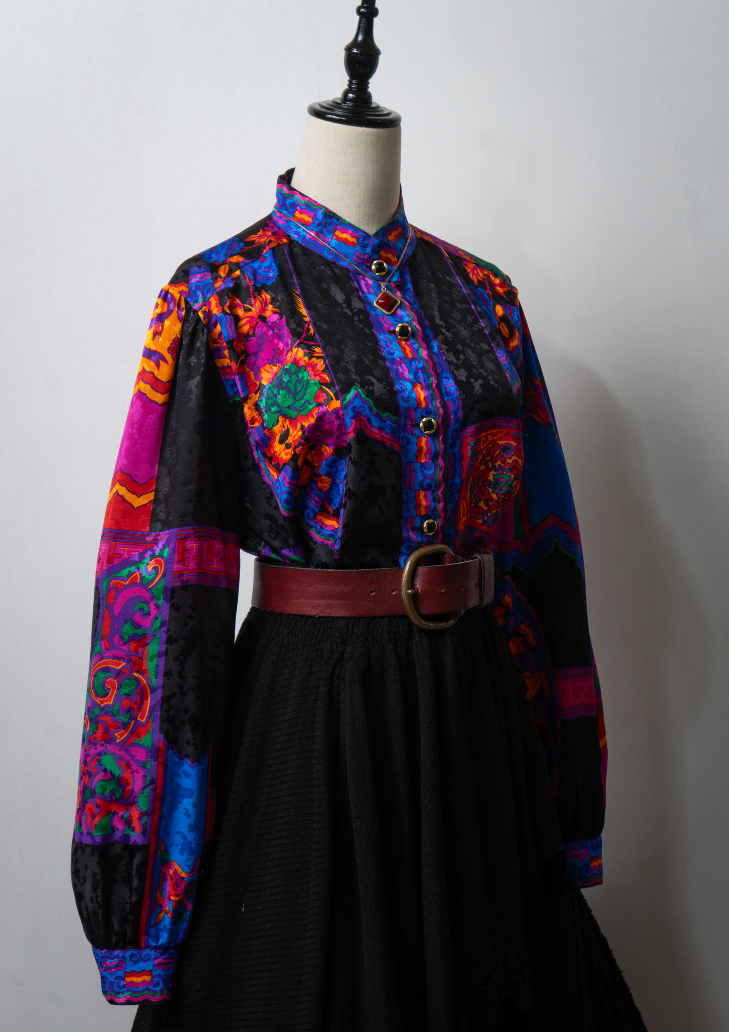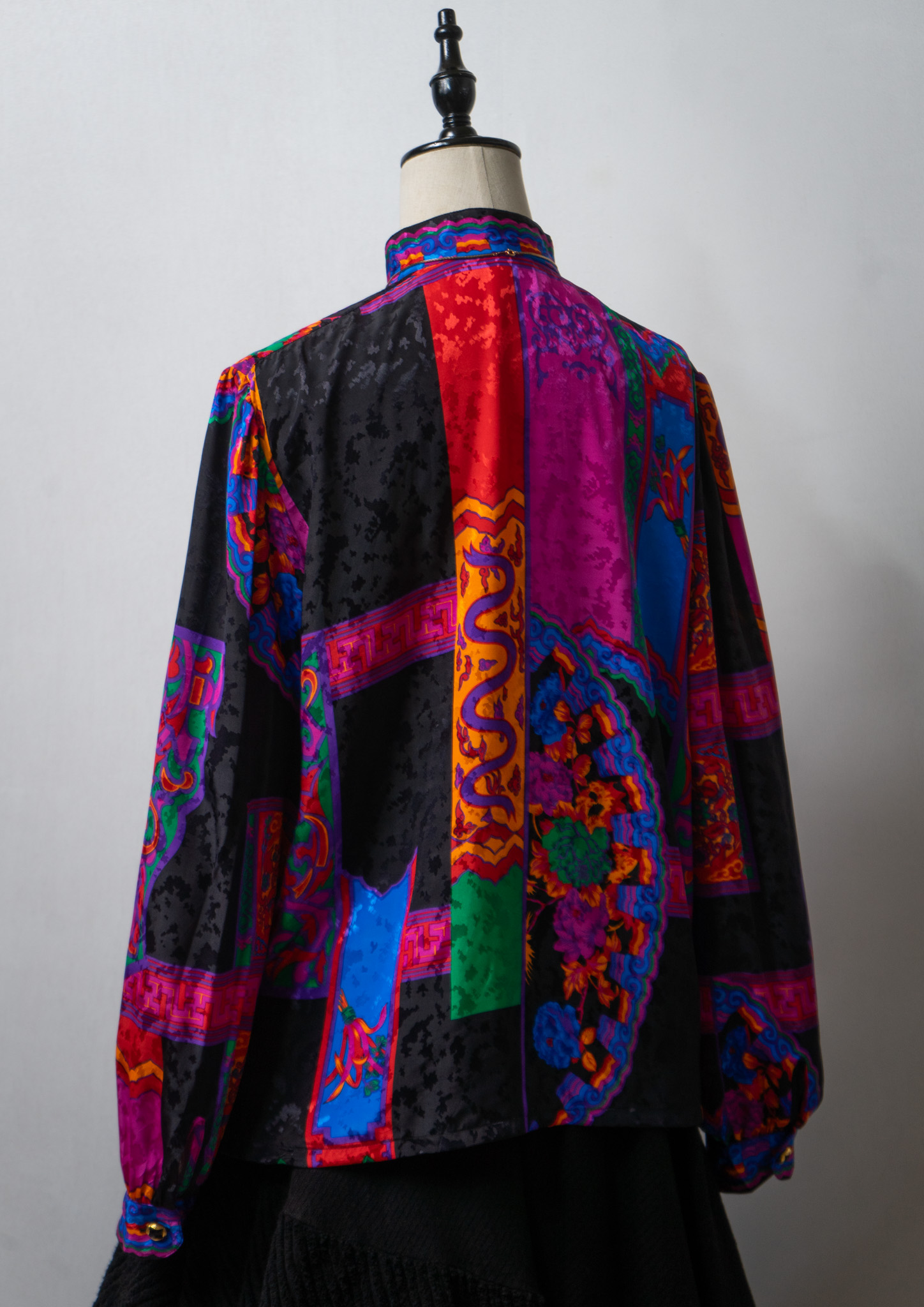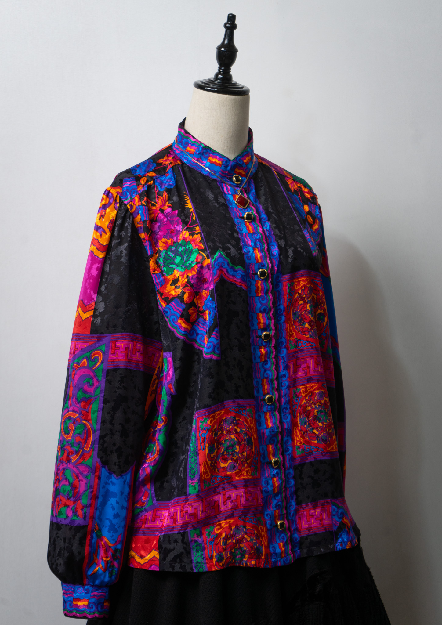 90's Stained glass Like Art Pattern Autumn Color Blouse