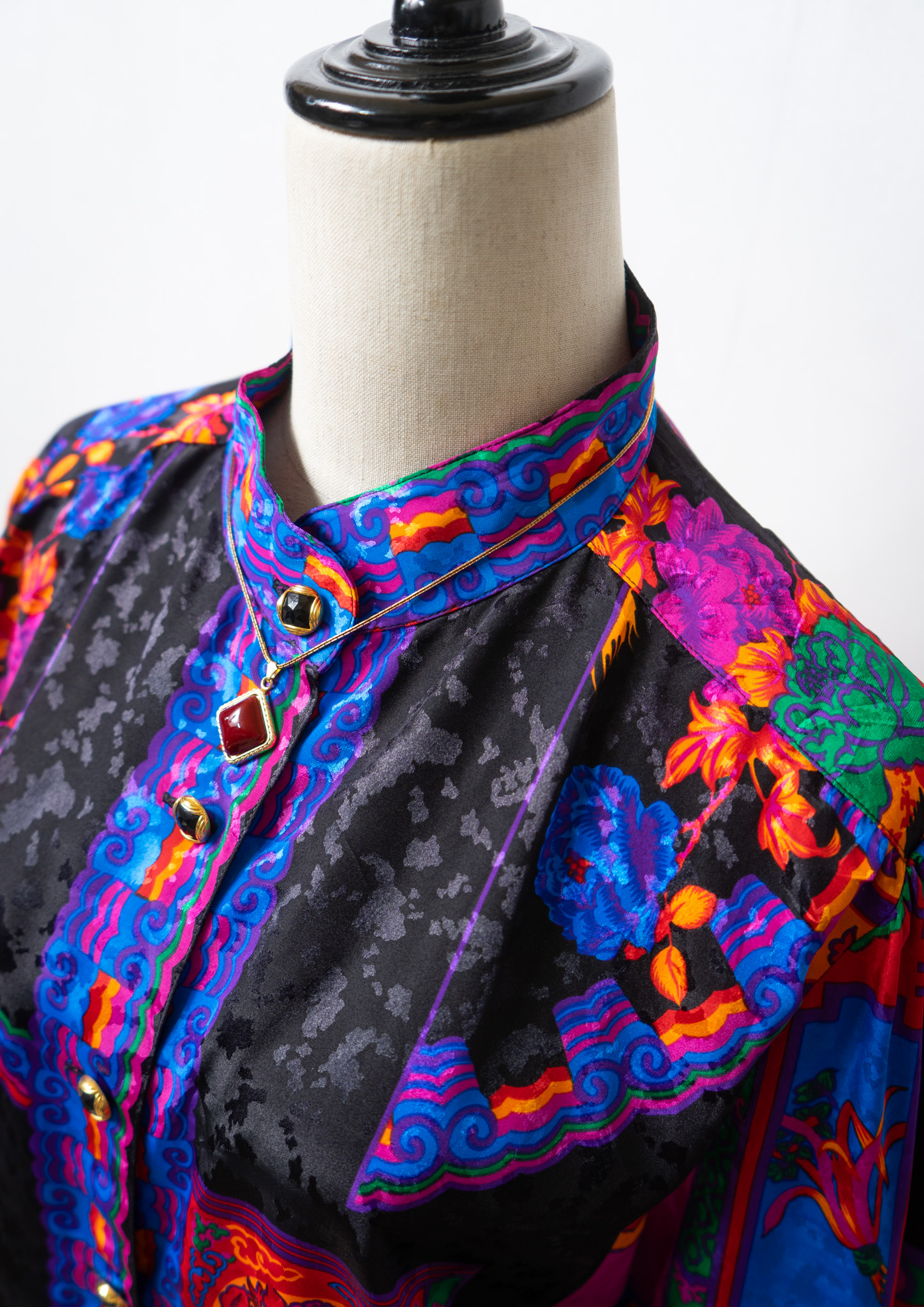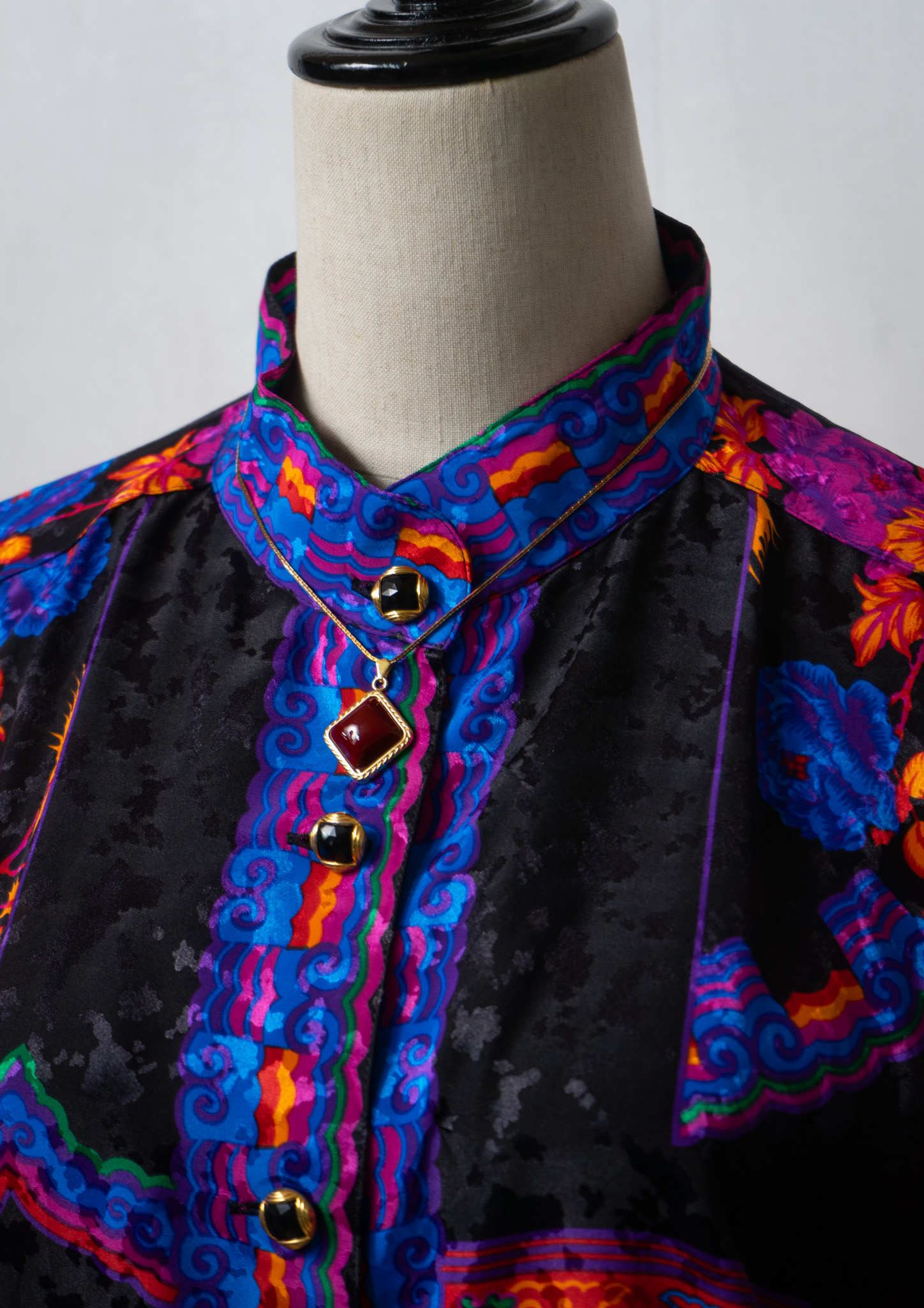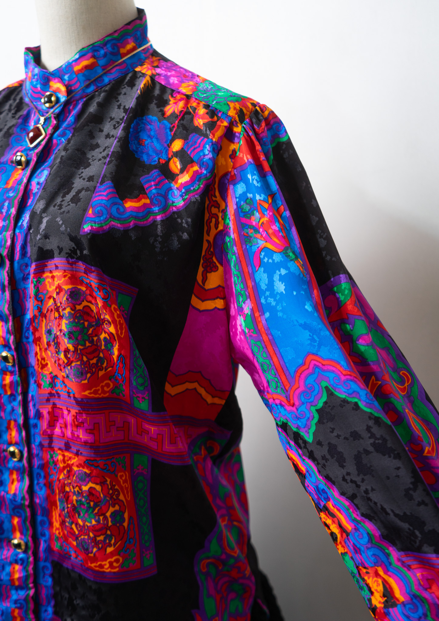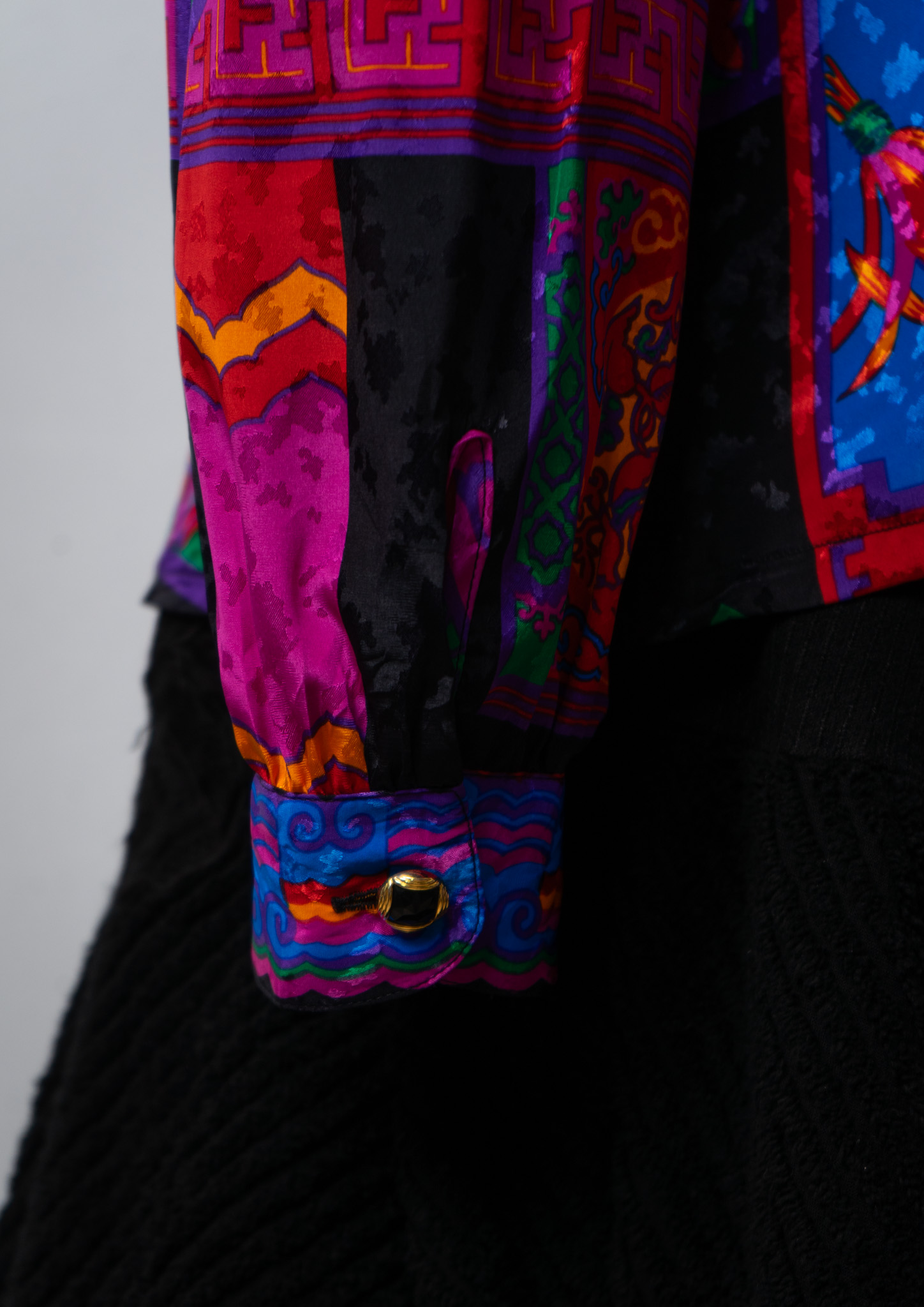90's Stained glass Like Art Pattern Autumn Color Blouse
