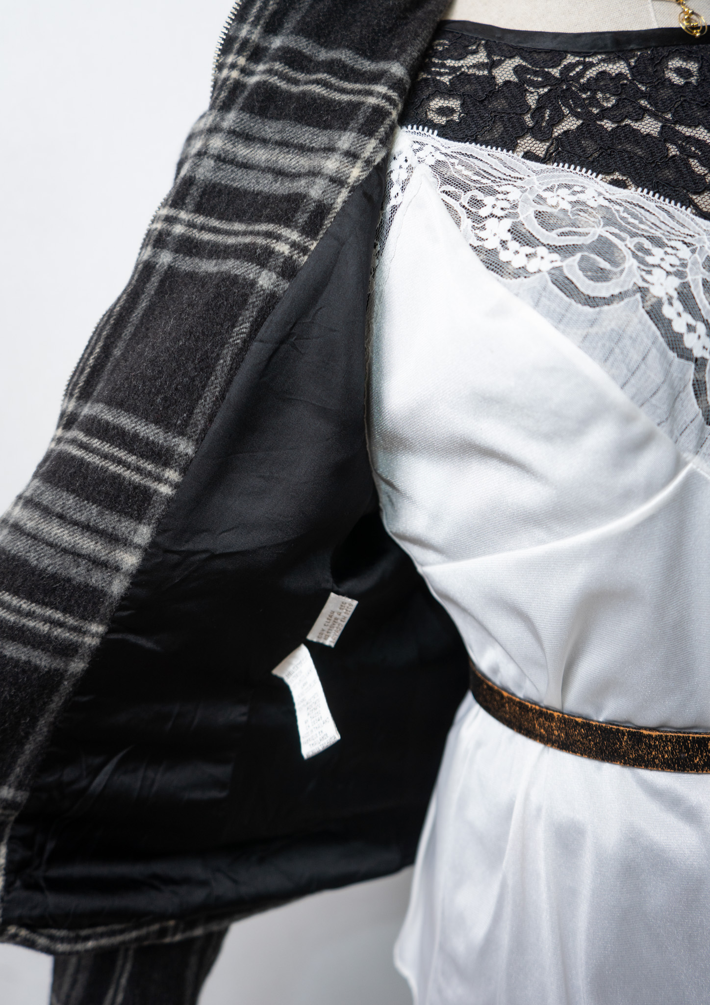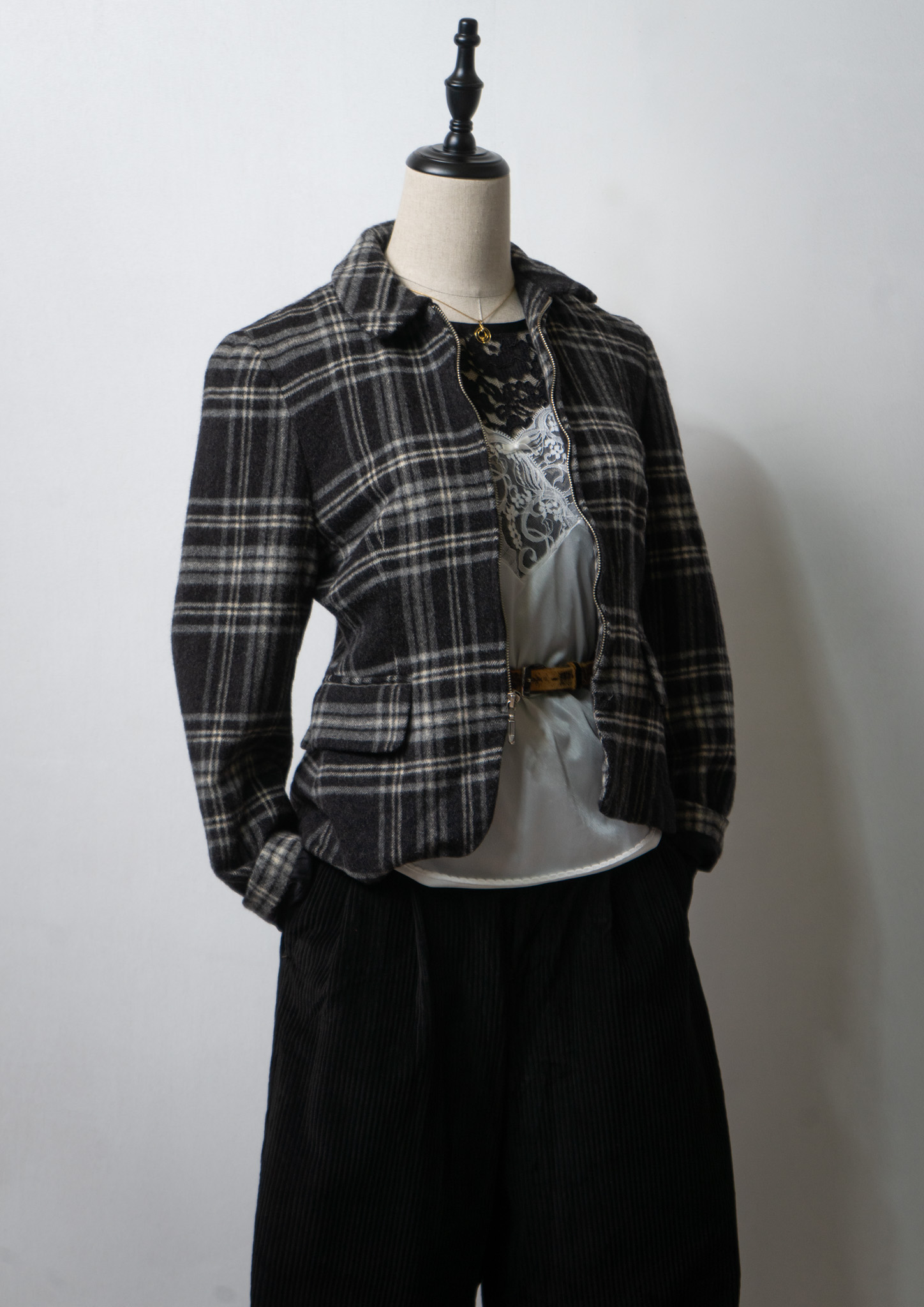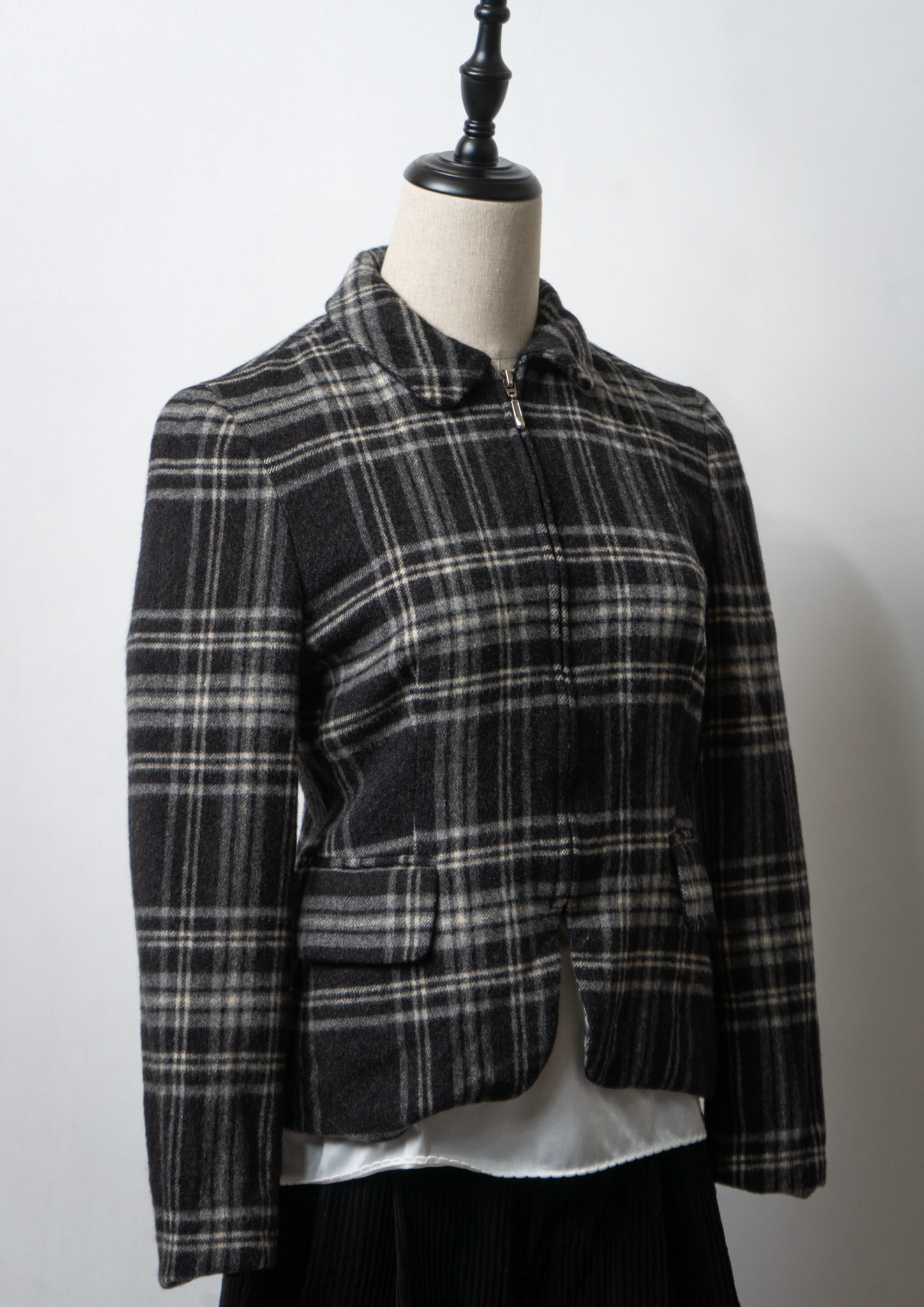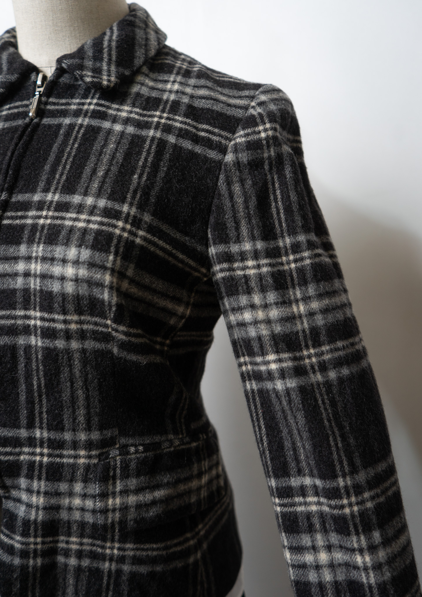 90's Monotone Check Cropped Wool Jacket