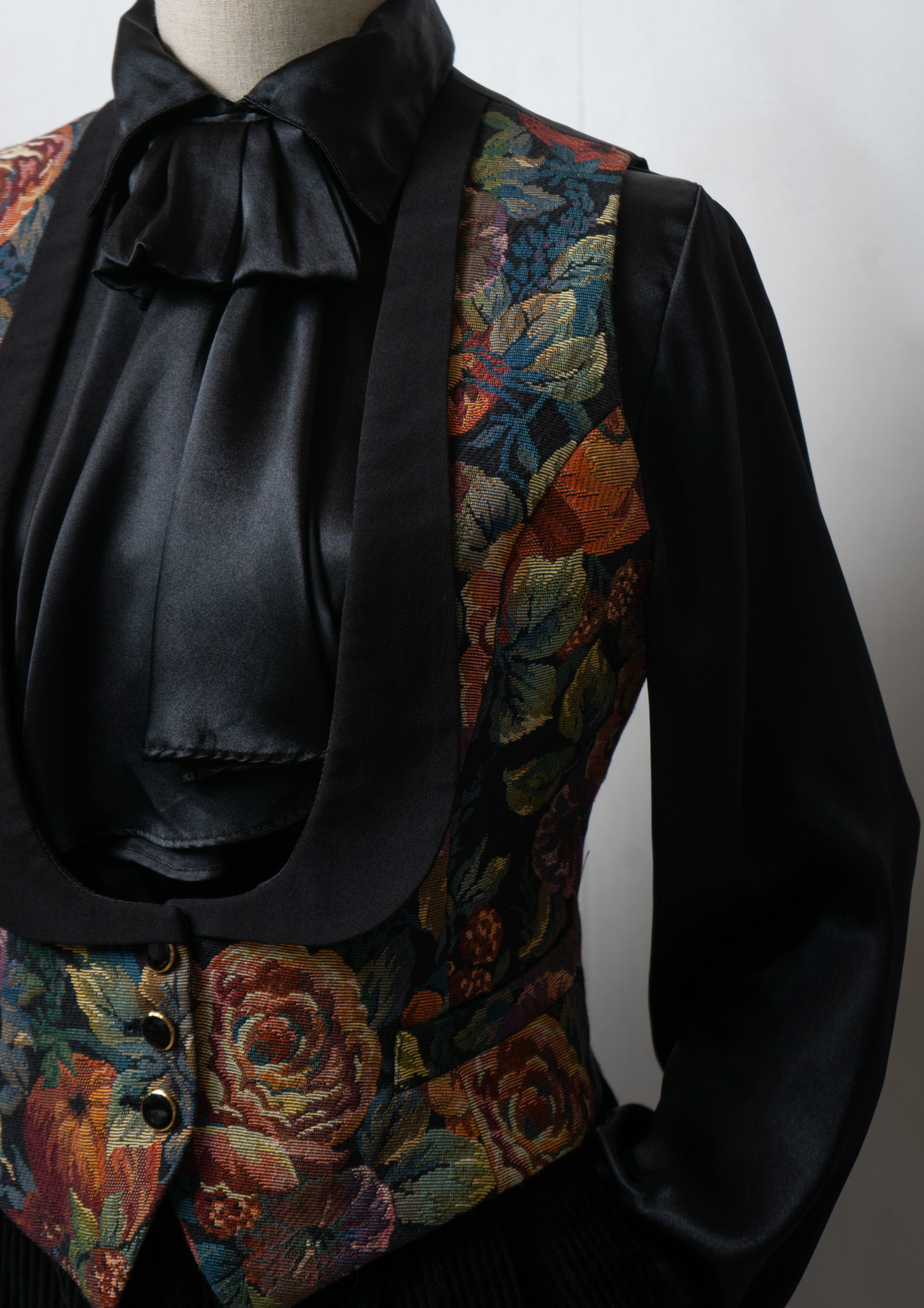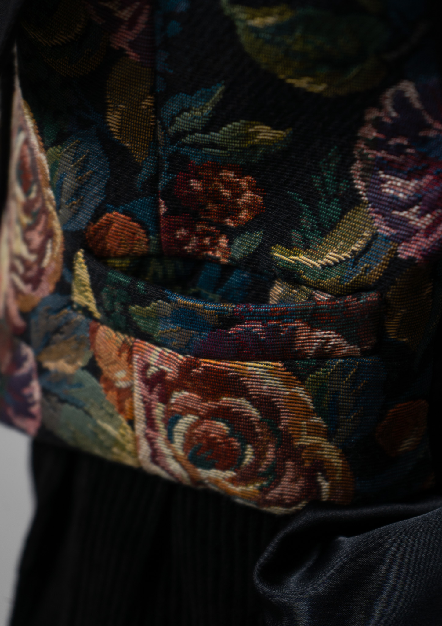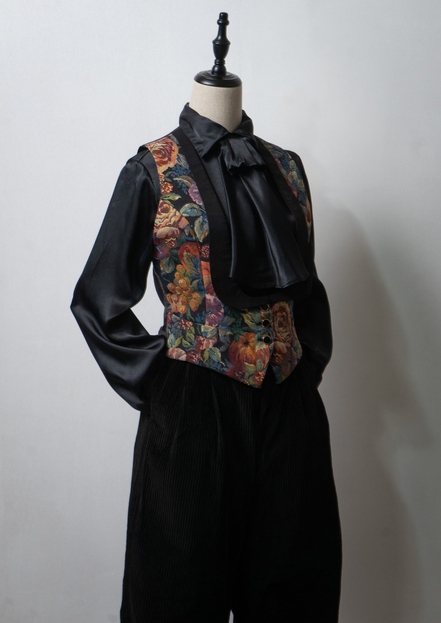 70's Flower × Fluits Pattern Gobeline Black Vest