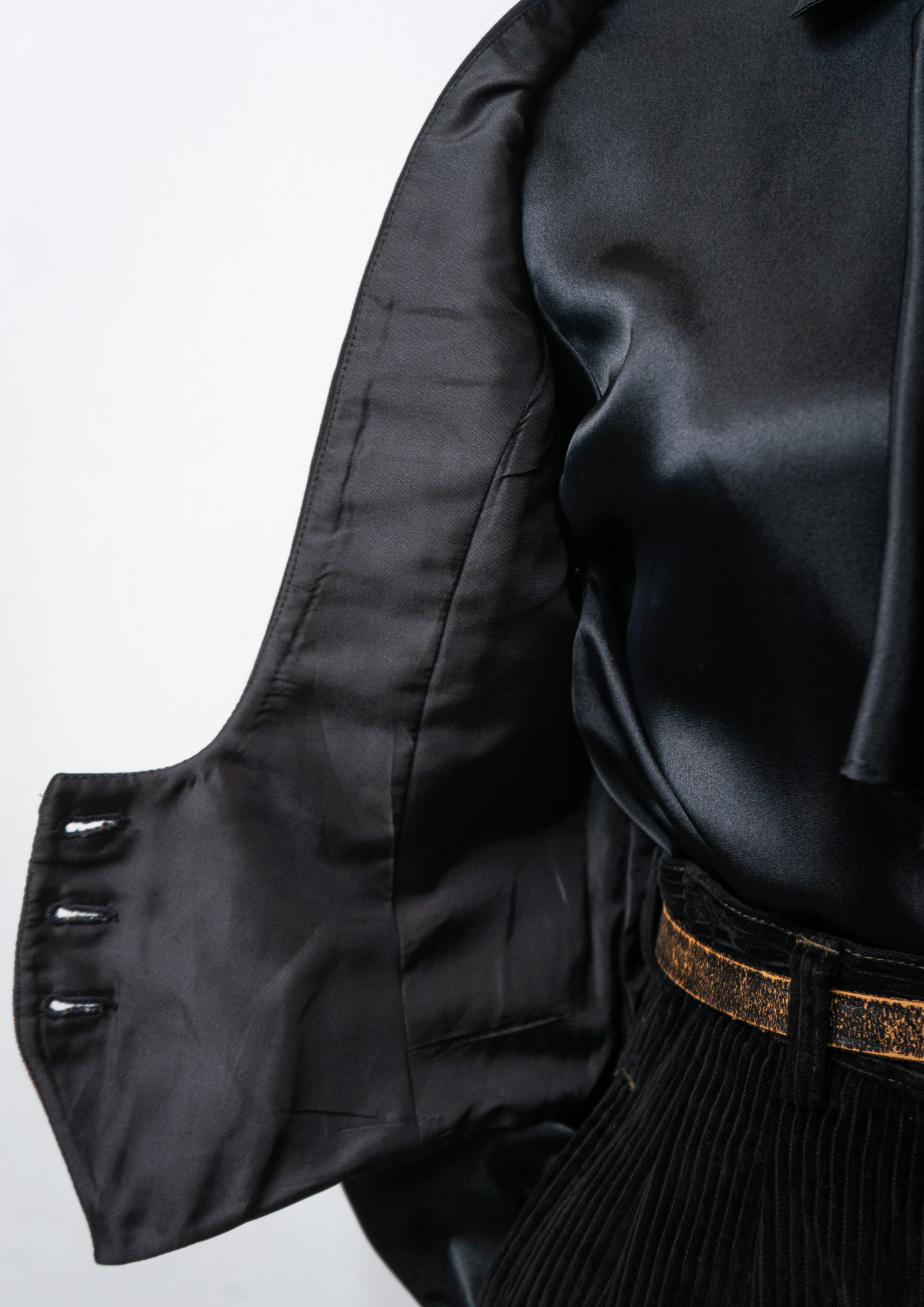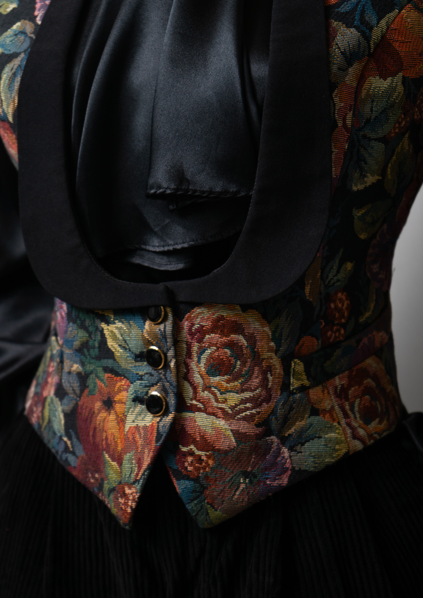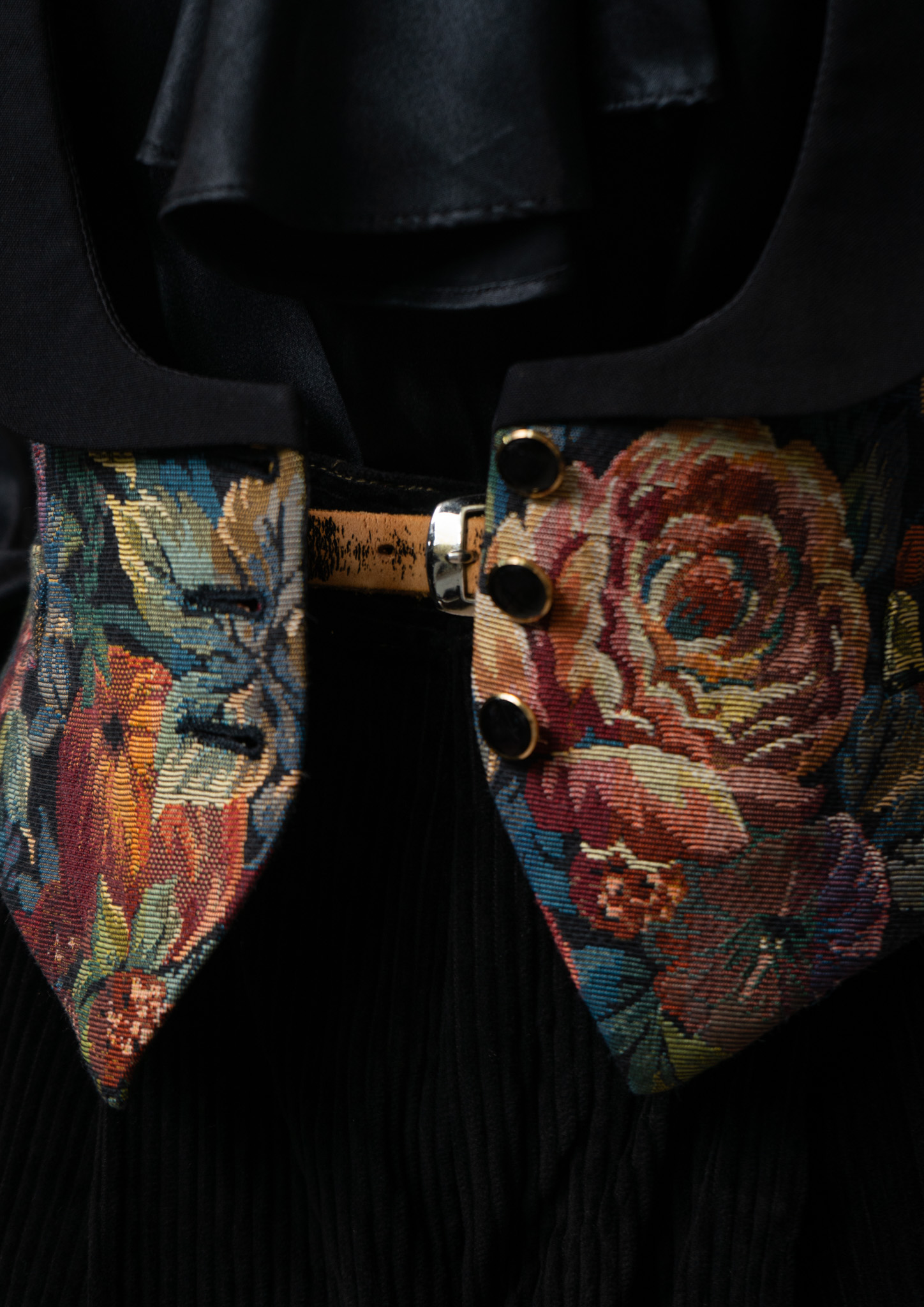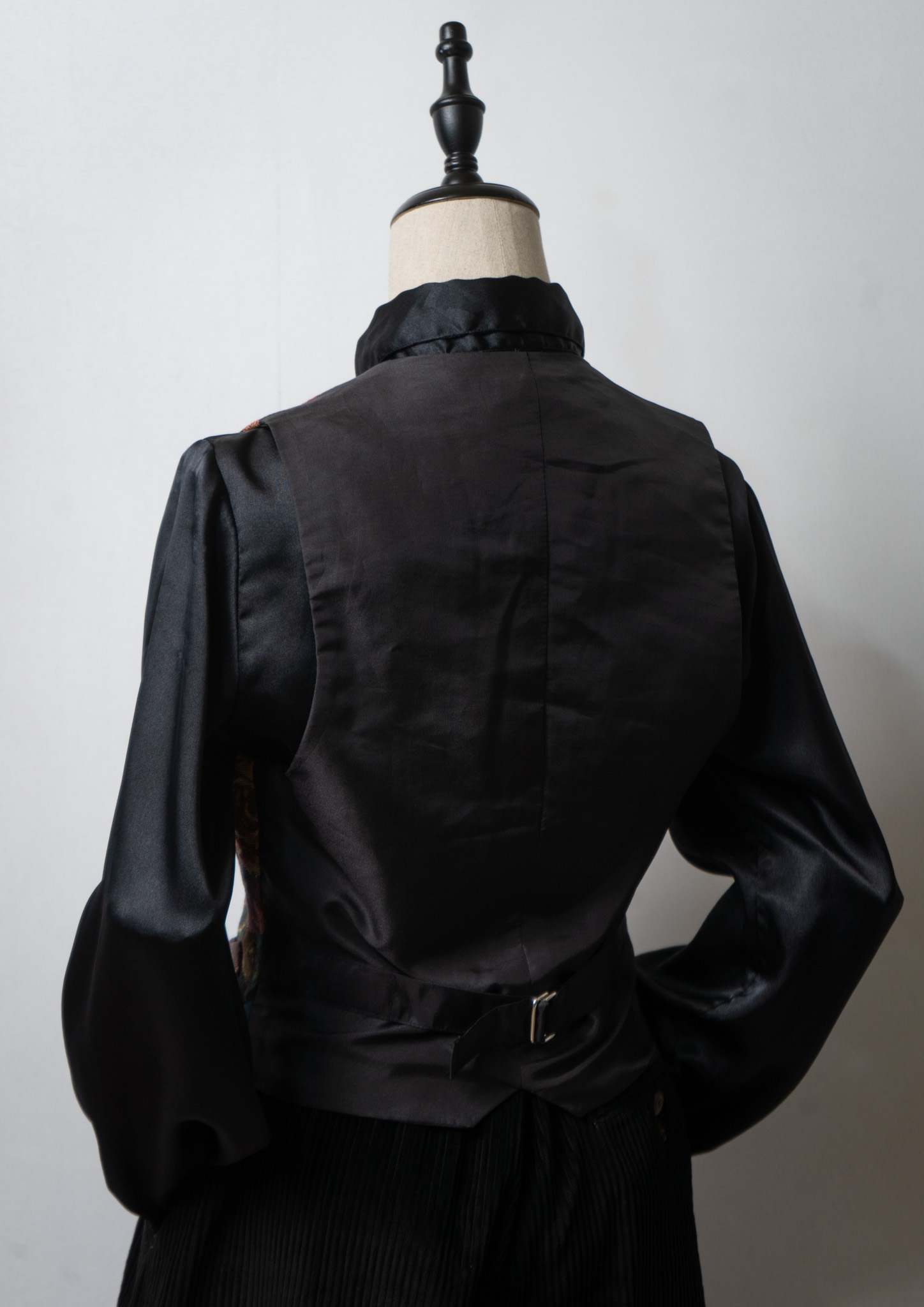 70's Flower × Fluits Pattern Gobeline Black Vest