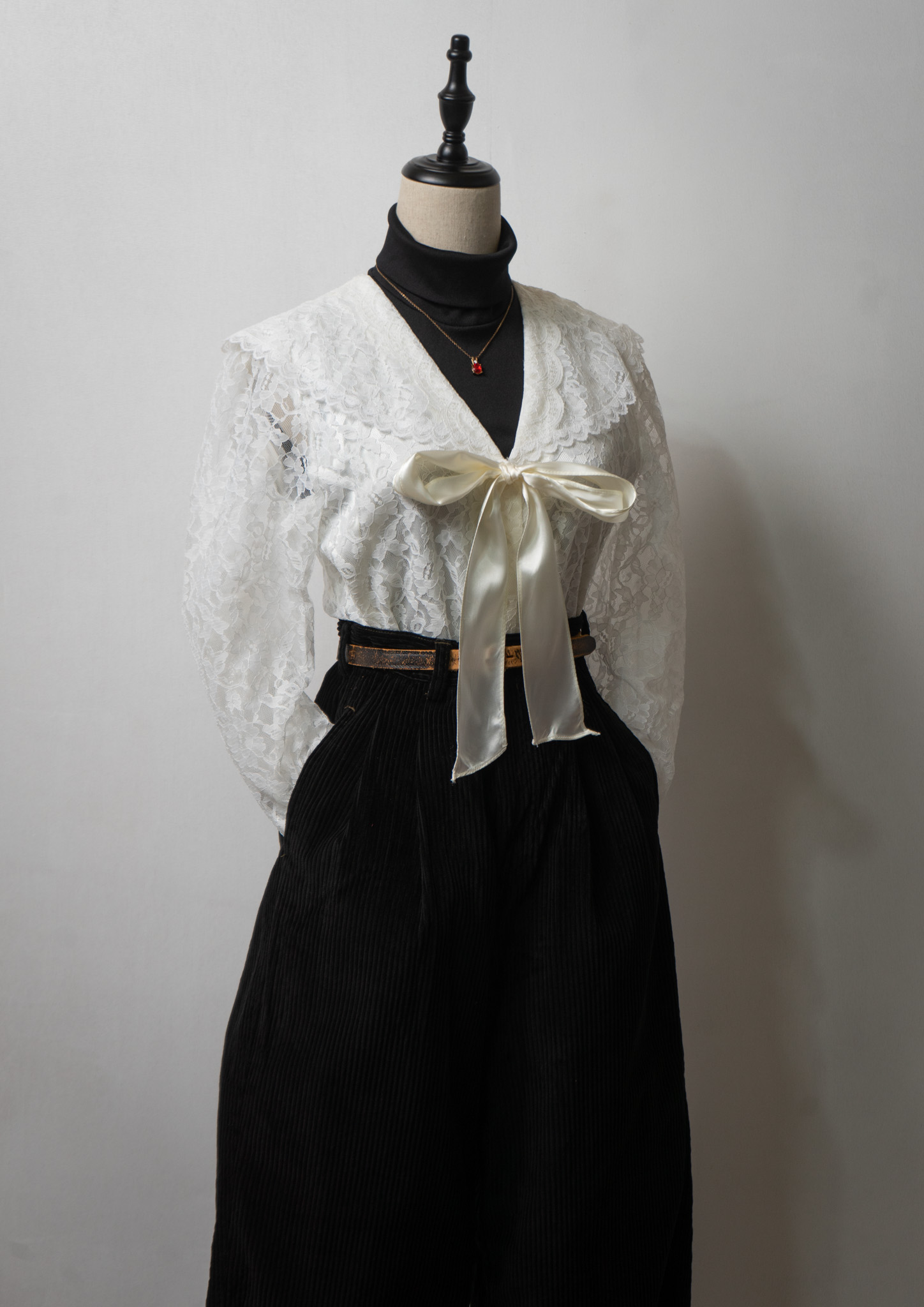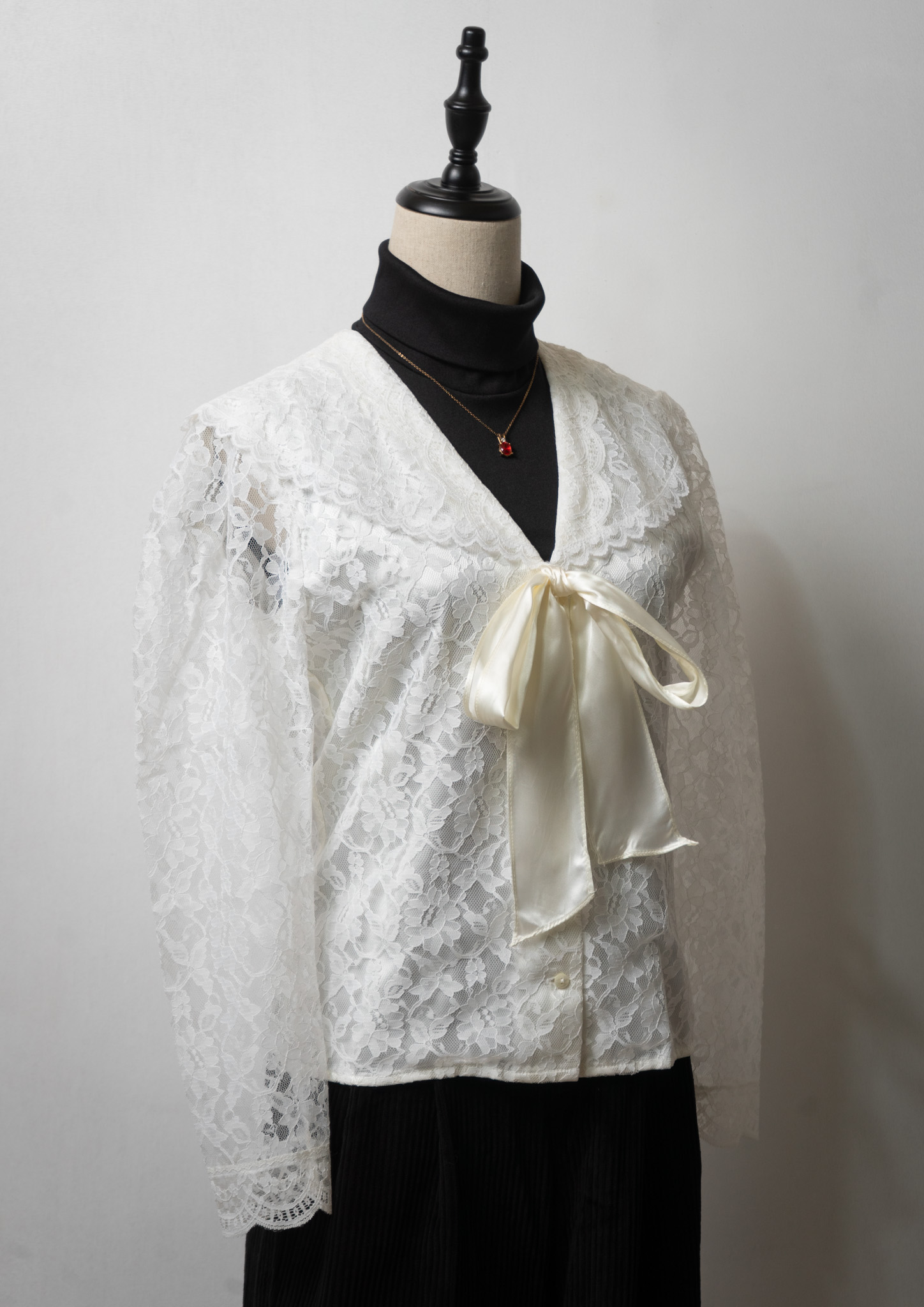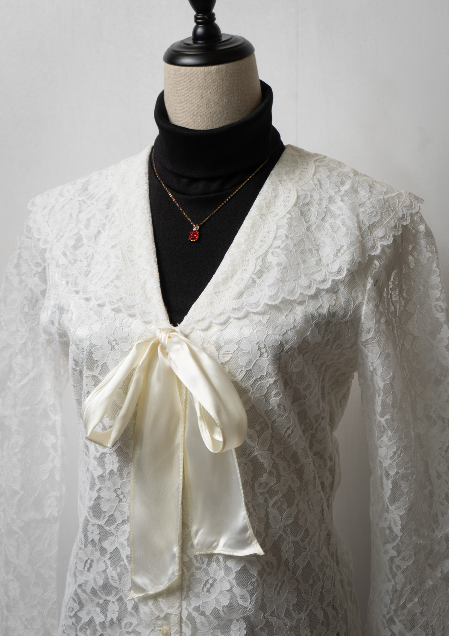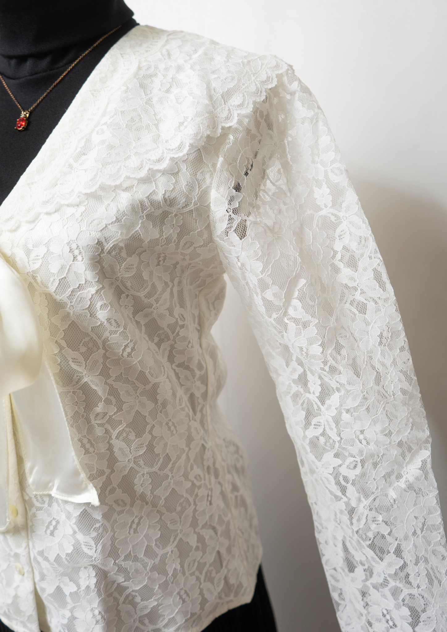 80's GUNNE SAX All Lace Bow-tie White Blouse