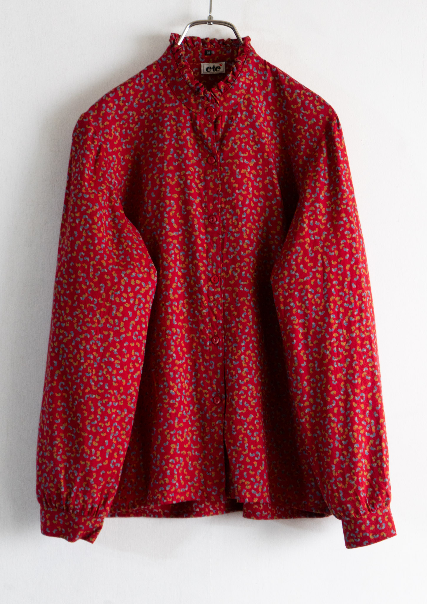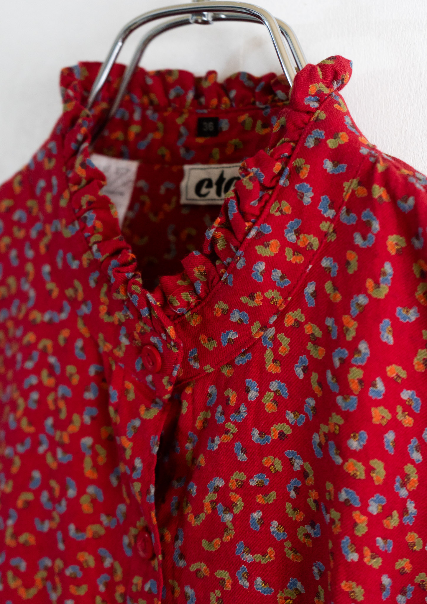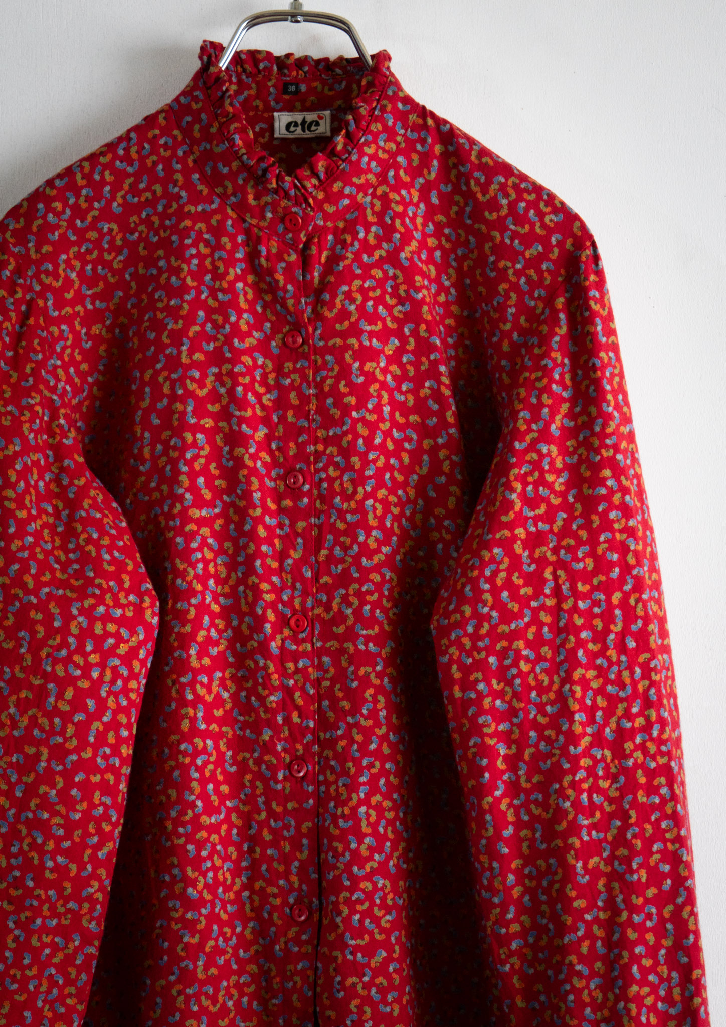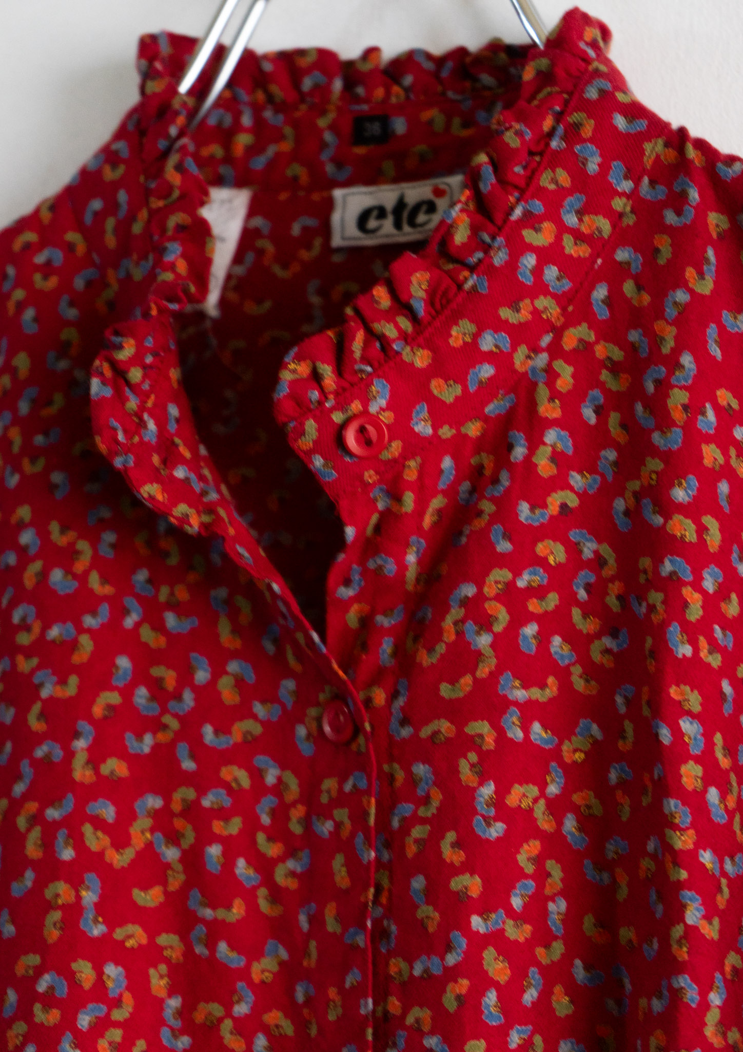 70~80's Euro Flower Motif Pattern Frill Collar Red Blouse