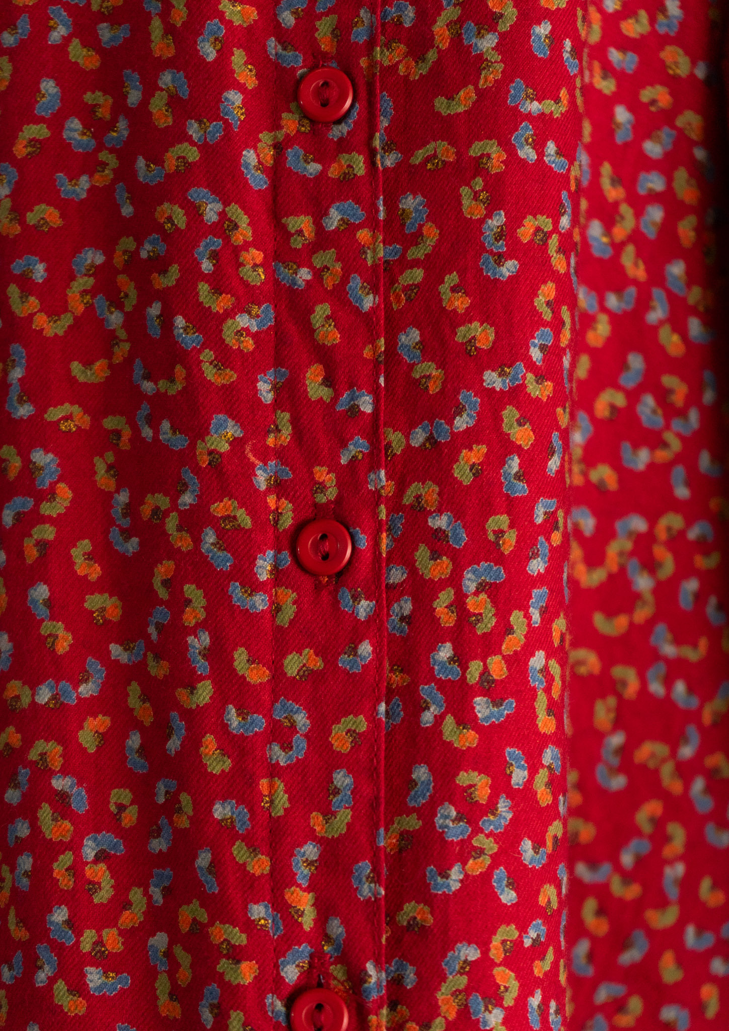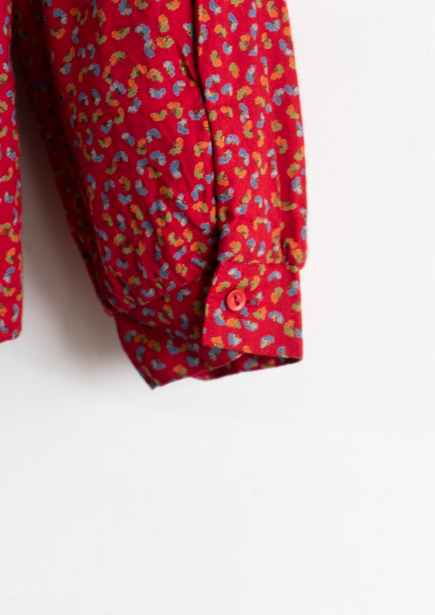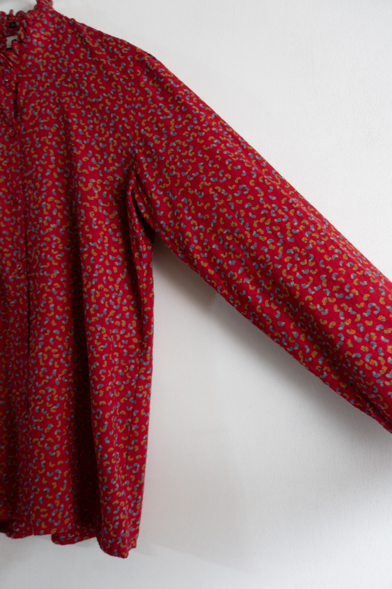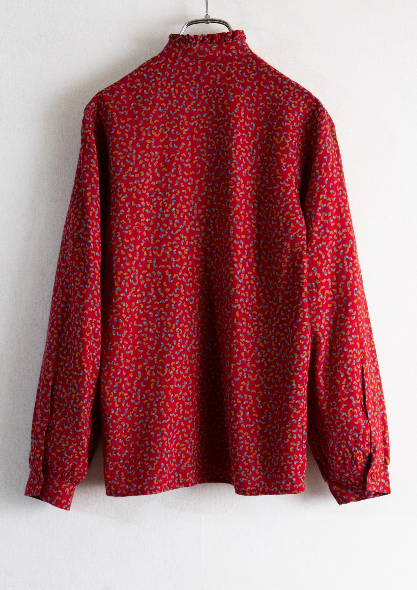 70~80's Euro Flower Motif Pattern Frill Collar Red Blouse
