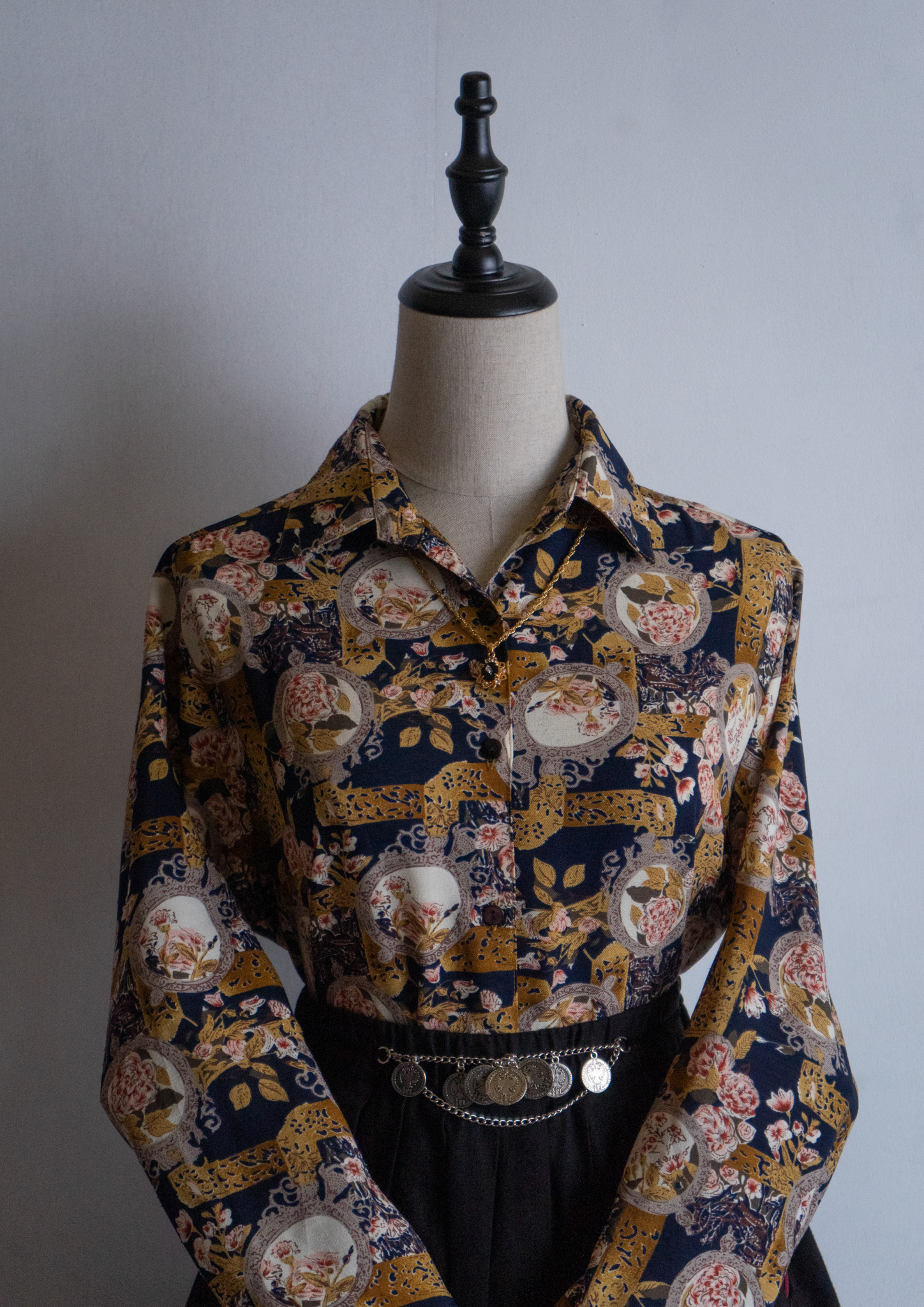 80~90's Pink × Blue Purple Paisley Art Pattern Blouse Jacket