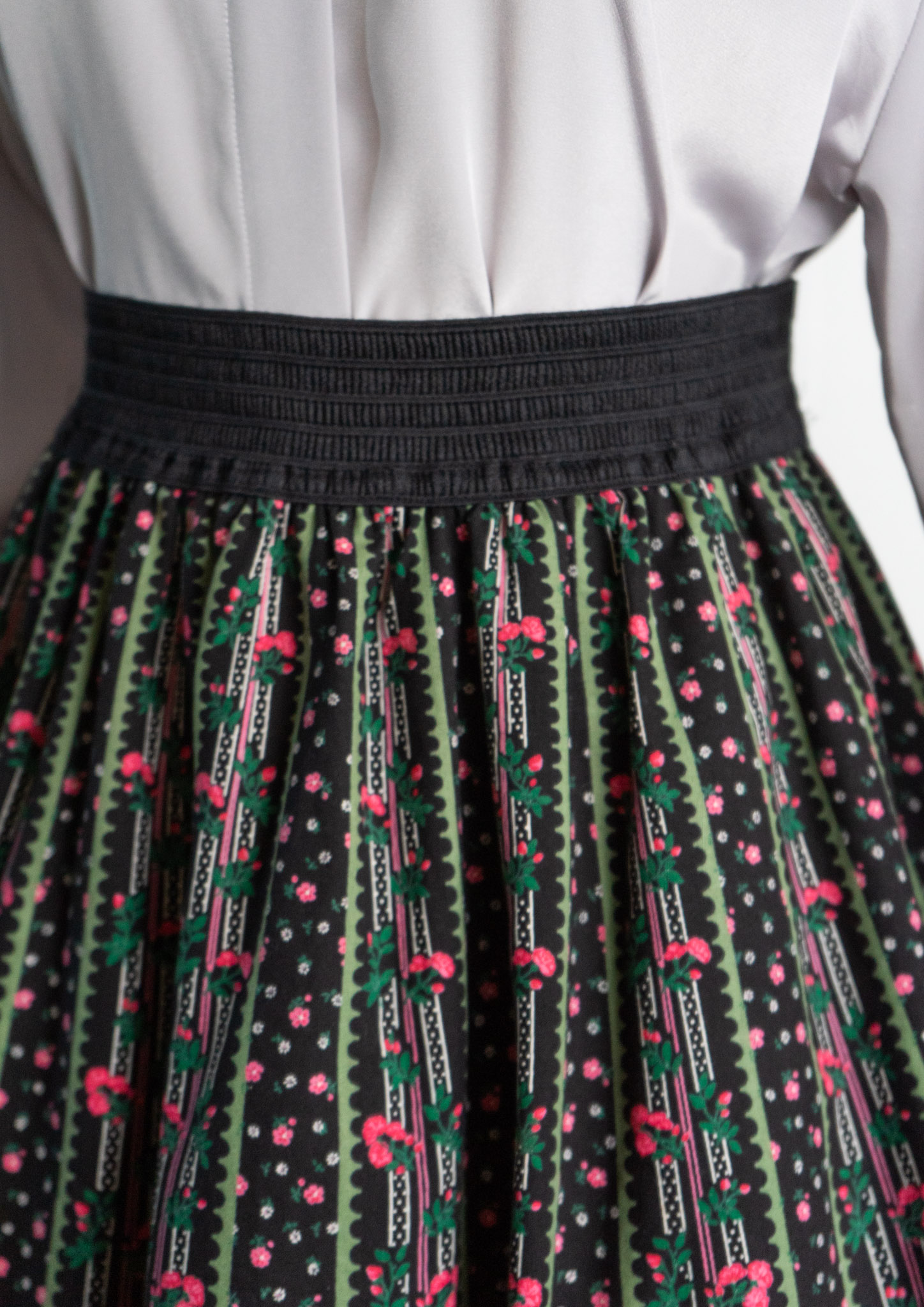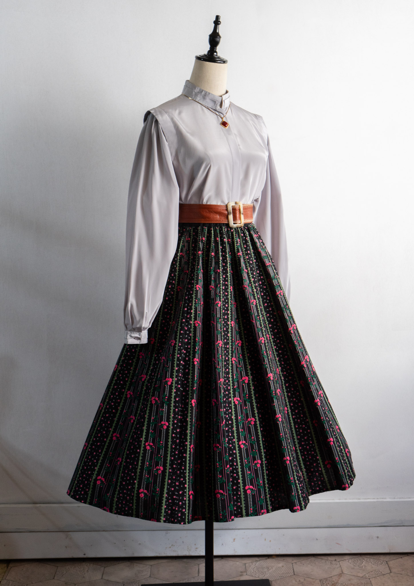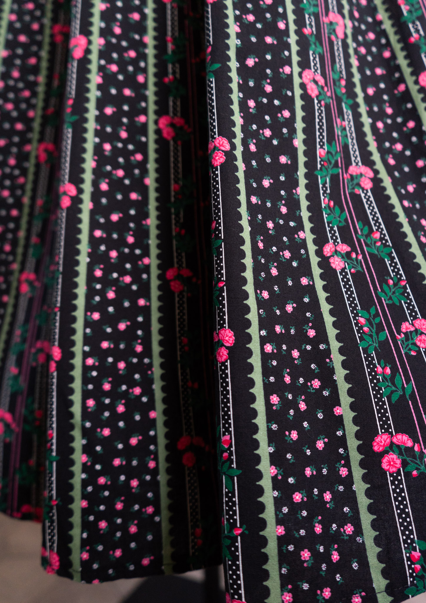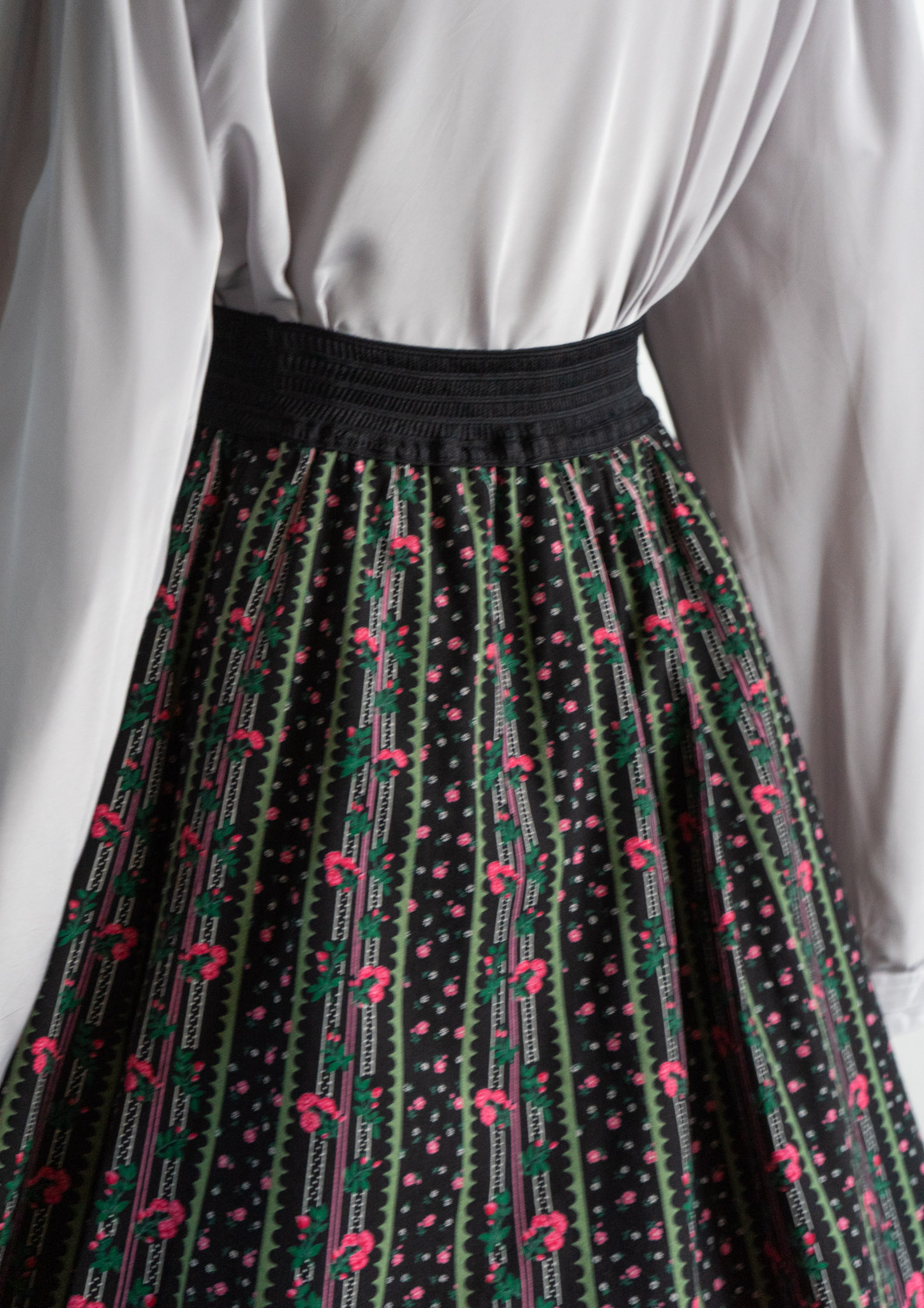 90's Euro Pink Flower × Stripe Pattern Black Tyrol Skirt