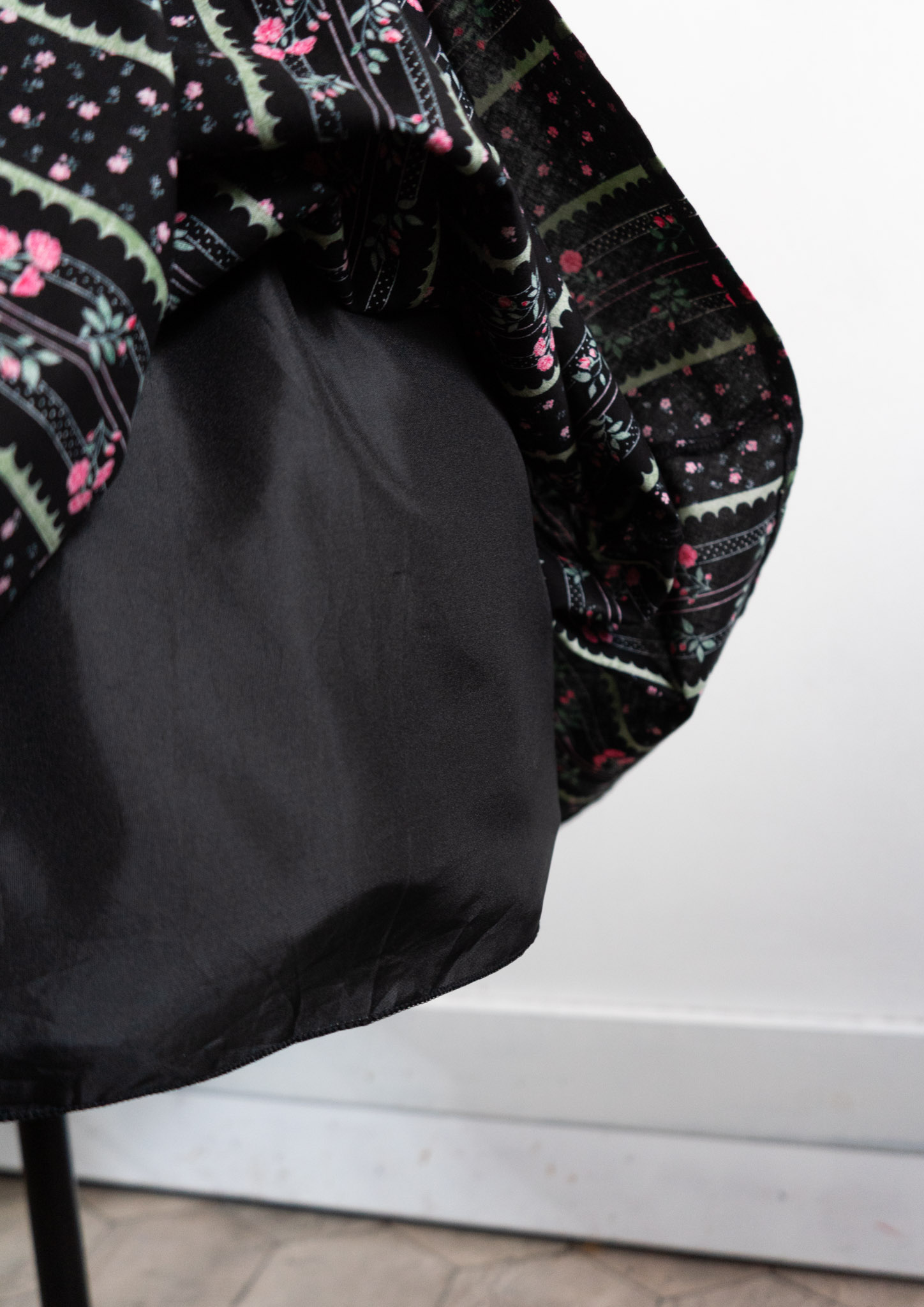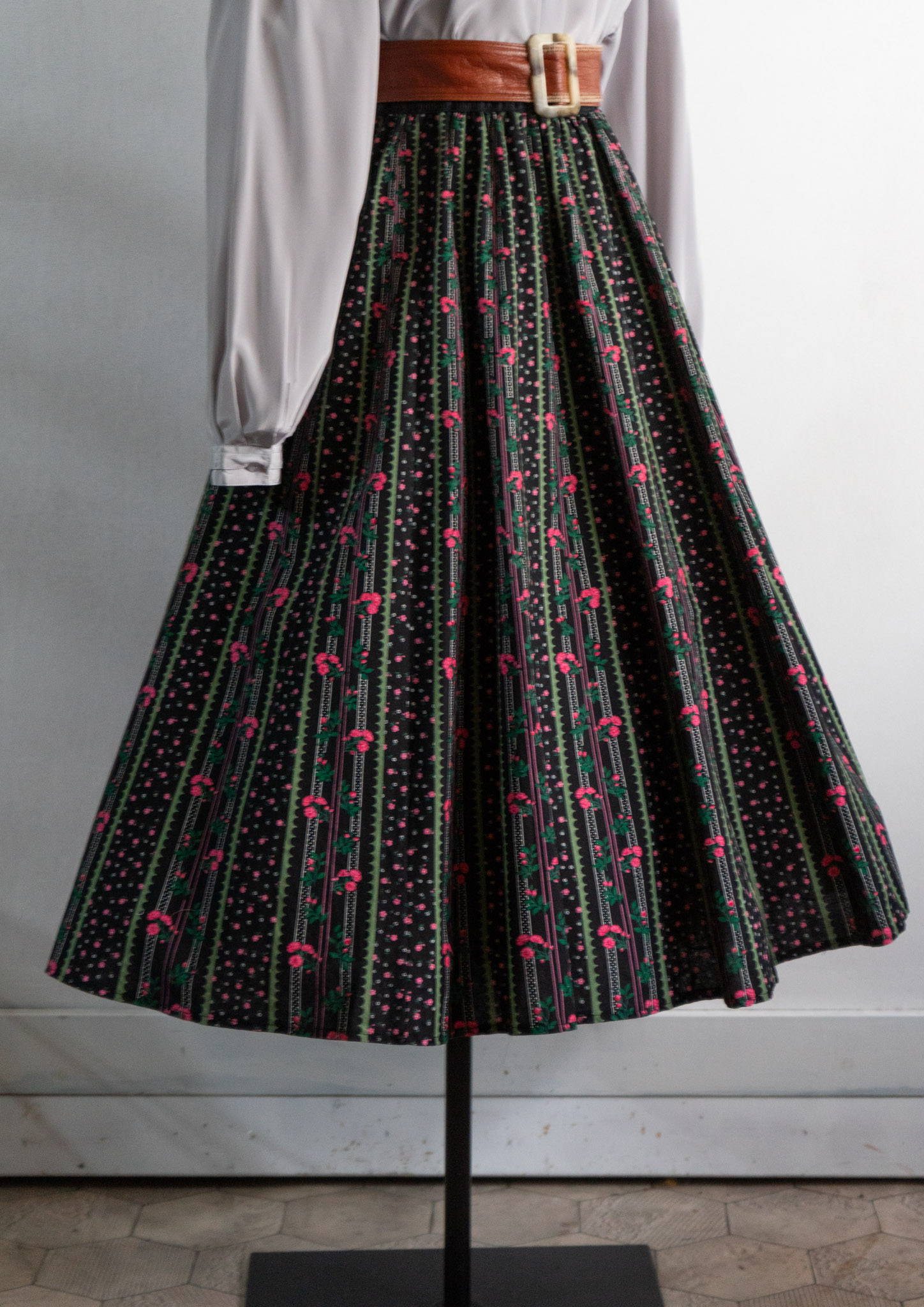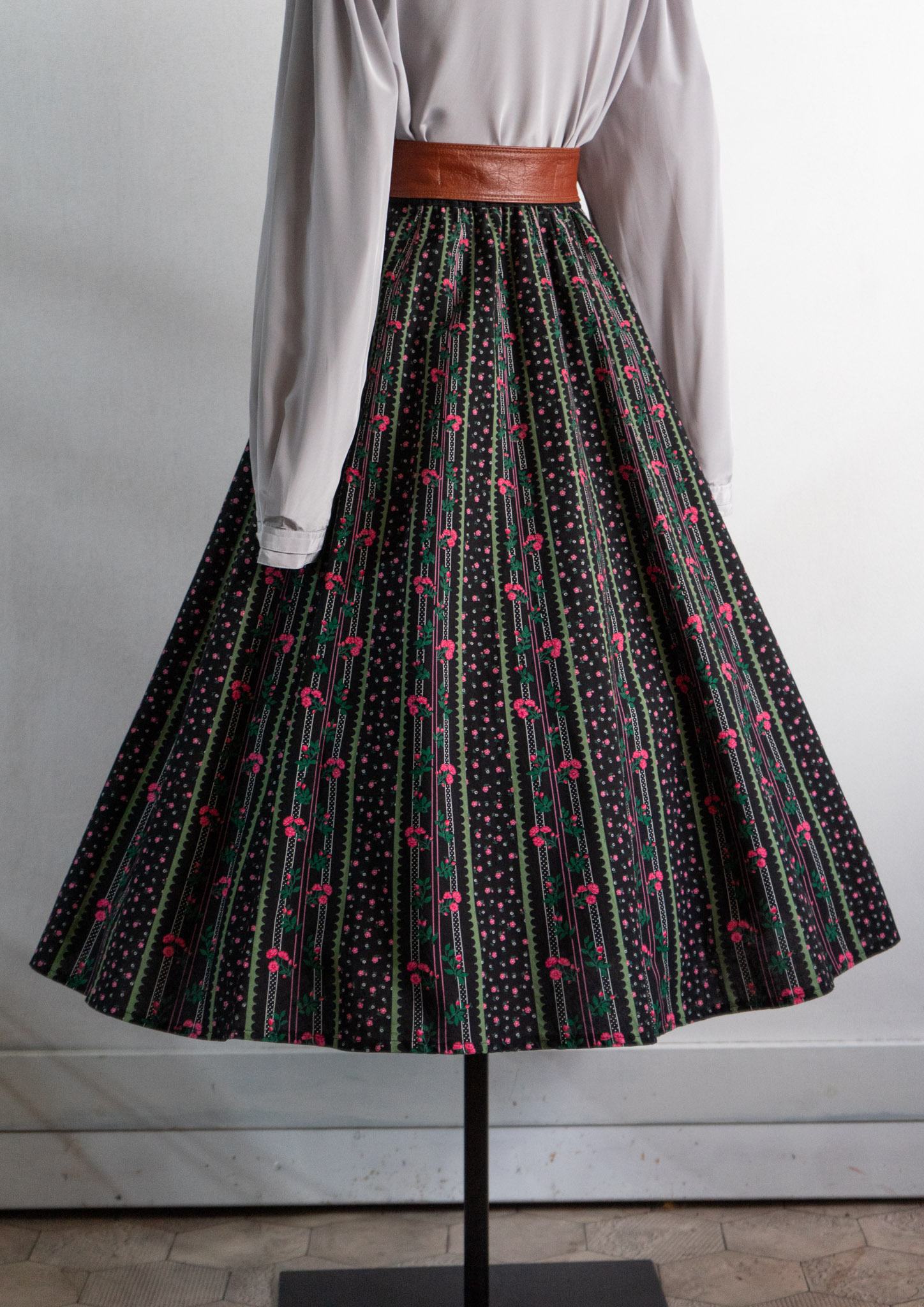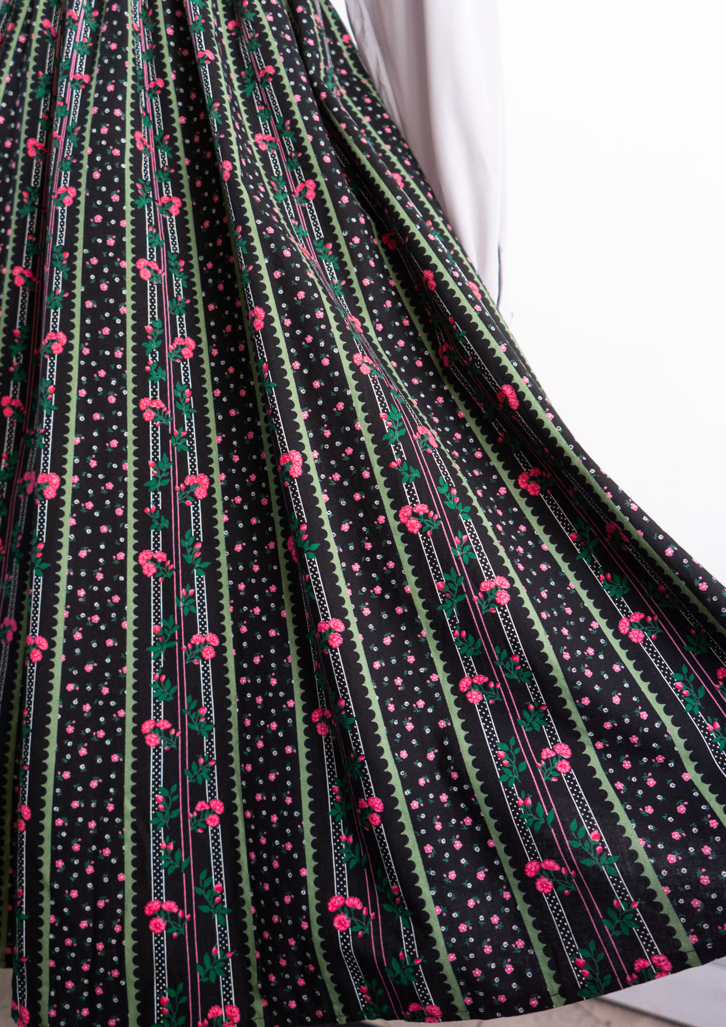 90's Euro Pink Flower × Stripe Pattern Black Tyrol Skirt