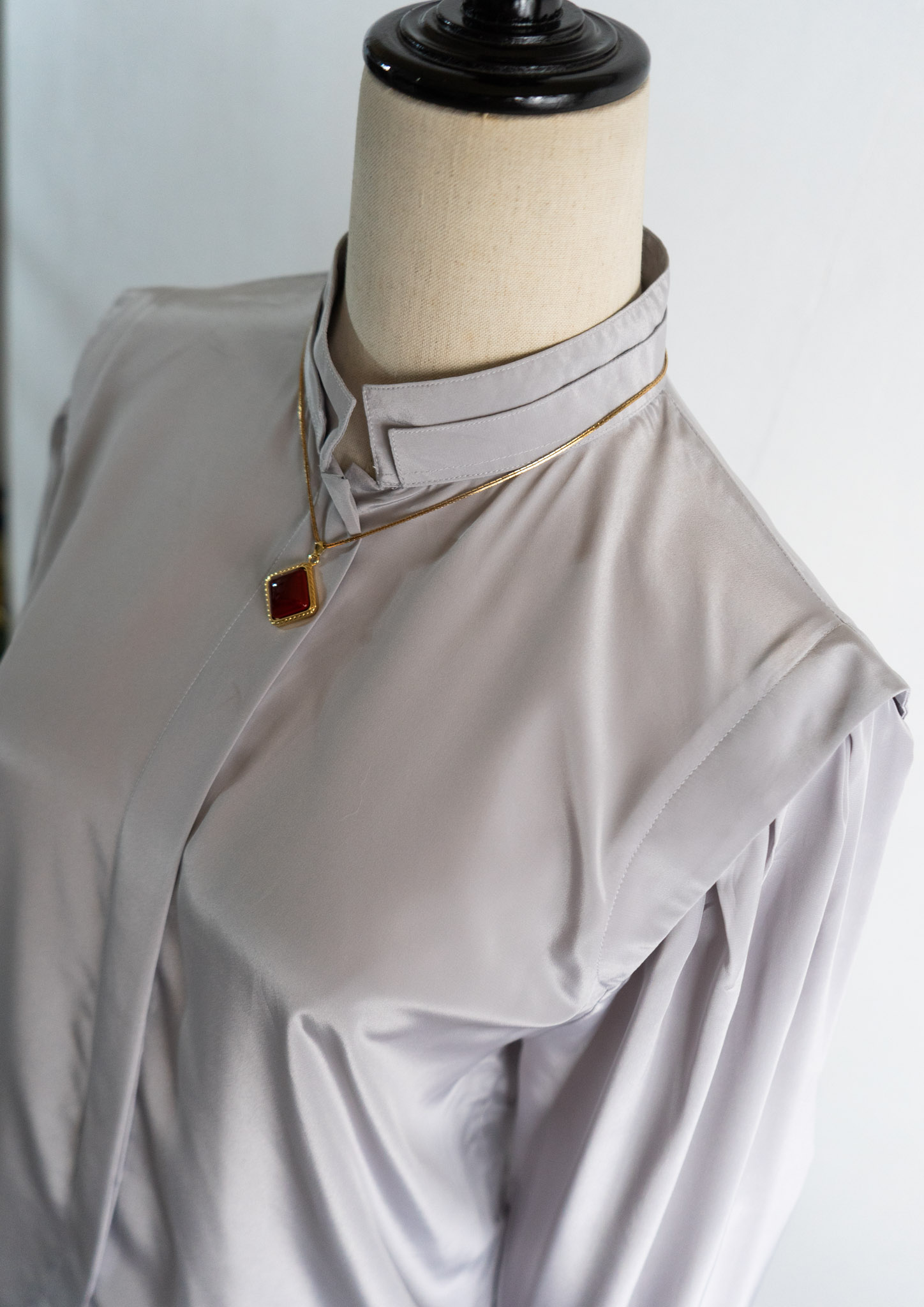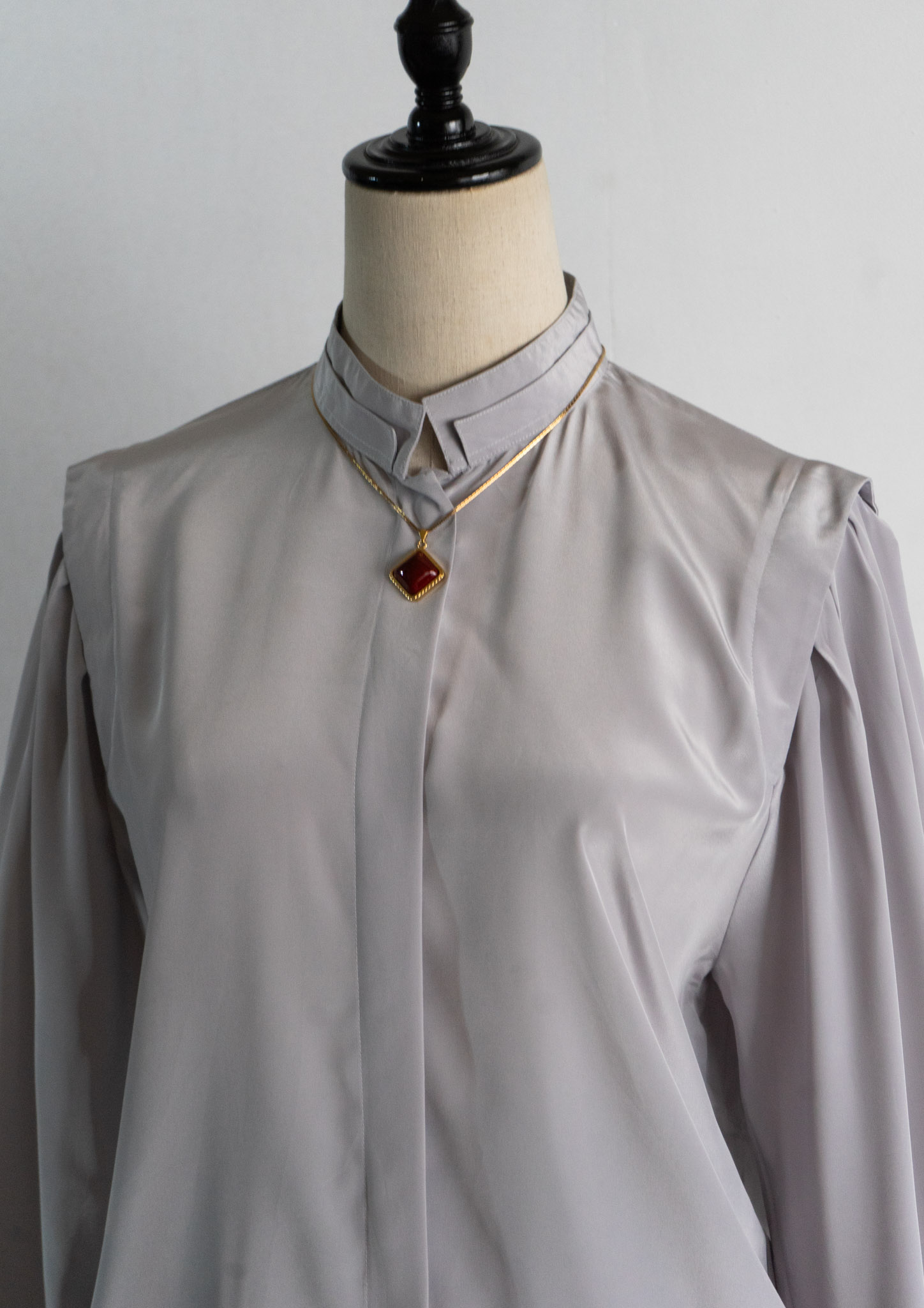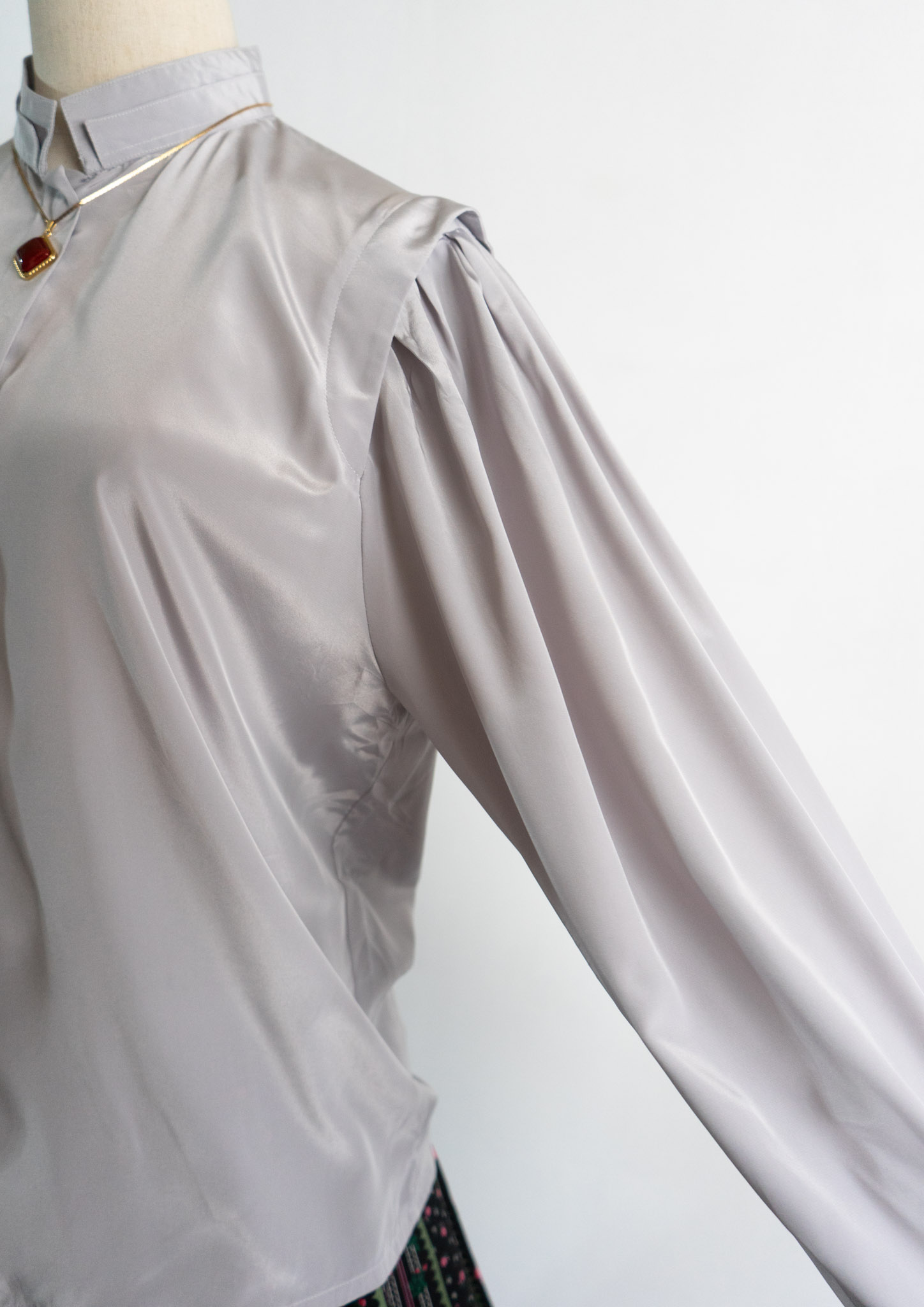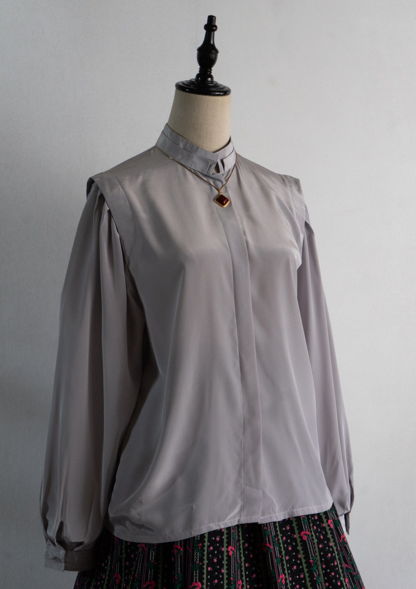 80~90's Euro Double Stand Collar Light Gray Blouse