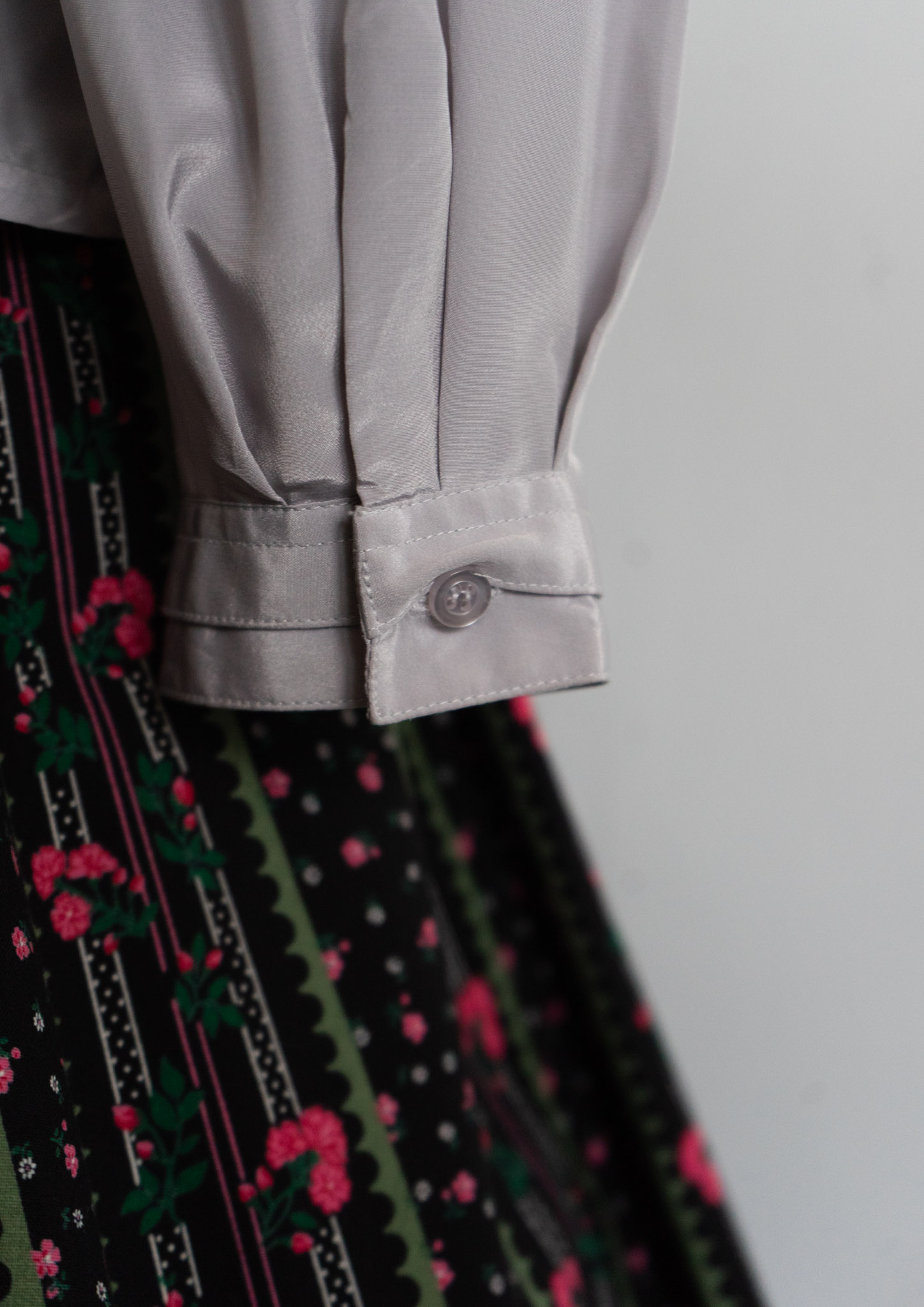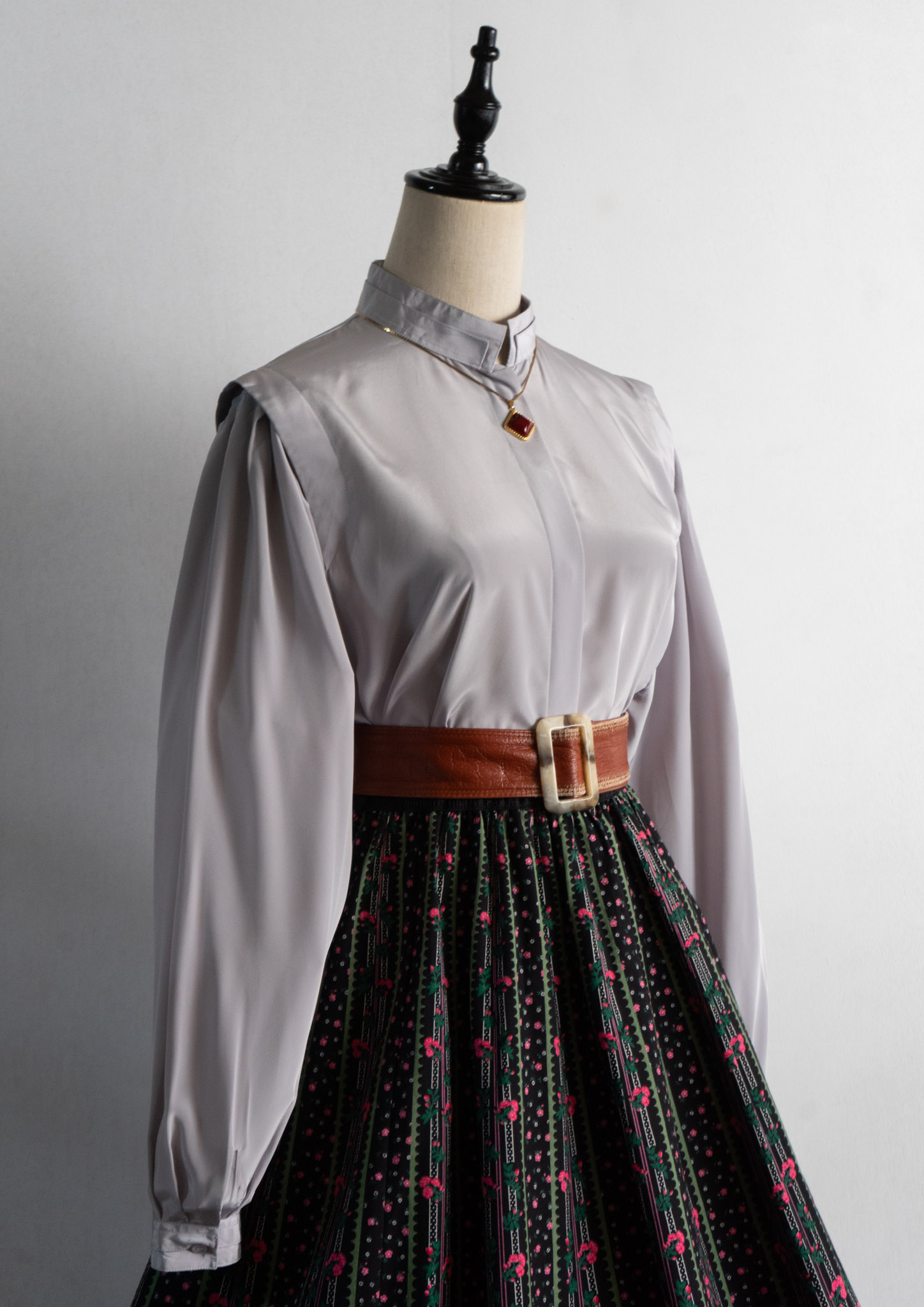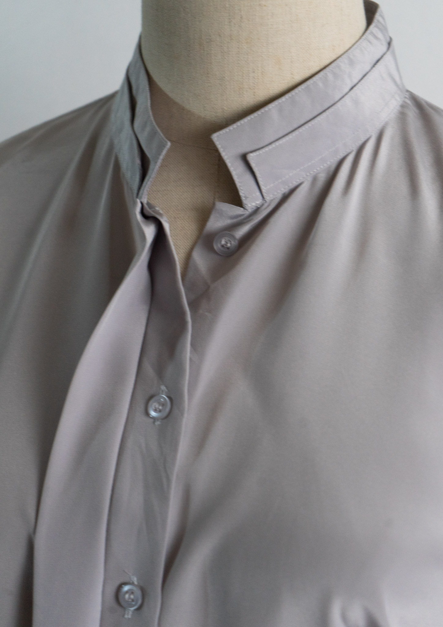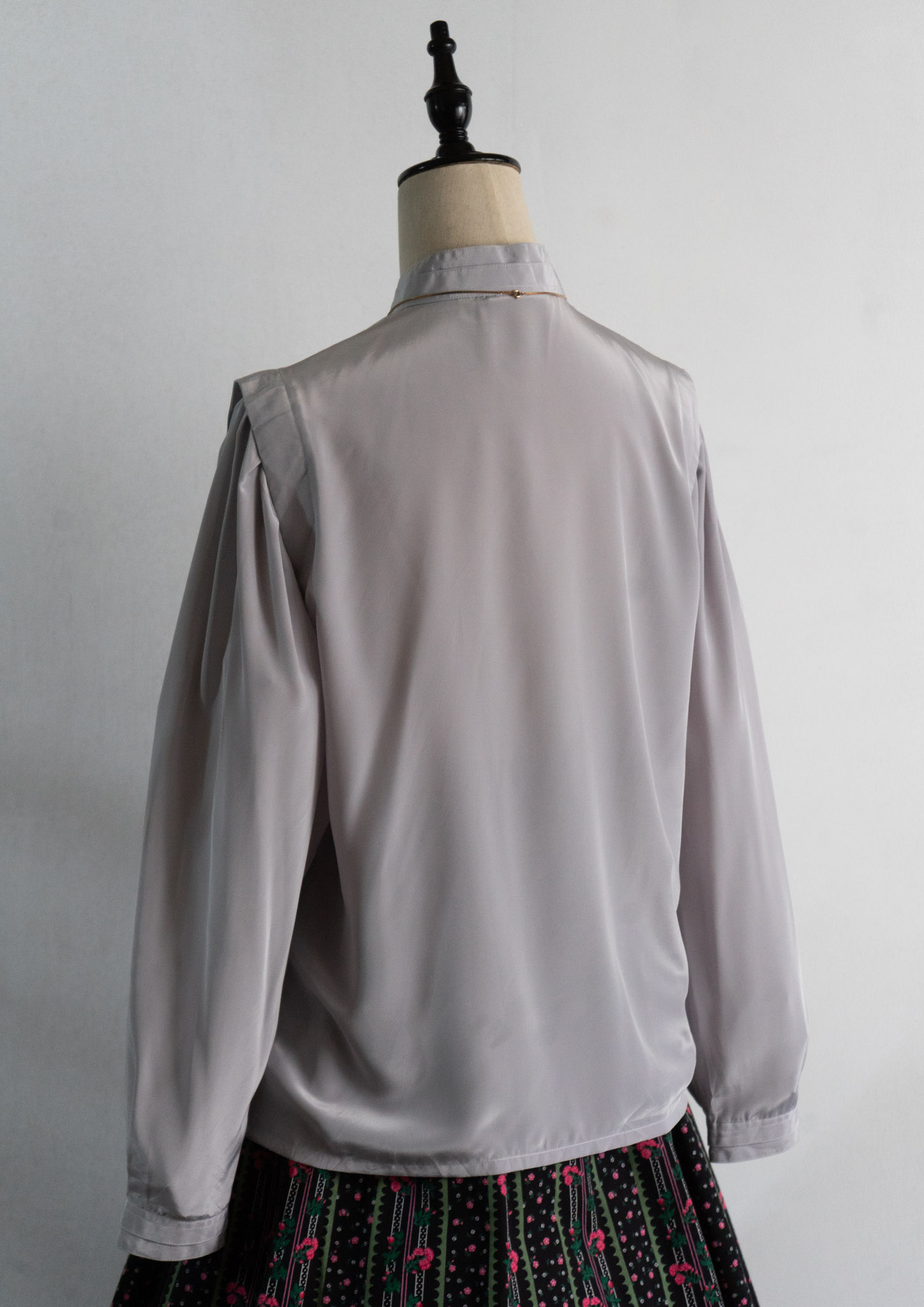 80~90's Euro Double Stand Collar Light Gray Blouse