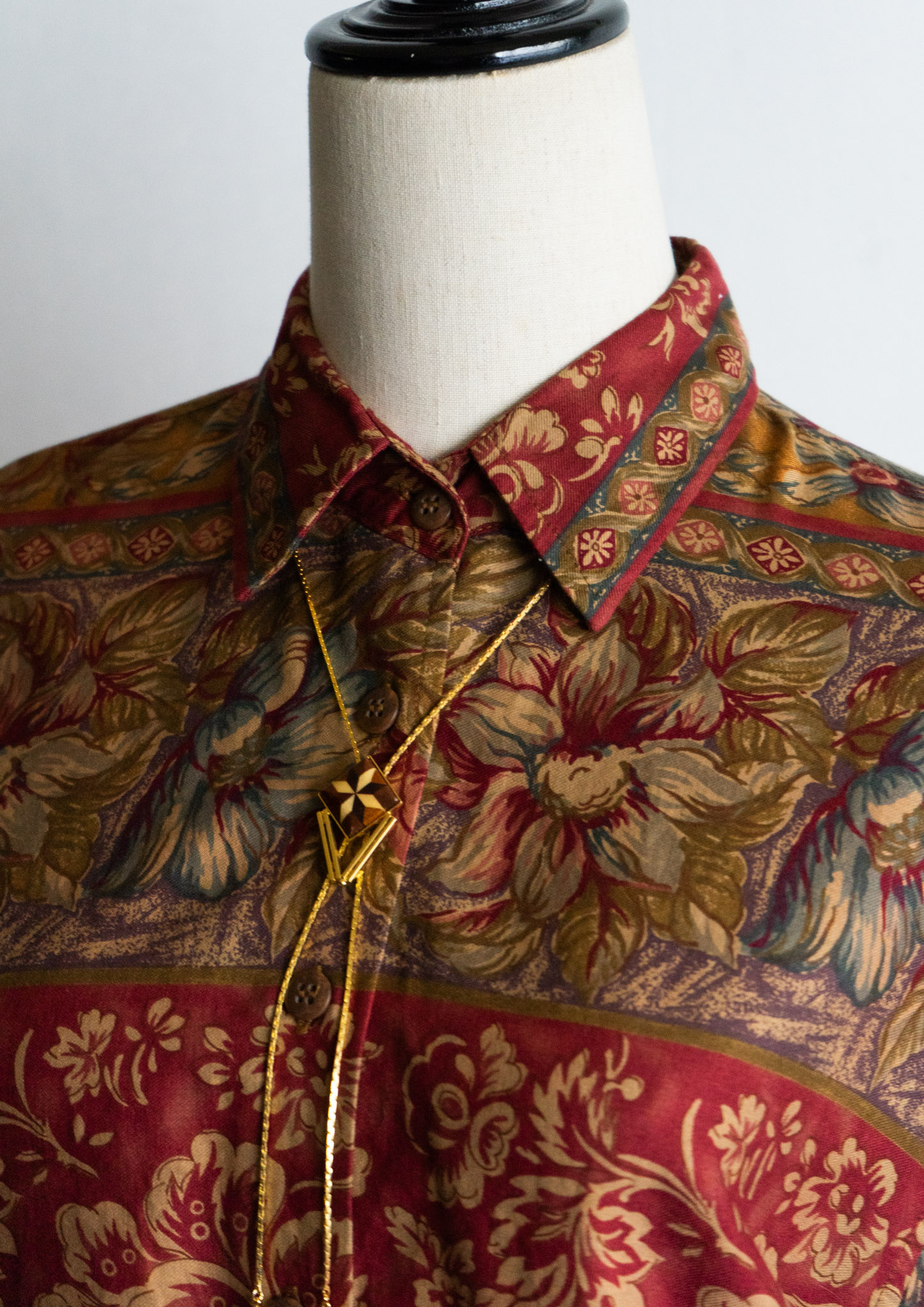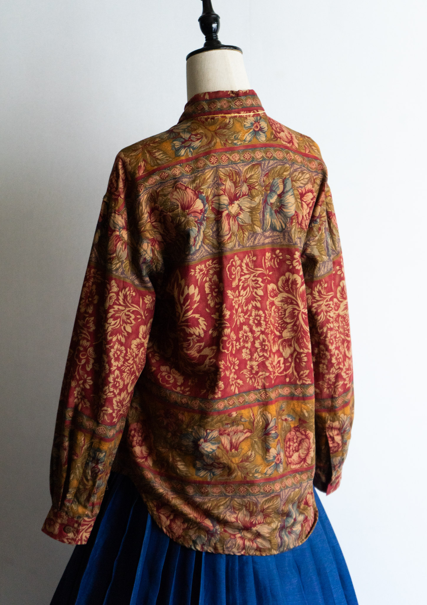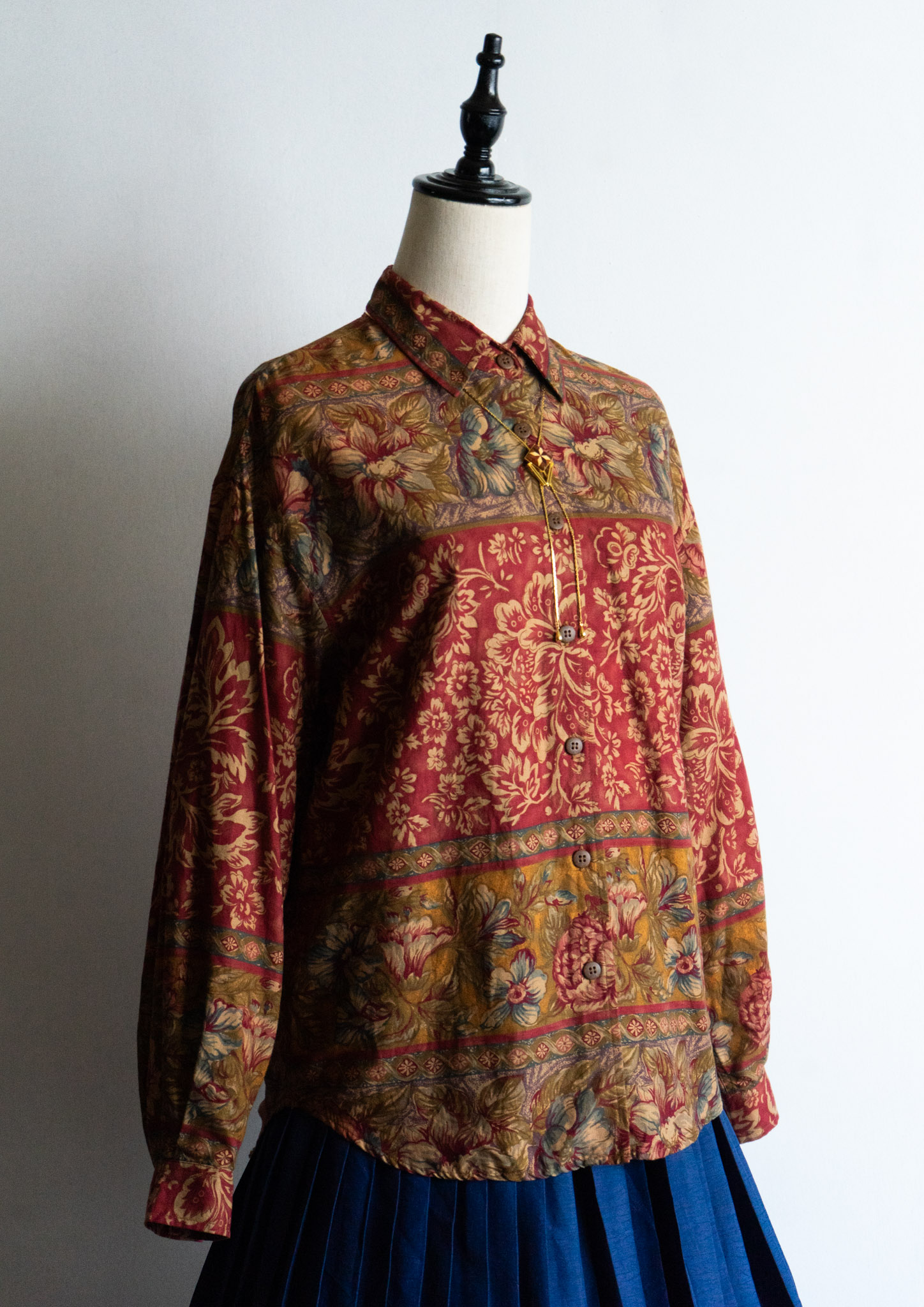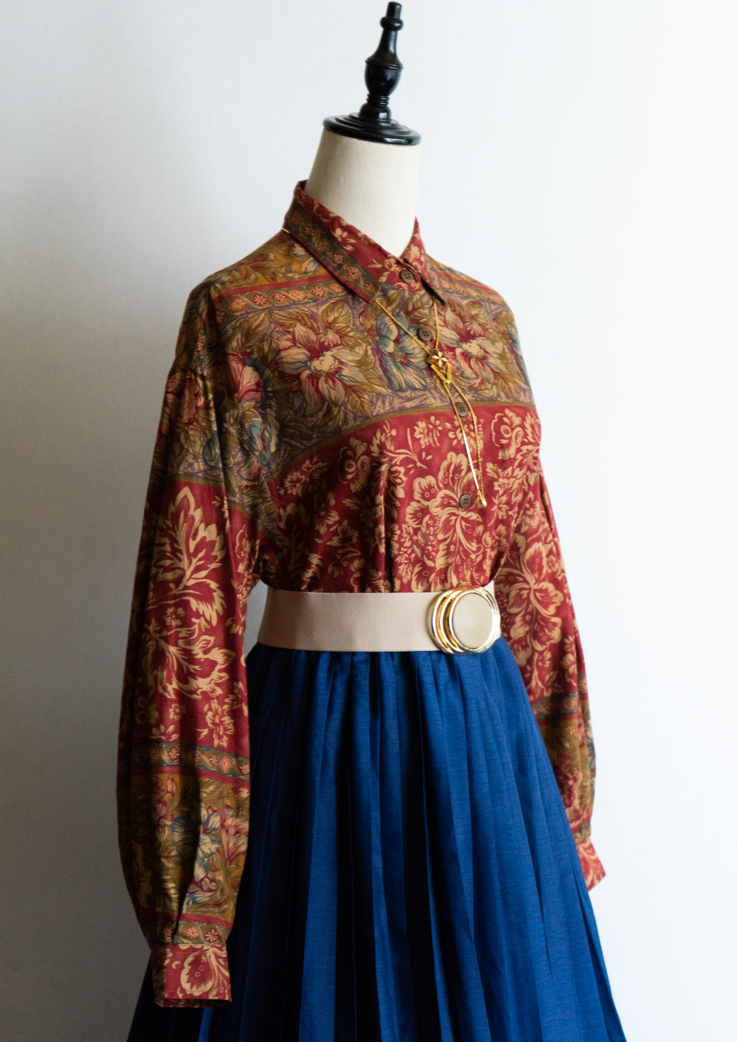 90's Stained glass Like Art Pattern Autumn Color Blouse