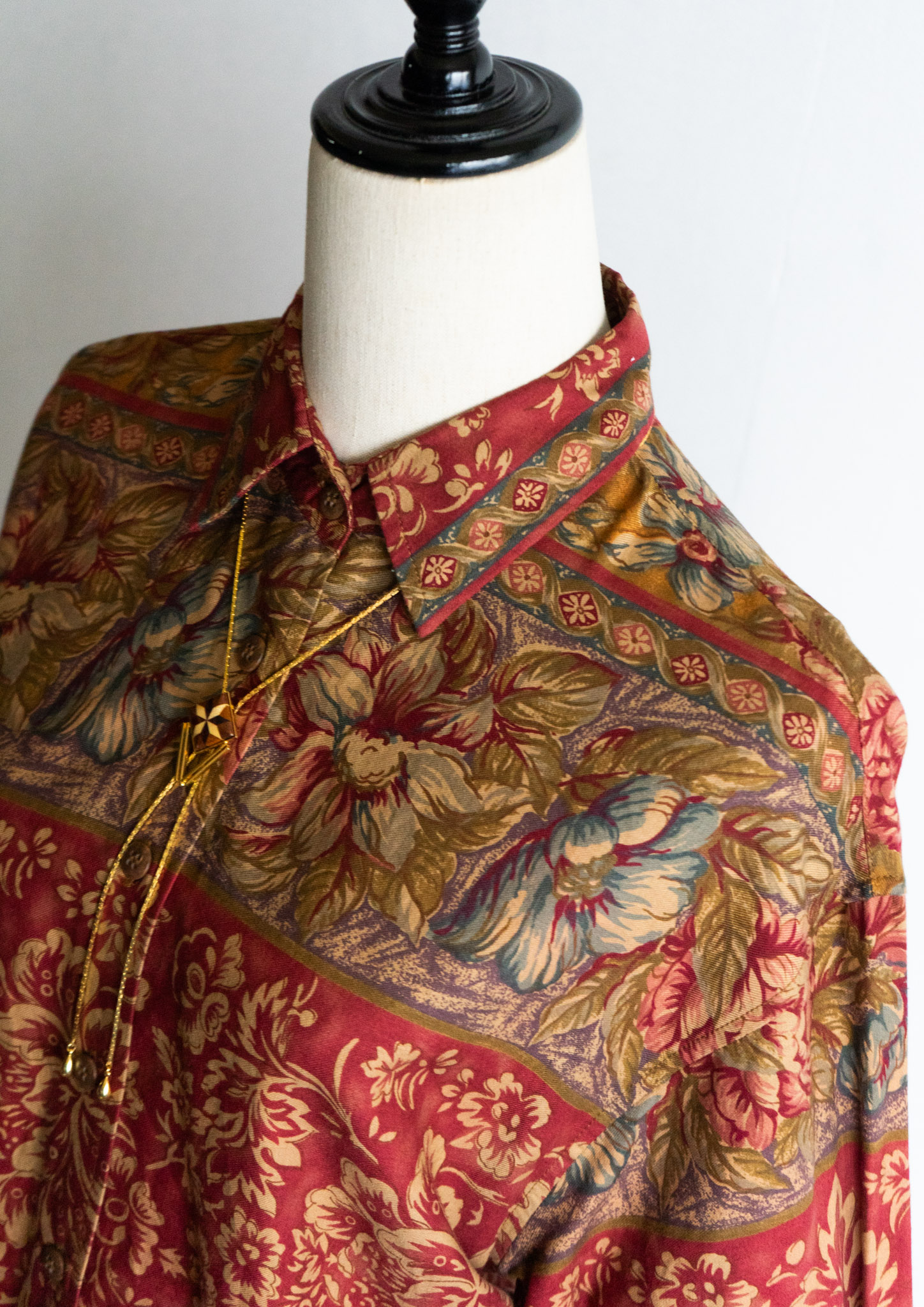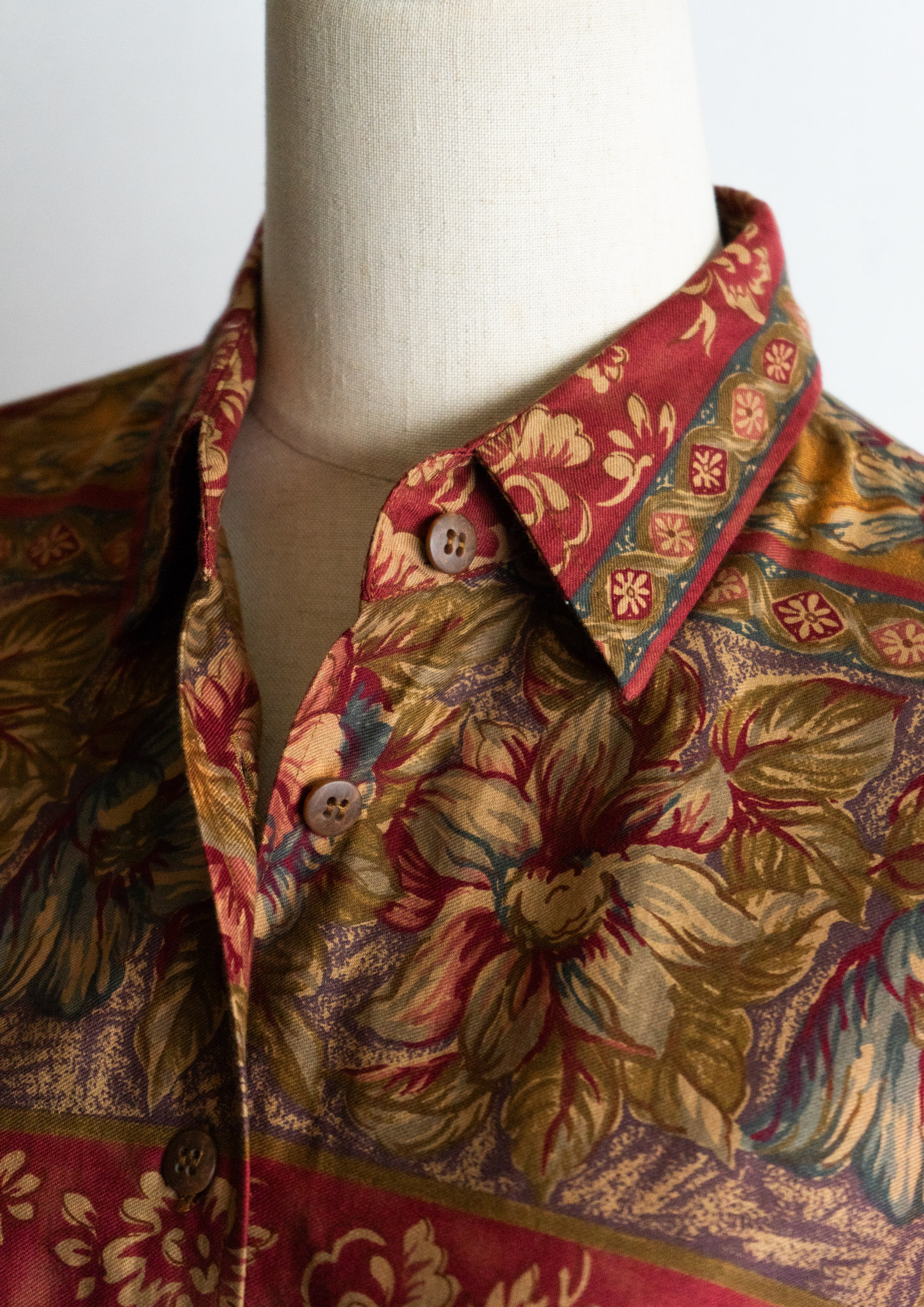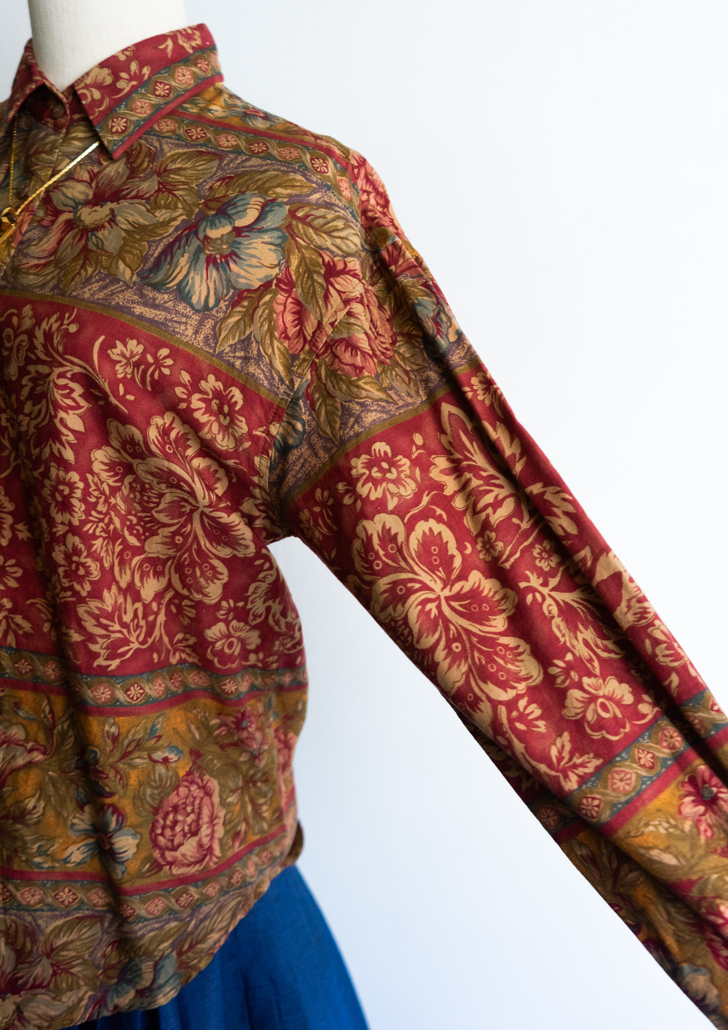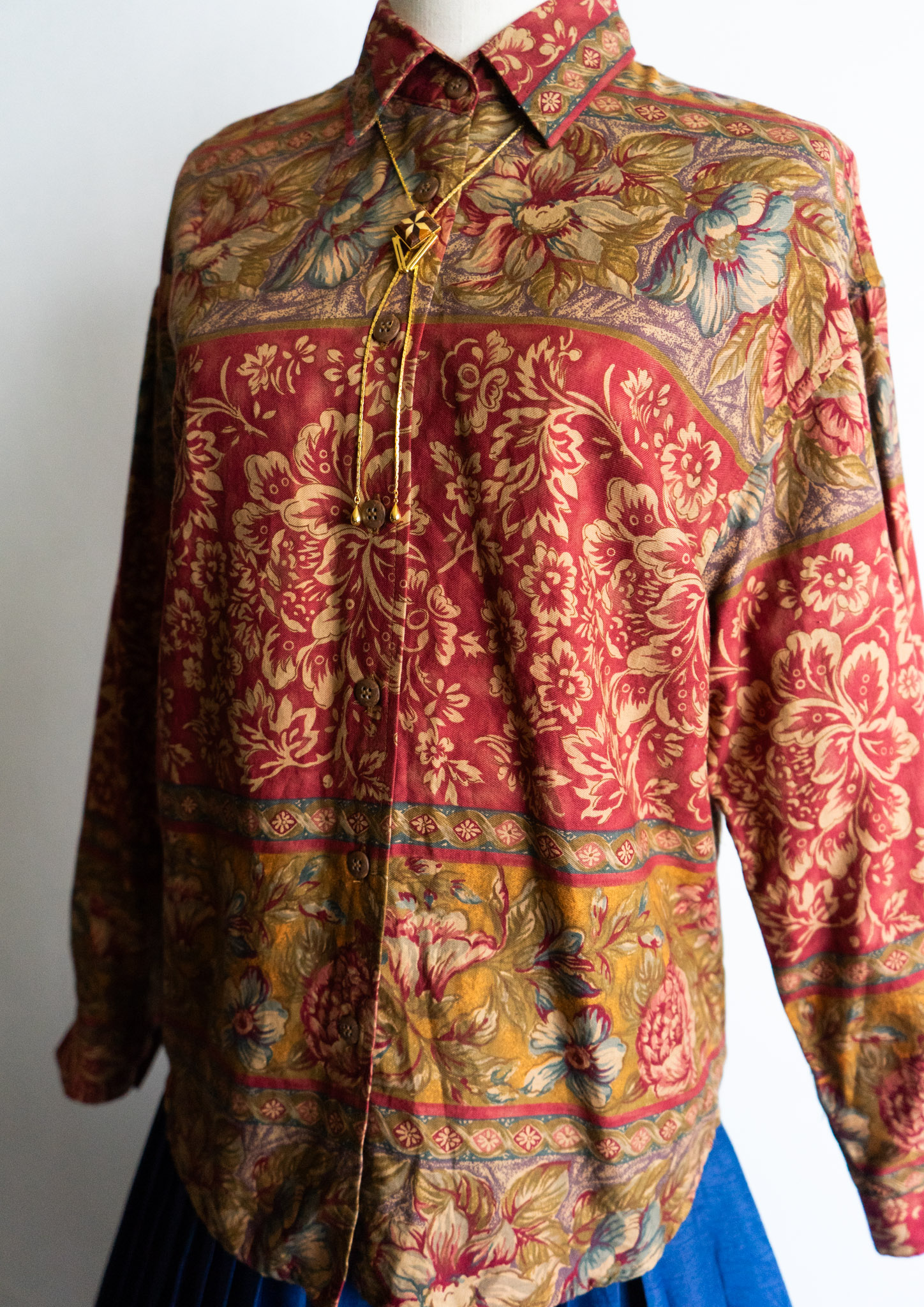 90's Stained glass Like Art Pattern Autumn Color Blouse