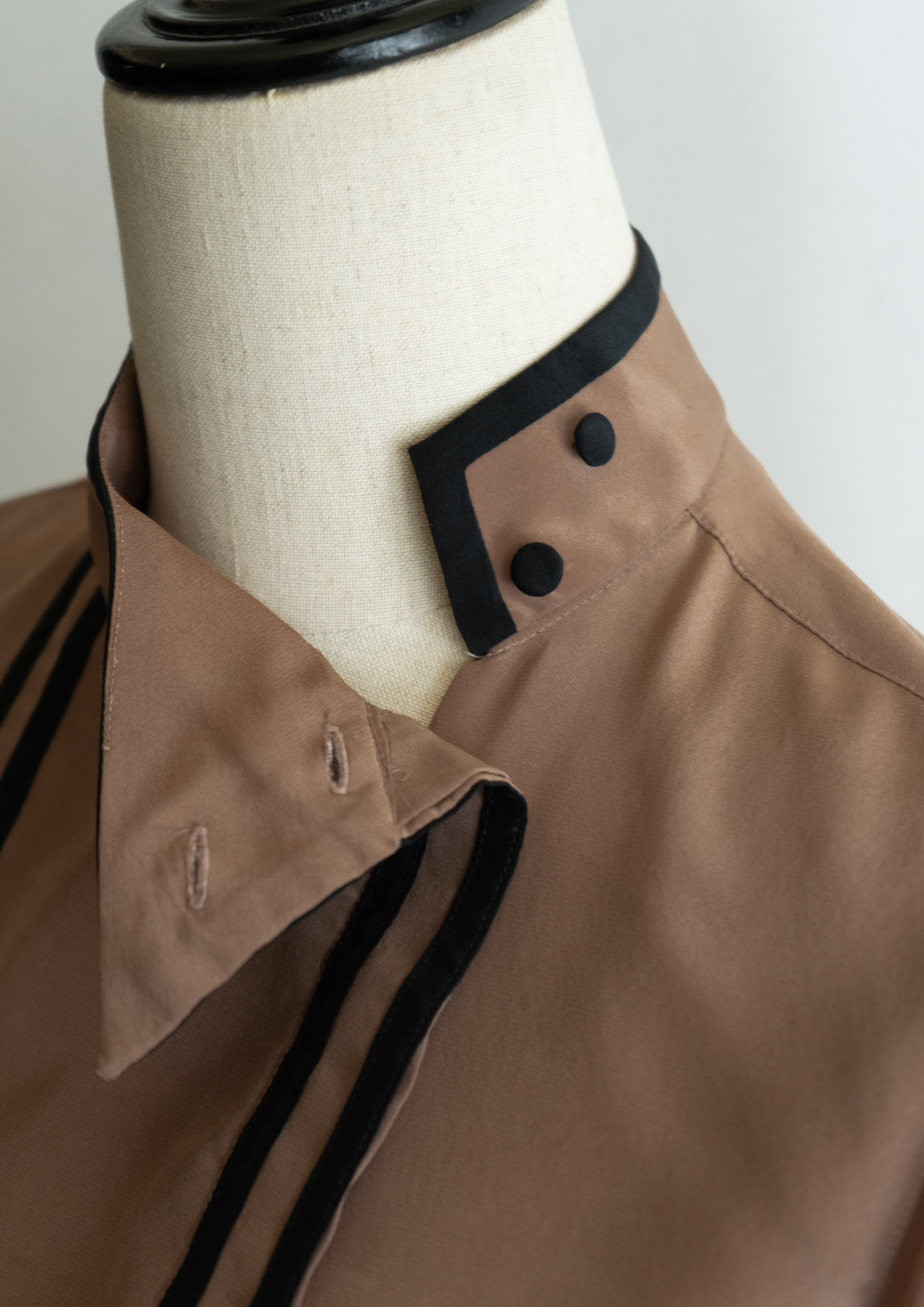 80's Tree Ring Pattern Frill Collar Purple Blouse