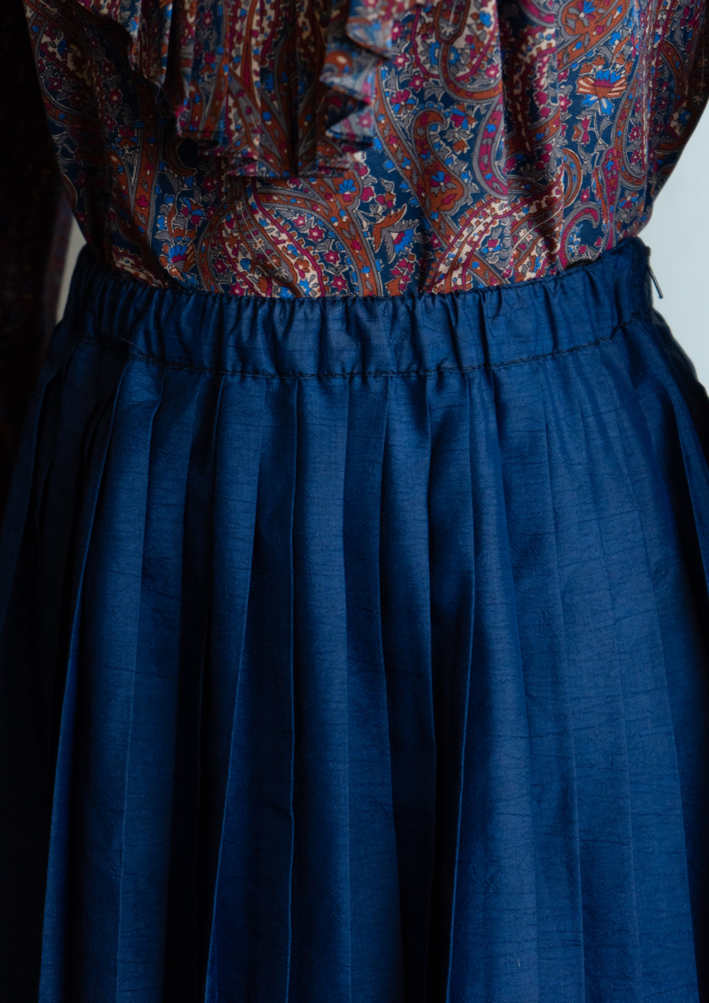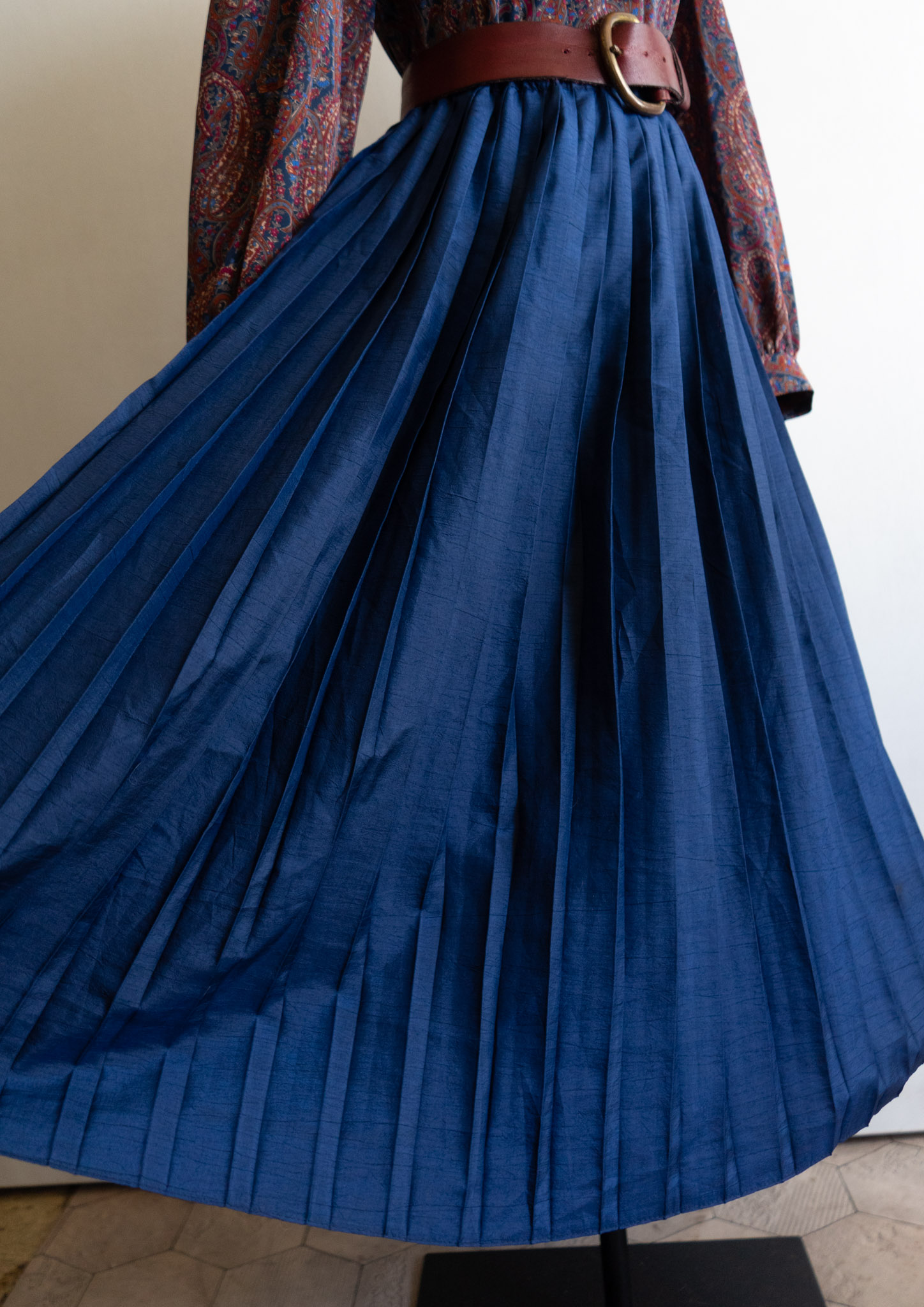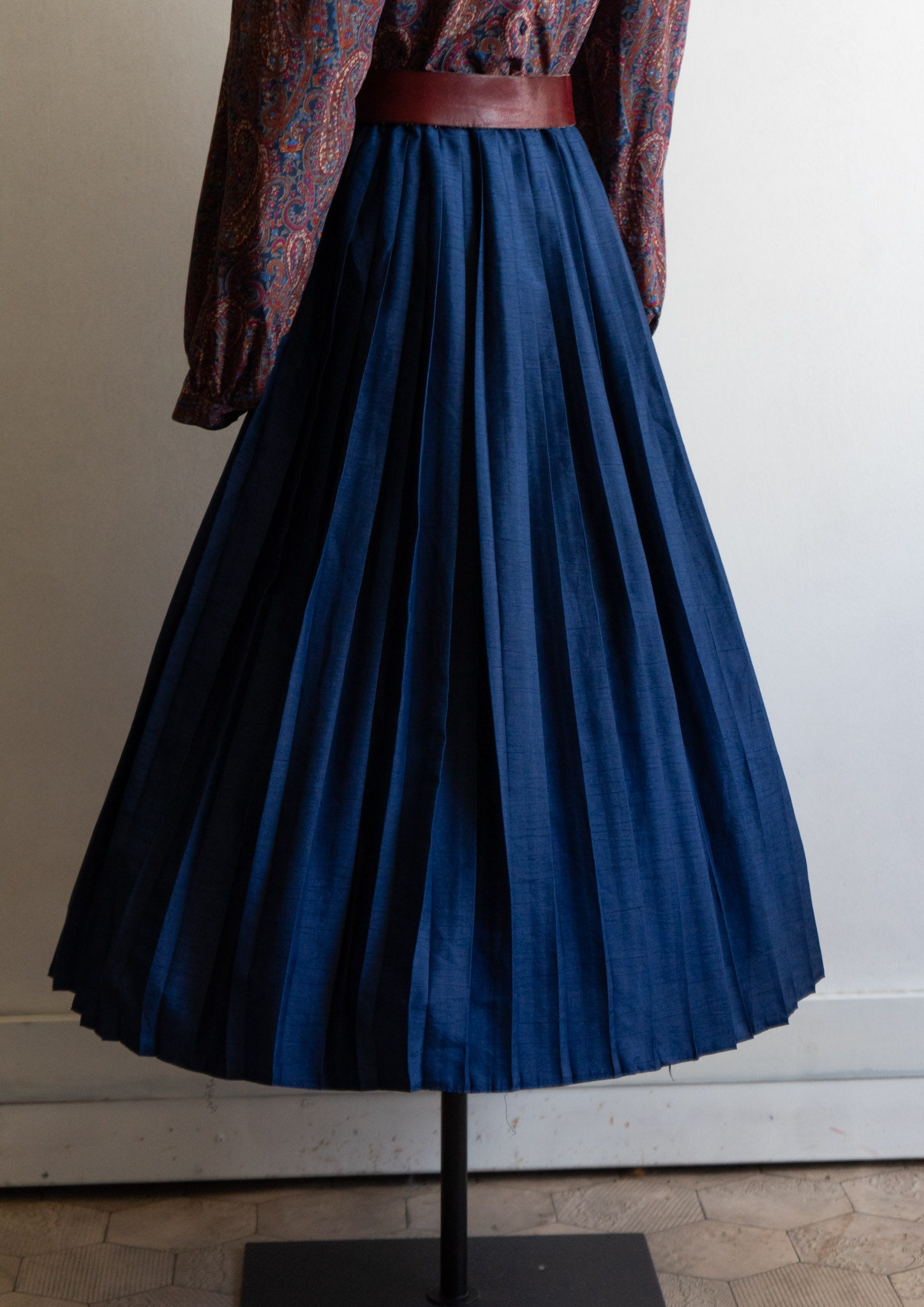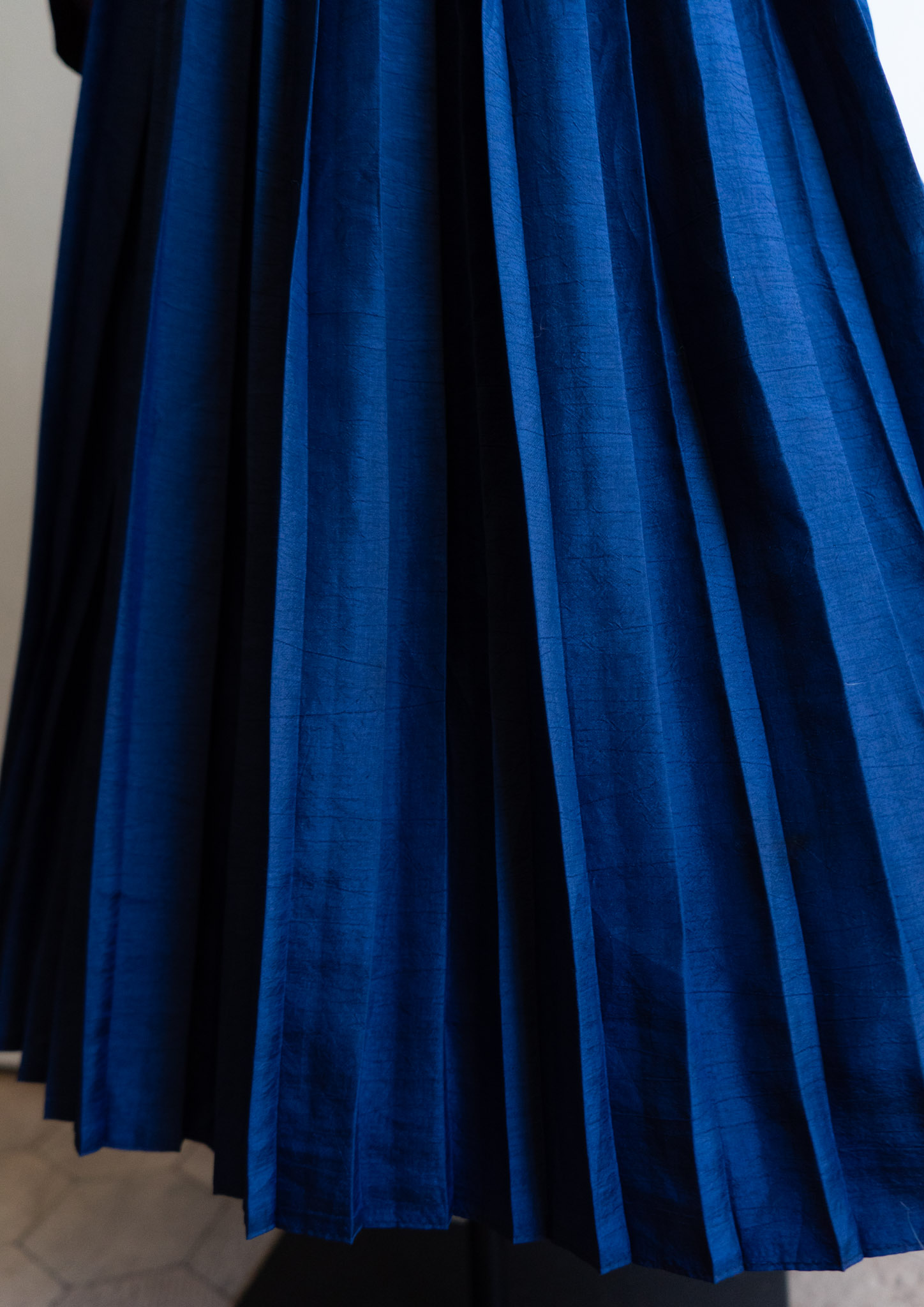 80's Crinkle Navy Pleat Skirt
