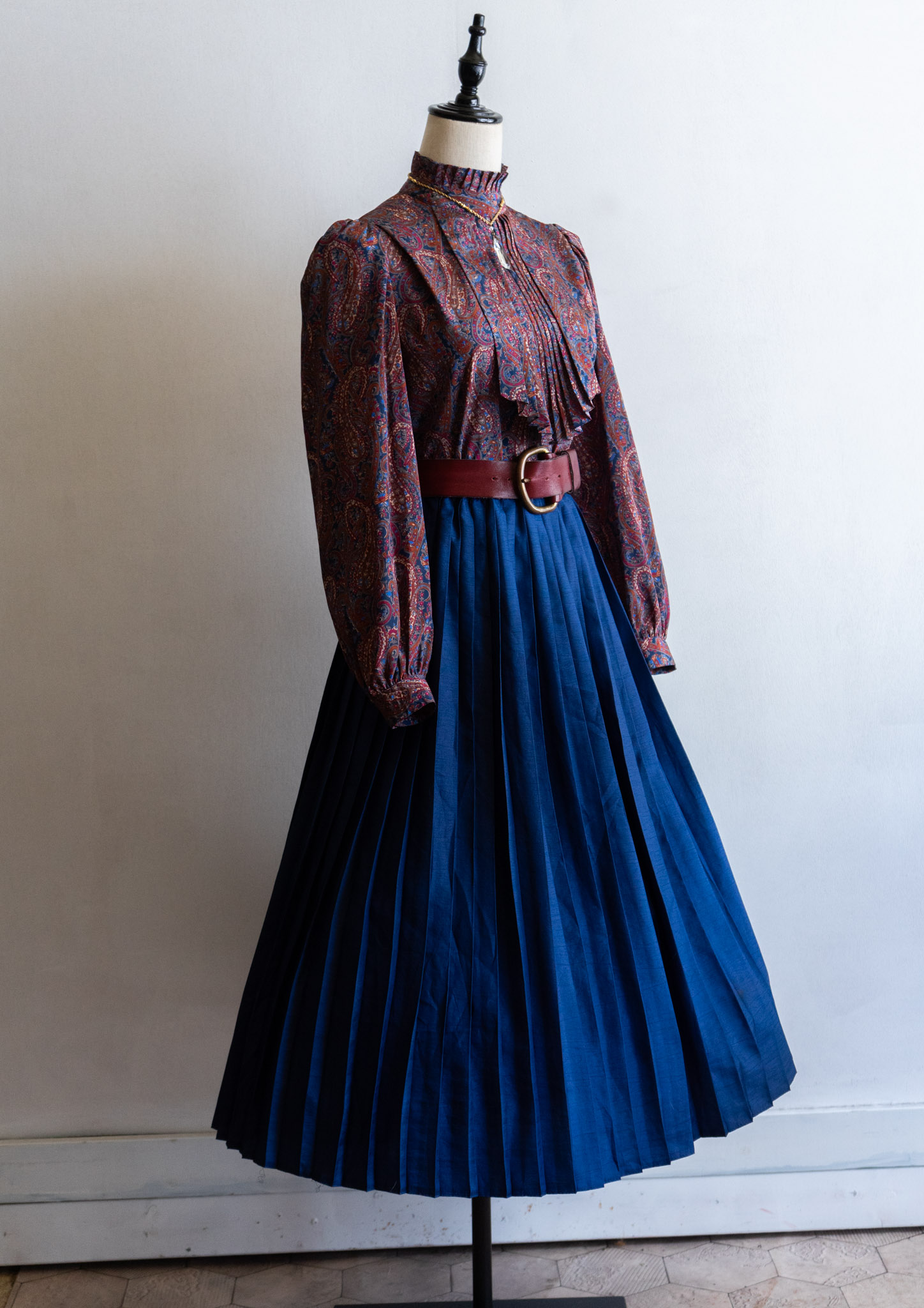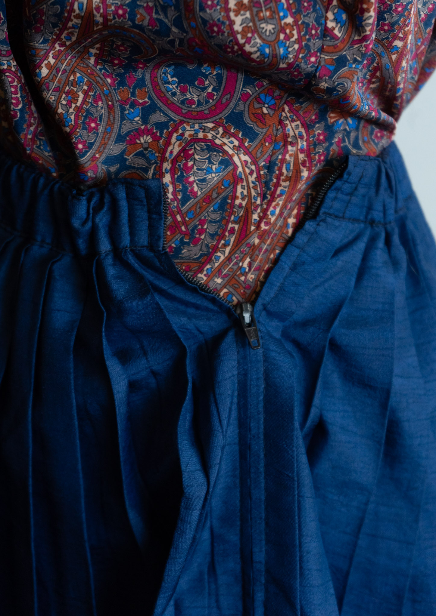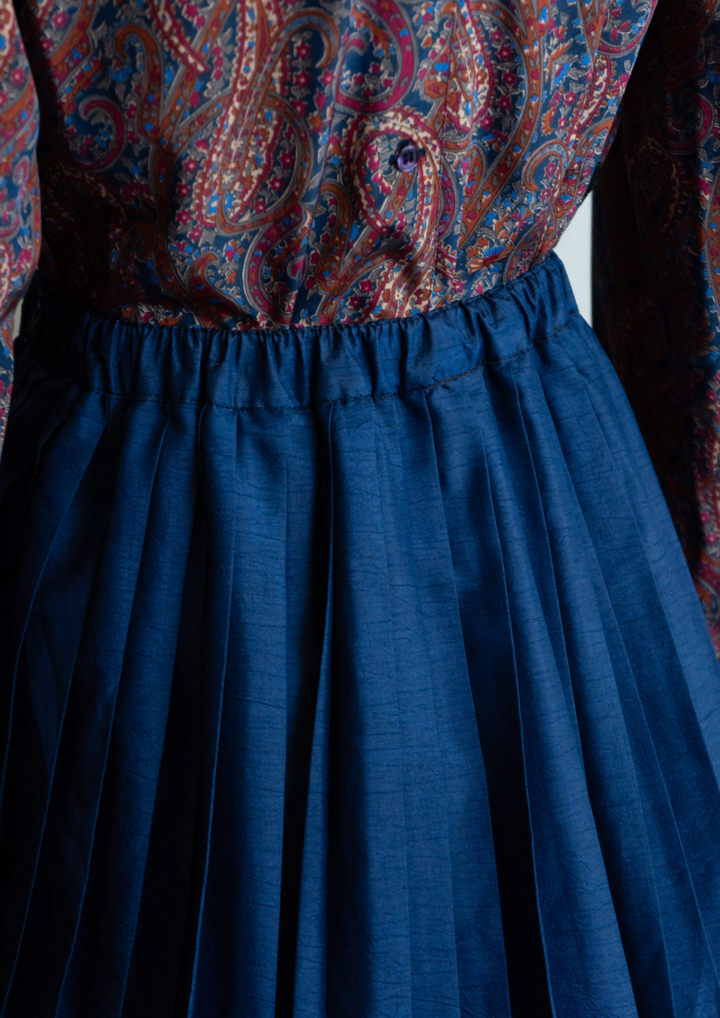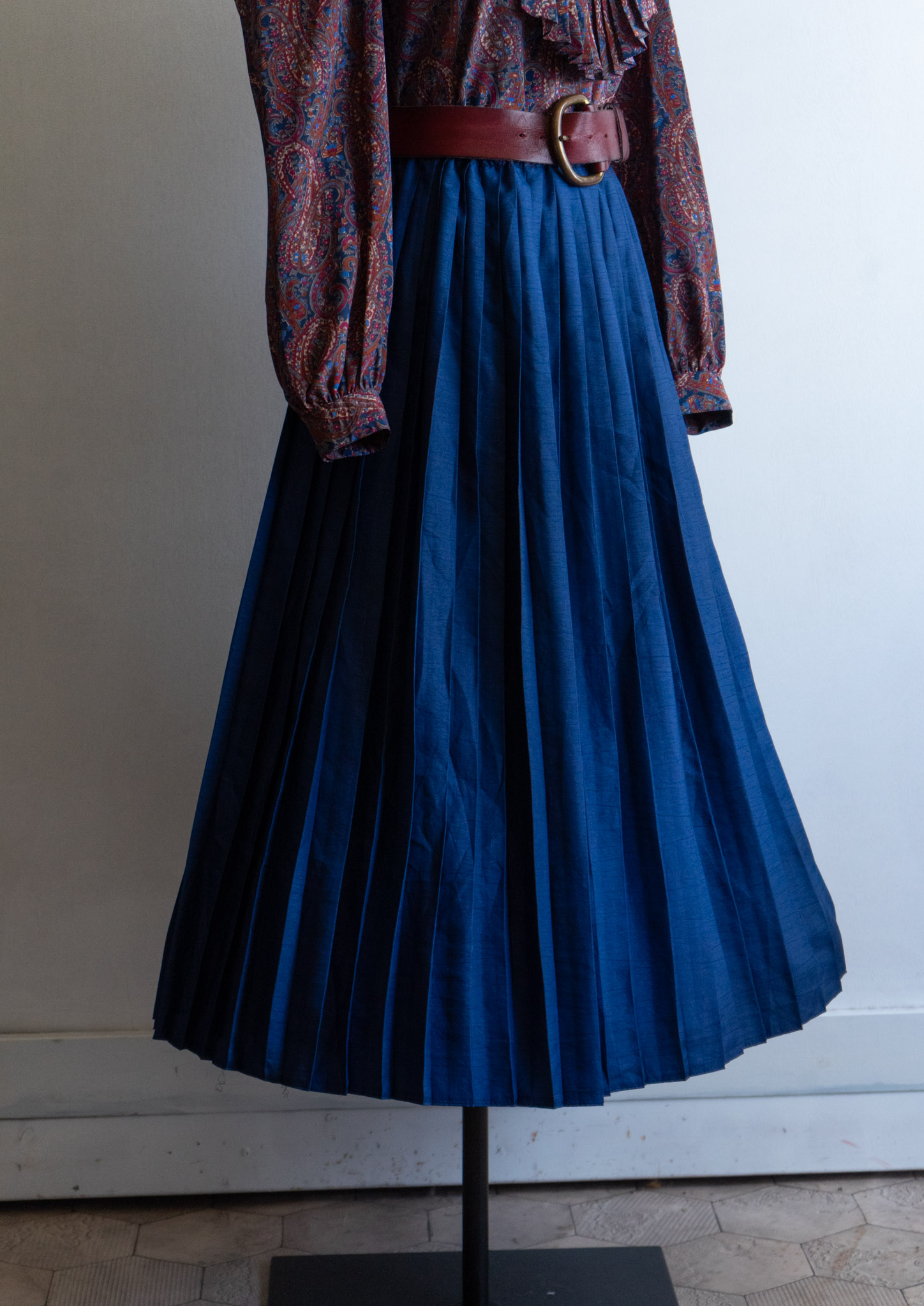 80's Crinkle Navy Pleat Skirt
