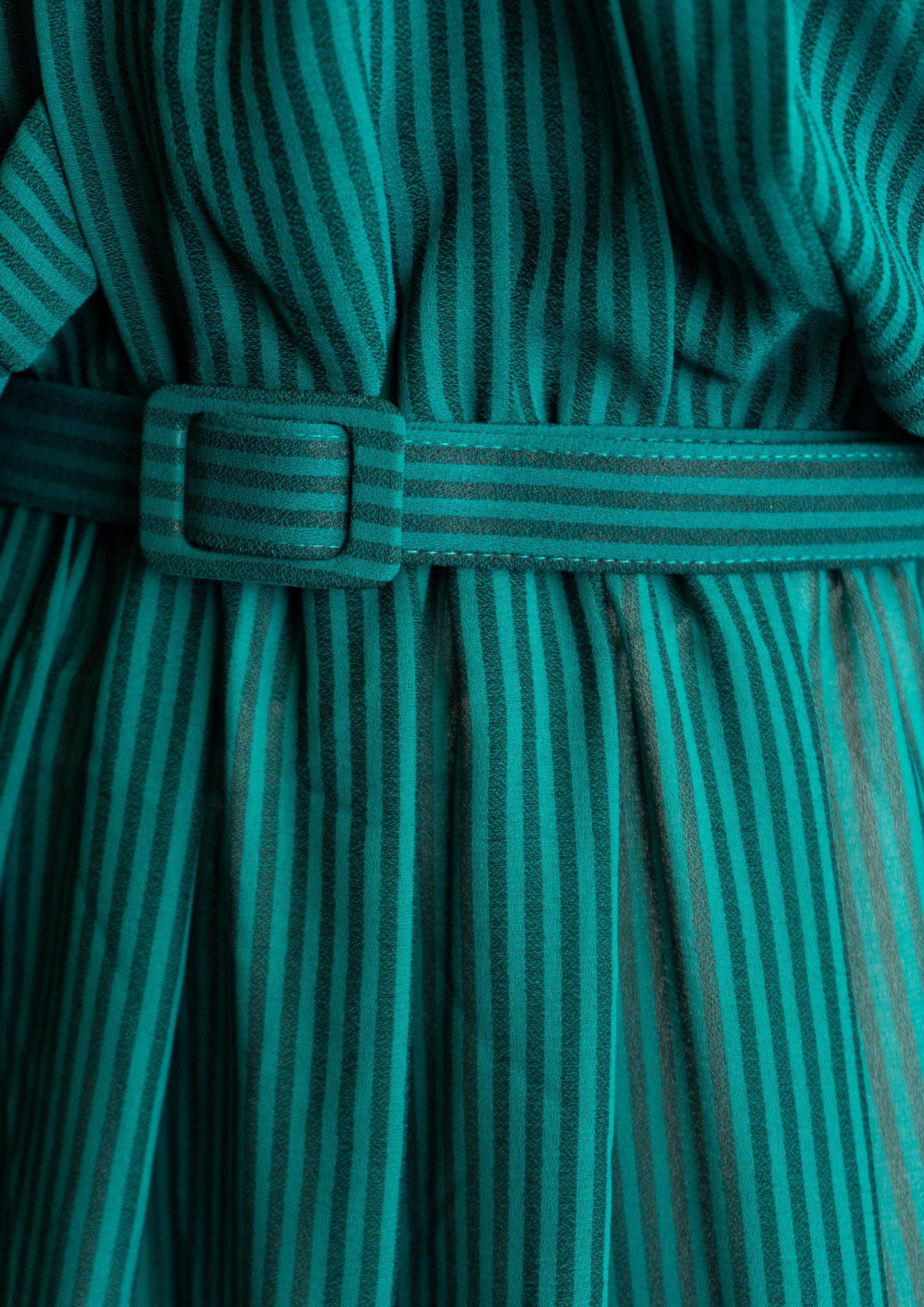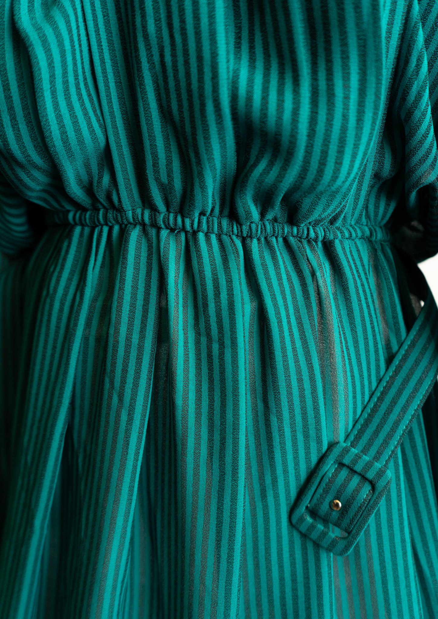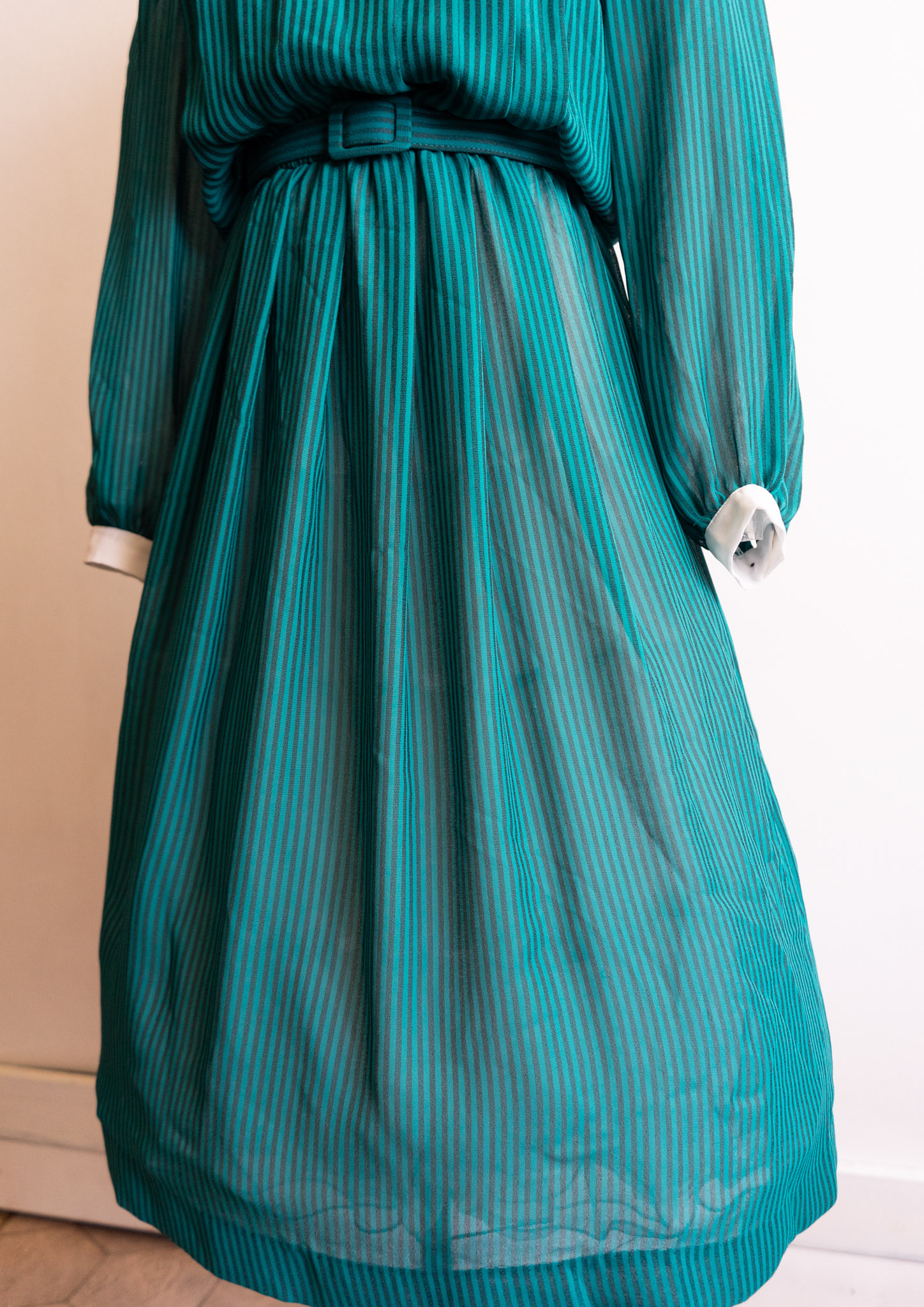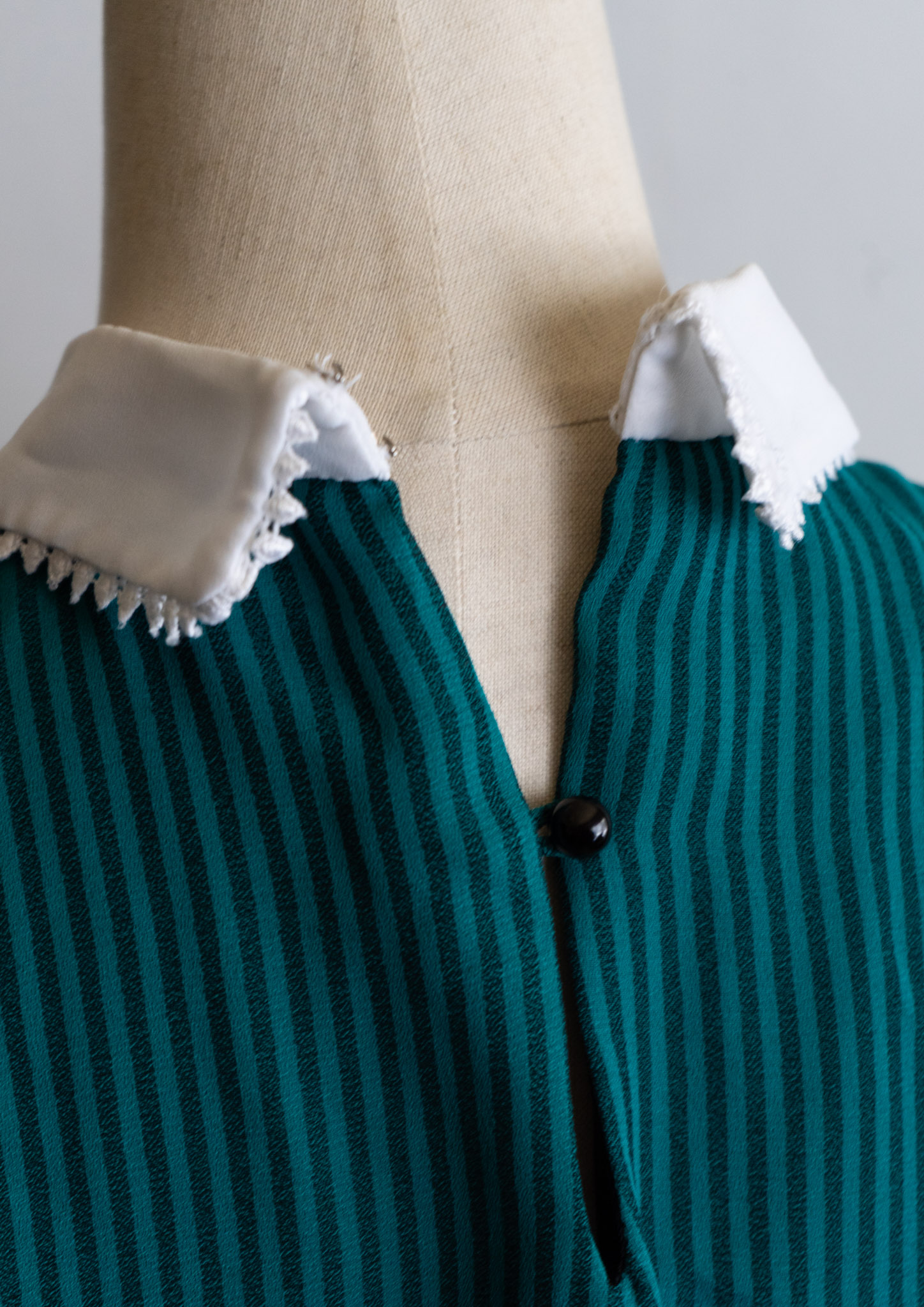 80's White Collar Black Ribbon Design Stripe Pattern Green Dress