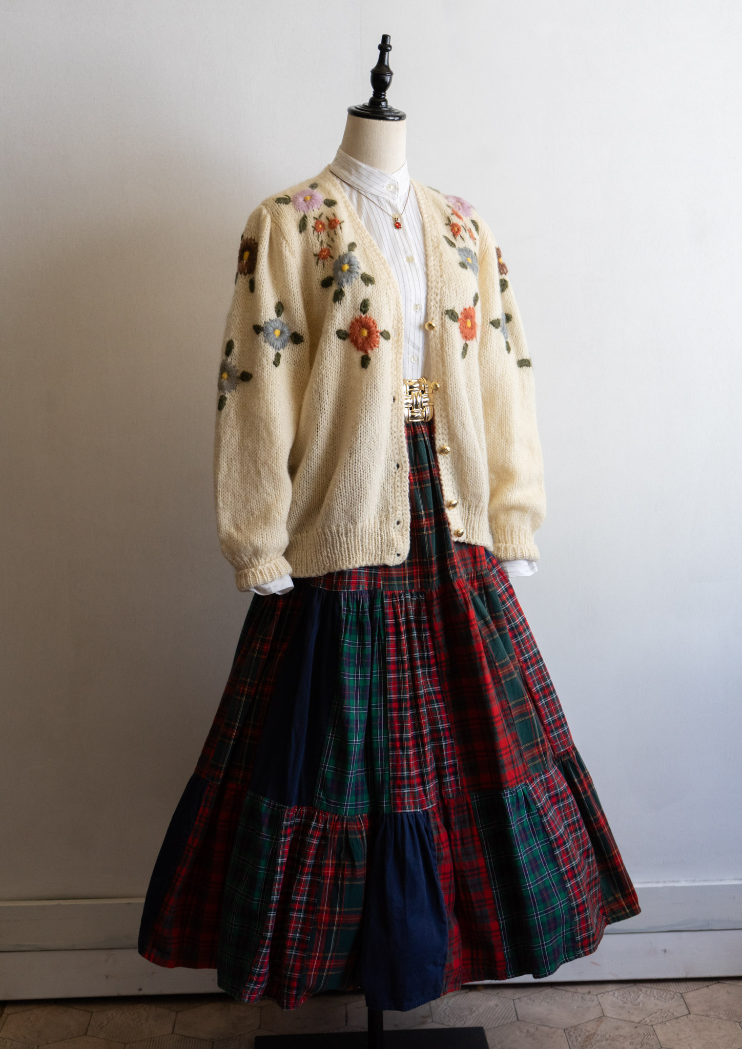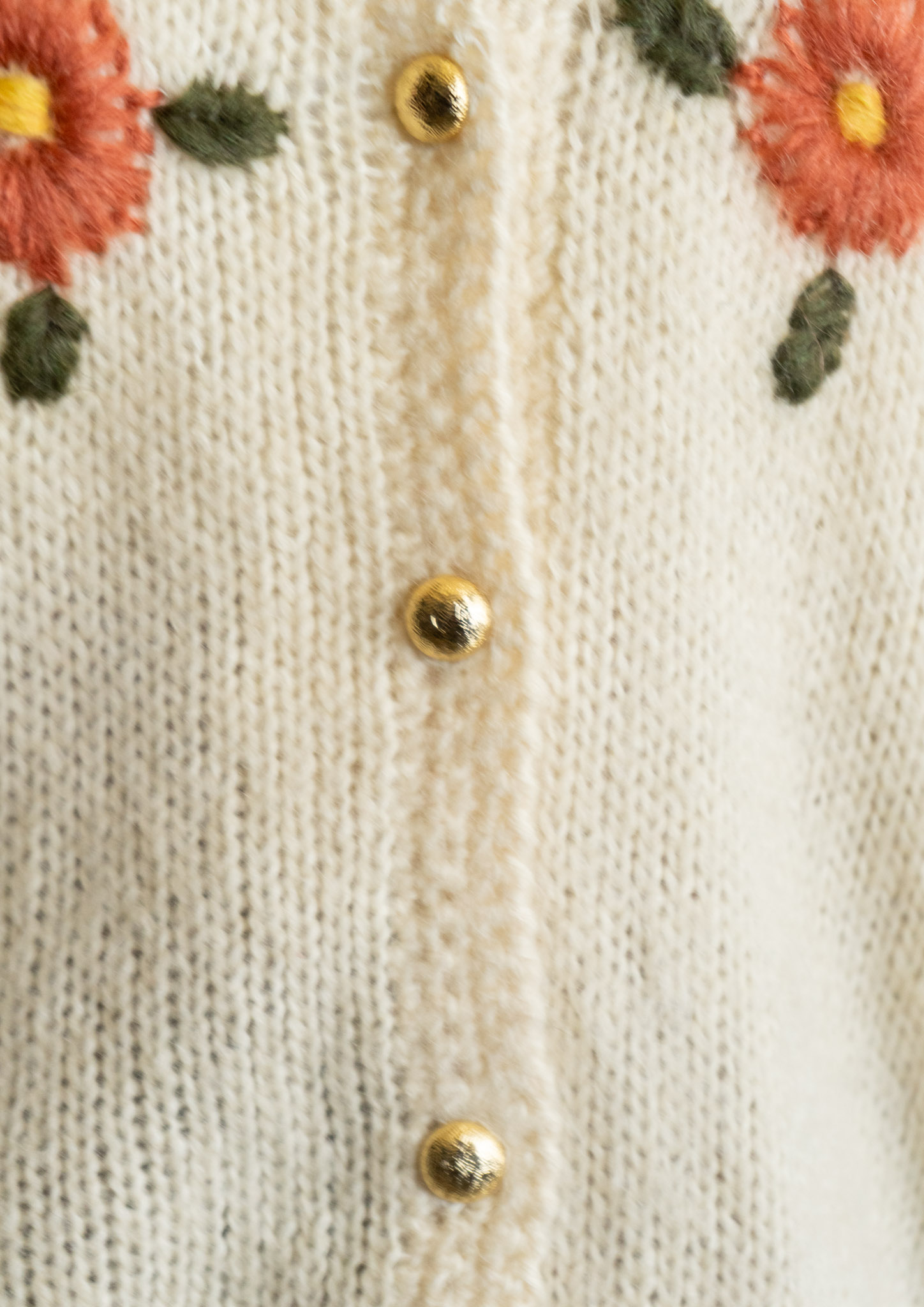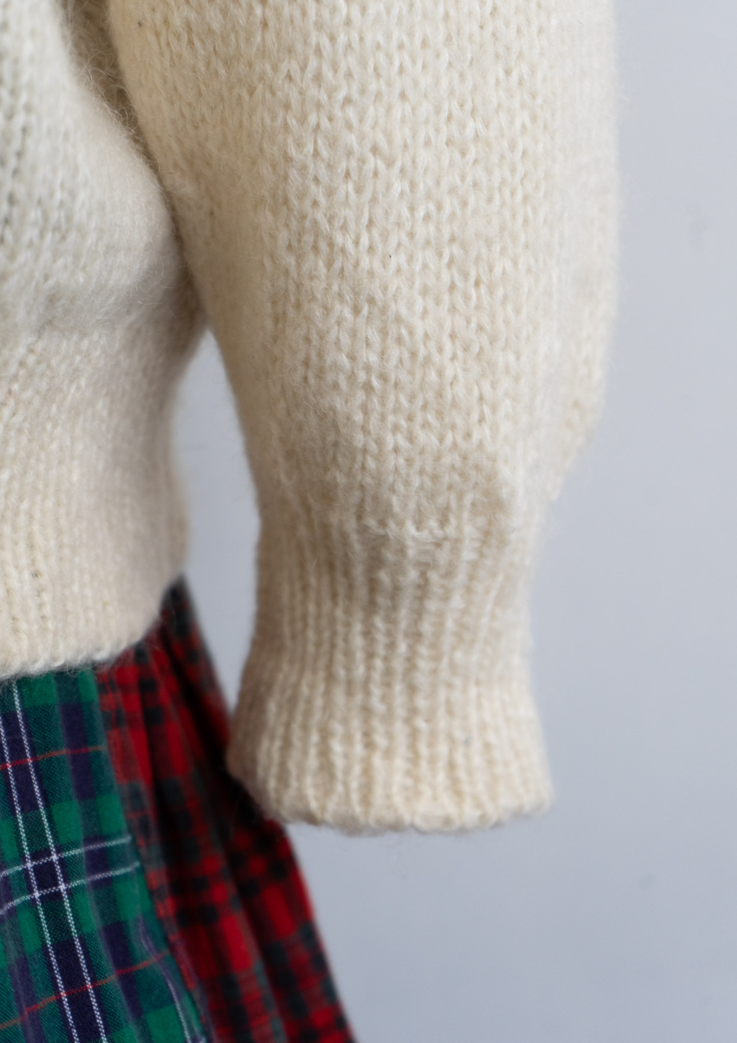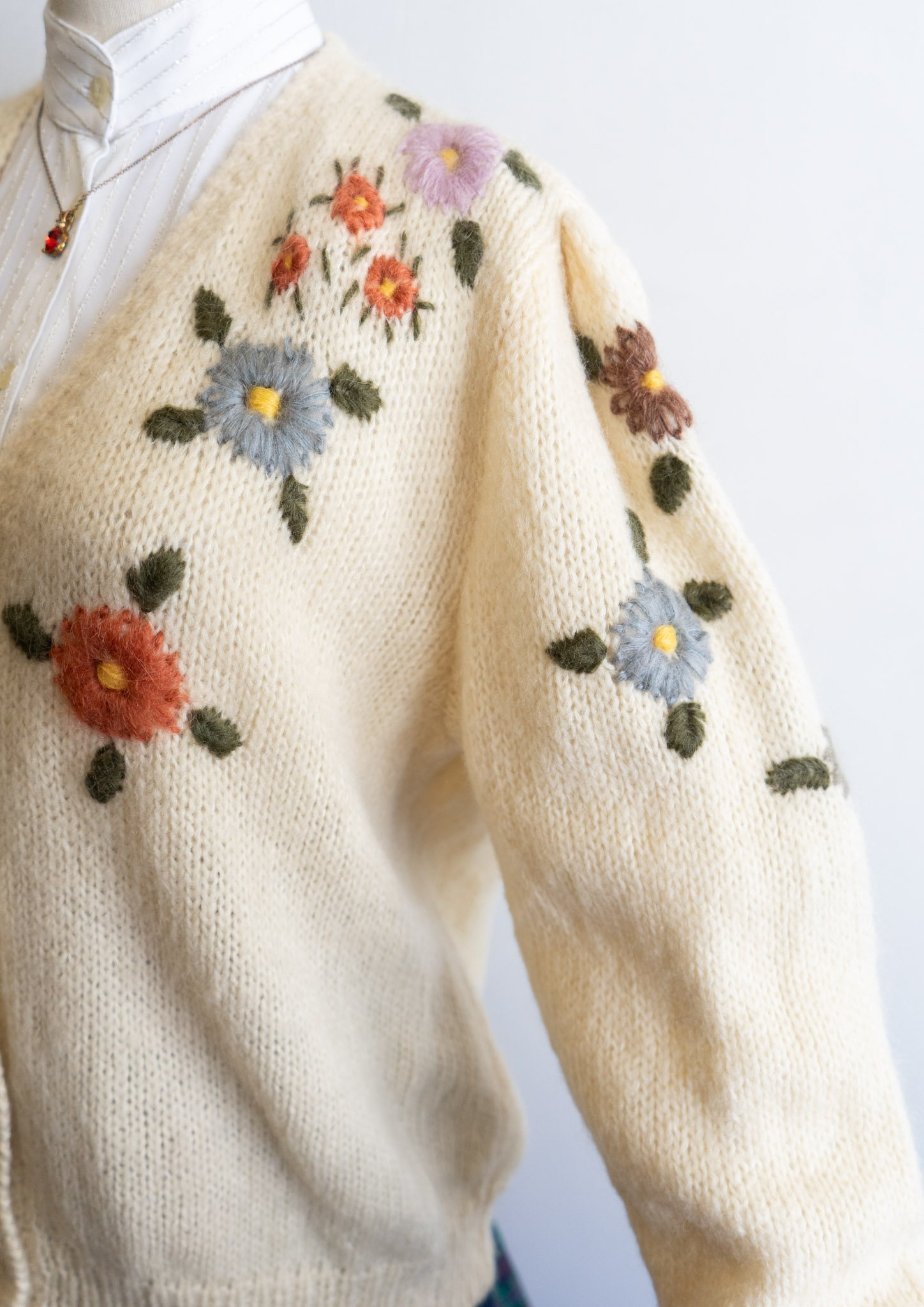 90's Italy Point Flower Knitting Ivory Mohair Cardigan