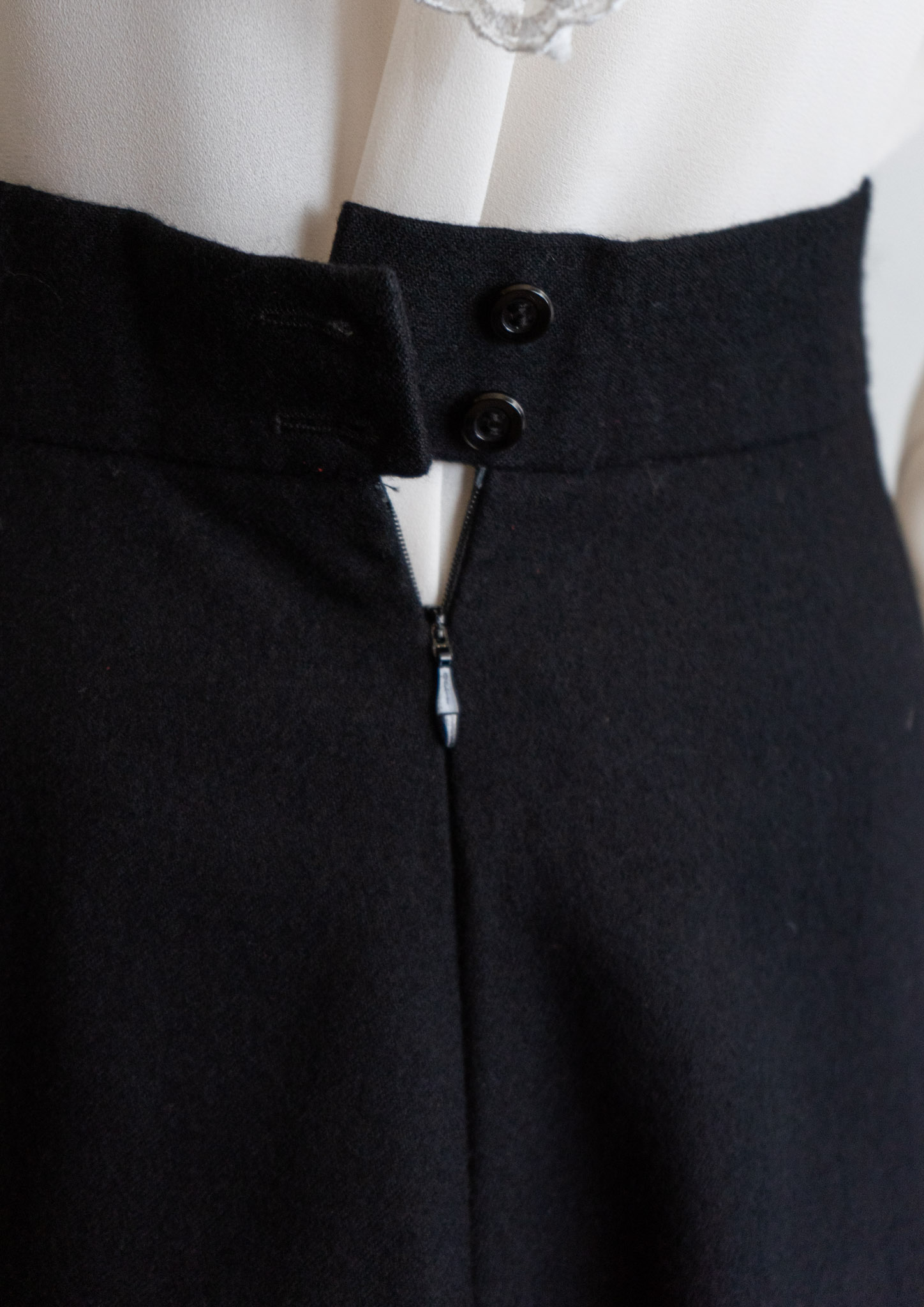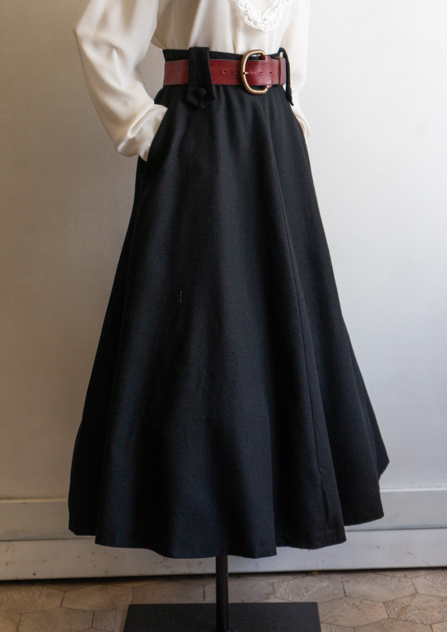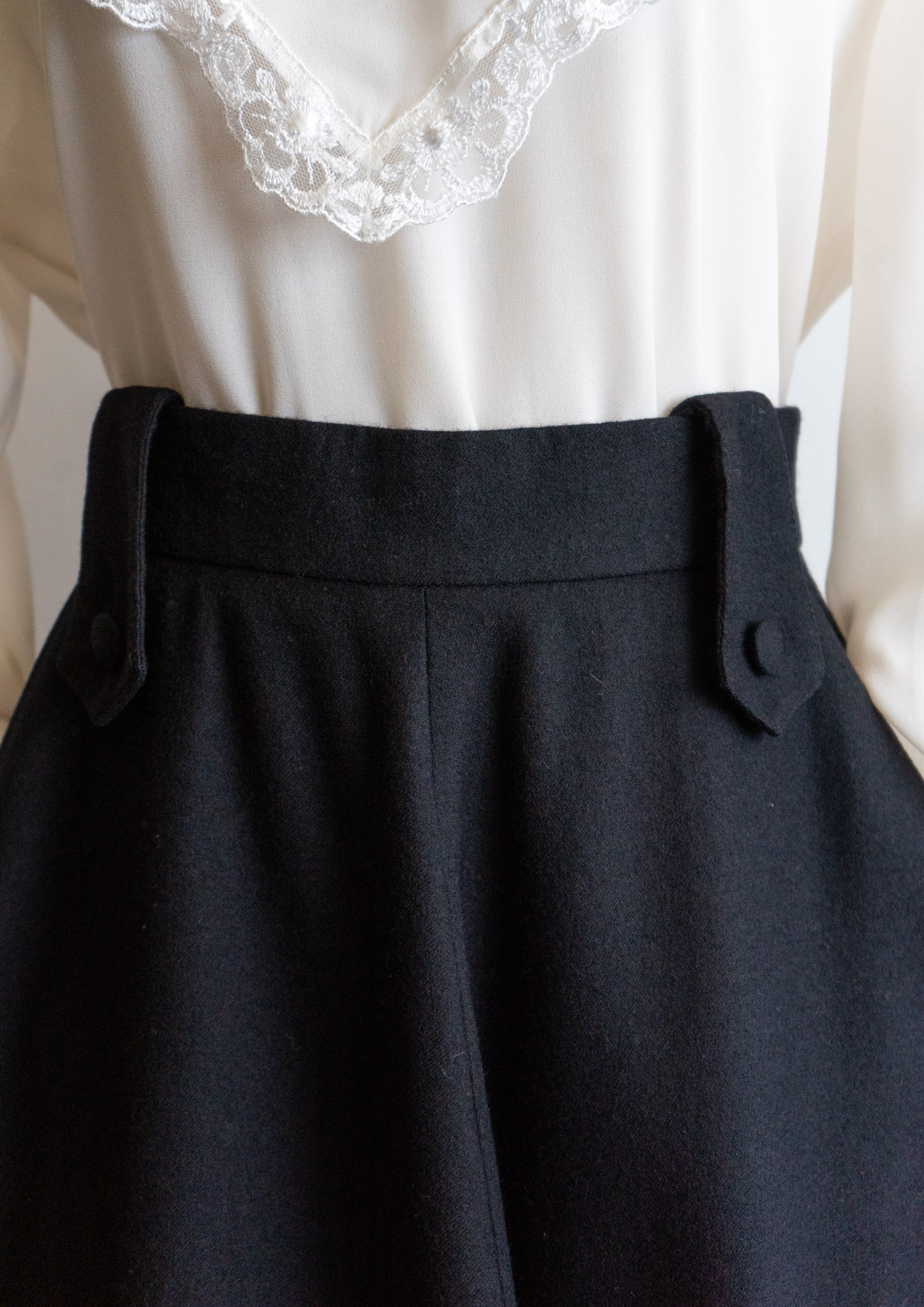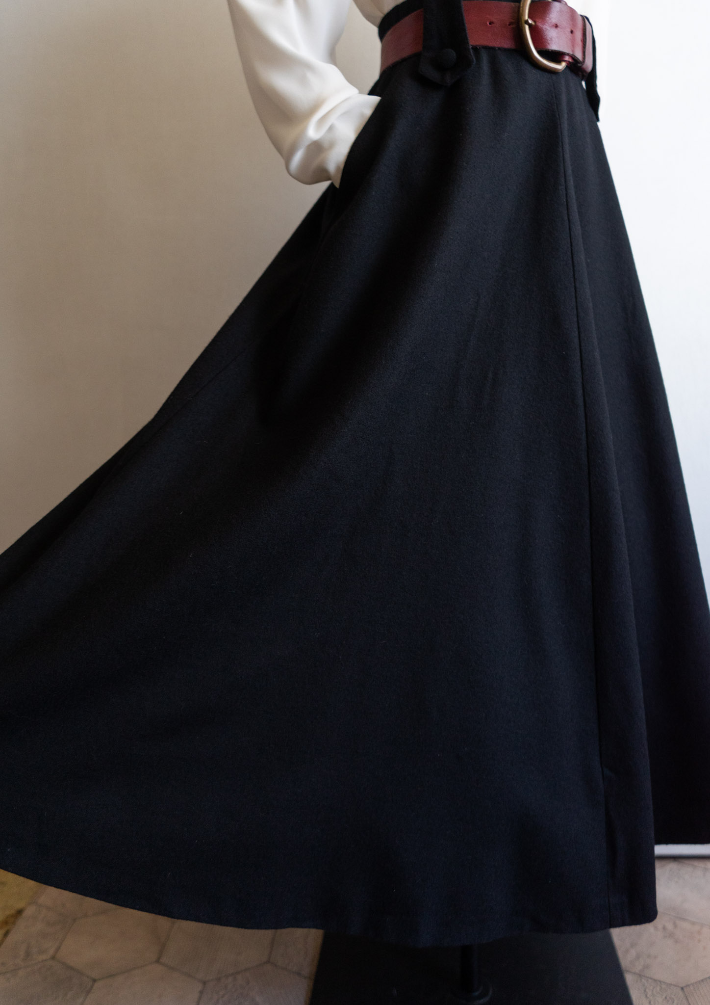 80~90's Euro Belt Loop Design Flare Black Wool Skirt