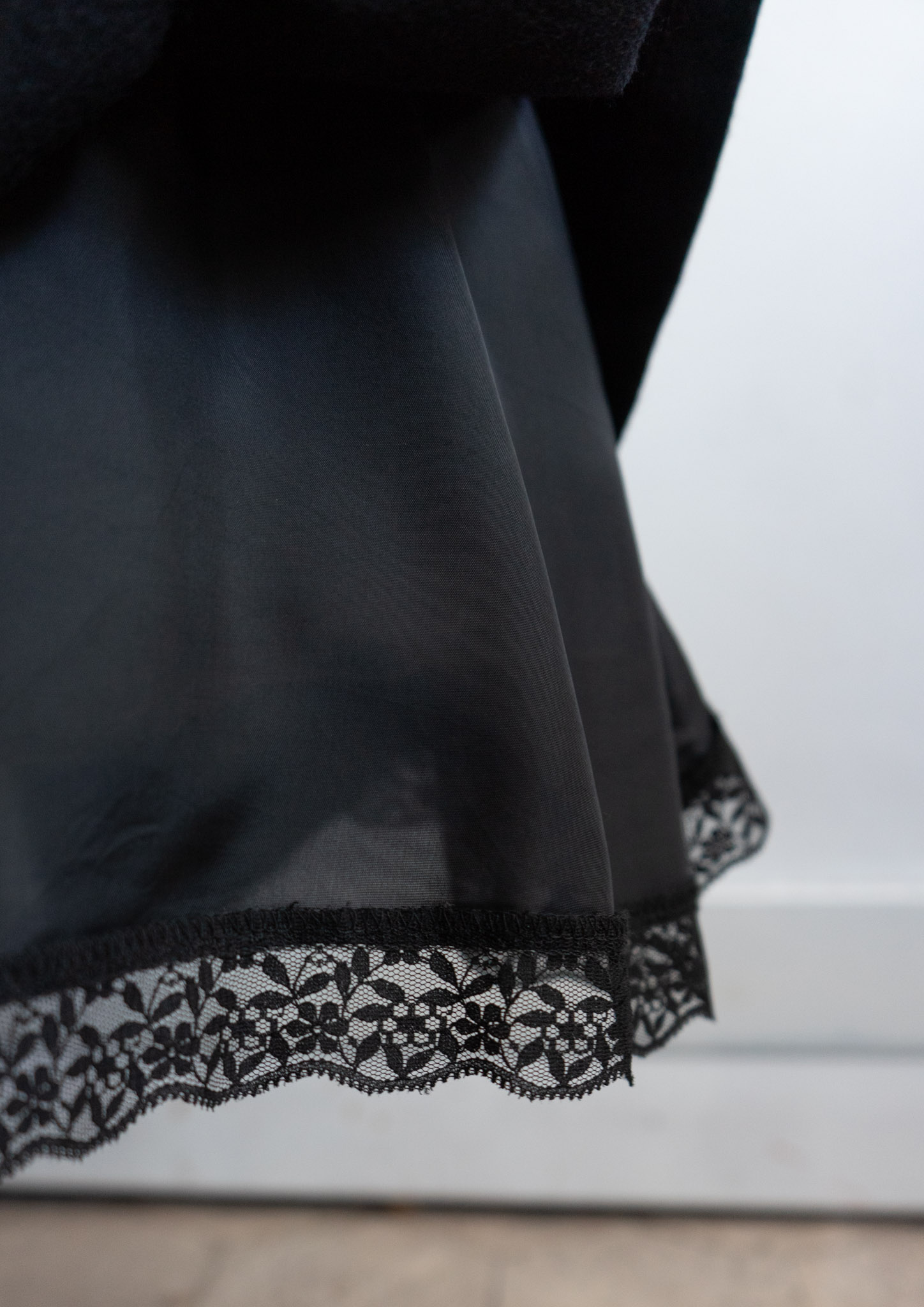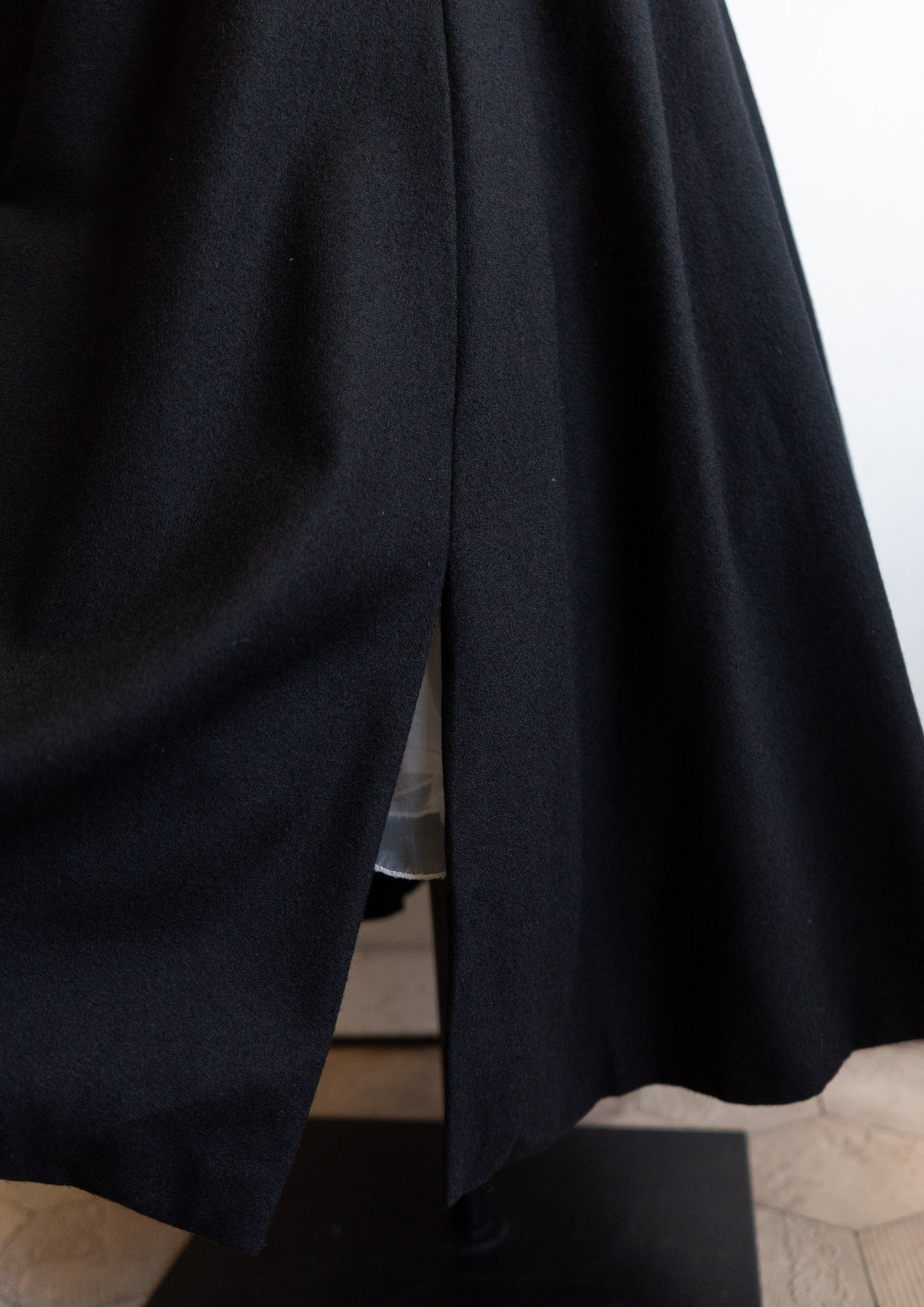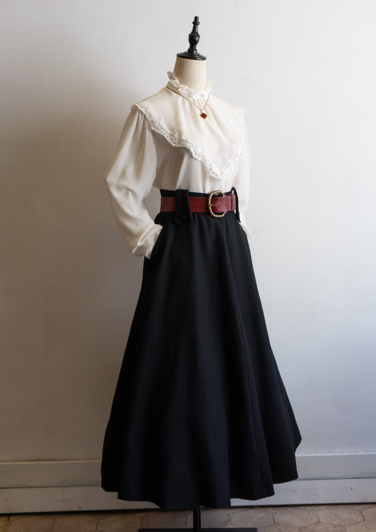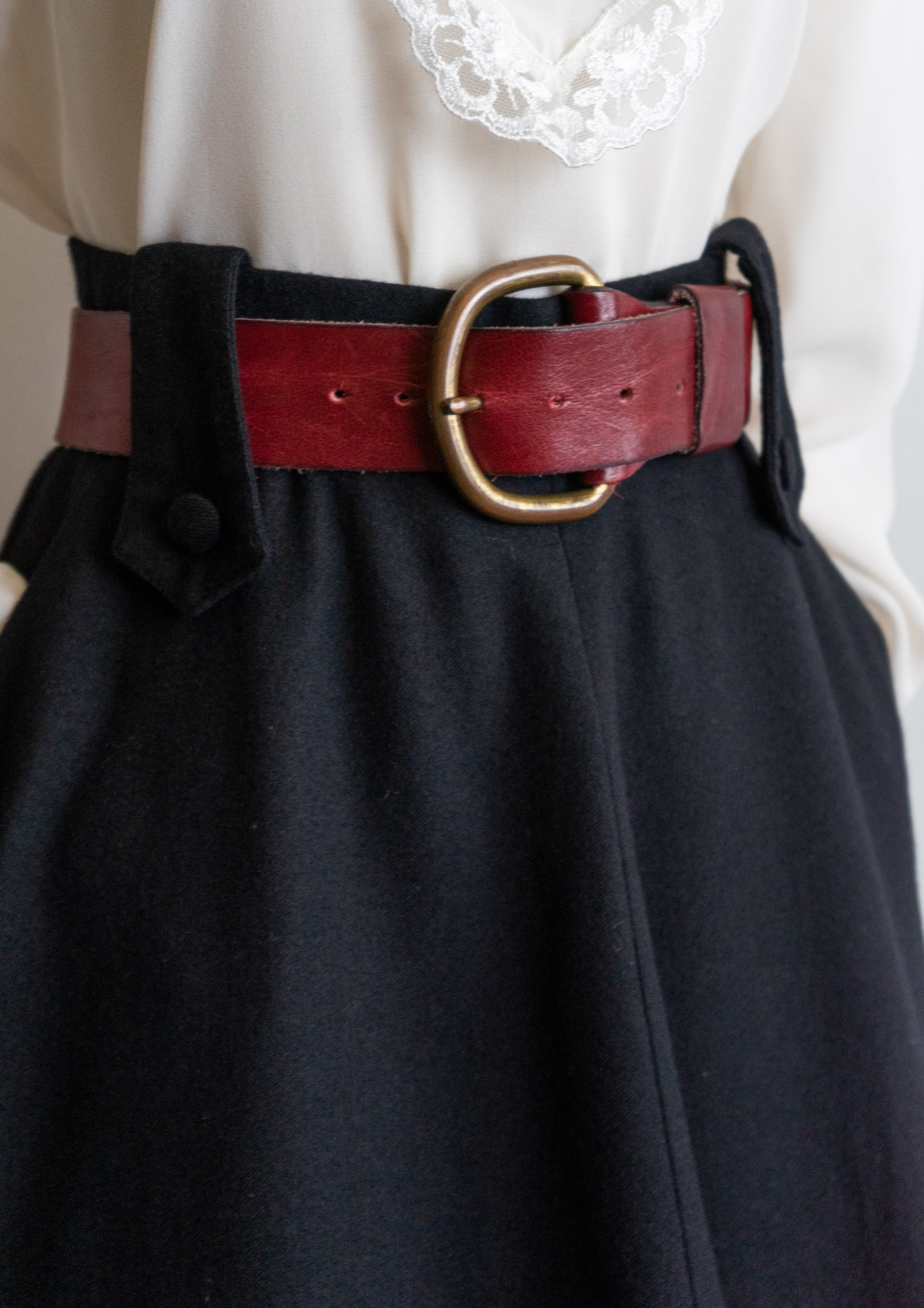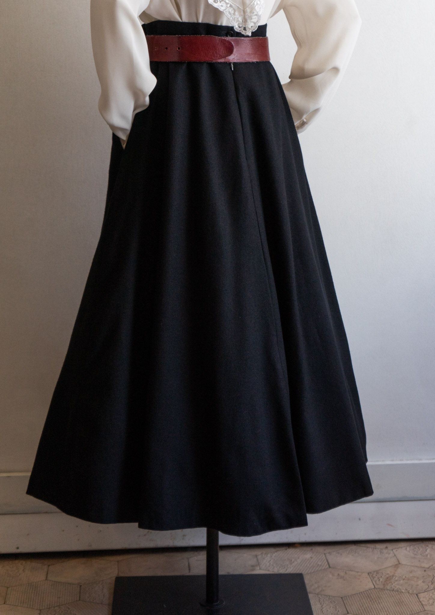80~90's Euro Belt Loop Design Flare Black Wool Skirt